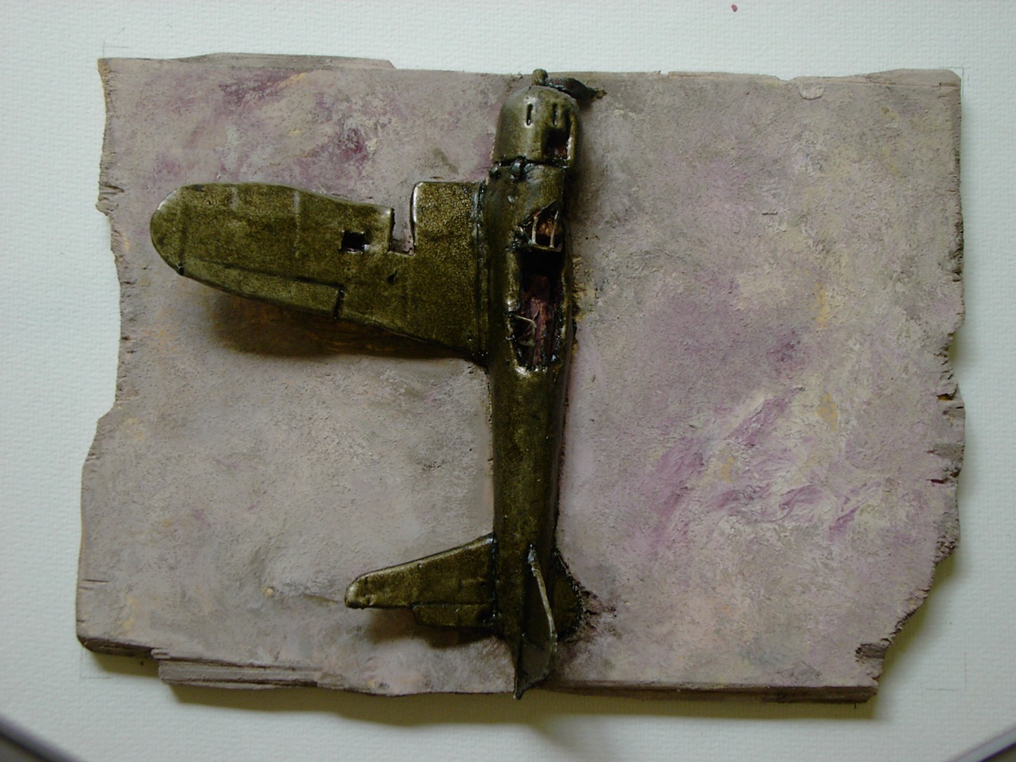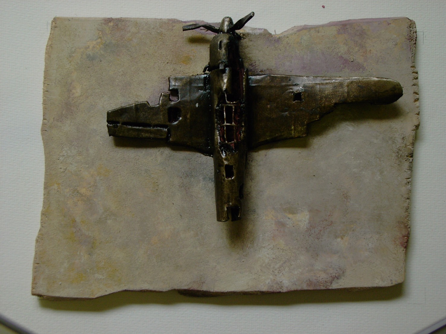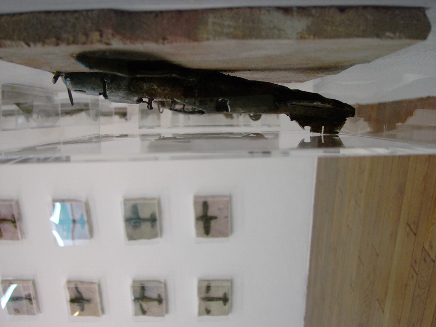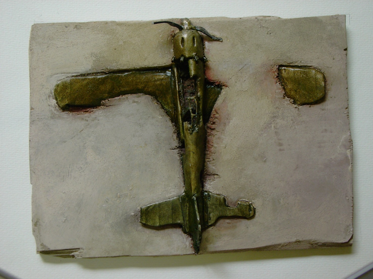体内に流れる血脈と体外で流れる歴史との間で、悠々と流され、生活している私がいる。時々変化が欲しくなる。良くも悪くもニュースメディアの中で大きな面白い事件を欲求している。少し敏感になって、歴史の流れを考えたとき、その大きな事件の後先には様々な大義名分がつけられ、処理され、また処理されようとしていることに気づく。ある意味を持つ強く美しい言葉や文字は人を信用させ、行動させ、そして人の命までも破壊する力を持つ。「大量破壊兵器保有」というgood reasonによる米英のイラク攻撃、「国際貢献」というgood reasonによる イラクへの自衛隊(Japanese army)派遣、アメリカは「正義と自由と寛容」を大義に掲げ、肥大化し続けている。イラク攻撃は終わったが、バグダッドでは治安が悪化し、自己防衛のために一般市民が銃を持たざるを得なくなった。皮肉にもアメリカにより銃を持つ自由が与えられたのである。 一方、日本国民の歴史の中では、あの神風特攻隊員たちは「悠久の大義に生きる」という言葉で抽象化され、「人間としての連帯観の昇華が、自己犠牲の精神によって勇敢に発揮されたのである」というように括られ、隊員たちも「撃沈」、「轟沈」、「爆沈」、「撃滅」などの勇ましい文字に大義の殻を作り、その中に乗り込んでいった。そう私には思えるのである。不安と恐怖から逃れるために、己を鼓舞し、包んでくれる殻が必要だったように感じるのである。日本軍は絶対に降伏せずという強い意志を背景に、政府は一億総攻撃によって「名誉ある和平」という大義の大きな殻を用意していたのである。連合軍はこの壮絶な体当たり攻撃で恐怖のどん底に陥ったことは事実であり、この結果「これ以上の人間殺戮は避けねばならぬ。速やかに日本に戦争をやめさすべきだ」というgood reasonが固まり、ついに原子爆弾投下にふみきったといわれている。たとえ、他の思惑があったにせよ、トルーマン大統領に決断させた直接の原因はこの日本の若者達の自己犠牲の体当たりだったのである。もしこの特攻攻撃がなかったら連合軍の日本上陸は進められ、今の日本は存在しなかったであろう、ともいわれている。 戦争とは美しい大義名分の基でとんでもないことが行われることである。この作品を制作するにあたって考えたのはそんな大義名分に乗り込んだ少年兵達の抜け殻(=言葉の枯れ葉)をつくることであった。100機の抜け殻をつくった訳は、特攻とは「百死零生」の体当たり攻撃である。という四文字からである。