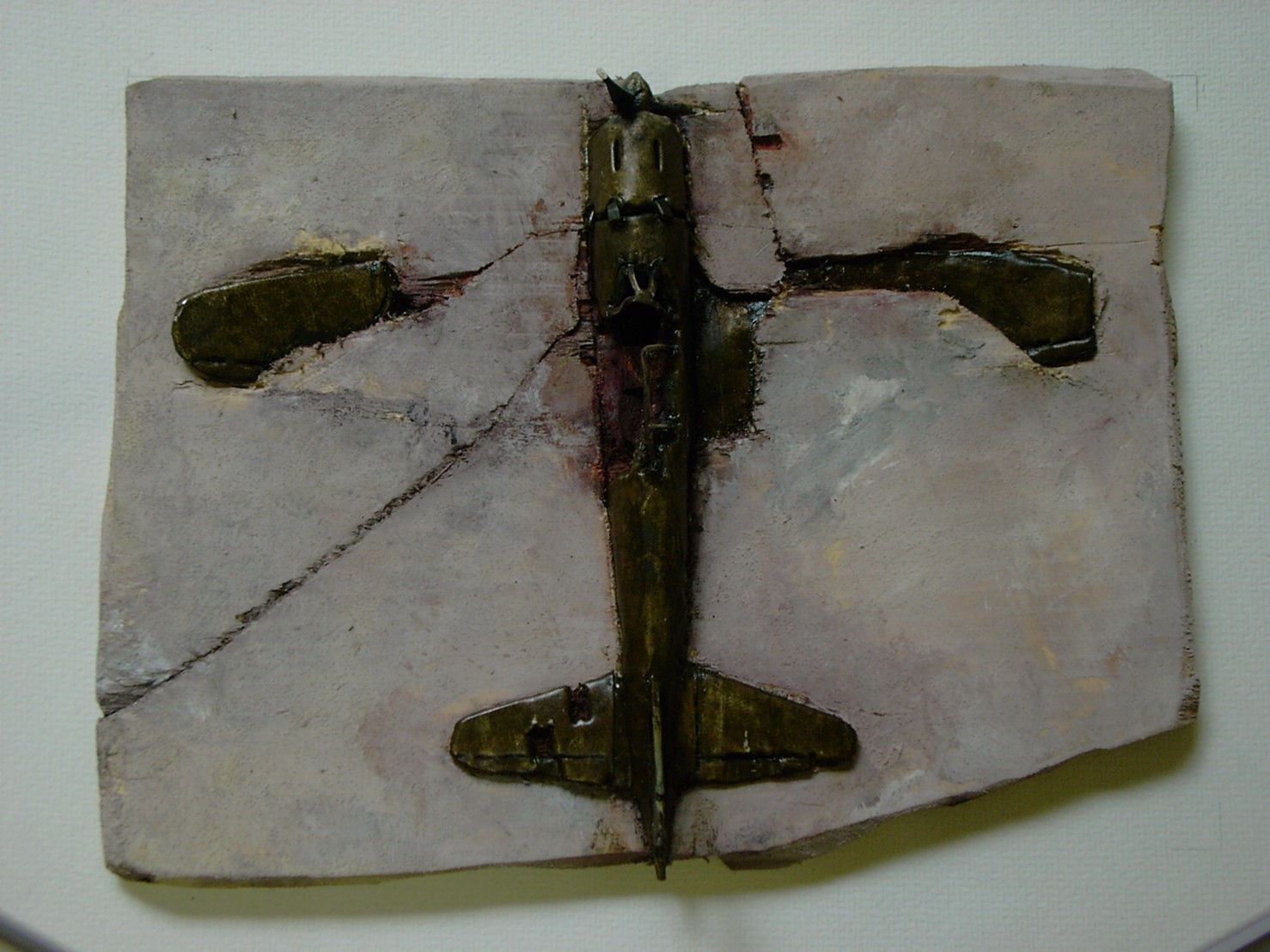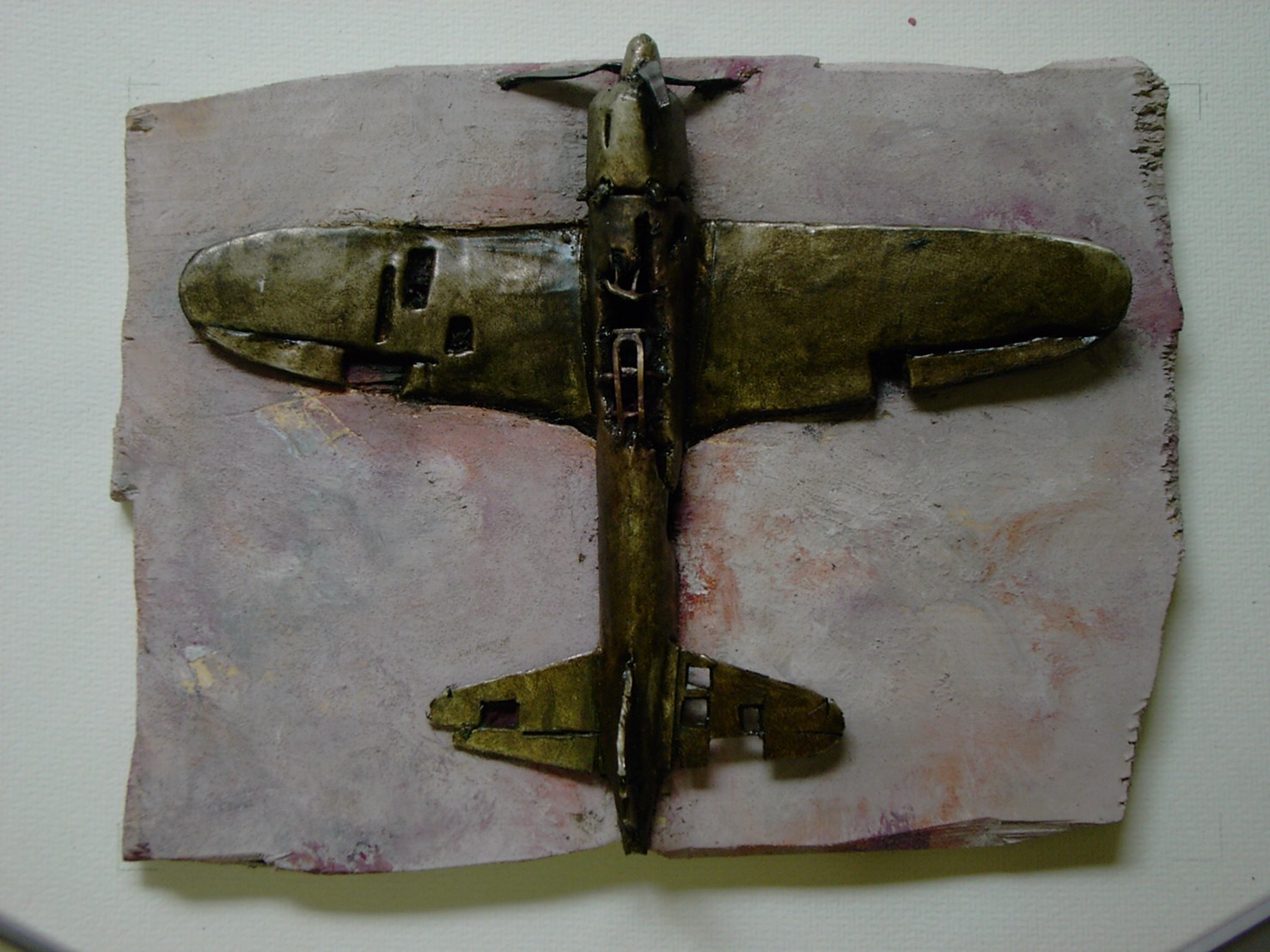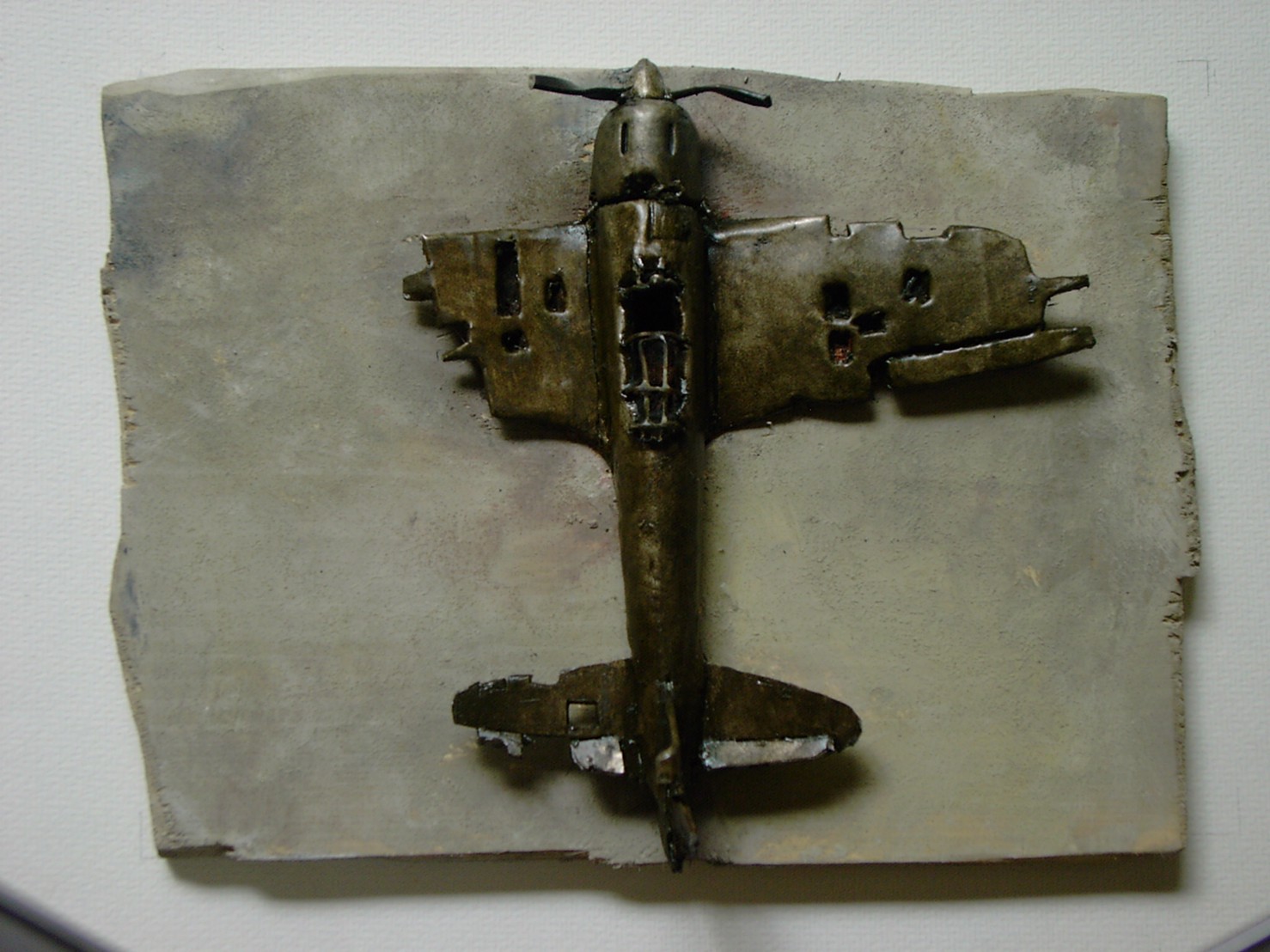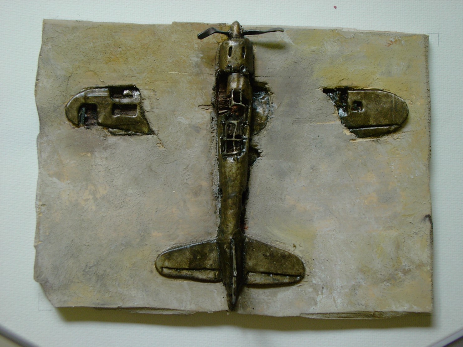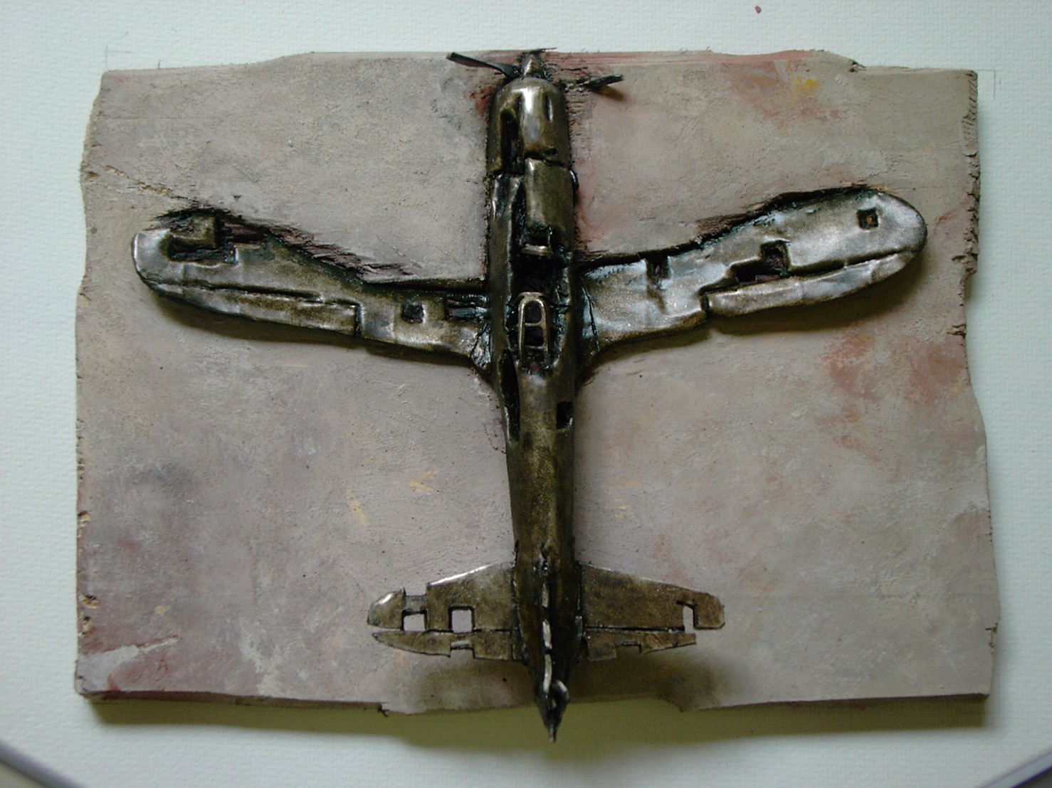 体内に流れる血脈と体外で流れる歴史との間で、悠々と流され、生活している私がいる。時々変化が欲しくなる。良くも悪くもニュースメディアの中で大きな面白い事件を欲求している。少し敏感になって、歴史の流れを考えたとき、その大きな事件の後先には様々な大義名分がつけられ、処理され、また処理されようとしていることに気づく。ある意味を持つ強く美しい言葉や文字は人を信用させ、行動させ、そして人の命までも破壊する力を持つ。「大量破壊兵器保有」というgood reasonによる米英のイラク攻撃、「国際貢献」というgood reasonによる イラクへの自衛隊(Japanese army)派遣、アメリカは「正義と自由と寛容」を大義に掲げ、肥大化し続けている。イラク攻撃は終わったが、バグダッドでは治安が悪化し、自己防衛のために一般市民が銃を持たざるを得なくなった。皮肉にもアメリカにより銃を持つ自由が与えられたのである。 一方、日本国民の歴史の中では、あの神風特攻隊員たちは「悠久の大義に生きる」という言葉で抽象化され、「人間としての連帯観の昇華が、自己犠牲の精神によって勇敢に発揮されたのである」というように括られ、隊員たちも「撃沈」、「轟沈」、「爆沈」、「撃滅」などの勇ましい文字に大義の殻を作り、その中に乗り込んでいった。そう私には思えるのである。不安と恐怖から逃れるために、己を鼓舞し、包んでくれる殻が必要だったように感じるのである。日本軍は絶対に降伏せずという強い意志を背景に、政府は一億総攻撃によって「名誉ある和平」という大義の大きな殻を用意していたのである。連合軍はこの壮絶な体当たり攻撃で恐怖のどん底に陥ったことは事実であり、この結果「これ以上の人間殺戮は避けねばならぬ。速やかに日本に戦争をやめさすべきだ」というgood reasonが固まり、ついに原子爆弾投下にふみきったといわれている。たとえ、他の思惑があったにせよ、トルーマン大統領に決断させた直接の原因はこの日本の若者達の自己犠牲の体当たりだったのである。もしこの特攻攻撃がなかったら連合軍の日本上陸は進められ、今の日本は存在しなかったであろう、ともいわれている。 戦争とは美しい大義名分の基でとんでもないことが行われることである。この作品を制作するにあたって考えたのはそんな大義名分に乗り込んだ少年兵達の抜け殻(=言葉の枯れ葉)をつくることであった。100機の抜け殻をつくった訳は、特攻とは「百死零生」の体当たり攻撃である。という四文字からである。