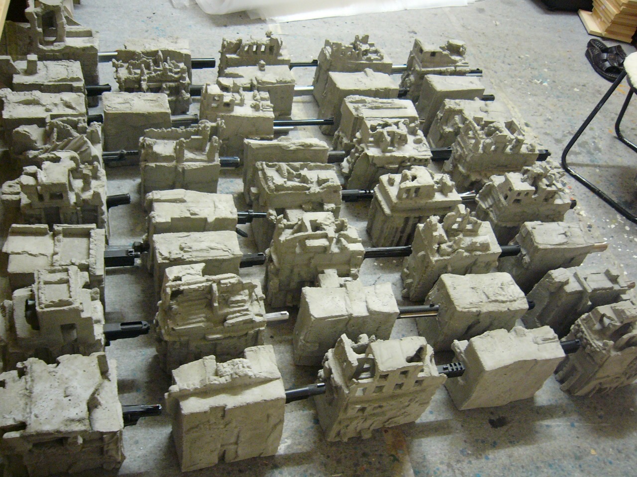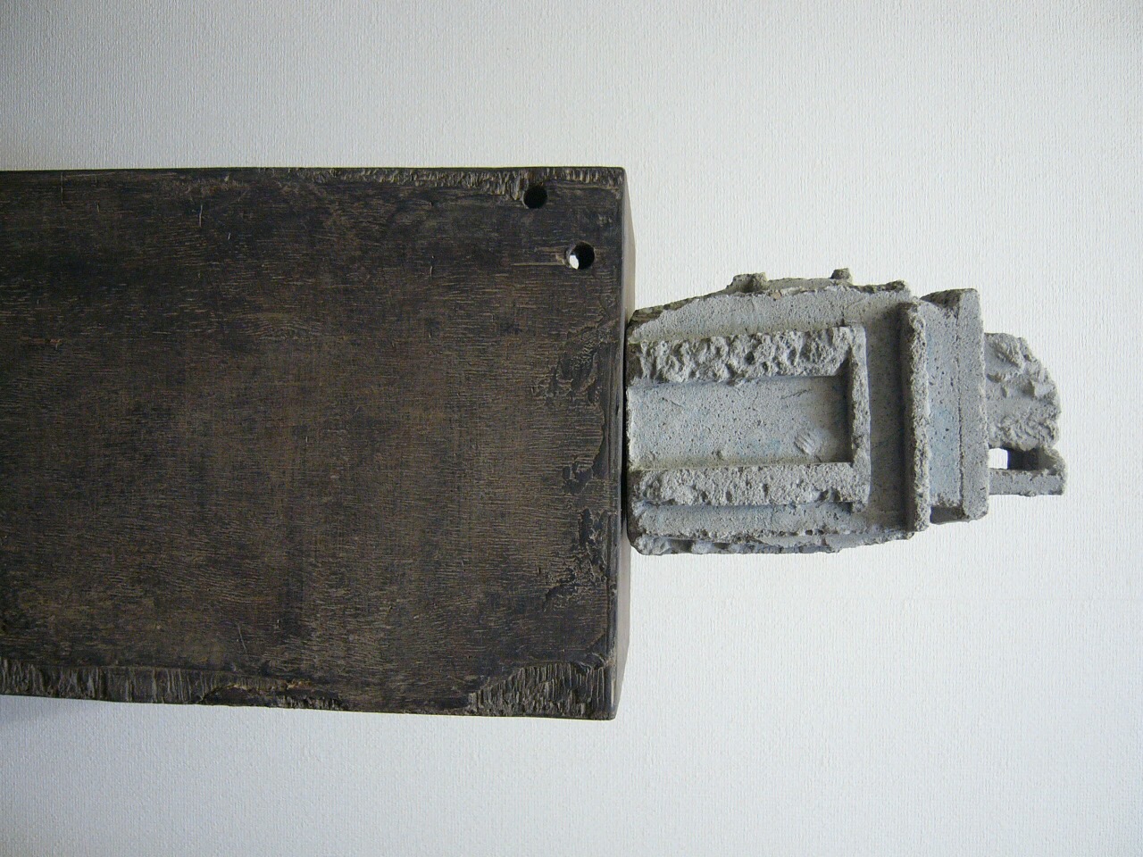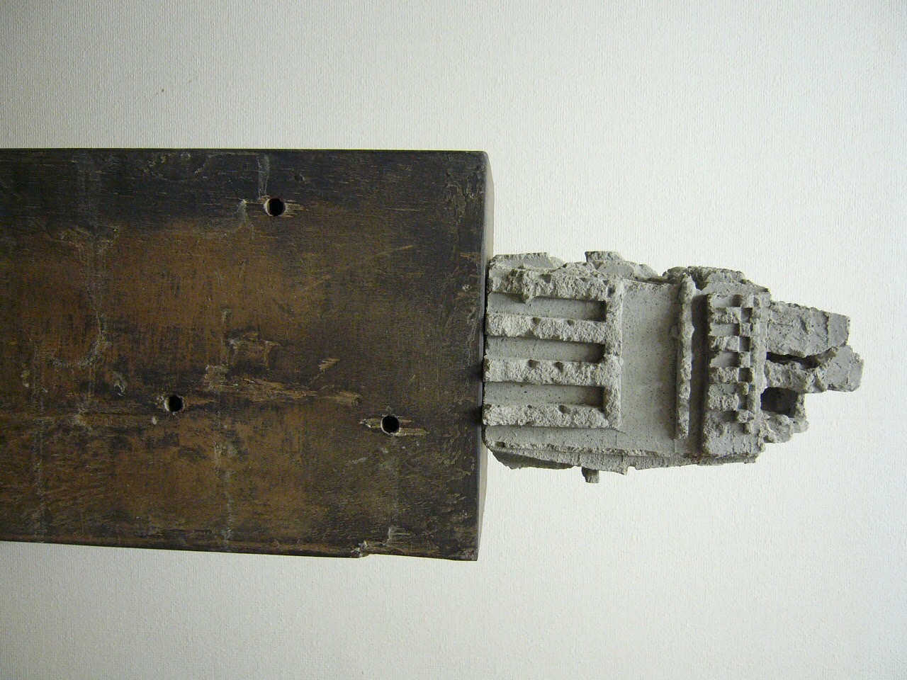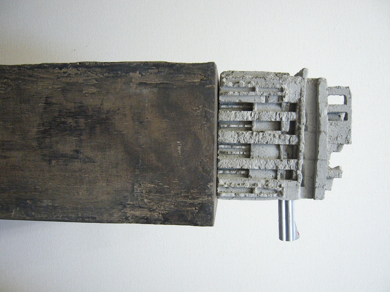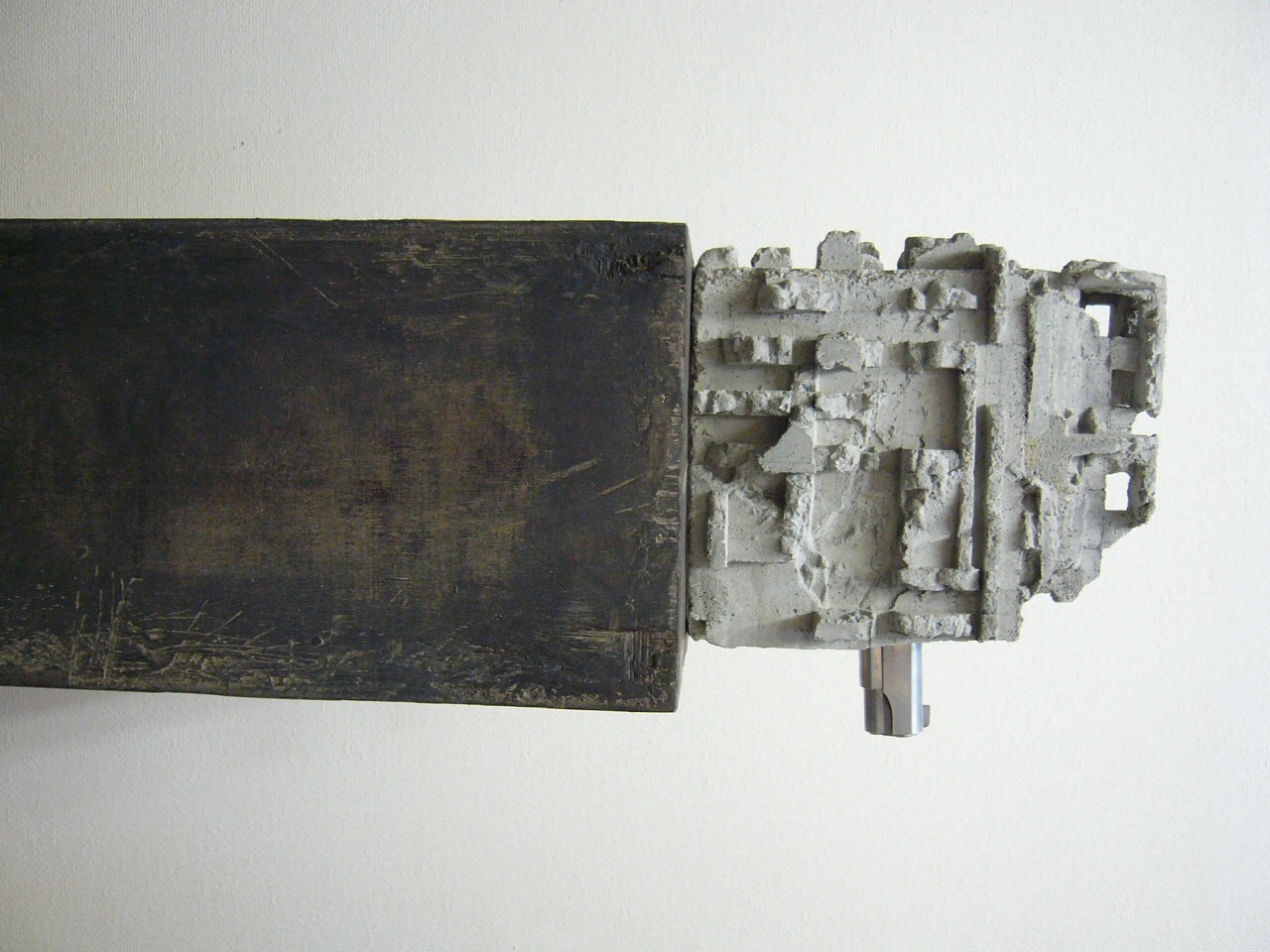 モデルガンショップで中古の銃をしこたま買い込んだ。ゼロ戦を埋めた作品のように、銃を戦場の廃墟のように形づくったモルタルの中に銃口だけ残して埋没させた。それを載せる台は漆で塗られた木の箱である。漆は本来、傷ついた樹木の防衛をする。そのからだを守り傷口をふさぐ。箱に載せられた銃を含んだモルタルの塊、その全体像はなにか戦闘的なロボットのように見えるはずである。その数は、現在私が勤める高等学校の1クラスの人数である。銃口の高さは、生徒が座る顔の高さになっている。それを正面からみると不気味な表情が備わっているように見えると思う。引金はモルタルで固められているので銃の機能は成さないが、銃口を正面から突きつけられては気持ちのいいものではないだろう。その前で、何を感じ、思考するか、それが楽しみである。そして背後に周った時にはどうか? 土台の箱は銃弾の貯金箱になっている。銃弾が貫通した様な穴から未使用の銃弾を入れられるようにした。銃社会アメリカの適切な場所に置いてもらい銃弾貯金箱として使って頂くことを願う。銃弾で一杯になったら作品ごと爆破すれば良い。すぐに思いつくと思うが、タイトルのkyodanは教壇、凶弾、教団がかけられている。