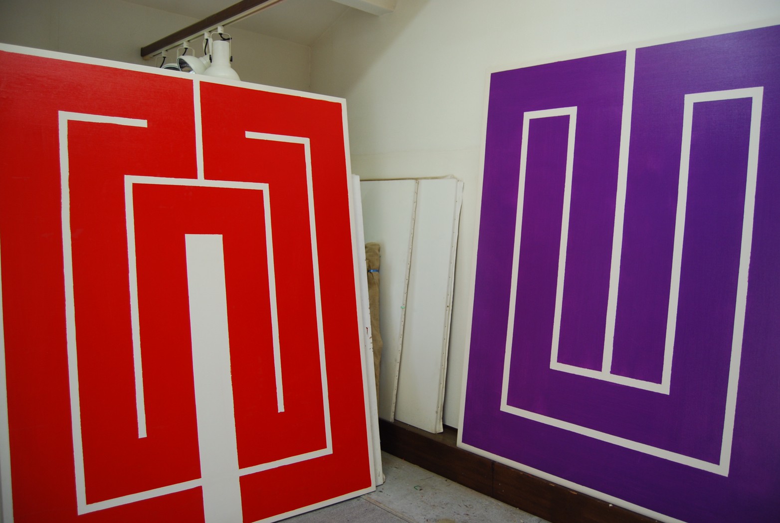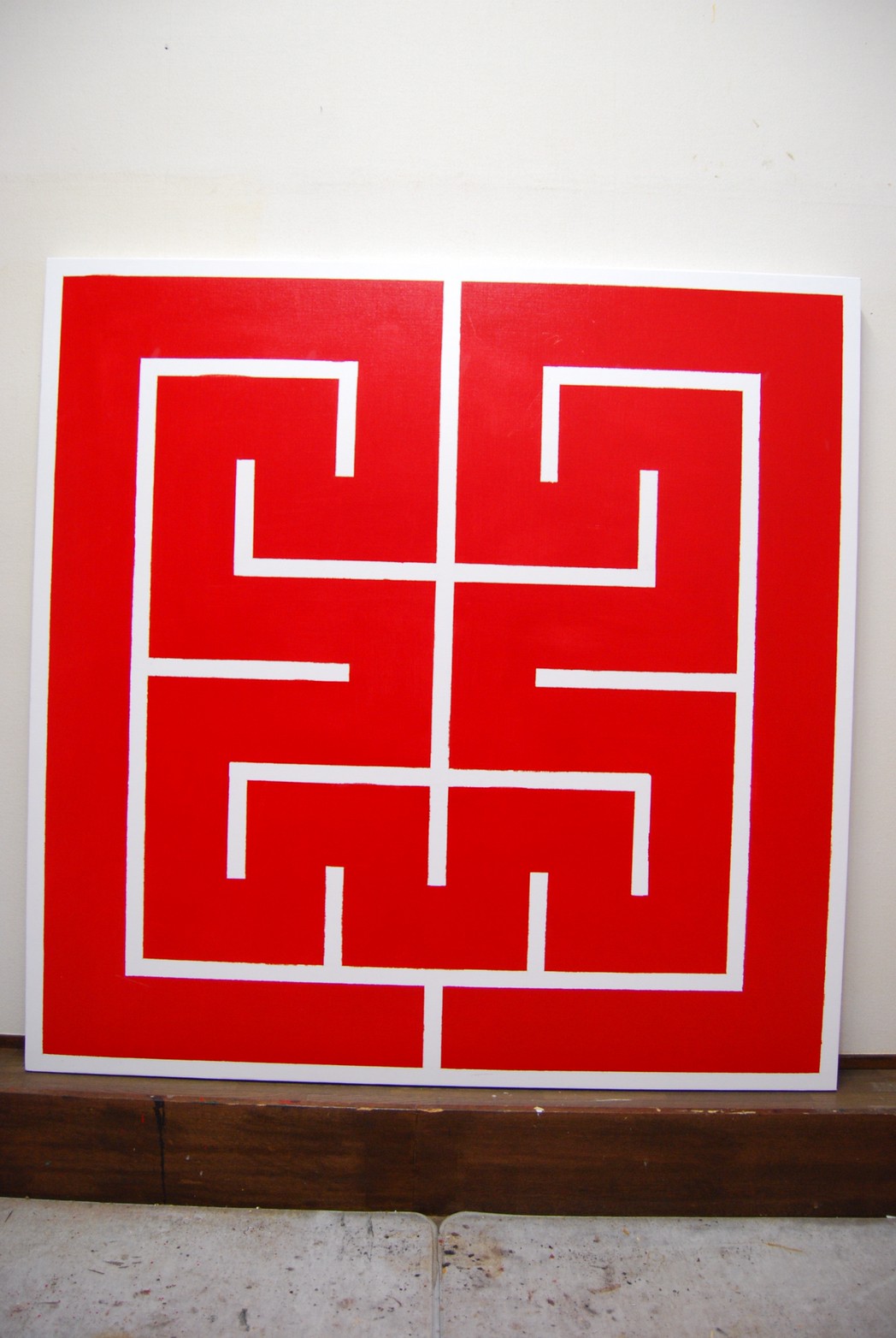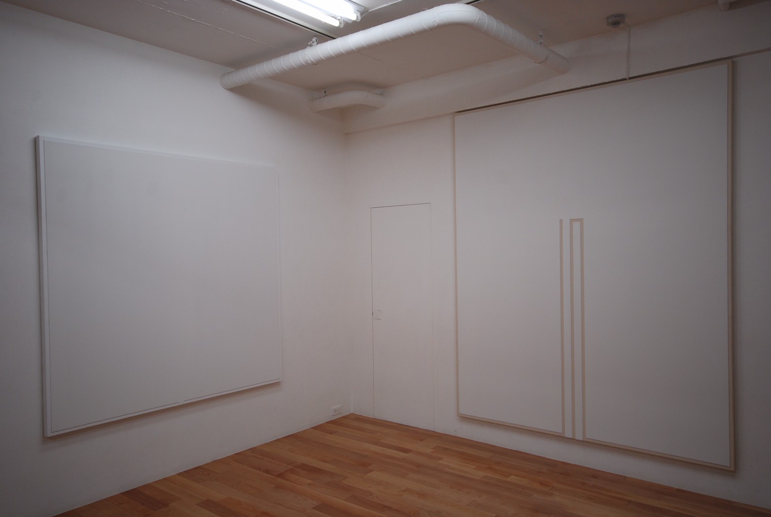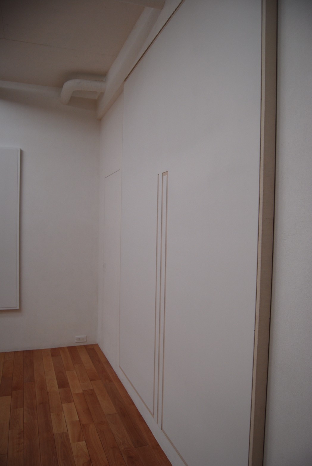 「隠され見えぬものを、観じ思い見る」という概念を持って、今回次の2つの手がかりを基に絵画表現を試みる。1つは、「障景」という庭園の造営手法。先にある景色を見せぬよう、坂道や回廊など遮るものをわざわざ造り、先にある景色に期待を抱かせるという手法。もう1つは山門などの両脇にあり、静かに対峙する「阿吽の像」。阿は始まり吽は終わりを意味し、世の全てのことはこの間にあるという考え方。像が置いてある向こうの世界は「生あるもの」の始まりと終わりを超越した世界であるという象徴でもあるらしい。この2つの手がかりを基に、向かい合う絵画と絵画の間の空間で、思考領域の刺激と絵画の可能性を探求する。