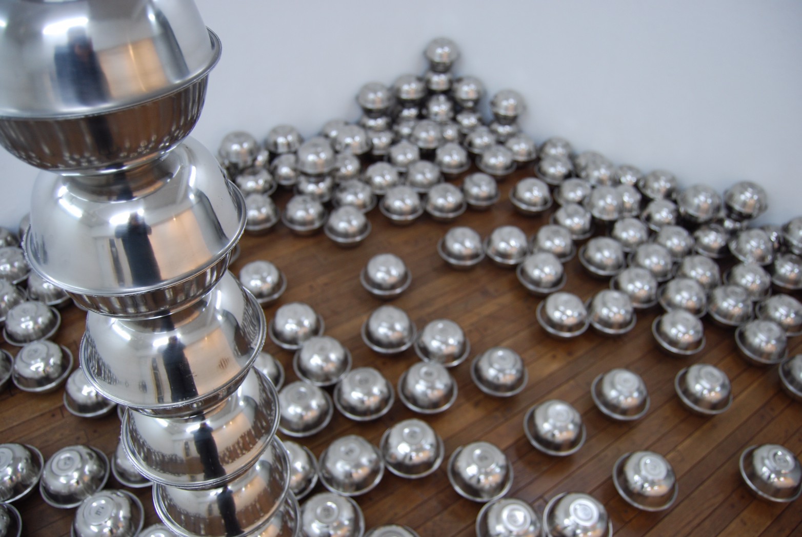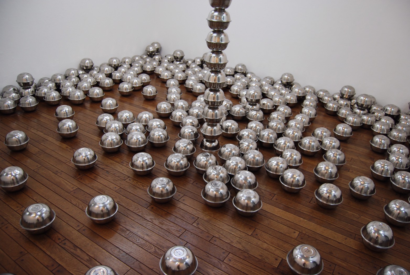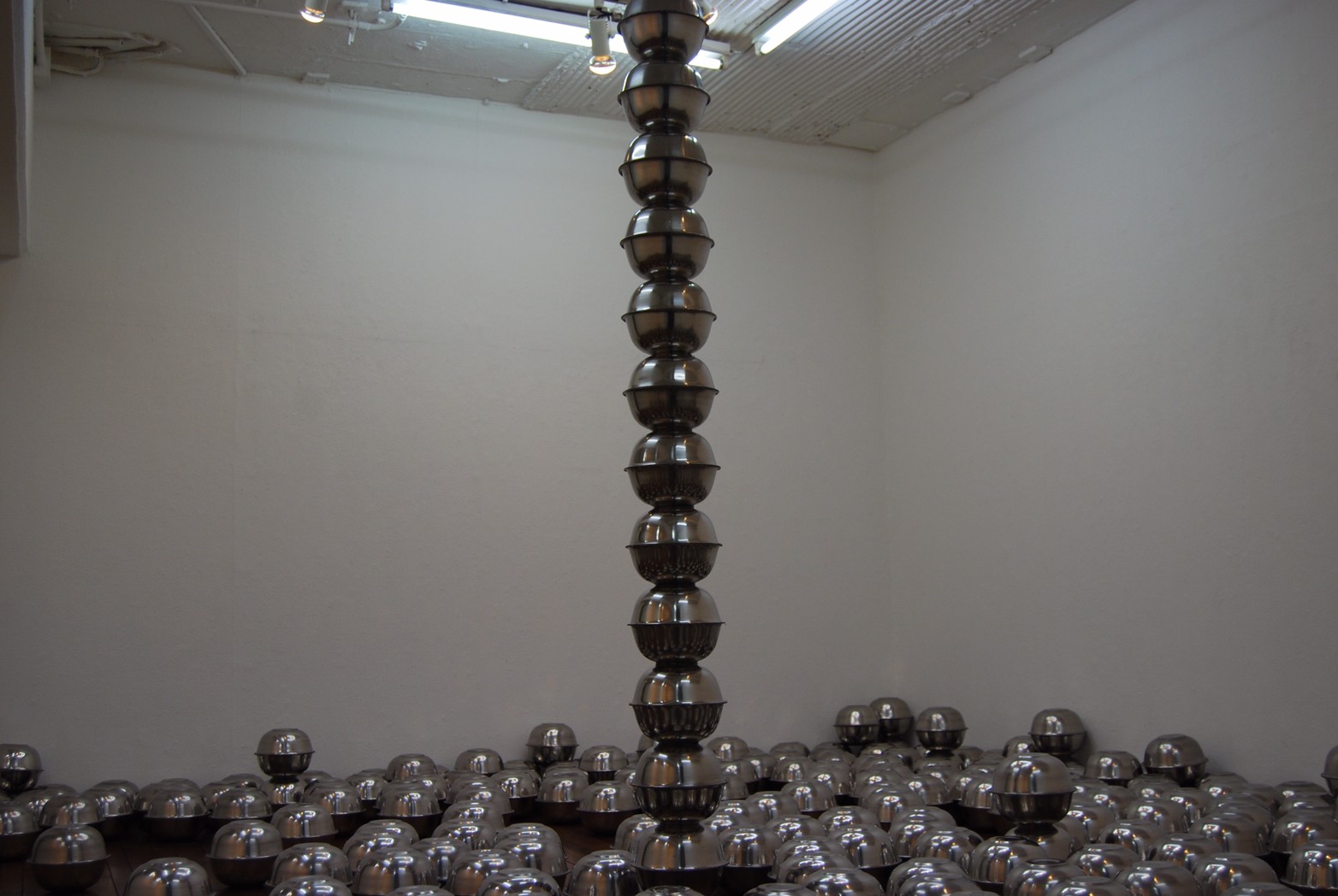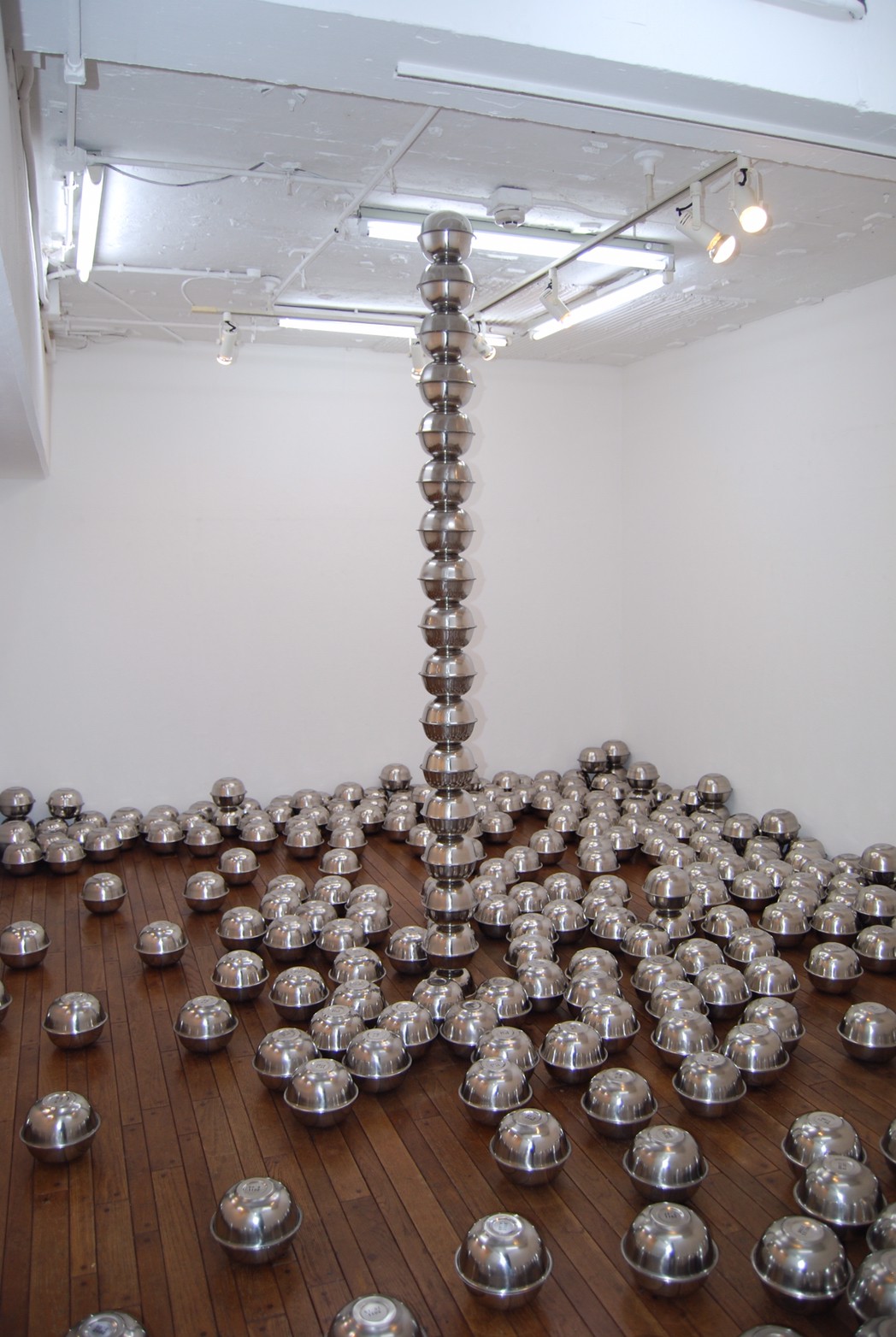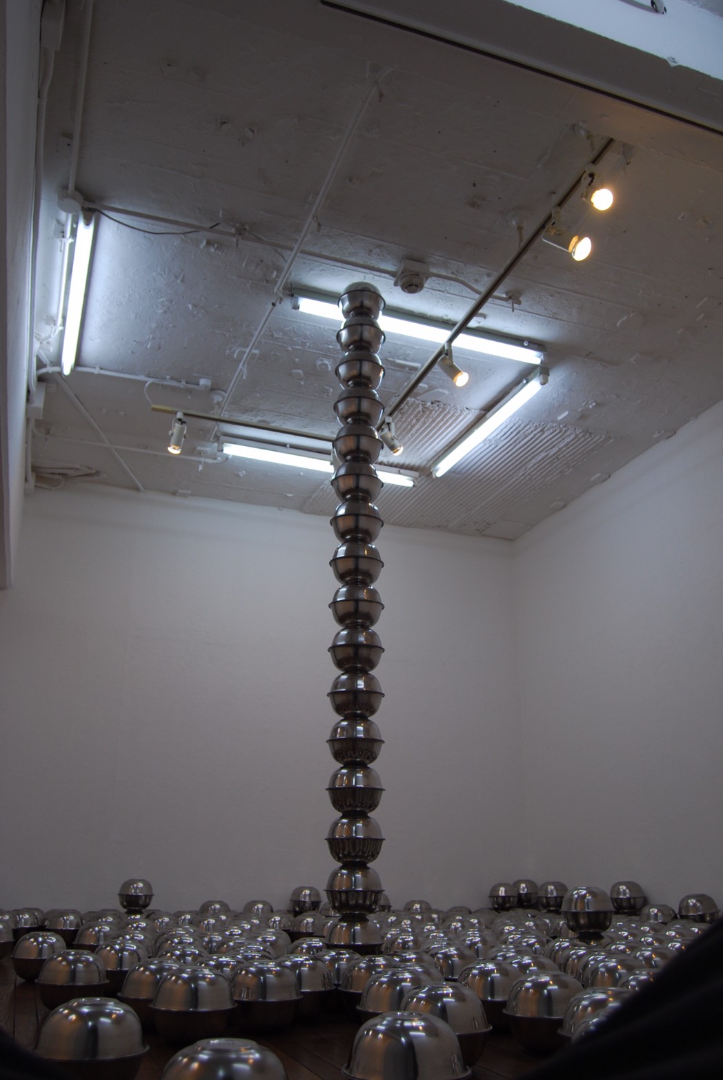 この作品制作は東日本大震災から約2週間後の2011・3・24から始めました。外気を2012・3・11まで、新聞の切り抜きと共に毎日、ボールの中に収集するというもので、いわば外気のタイムカプセルです。外気収集の場所は福島県(南相馬市)を含む、私が生活した場所です。 作品配置は、ギャラリー中央の高い所から床の上に、353個の日付が記されたどんぐりをばら撒き、同じ日付のAIRボールと交換する方法あ-で行いました。 アクションにもとづいたインスタレーションを通して堅固で厳格な形態の解体とシリアル(集合を構成する元、個々)な構造の崩壊を目指しました。