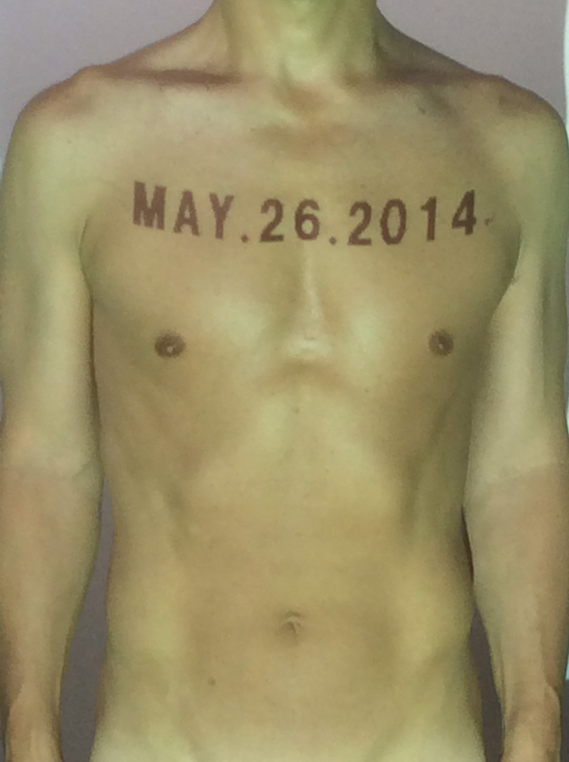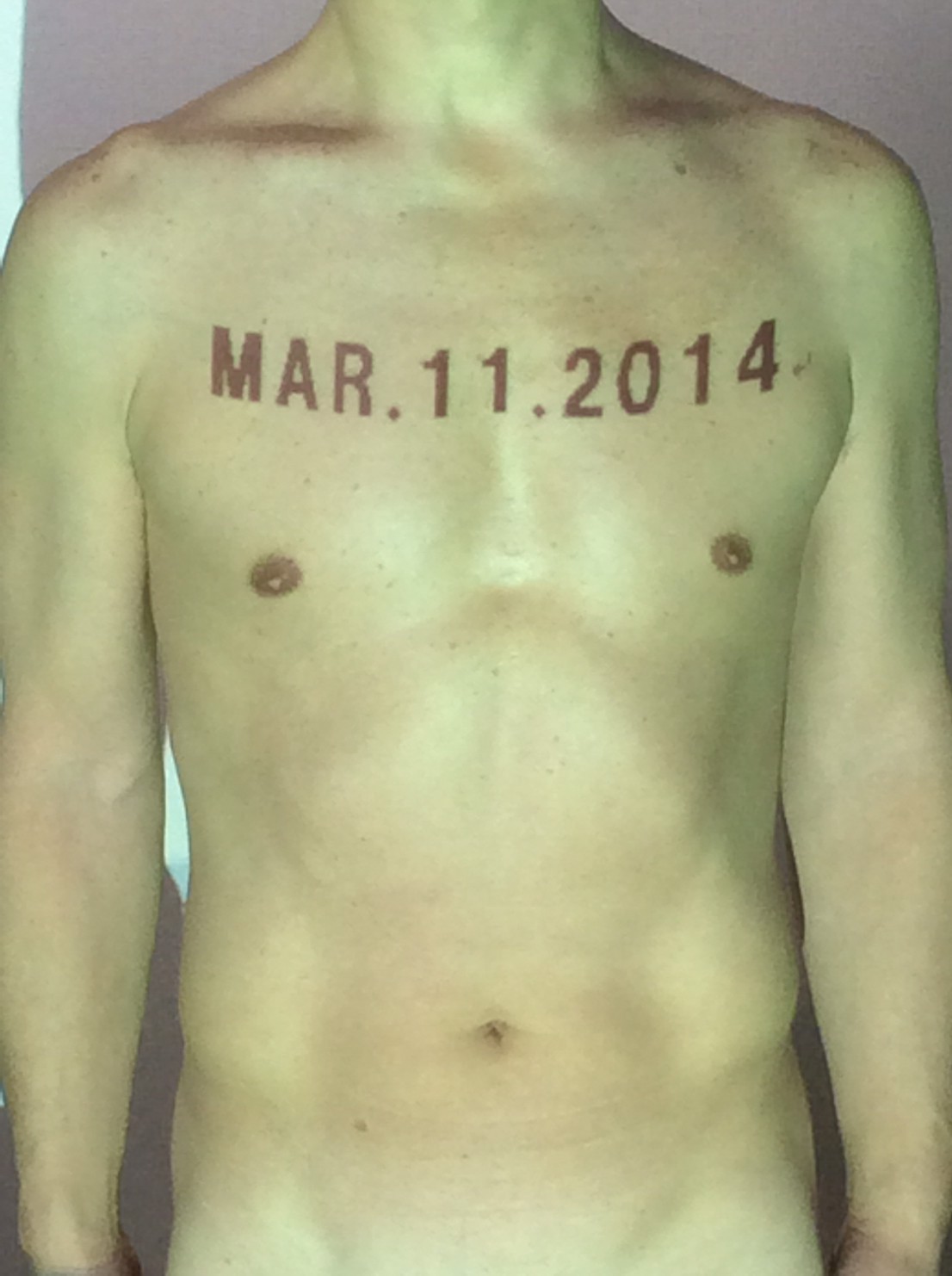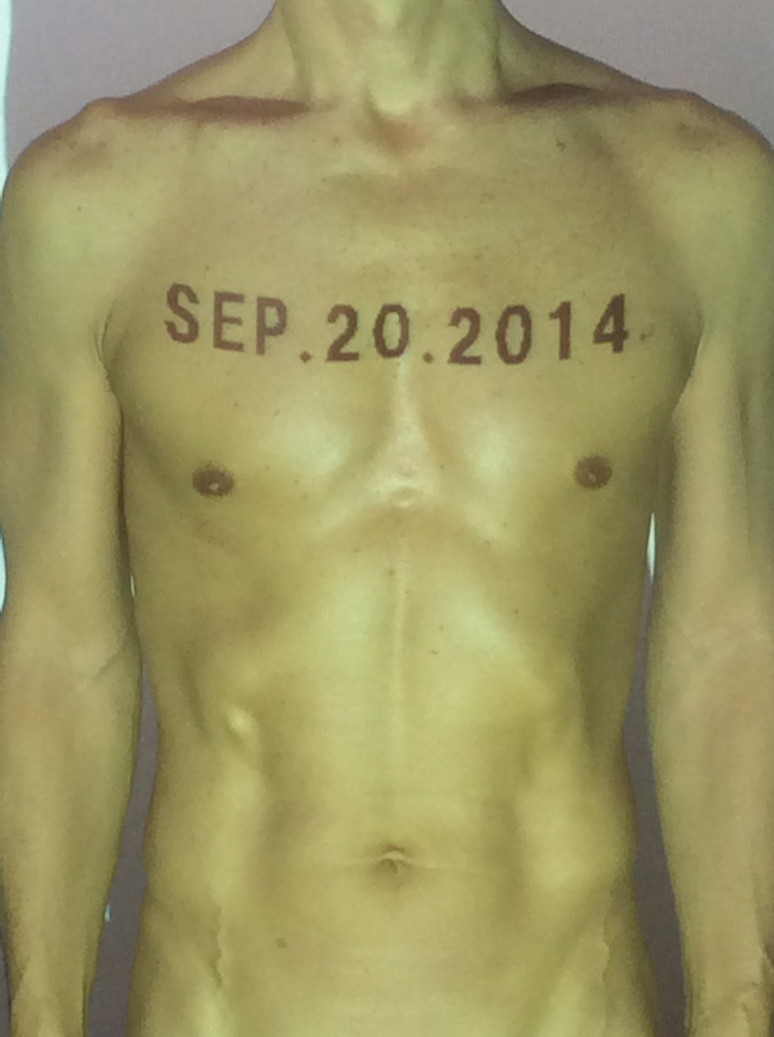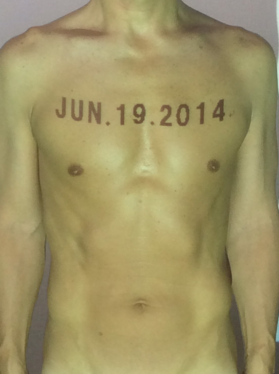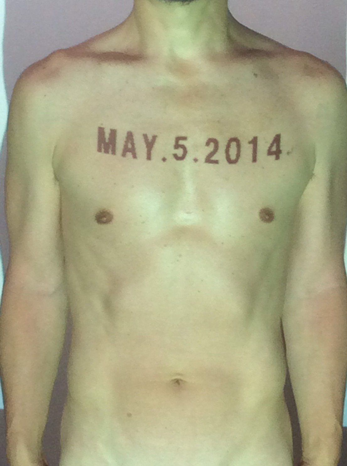 伊勢神宮に式年遷宮という20年に一度の儀式がある。常に神の宿る体(社)を若く保つのが目的だが、その町の活性化と儀式や建築技術の継承なども図られている。このことを私自身の体に移し替えて表現している。1年を通して鍛えた身体の変化はYoutubeにアップした。作家の身体 表現する身体 リニューアルボディー 表現する新しい身体(The new body to express) 身体と絵画 The body and pictures 時間的連続性の入れ替え. 身体は時間The body is time 時間に逆らう身体The body opposing time 身体は時間に逆らうThe body opposes time.過ぎ去る身体The body passing away