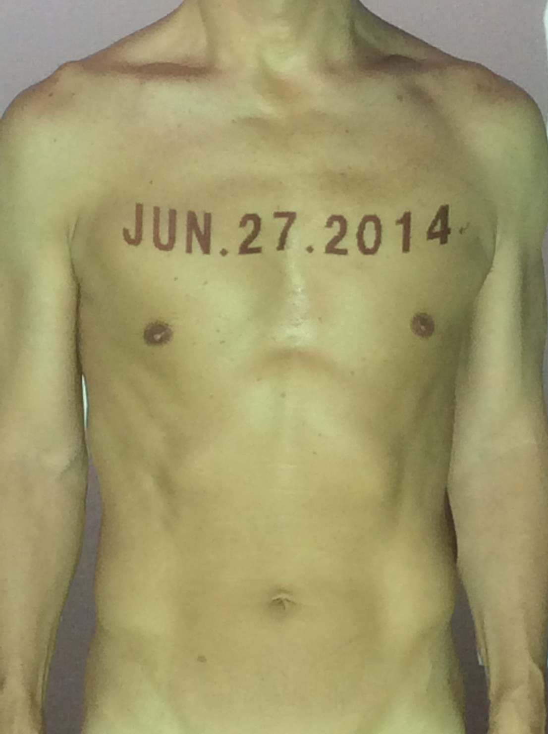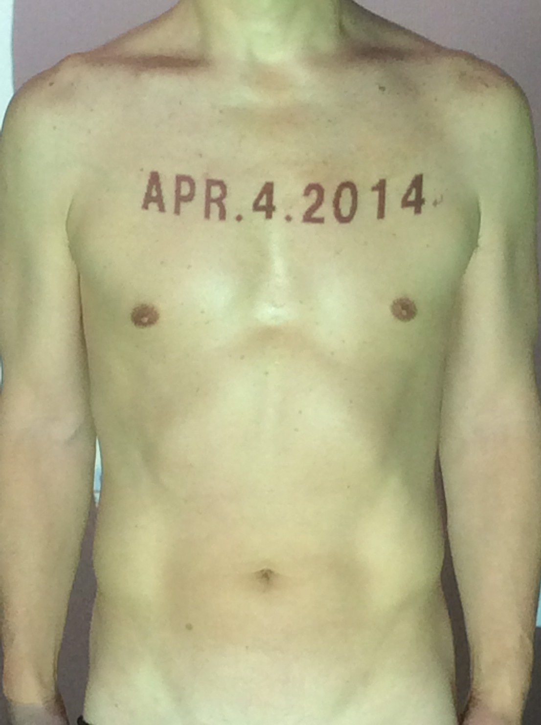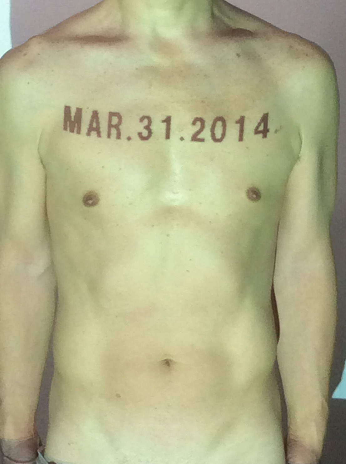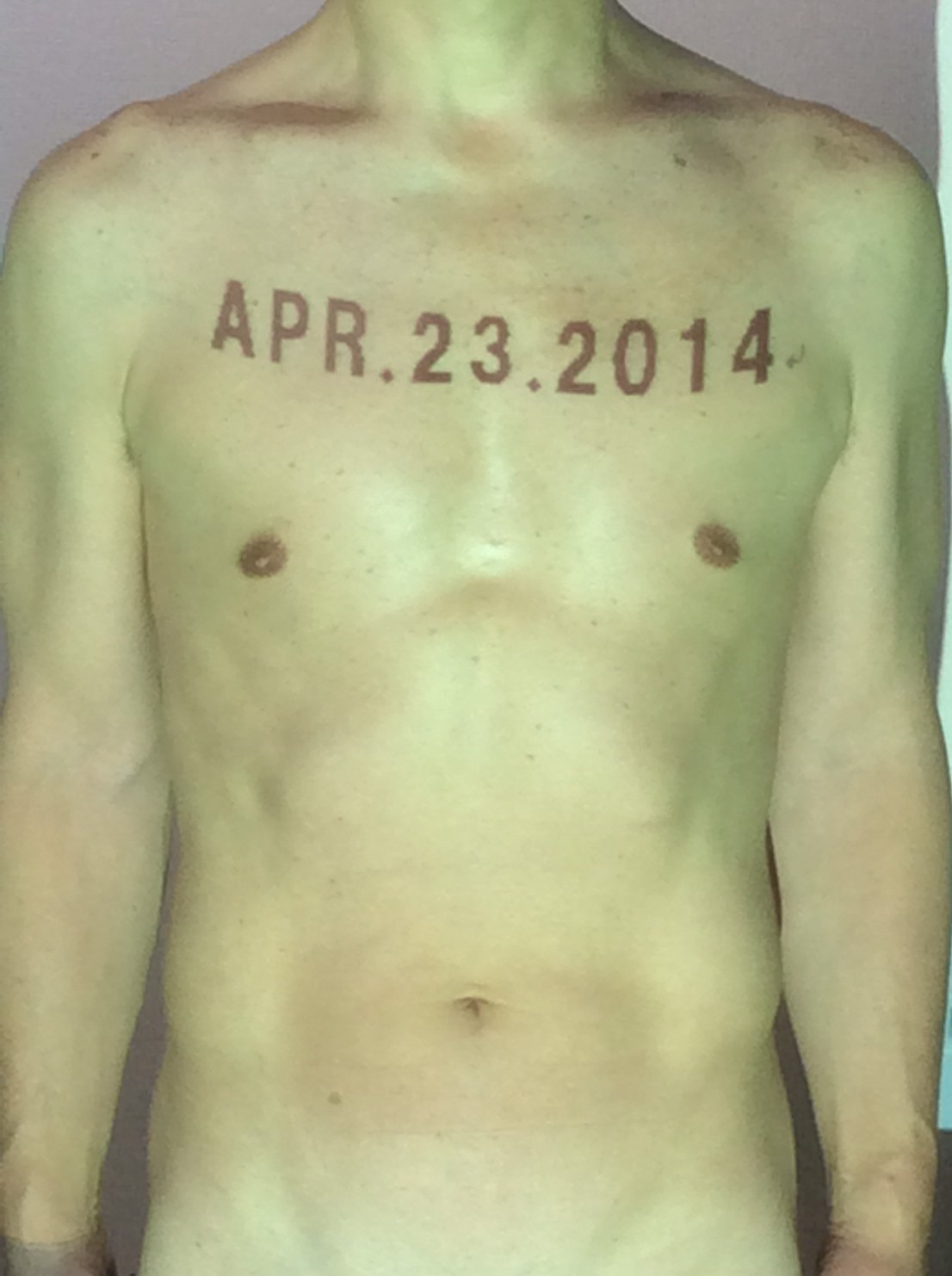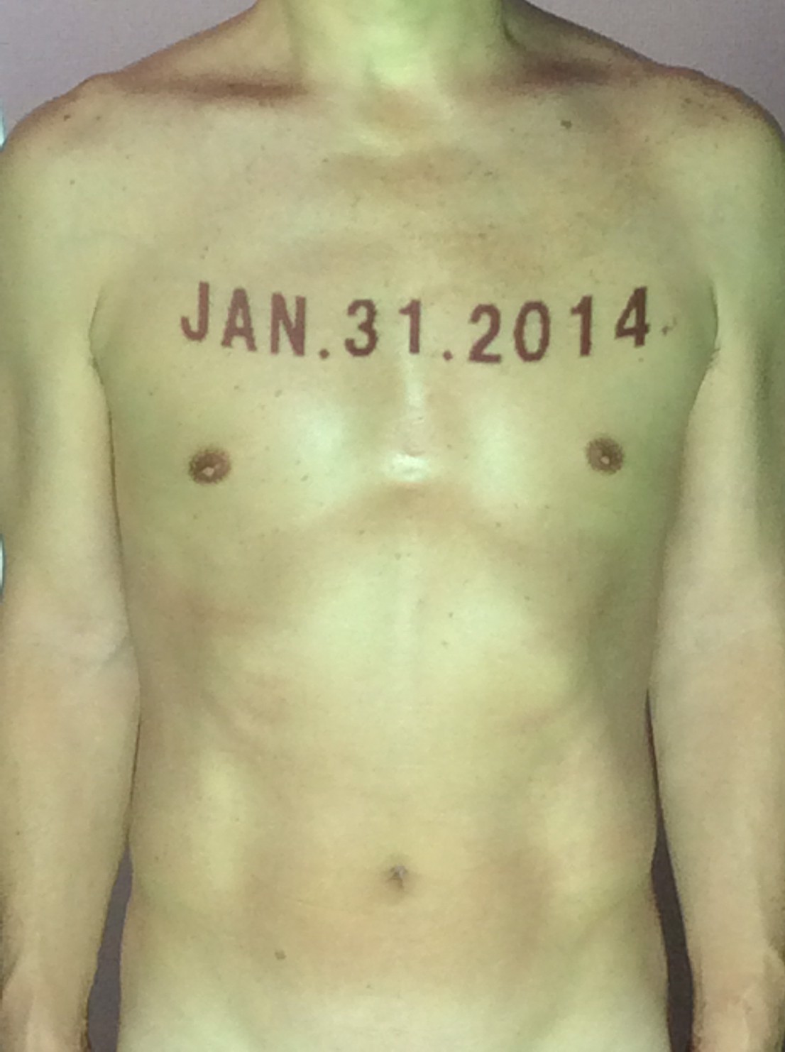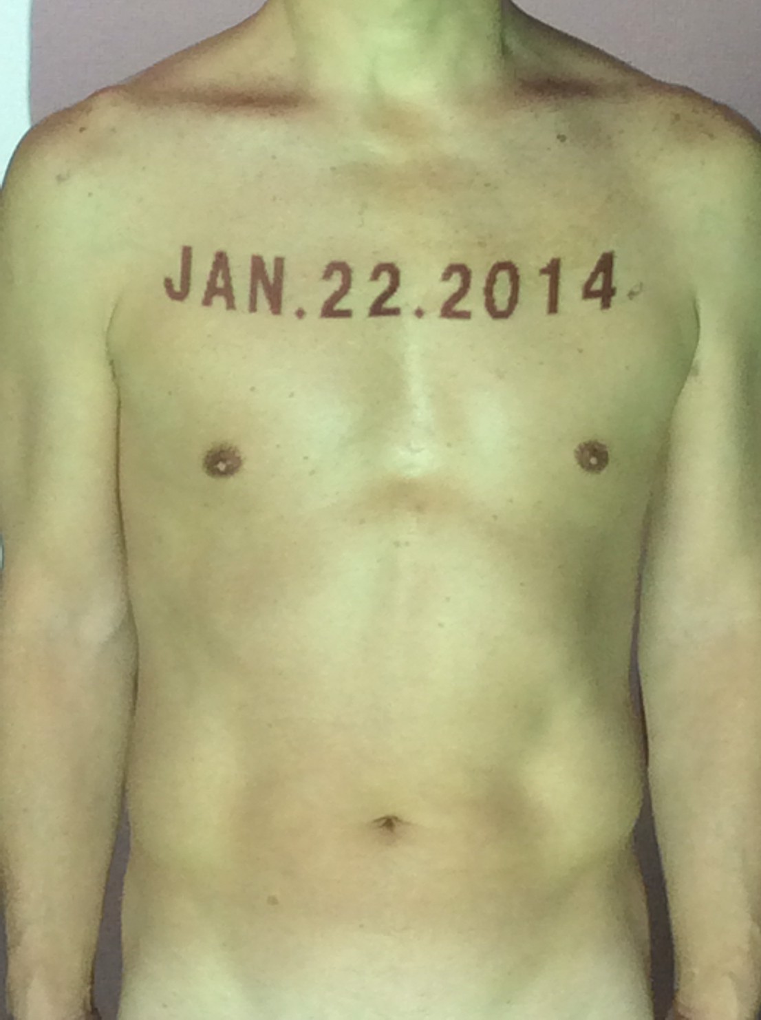 伊勢神宮に式年遷宮という20年に一度の儀式がある。常に神の宿る体(社)を若く保つのが目的だが、その町の活性化と儀式や建築技術の継承なども図られている。このことを私自身の体に移し替えて表現している。1年を通して鍛えた身体の変化はYoutubeにアップした。作家の身体 表現する身体 リニューアルボディー 表現する新しい身体(The new body to express) 身体と絵画 The body and pictures 時間的連続性の入れ替え. 身体は時間The body is time 時間に逆らう身体The body opposing time 身体は時間に逆らうThe body opposes time.過ぎ去る身体The body passing away