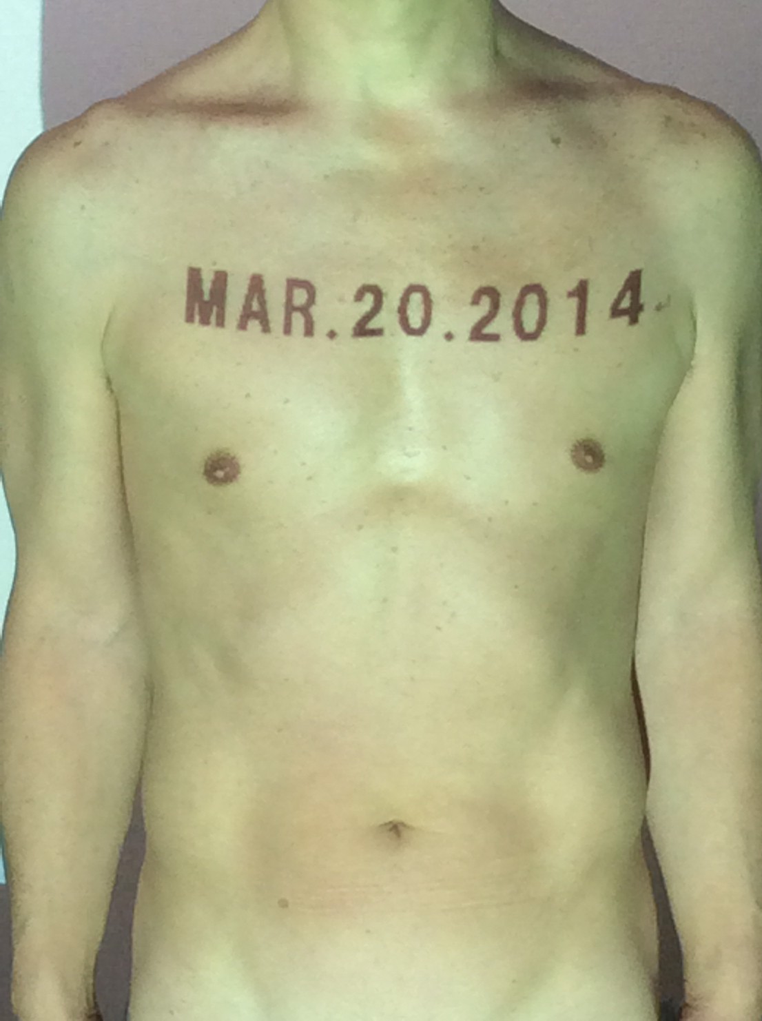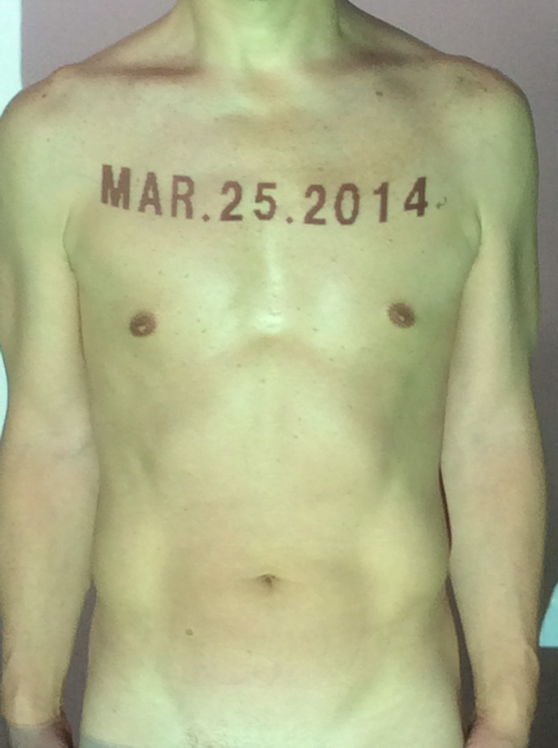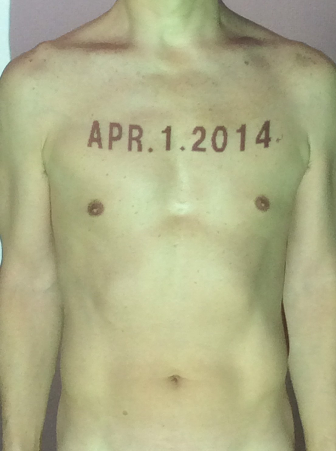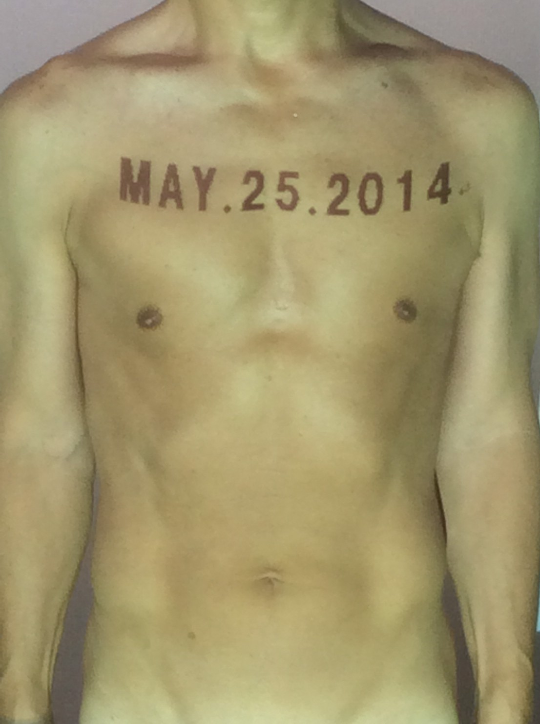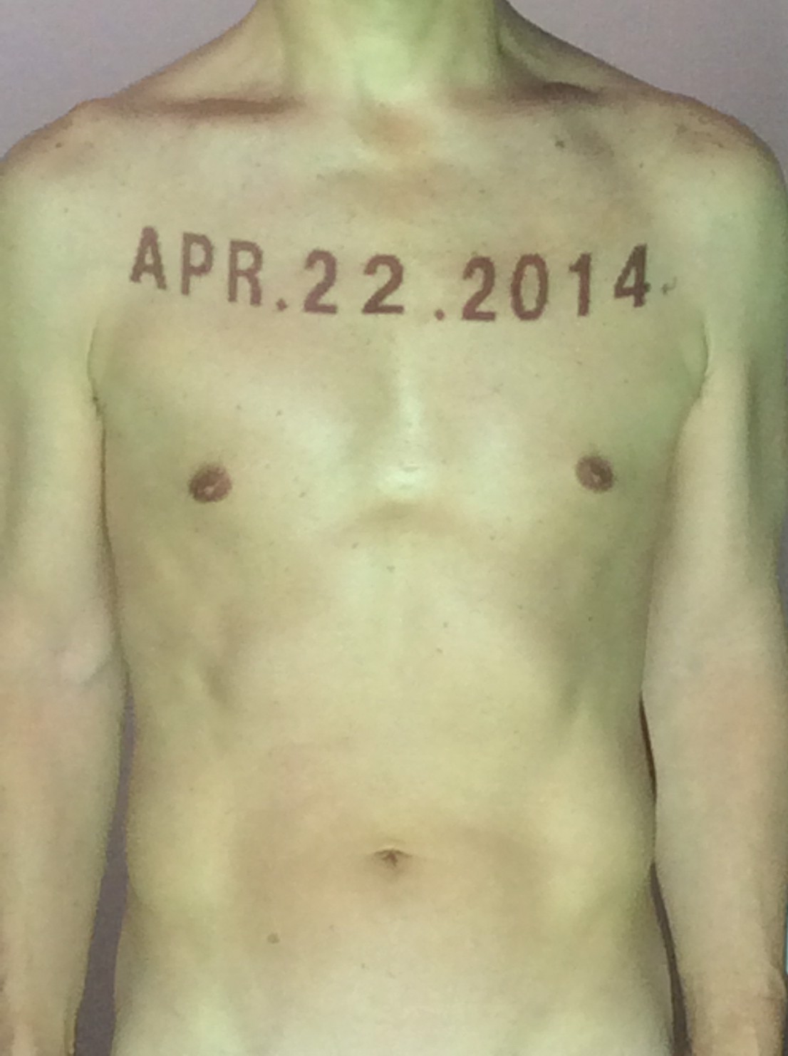 伊勢神宮に式年遷宮という20年に一度の儀式がある。常に神の宿る体(社)を若く保つのが目的だが、その町の活性化と儀式や建築技術の継承なども図られている。このことを私自身の体に移し替えて表現している。1年を通して鍛えた身体の変化はYoutubeにアップした。作家の身体 表現する身体 リニューアルボディー 表現する新しい身体(The new body to express) 身体と絵画 The body and pictures 時間的連続性の入れ替え. 身体は時間The body is time 時間に逆らう身体The body opposing time 身体は時間に逆らうThe body opposes time.過ぎ去る身体The body passing away