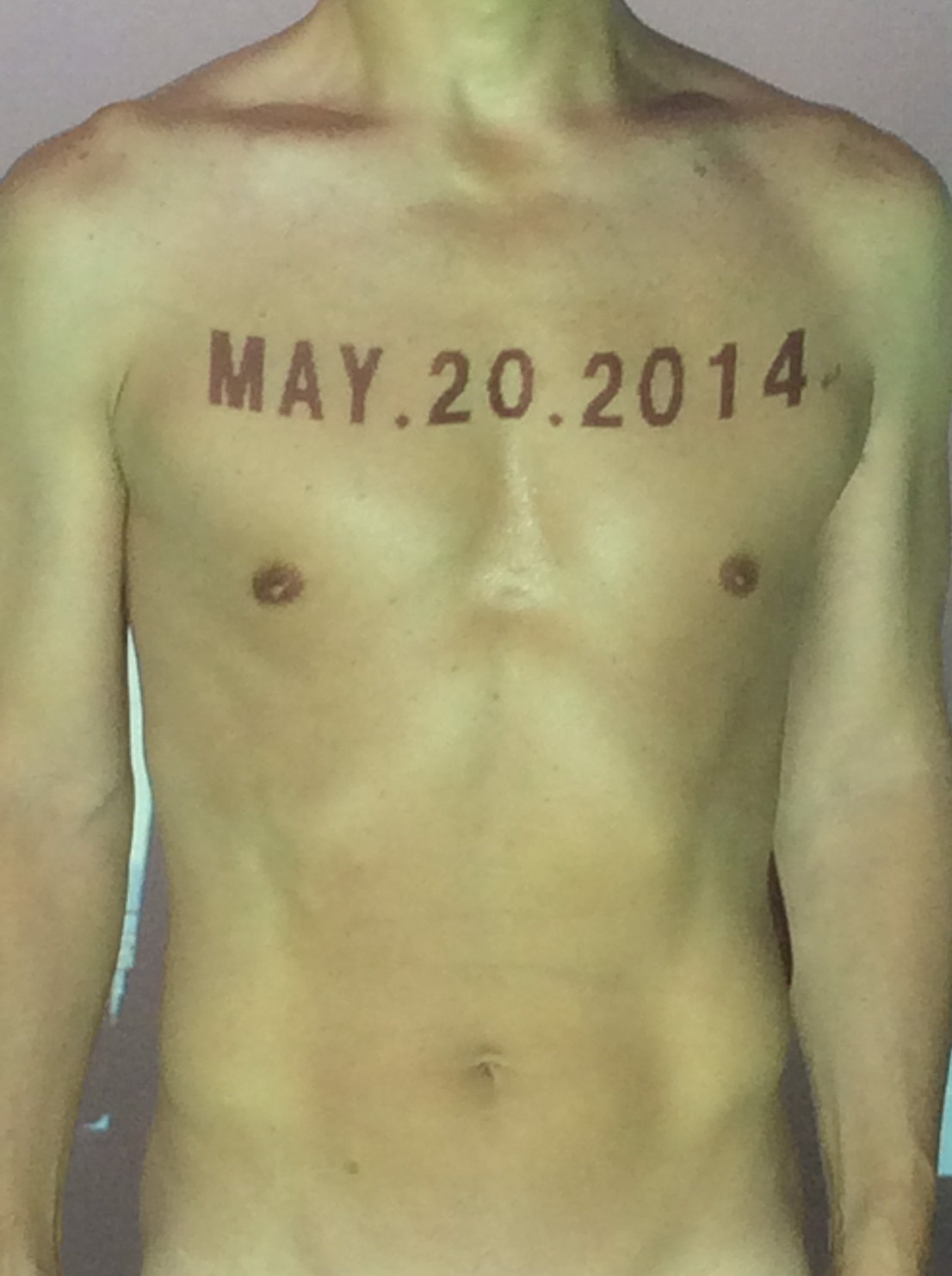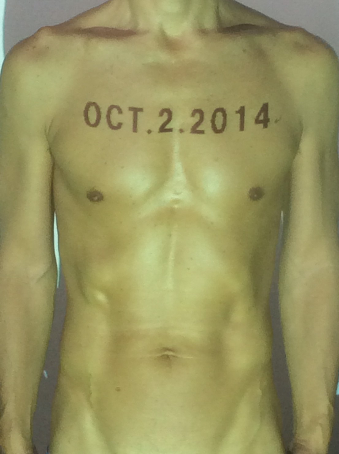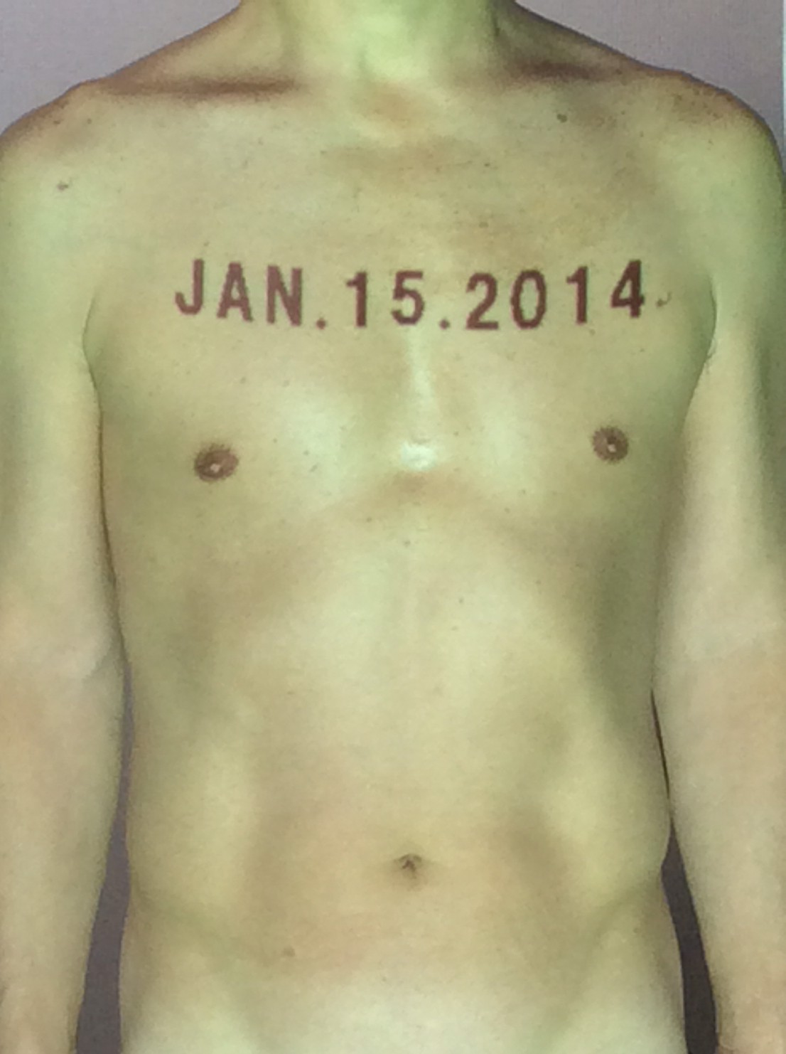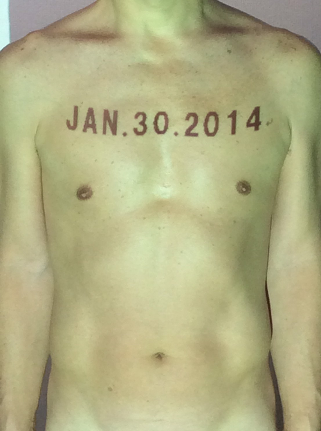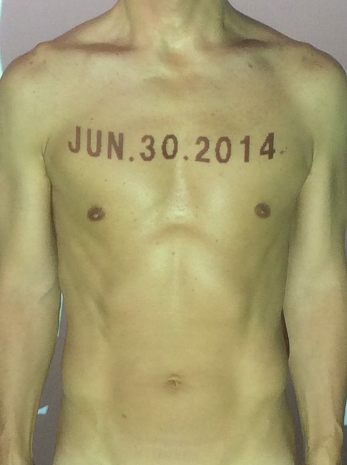 伊勢神宮に式年遷宮という20年に一度の儀式がある。常に神の宿る体(社)を若く保つのが目的だが、その町の活性化と儀式や建築技術の継承なども図られている。このことを私自身の体に移し替えて表現している。1年を通して鍛えた身体の変化はYoutubeにアップした。作家の身体 表現する身体 リニューアルボディー 表現する新しい身体(The new body to express) 身体と絵画 The body and pictures 時間的連続性の入れ替え. 身体は時間The body is time 時間に逆らう身体The body opposing time 身体は時間に逆らうThe body opposes time.過ぎ去る身体The body passing away