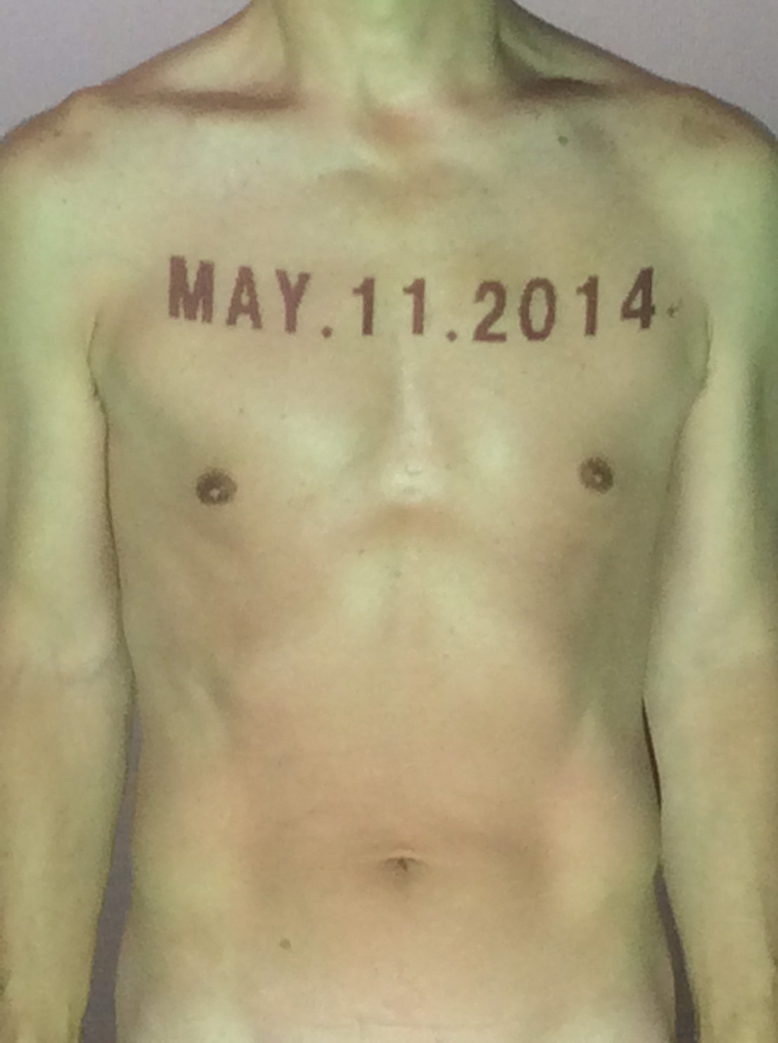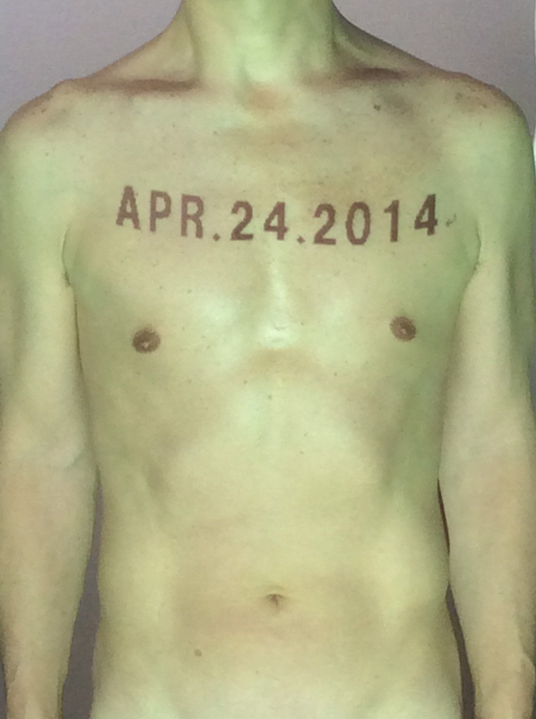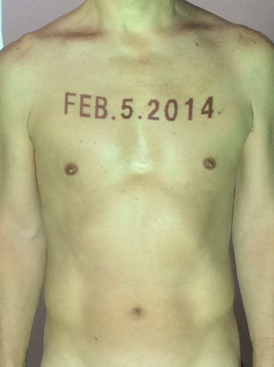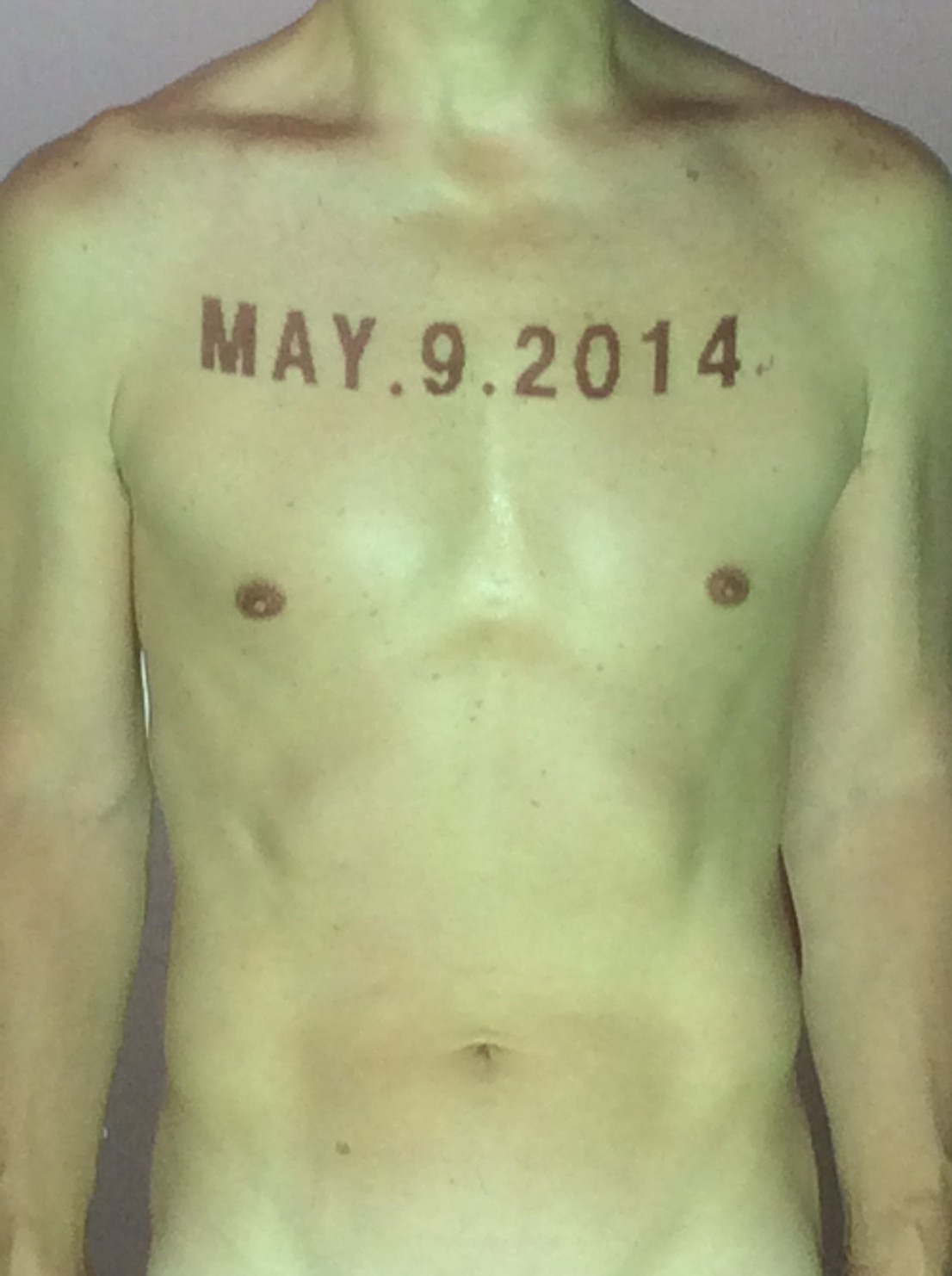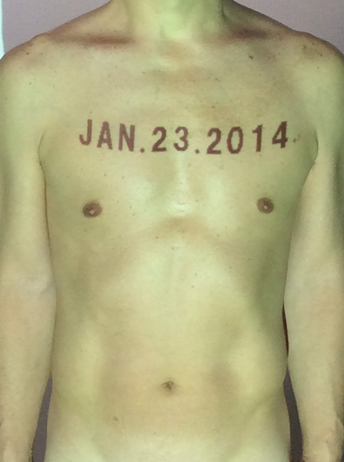 伊勢神宮に式年遷宮という20年に一度の儀式がある。常に神の宿る体(社)を若く保つのが目的だが、その町の活性化と儀式や建築技術の継承なども図られている。このことを私自身の体に移し替えて表現している。1年を通して鍛えた身体の変化はYoutubeにアップした。作家の身体 表現する身体 リニューアルボディー 表現する新しい身体(The new body to express) 身体と絵画 The body and pictures 時間的連続性の入れ替え. 身体は時間The body is time 時間に逆らう身体The body opposing time 身体は時間に逆らうThe body opposes time.過ぎ去る身体The body passing away