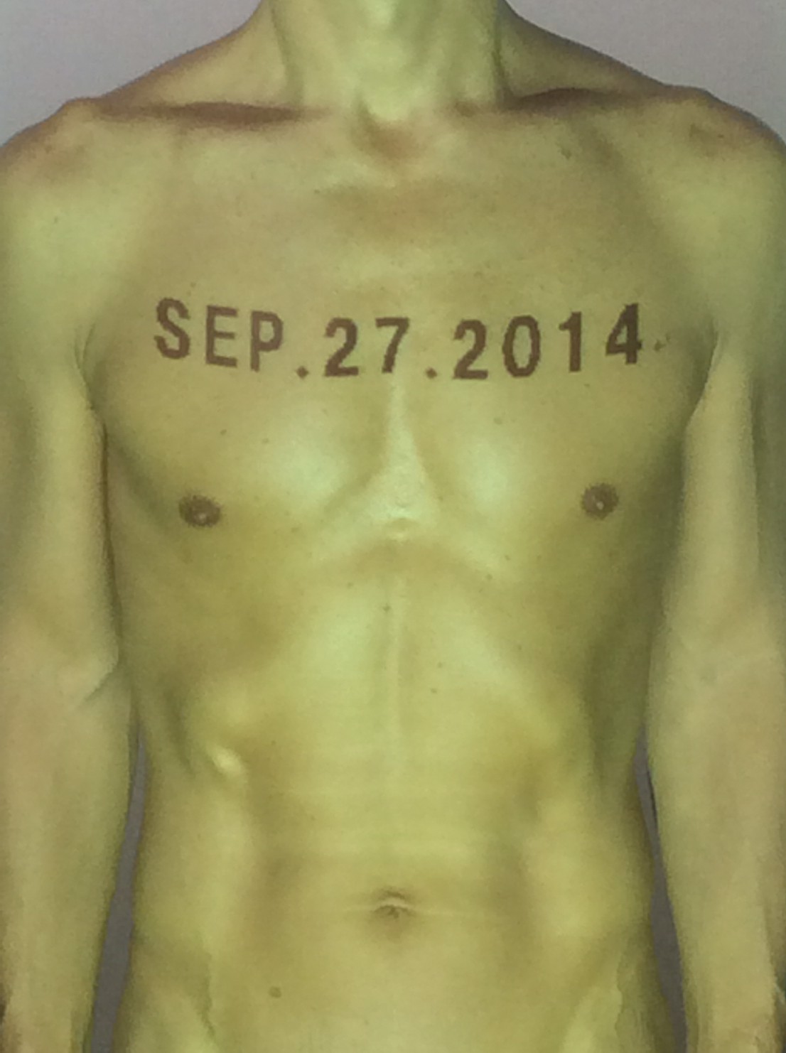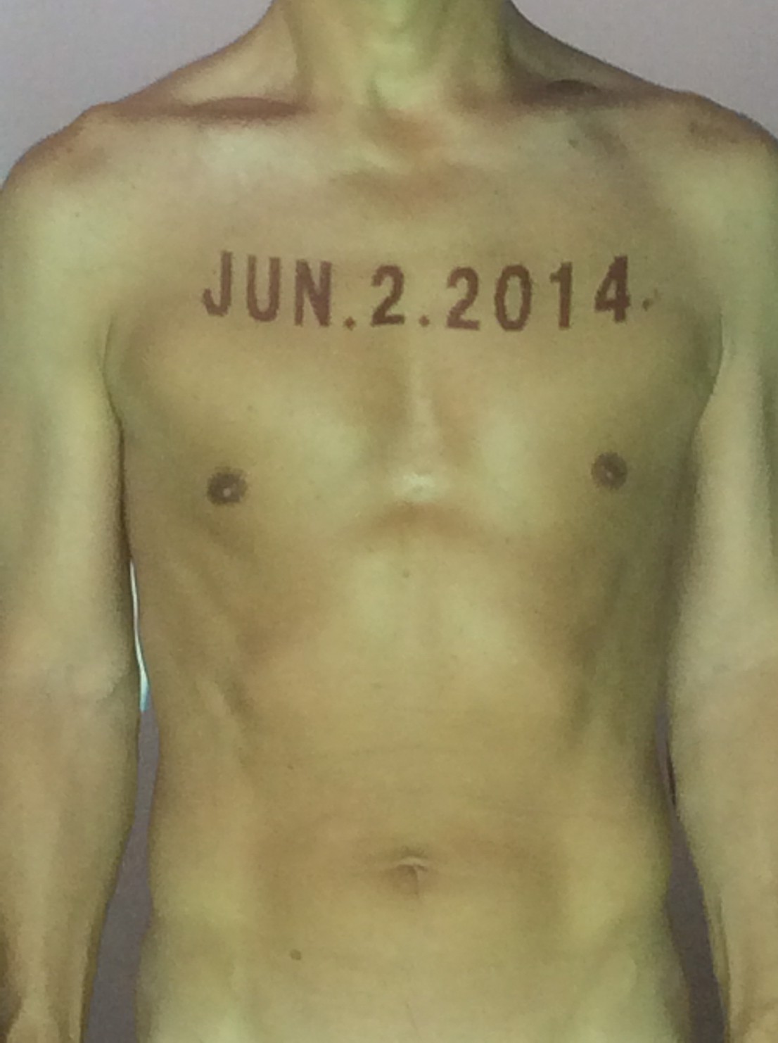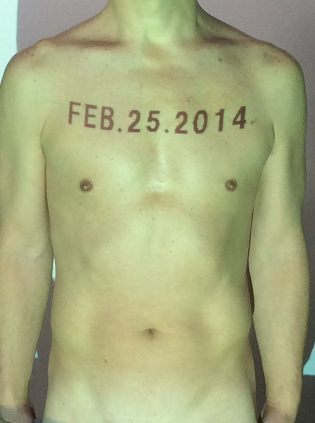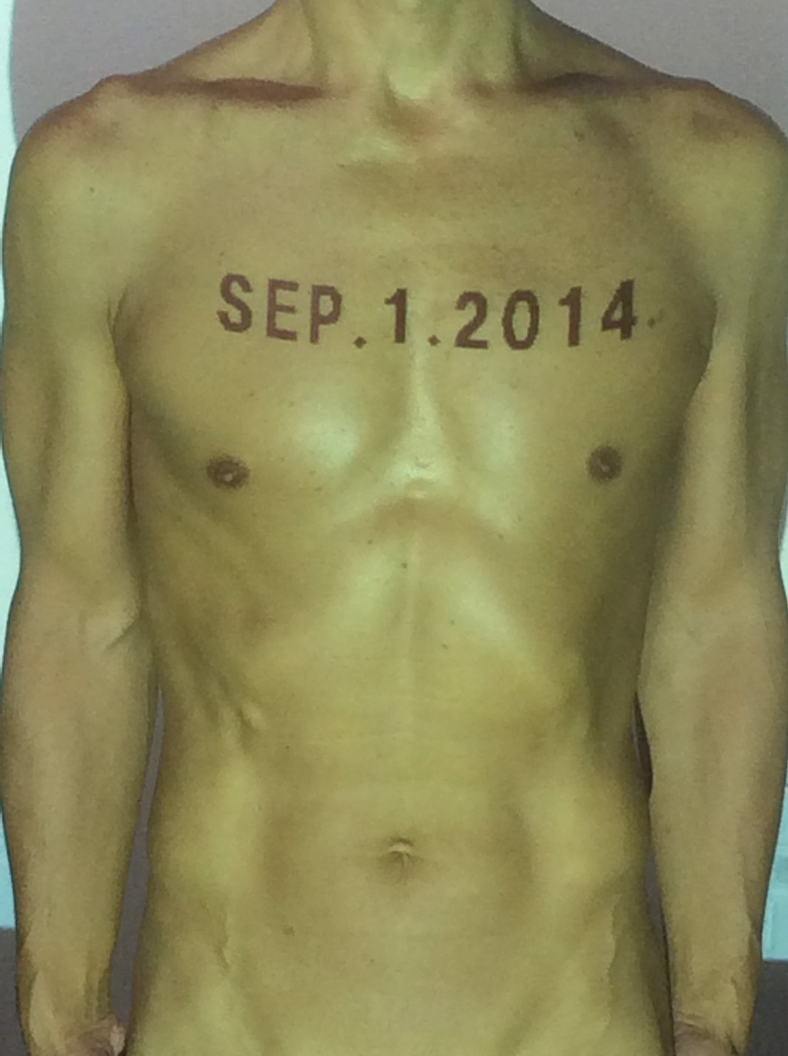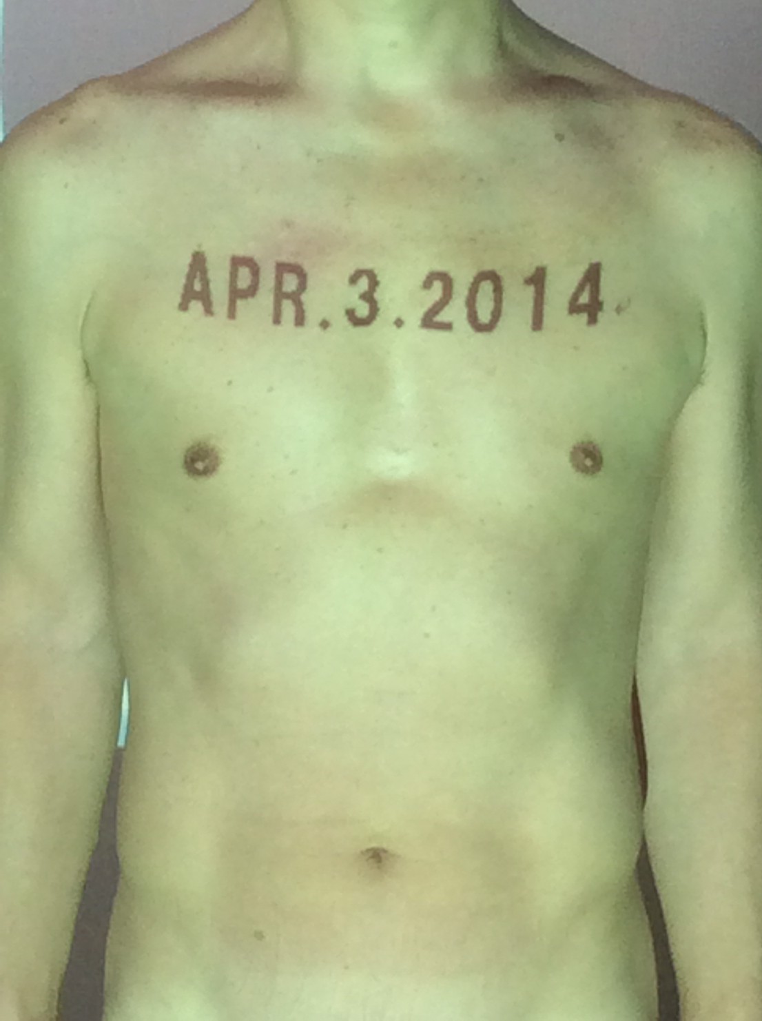伊勢神宮に式年遷宮という20年に一度の儀式がある。常に神の宿る体(社)を若く保つのが目的だが、その町の活性化と儀式や建築技術の継承なども図られている。このことを私自身の体に移し替えて表現している。1年を通して鍛えた身体の変化はYoutubeにアップした。作家の身体 表現する身体 リニューアルボディー 表現する新しい身体(The new body to express) 身体と絵画 The body and pictures 時間的連続性の入れ替え. 身体は時間The body is time 時間に逆らう身体The body opposing time 身体は時間に逆らうThe body opposes time.過ぎ去る身体The body passing away