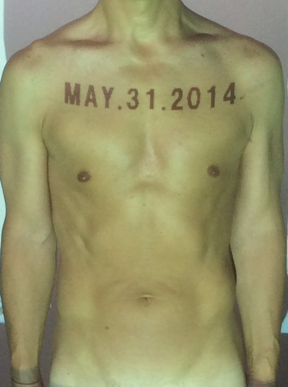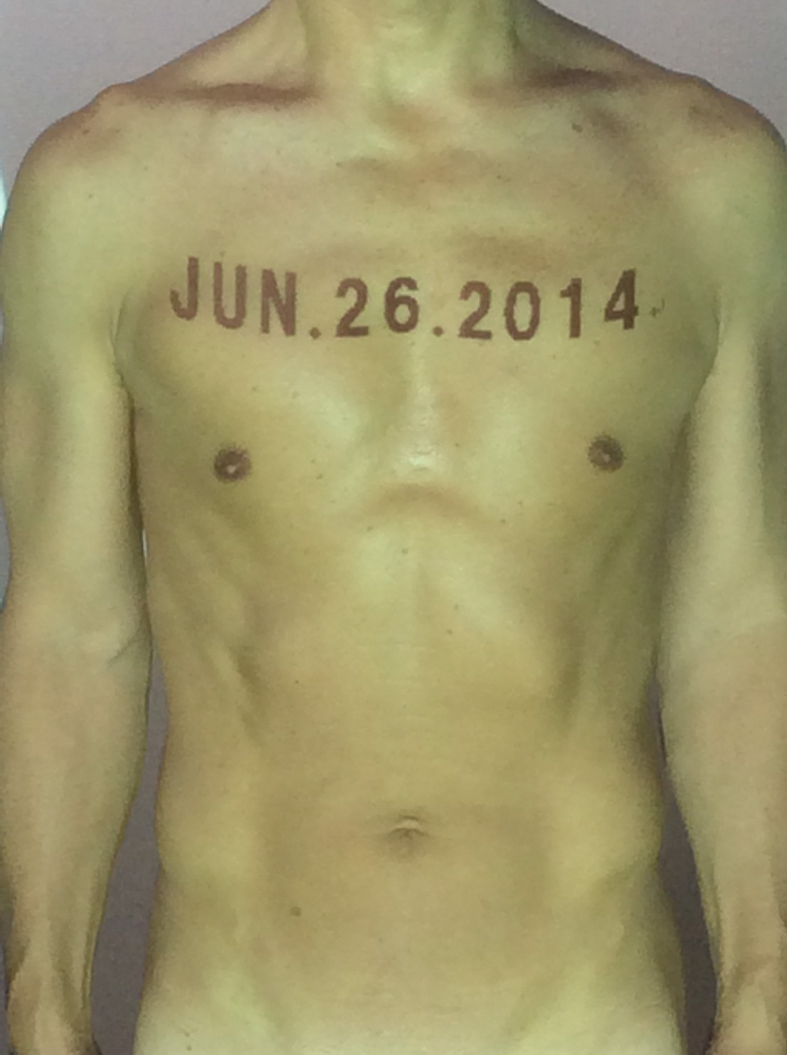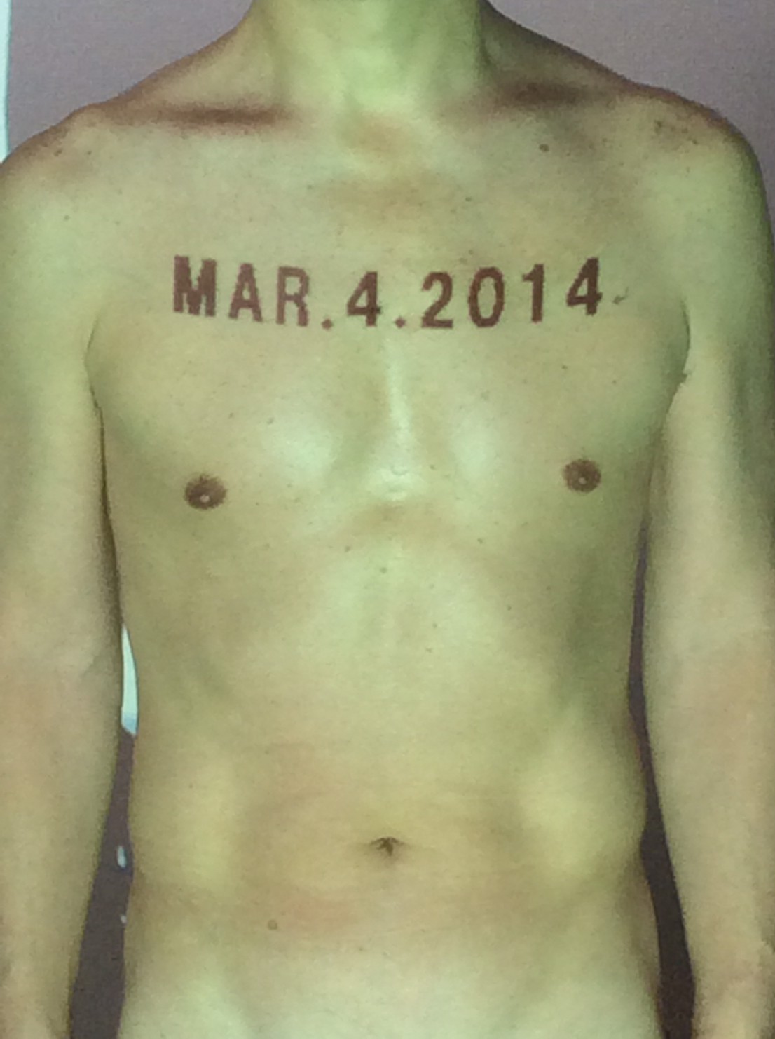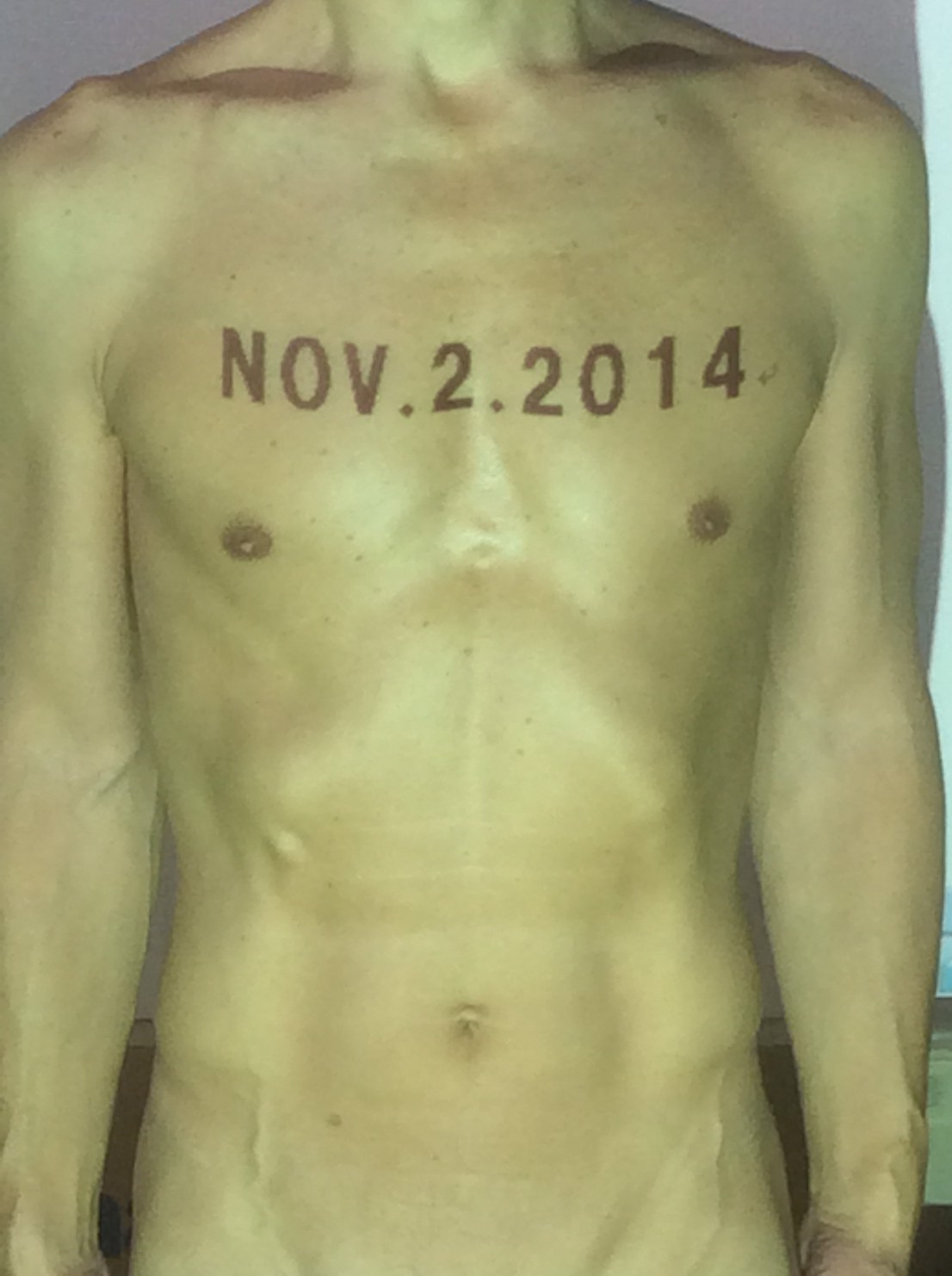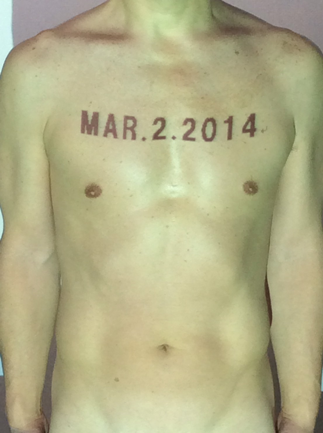 伊勢神宮に式年遷宮という20年に一度の儀式がある。常に神の宿る体(社)を若く保つのが目的だが、その町の活性化と儀式や建築技術の継承なども図られている。このことを私自身の体に移し替えて表現している。1年を通して鍛えた身体の変化はYoutubeにアップした。作家の身体 表現する身体 リニューアルボディー 表現する新しい身体(The new body to express) 身体と絵画 The body and pictures 時間的連続性の入れ替え. 身体は時間The body is time 時間に逆らう身体The body opposing time 身体は時間に逆らうThe body opposes time.過ぎ去る身体The body passing away