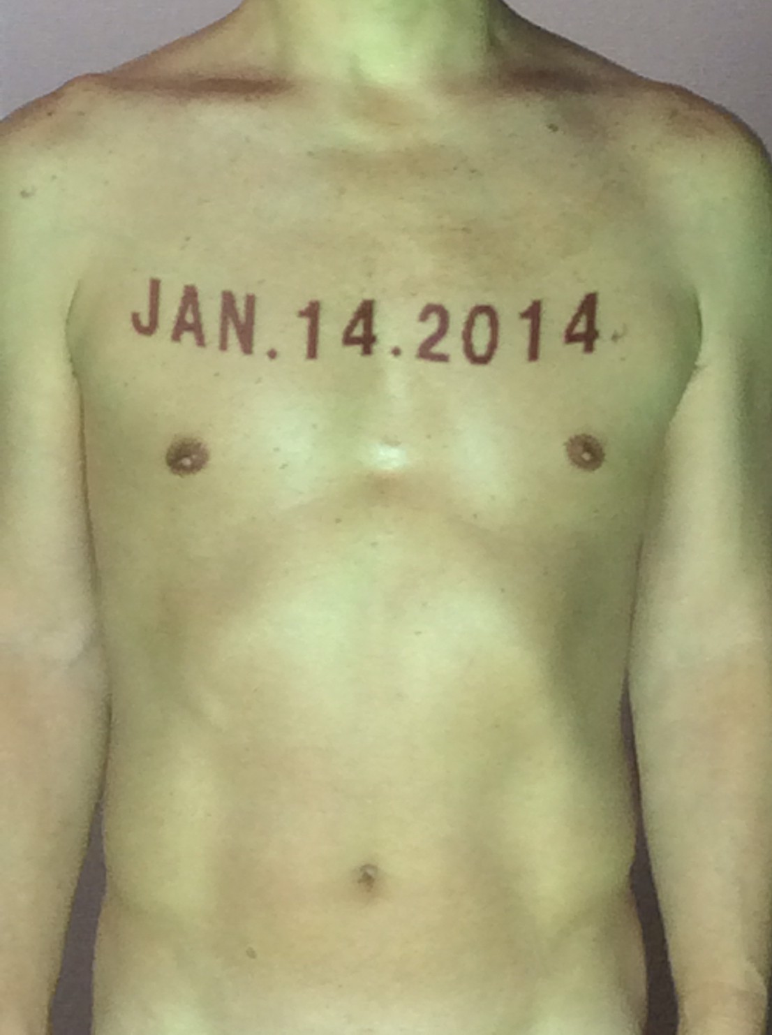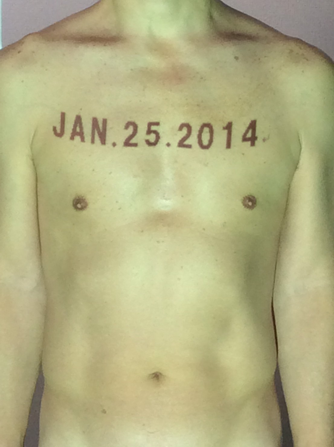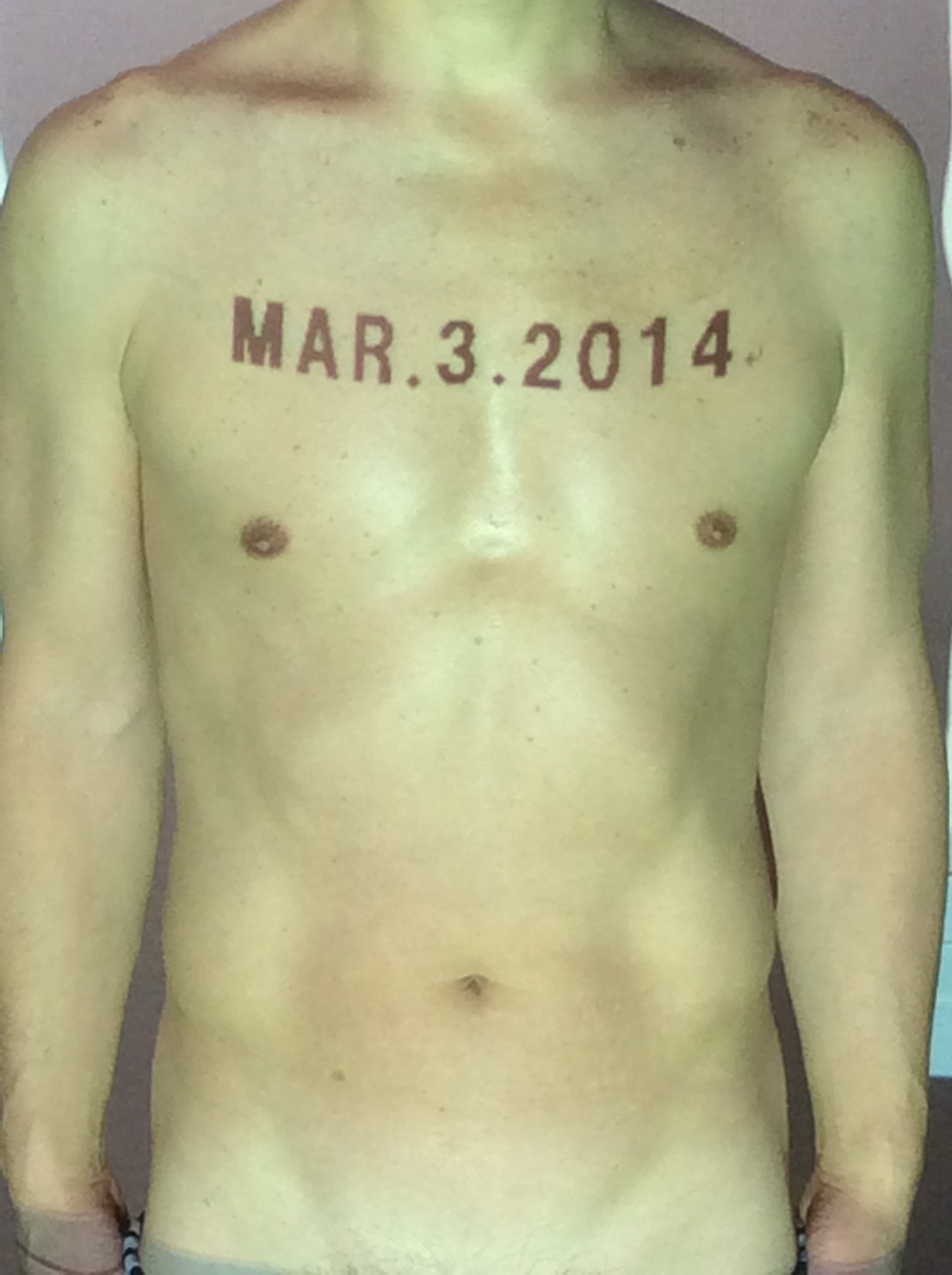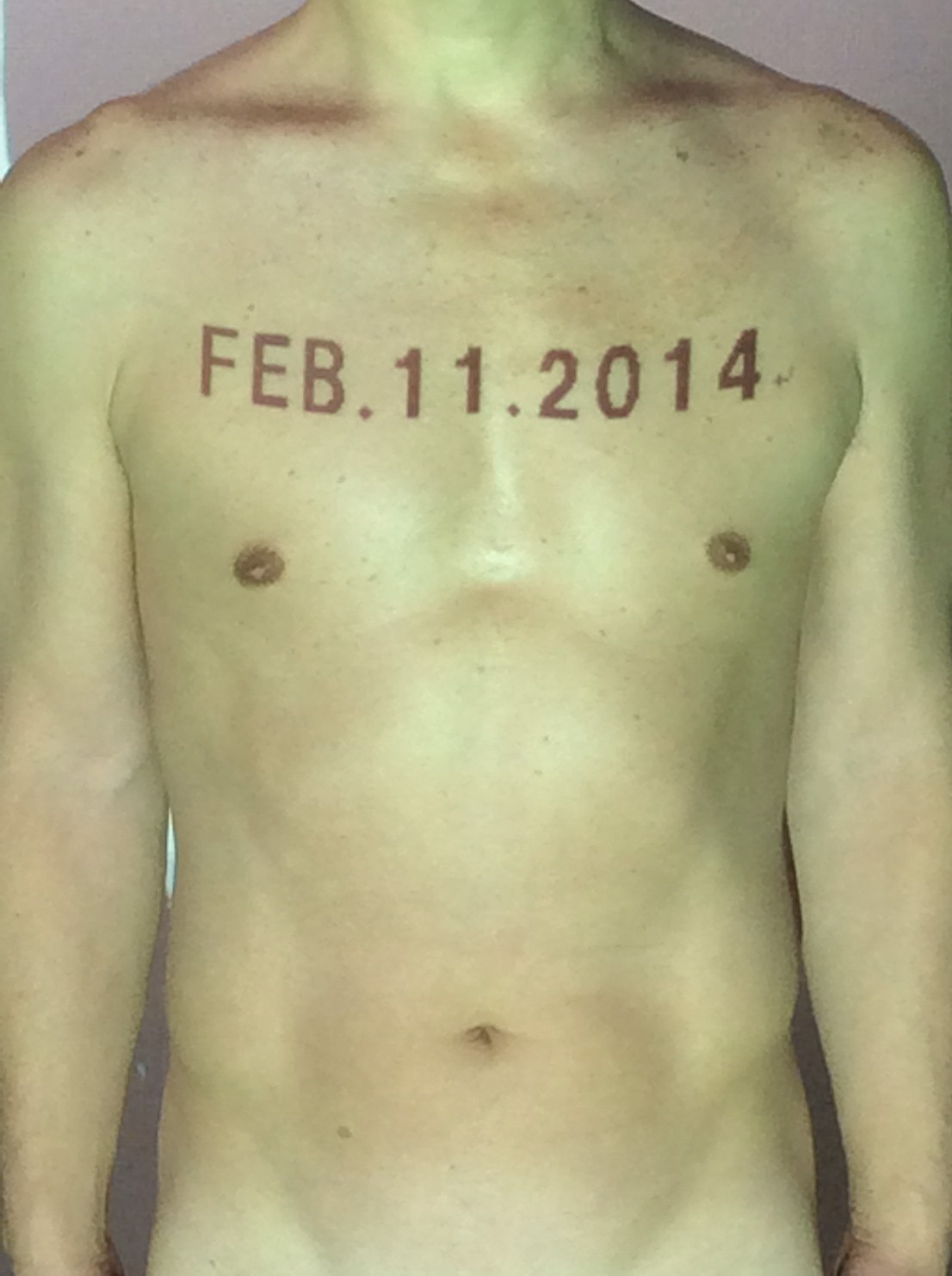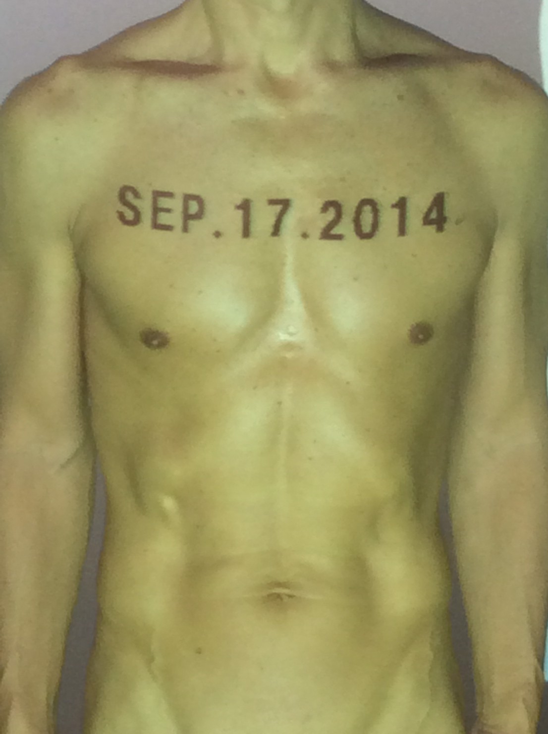 伊勢神宮に式年遷宮という20年に一度の儀式がある。常に神の宿る体(社)を若く保つのが目的だが、その町の活性化と儀式や建築技術の継承なども図られている。このことを私自身の体に移し替えて表現している。1年を通して鍛えた身体の変化はYoutubeにアップした。作家の身体 表現する身体 リニューアルボディー 表現する新しい身体(The new body to express) 身体と絵画 The body and pictures 時間的連続性の入れ替え. 身体は時間The body is time 時間に逆らう身体The body opposing time 身体は時間に逆らうThe body opposes time.過ぎ去る身体The body passing away