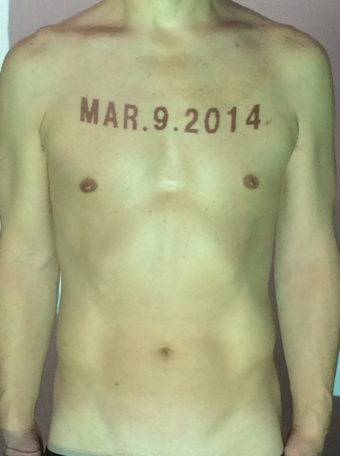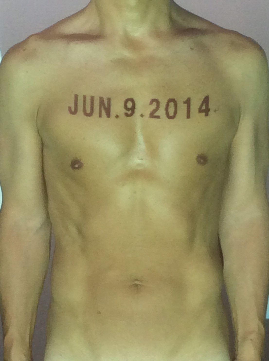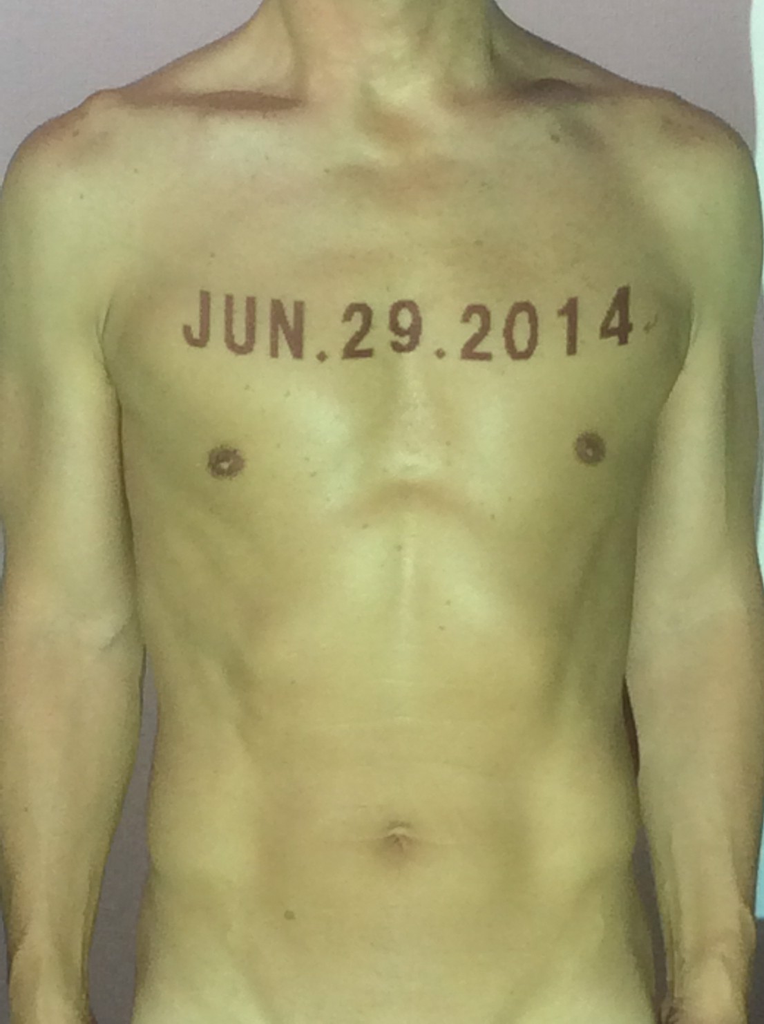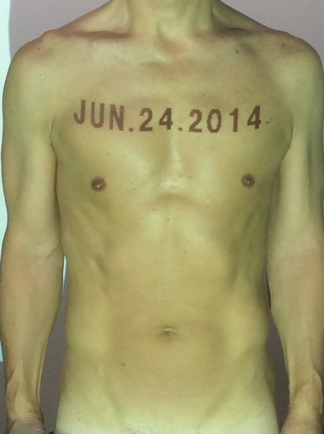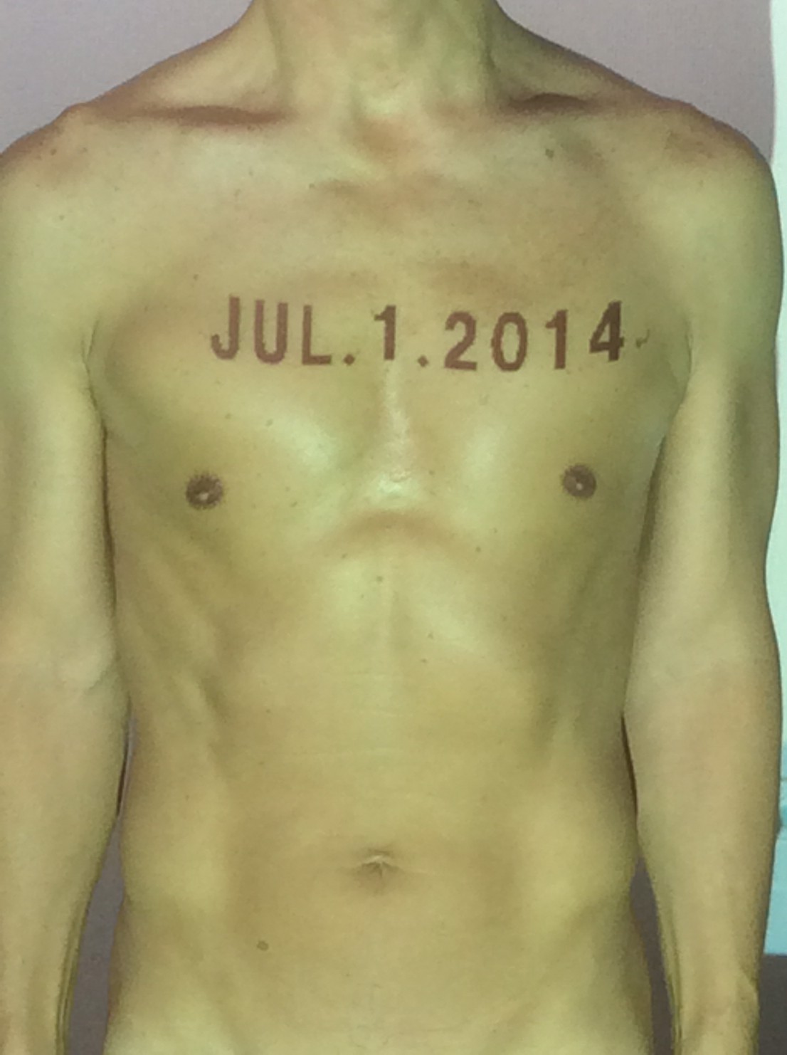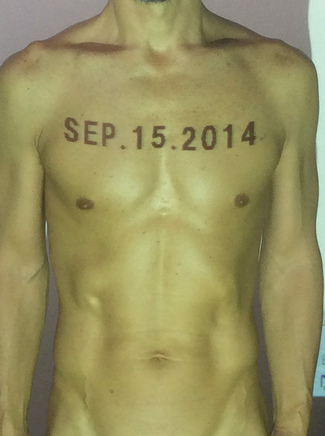 伊勢神宮に式年遷宮という20年に一度の儀式がある。常に神の宿る体(社)を若く保つのが目的だが、その町の活性化と儀式や建築技術の継承なども図られている。このことを私自身の体に移し替えて表現している。1年を通して鍛えた身体の変化はYoutubeにアップした。作家の身体 表現する身体 リニューアルボディー 表現する新しい身体(The new body to express) 身体と絵画 The body and pictures 時間的連続性の入れ替え. 身体は時間The body is time 時間に逆らう身体The body opposing time 身体は時間に逆らうThe body opposes time.過ぎ去る身体The body passing away