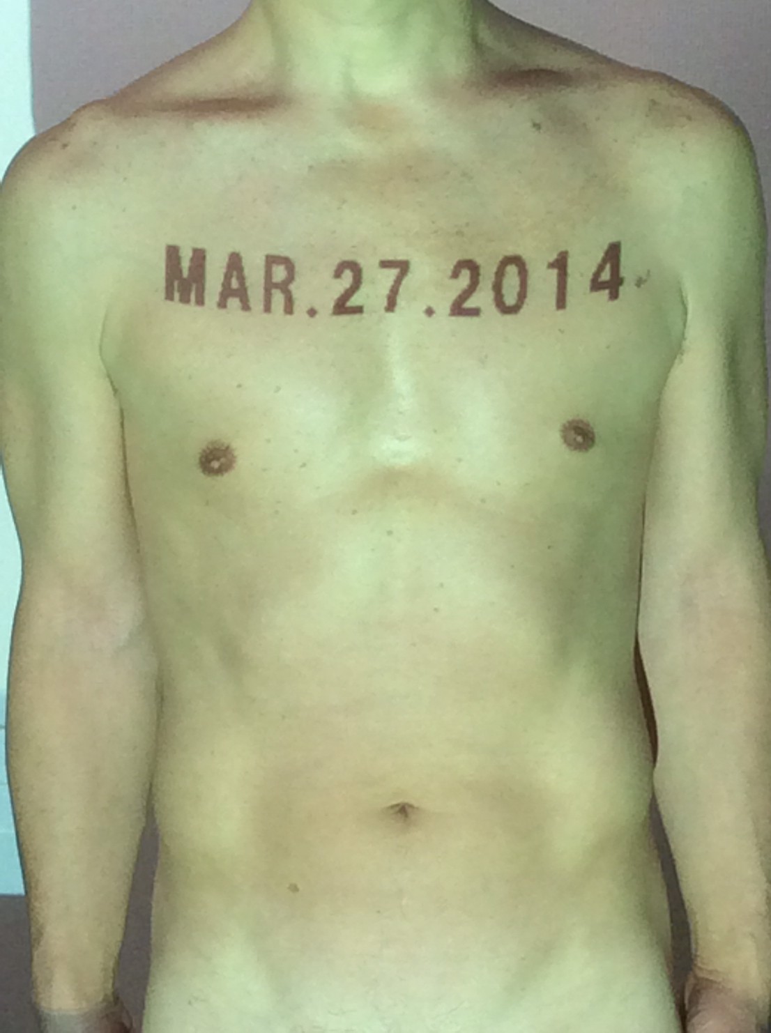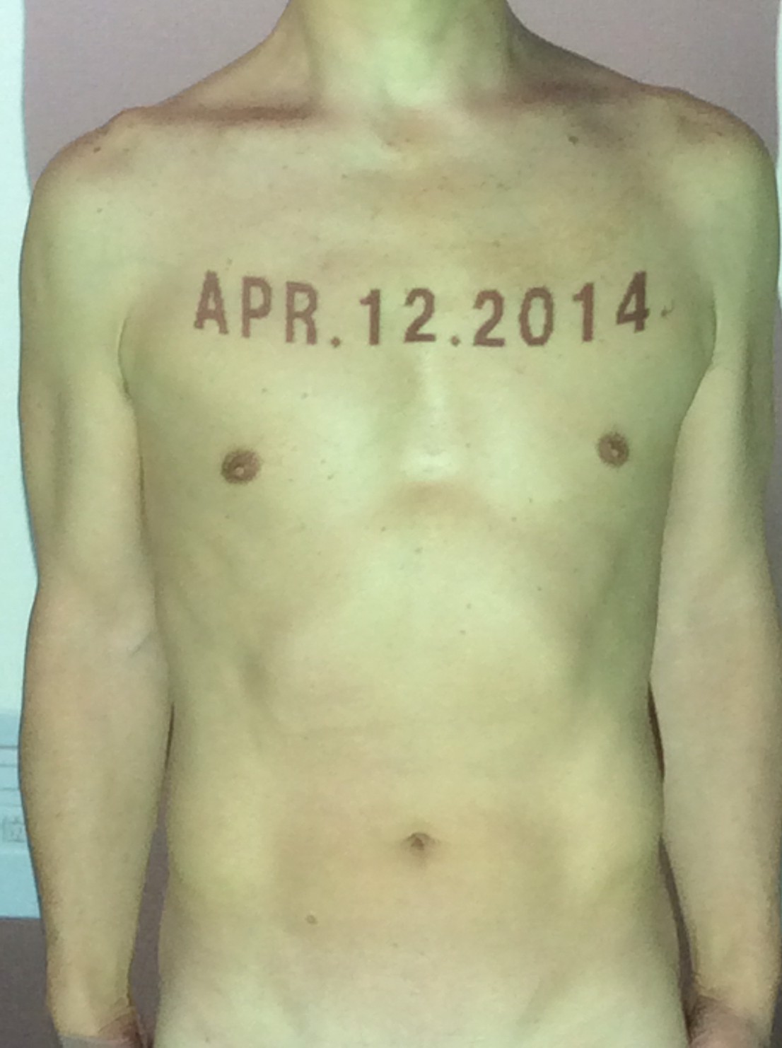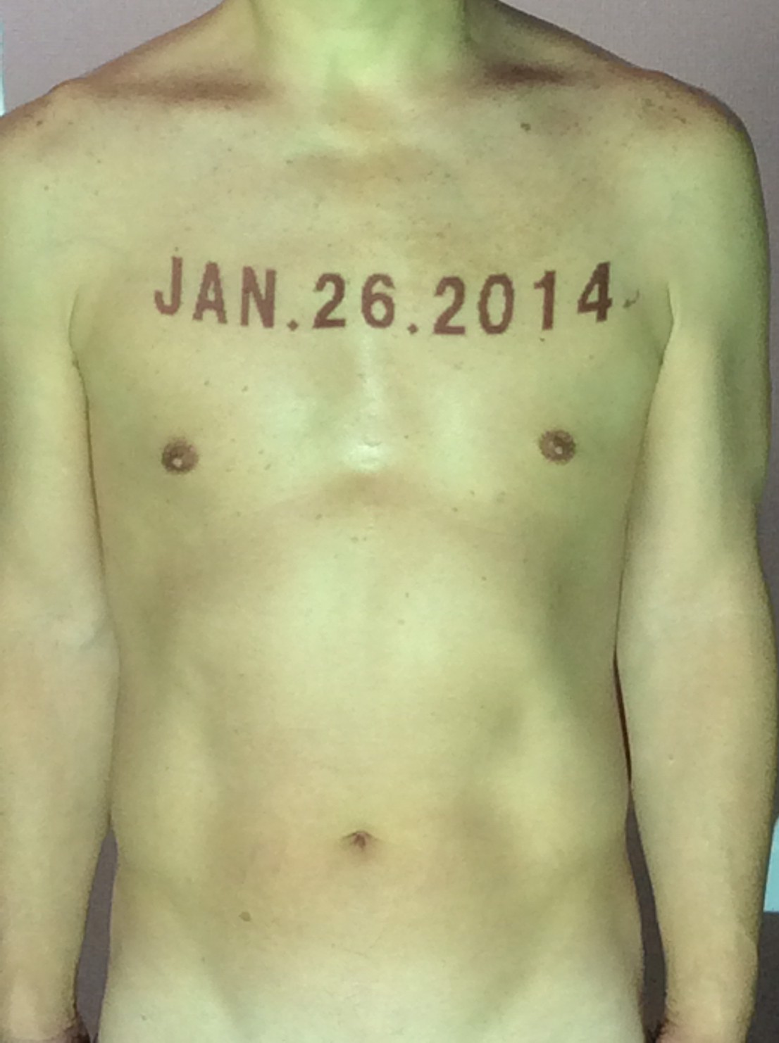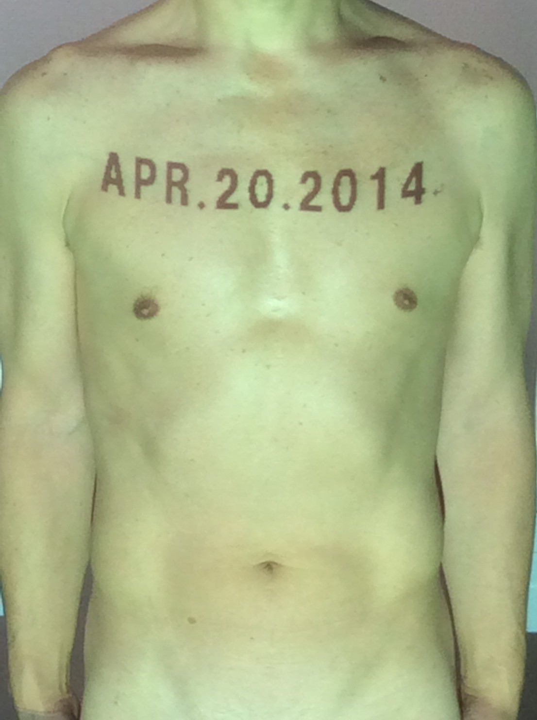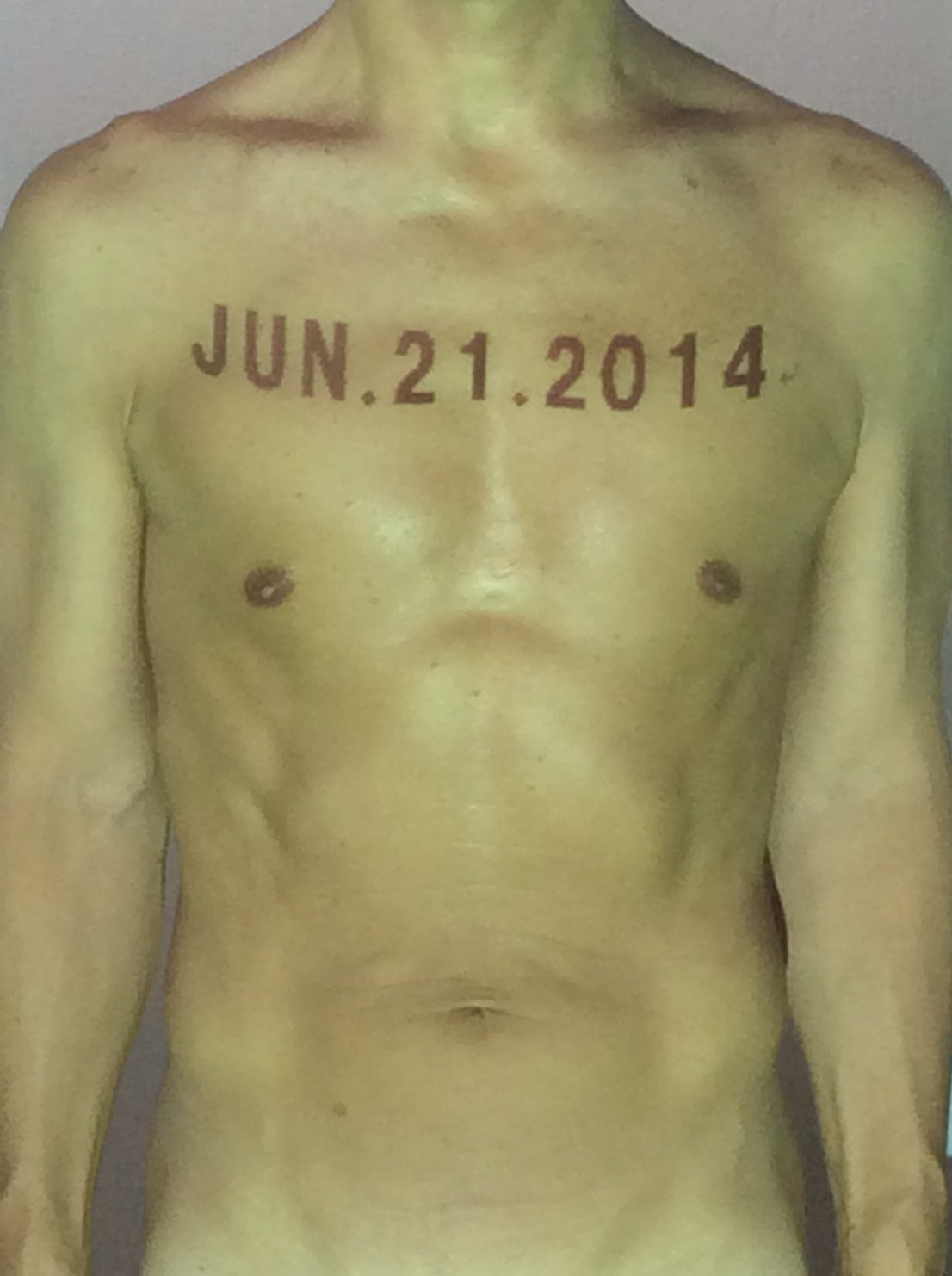 伊勢神宮に式年遷宮という20年に一度の儀式がある。常に神の宿る体(社)を若く保つのが目的だが、その町の活性化と儀式や建築技術の継承なども図られている。このことを私自身の体に移し替えて表現している。1年を通して鍛えた身体の変化はYoutubeにアップした。作家の身体 表現する身体 リニューアルボディー 表現する新しい身体(The new body to express) 身体と絵画 The body and pictures 時間的連続性の入れ替え. 身体は時間The body is time 時間に逆らう身体The body opposing time 身体は時間に逆らうThe body opposes time.過ぎ去る身体The body passing away