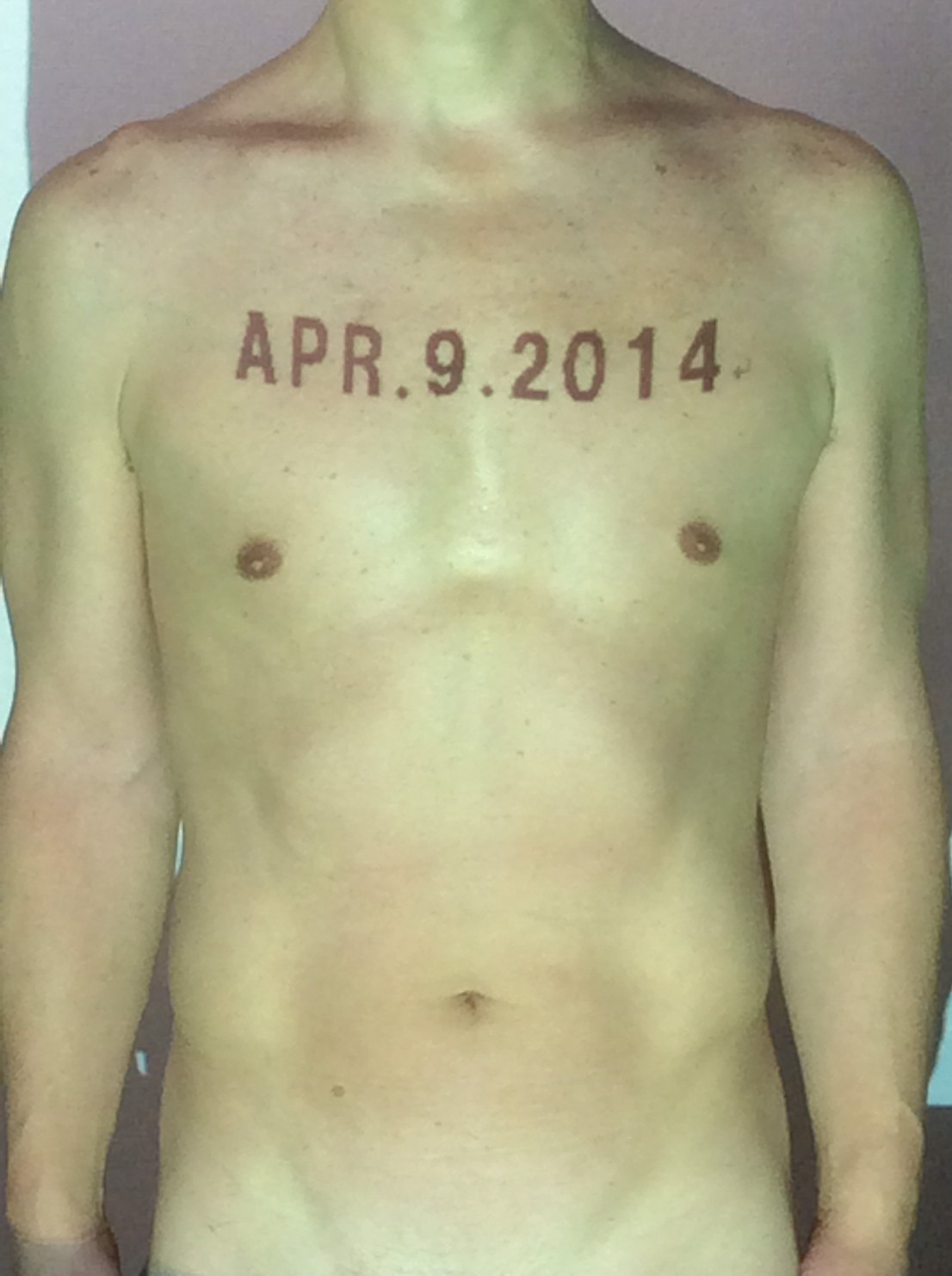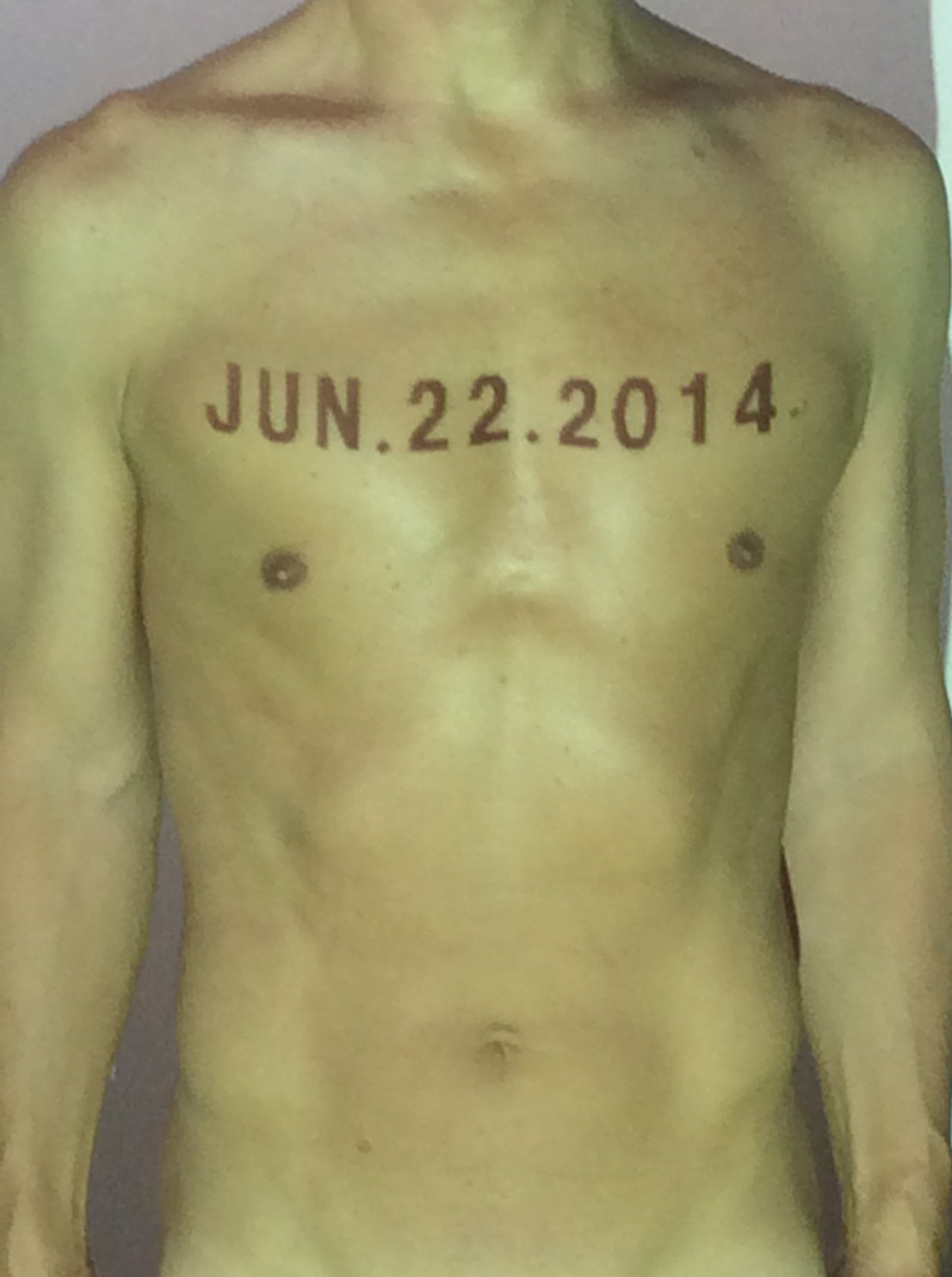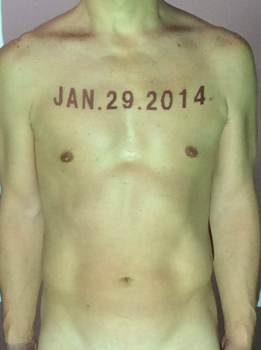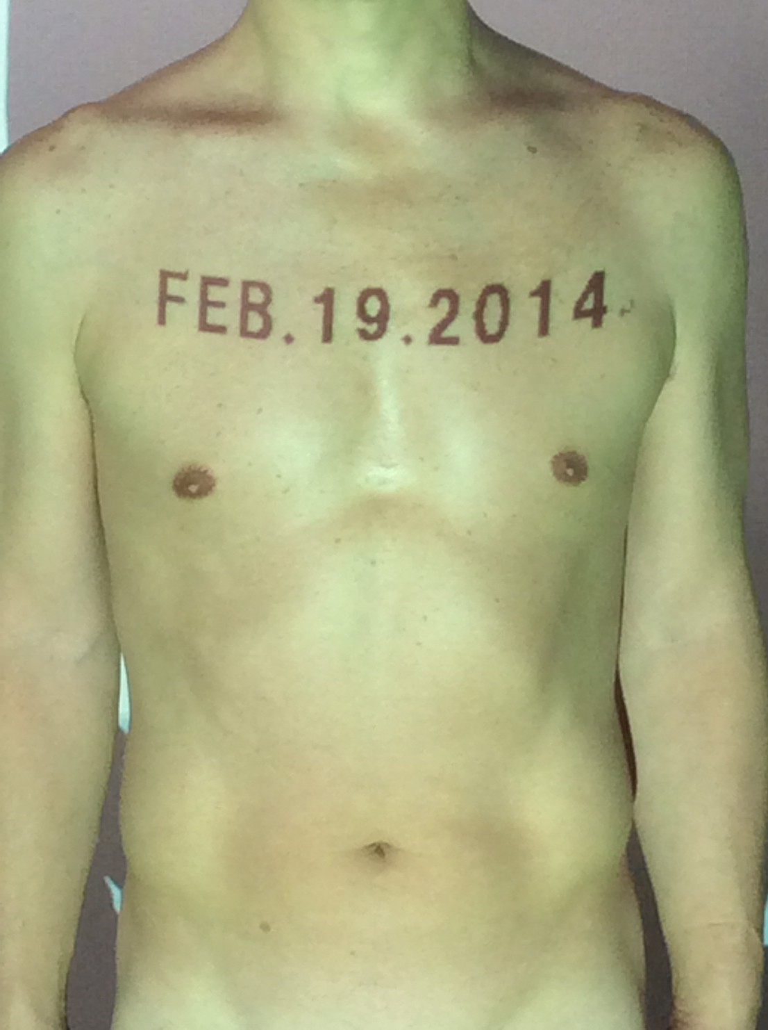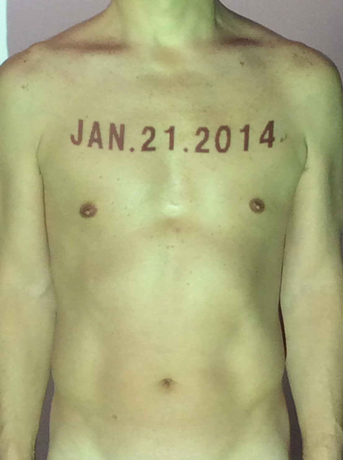 伊勢神宮に式年遷宮という20年に一度の儀式がある。常に神の宿る体(社)を若く保つのが目的だが、その町の活性化と儀式や建築技術の継承なども図られている。このことを私自身の体に移し替えて表現している。1年を通して鍛えた身体の変化はYoutubeにアップした。作家の身体 表現する身体 リニューアルボディー 表現する新しい身体(The new body to express) 身体と絵画 The body and pictures 時間的連続性の入れ替え. 身体は時間The body is time 時間に逆らう身体The body opposing time 身体は時間に逆らうThe body opposes time.過ぎ去る身体The body passing away