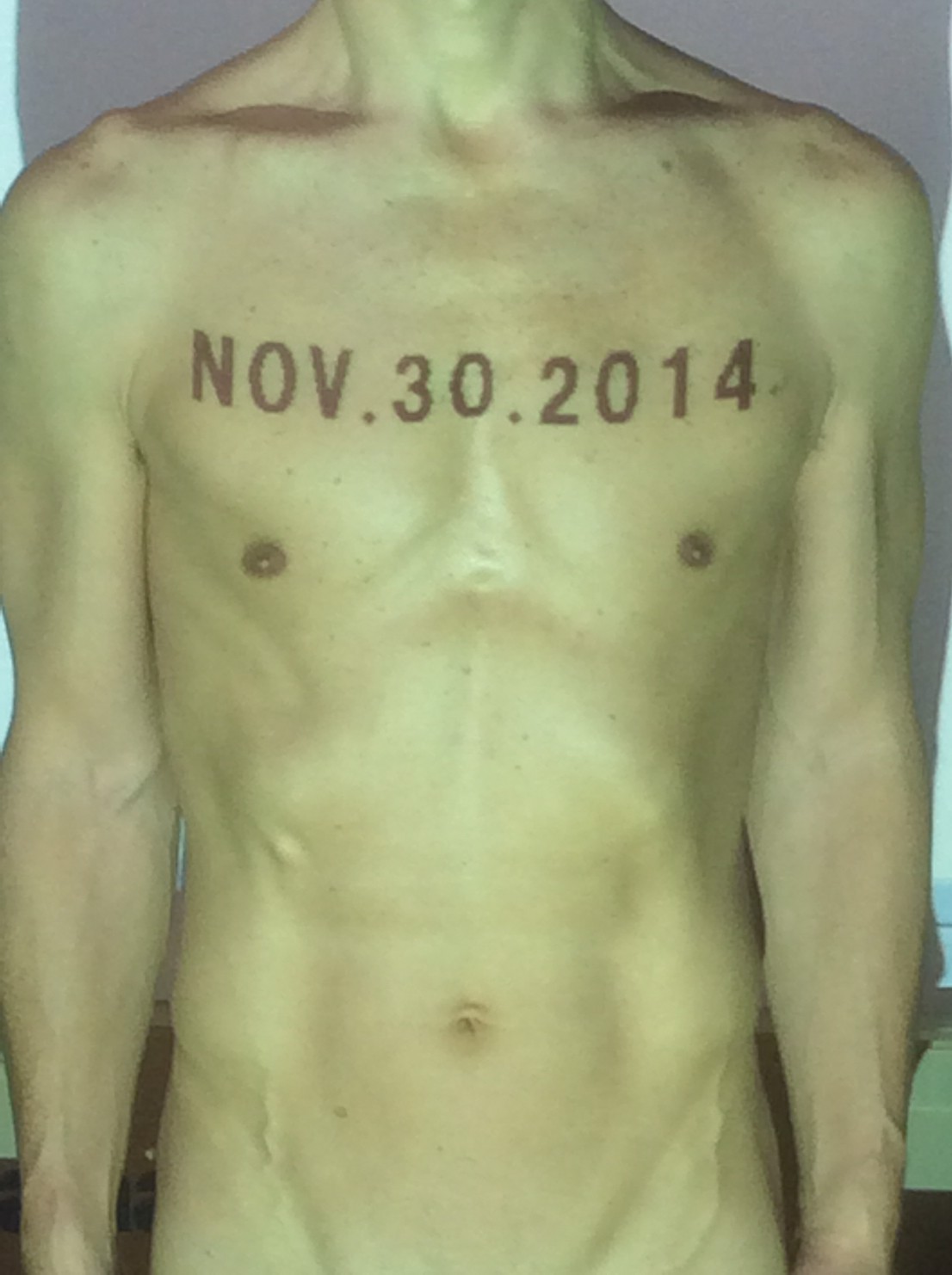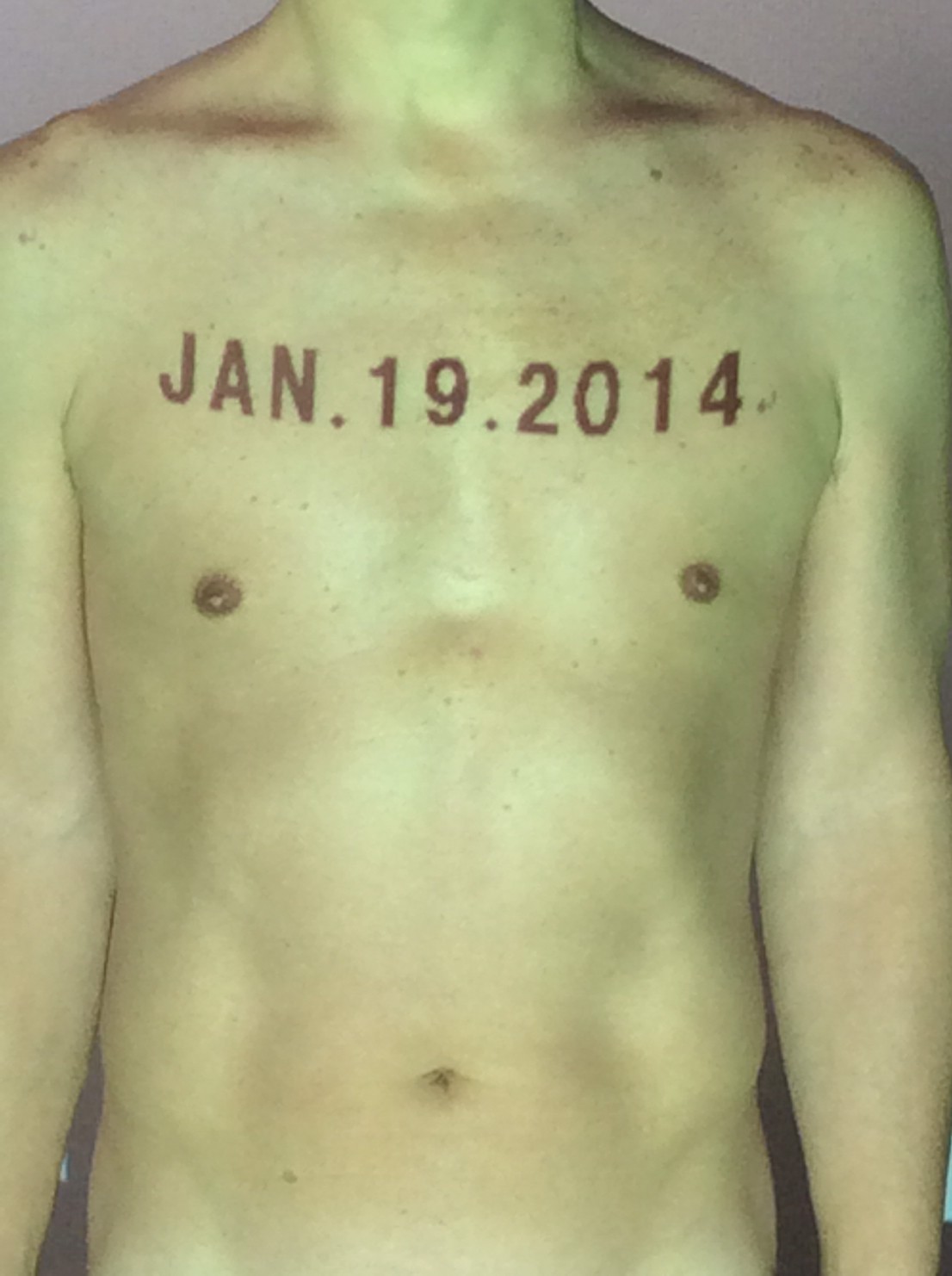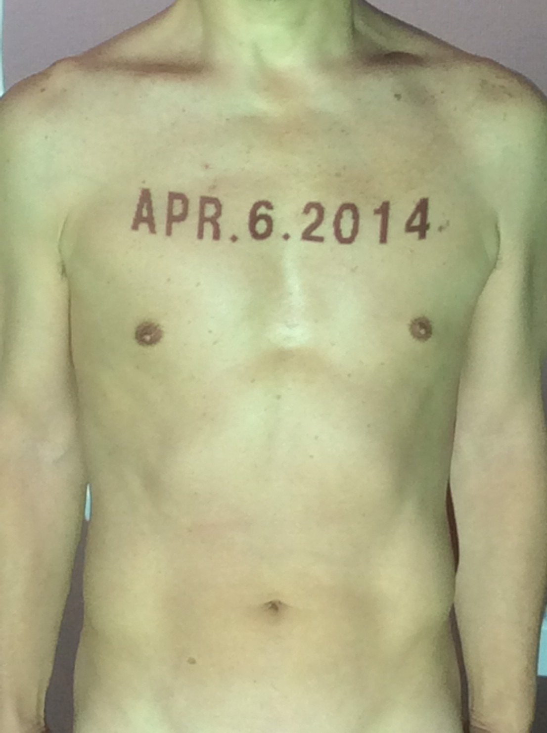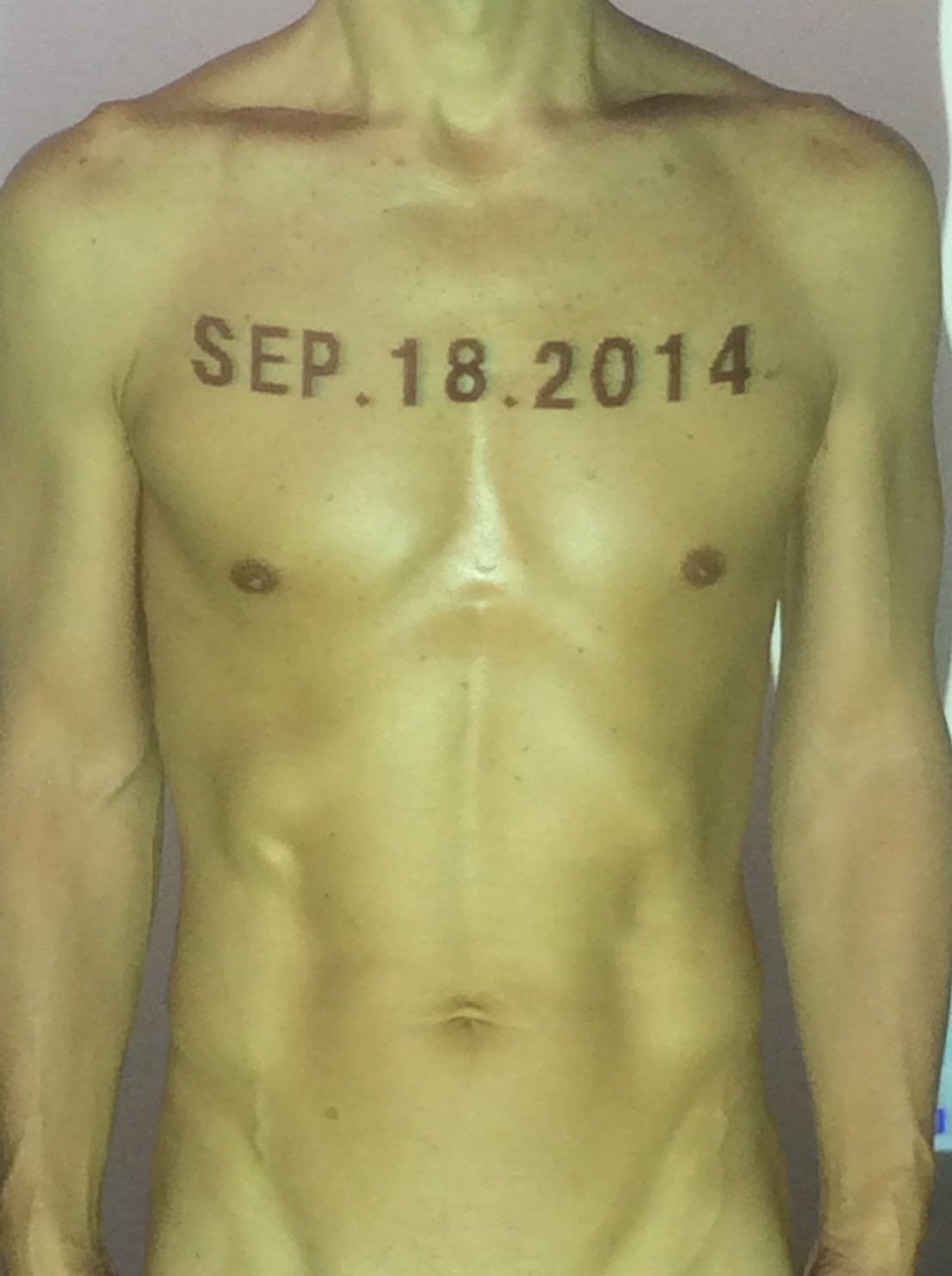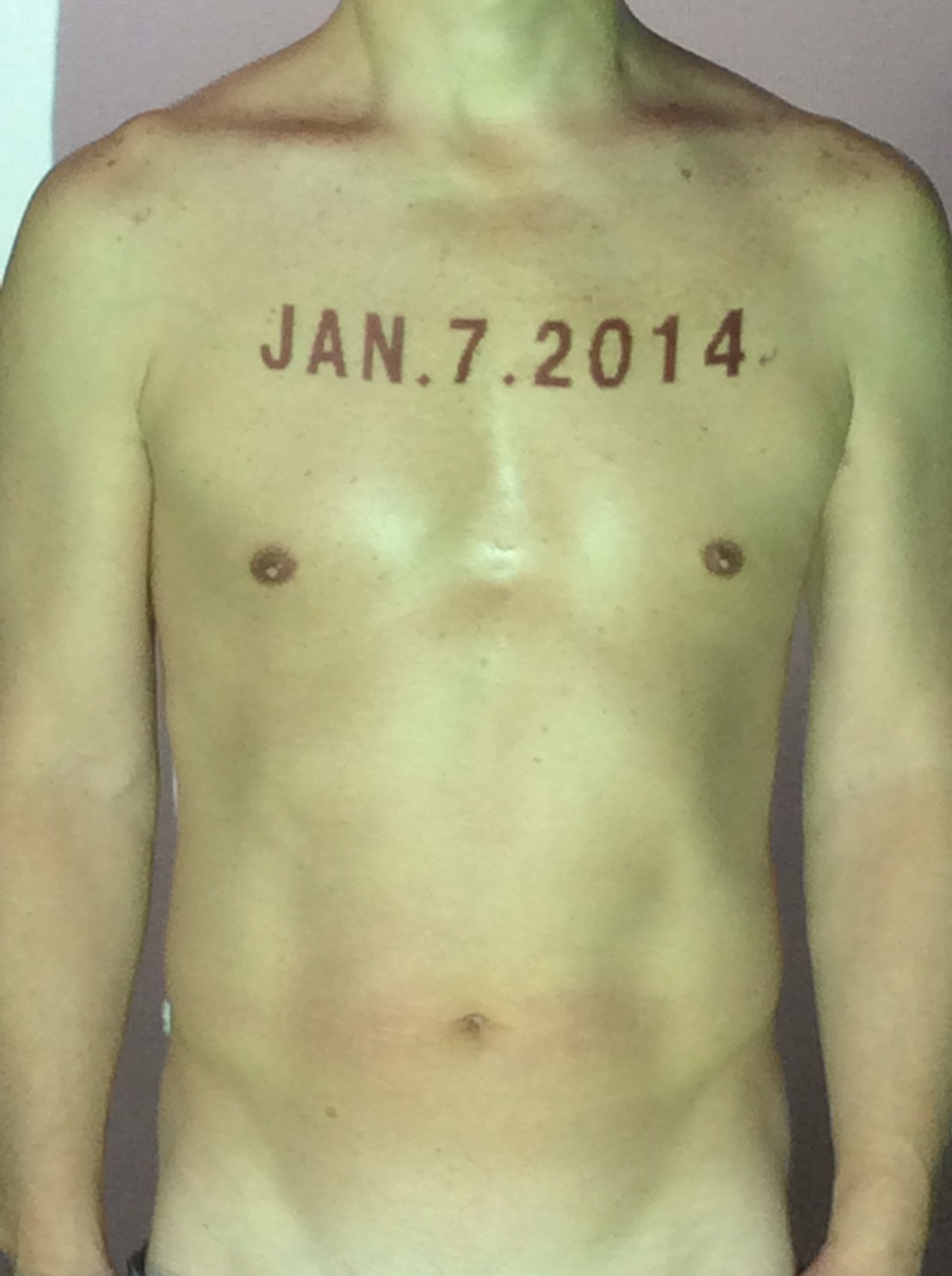 伊勢神宮に式年遷宮という20年に一度の儀式がある。常に神の宿る体(社)を若く保つのが目的だが、その町の活性化と儀式や建築技術の継承なども図られている。このことを私自身の体に移し替えて表現している。1年を通して鍛えた身体の変化はYoutubeにアップした。作家の身体 表現する身体 リニューアルボディー 表現する新しい身体(The new body to express) 身体と絵画 The body and pictures 時間的連続性の入れ替え. 身体は時間The body is time 時間に逆らう身体The body opposing time 身体は時間に逆らうThe body opposes time.過ぎ去る身体The body passing away