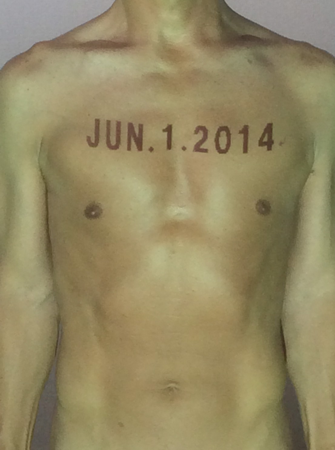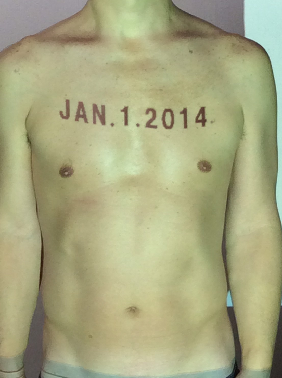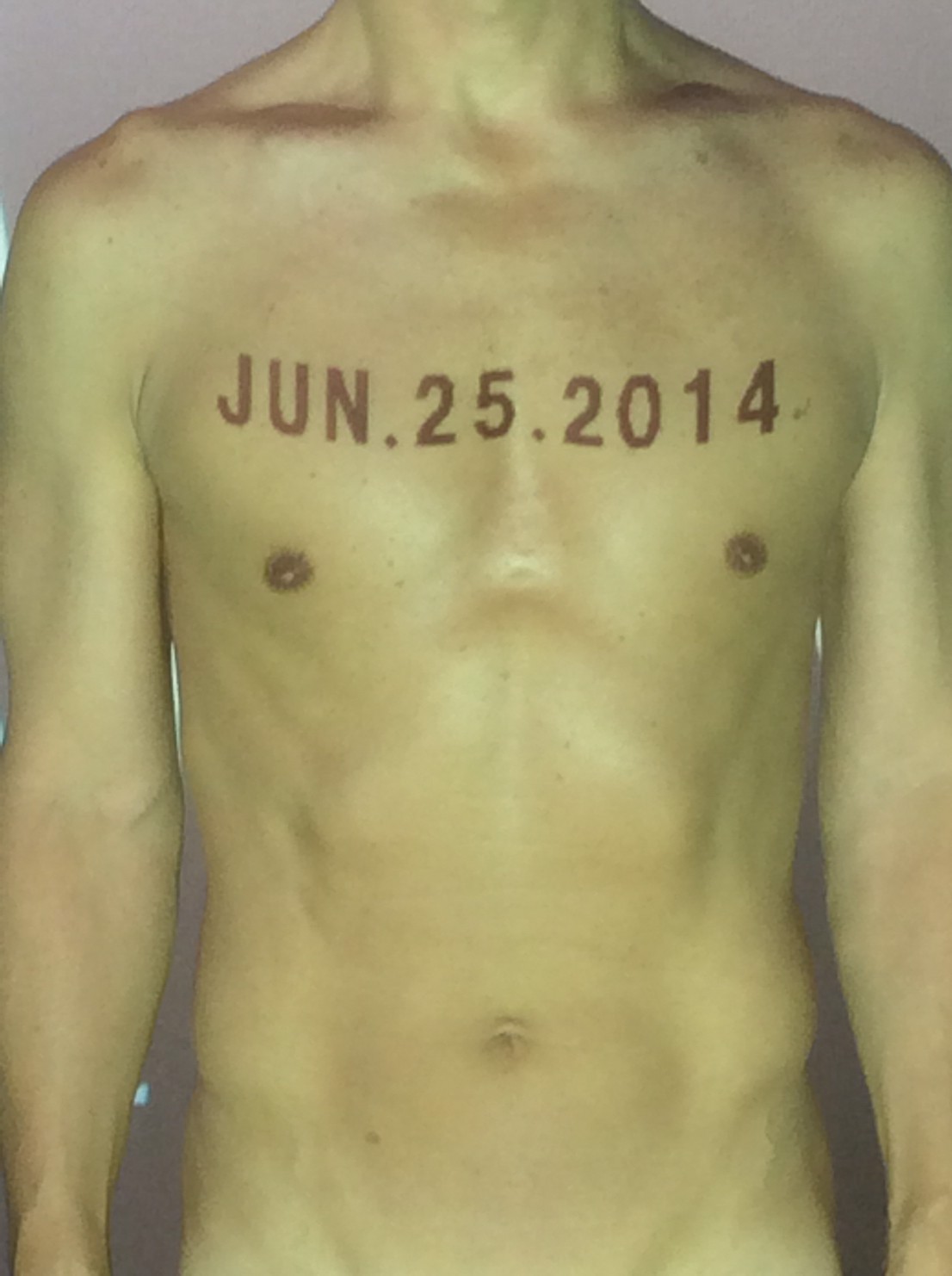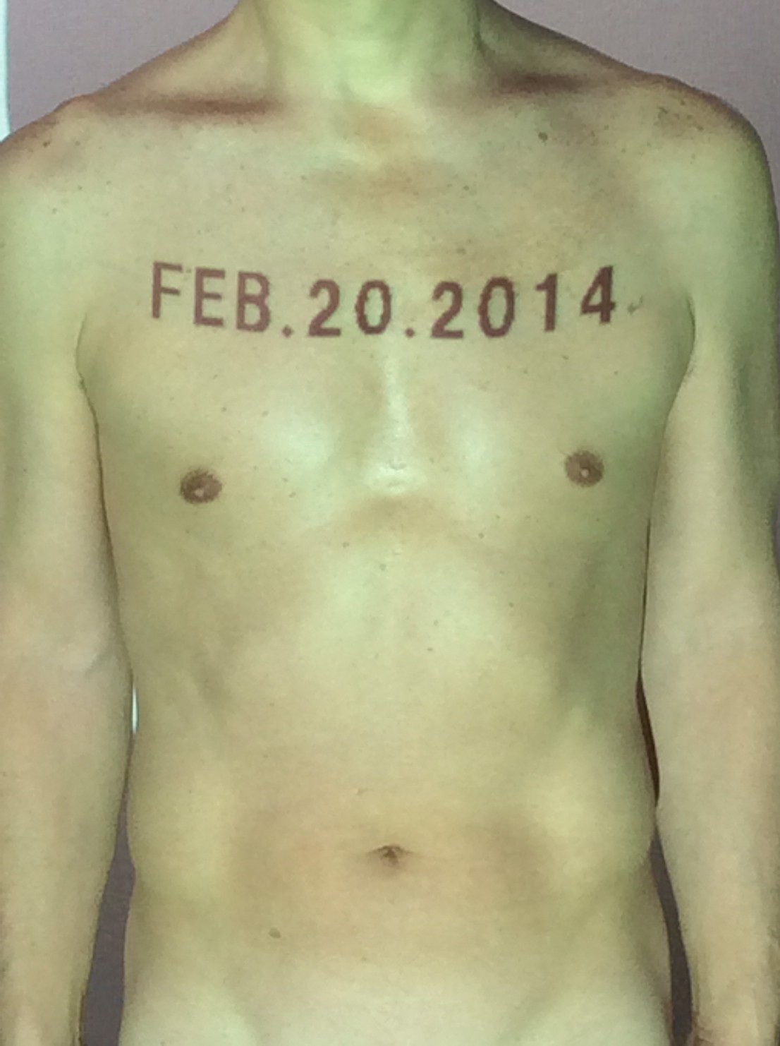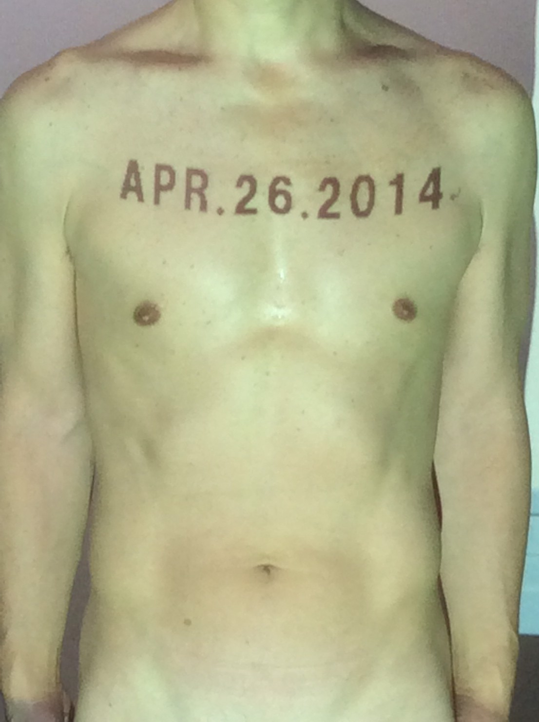 伊勢神宮に式年遷宮という20年に一度の儀式がある。常に神の宿る体(社)を若く保つのが目的だが、その町の活性化と儀式や建築技術の継承なども図られている。このことを私自身の体に移し替えて表現している。1年を通して鍛えた身体の変化はYoutubeにアップした。作家の身体 表現する身体 リニューアルボディー 表現する新しい身体(The new body to express) 身体と絵画 The body and pictures 時間的連続性の入れ替え. 身体は時間The body is time 時間に逆らう身体The body opposing time 身体は時間に逆らうThe body opposes time.過ぎ去る身体The body passing away