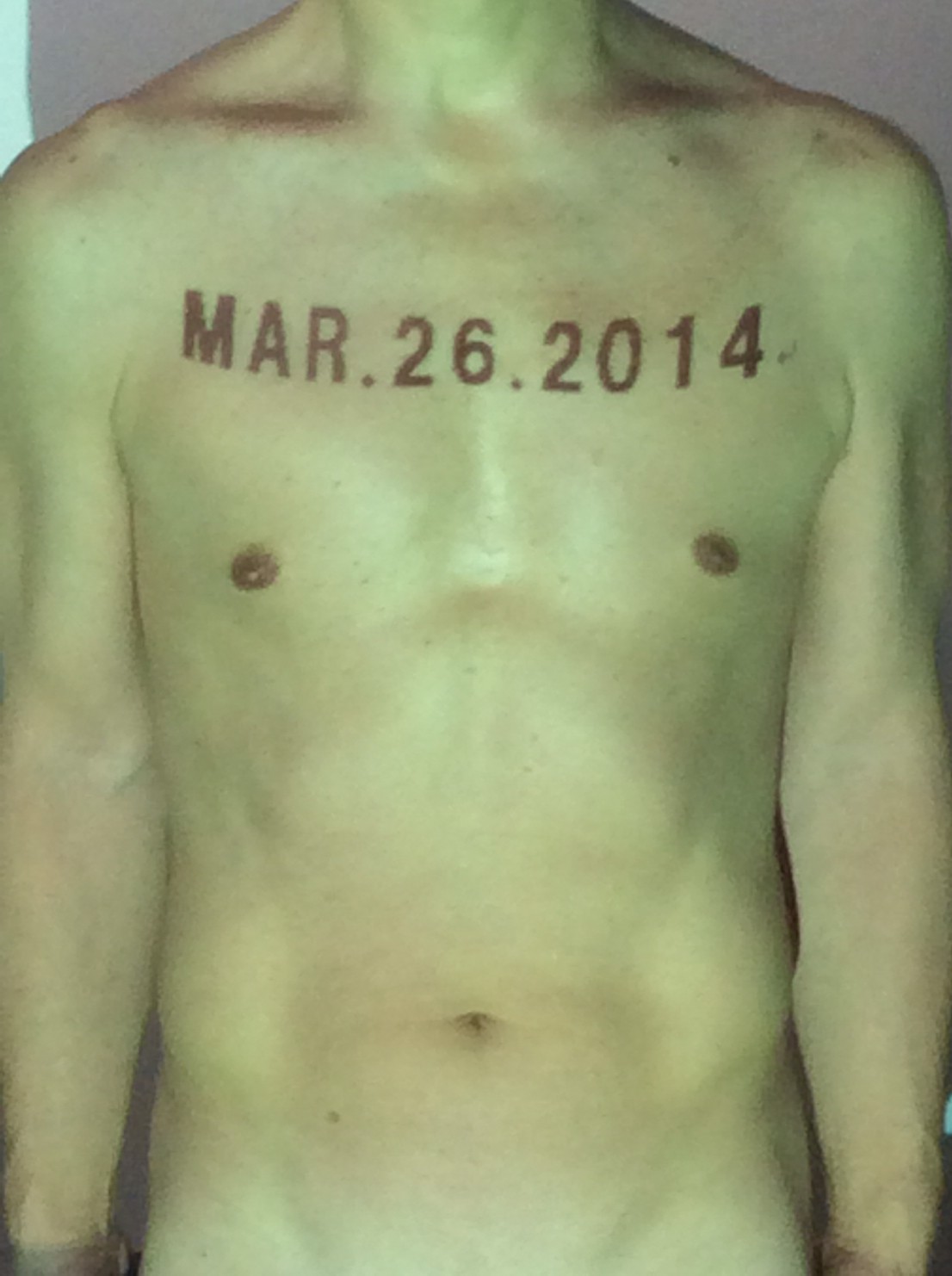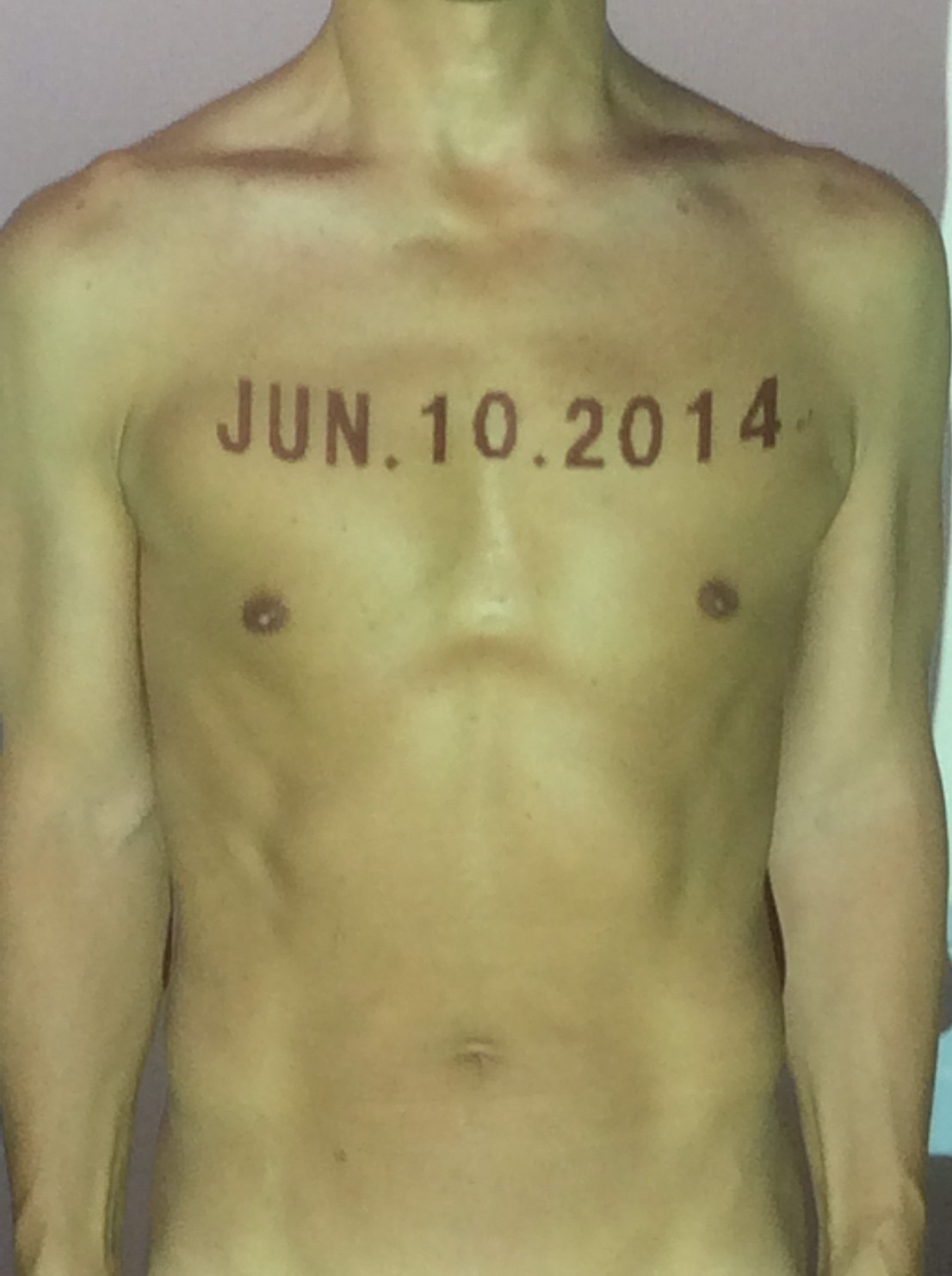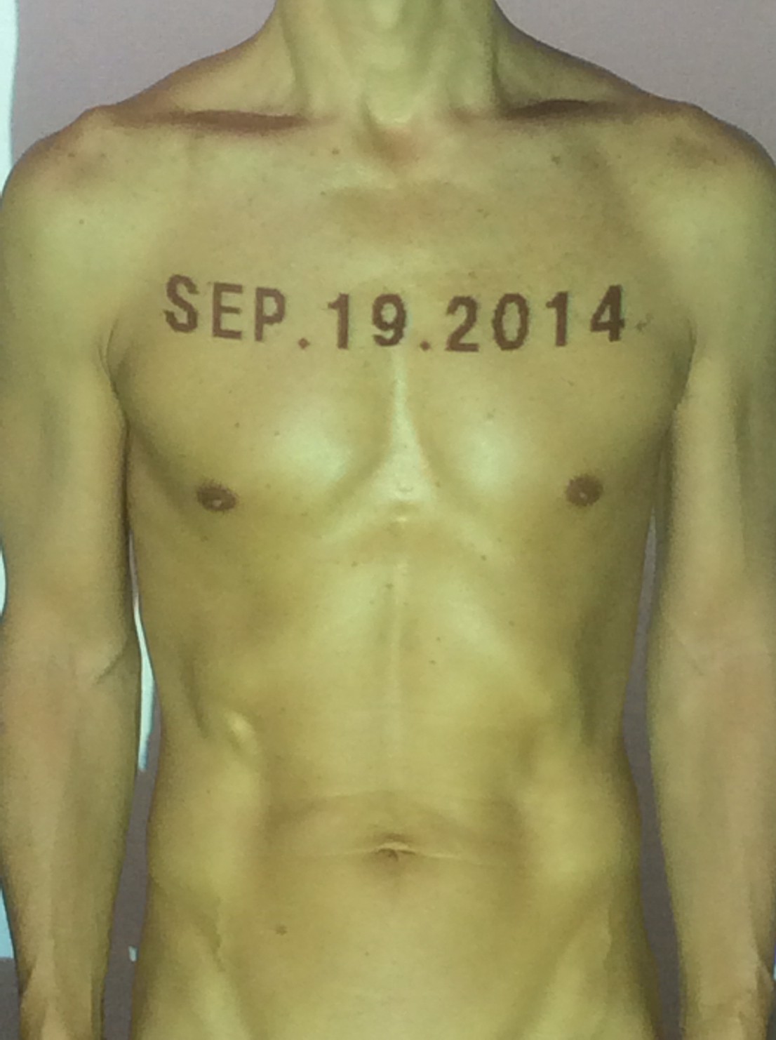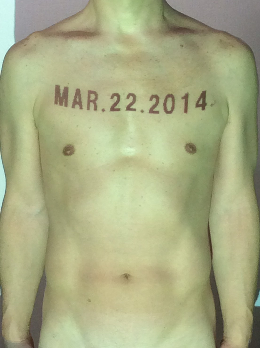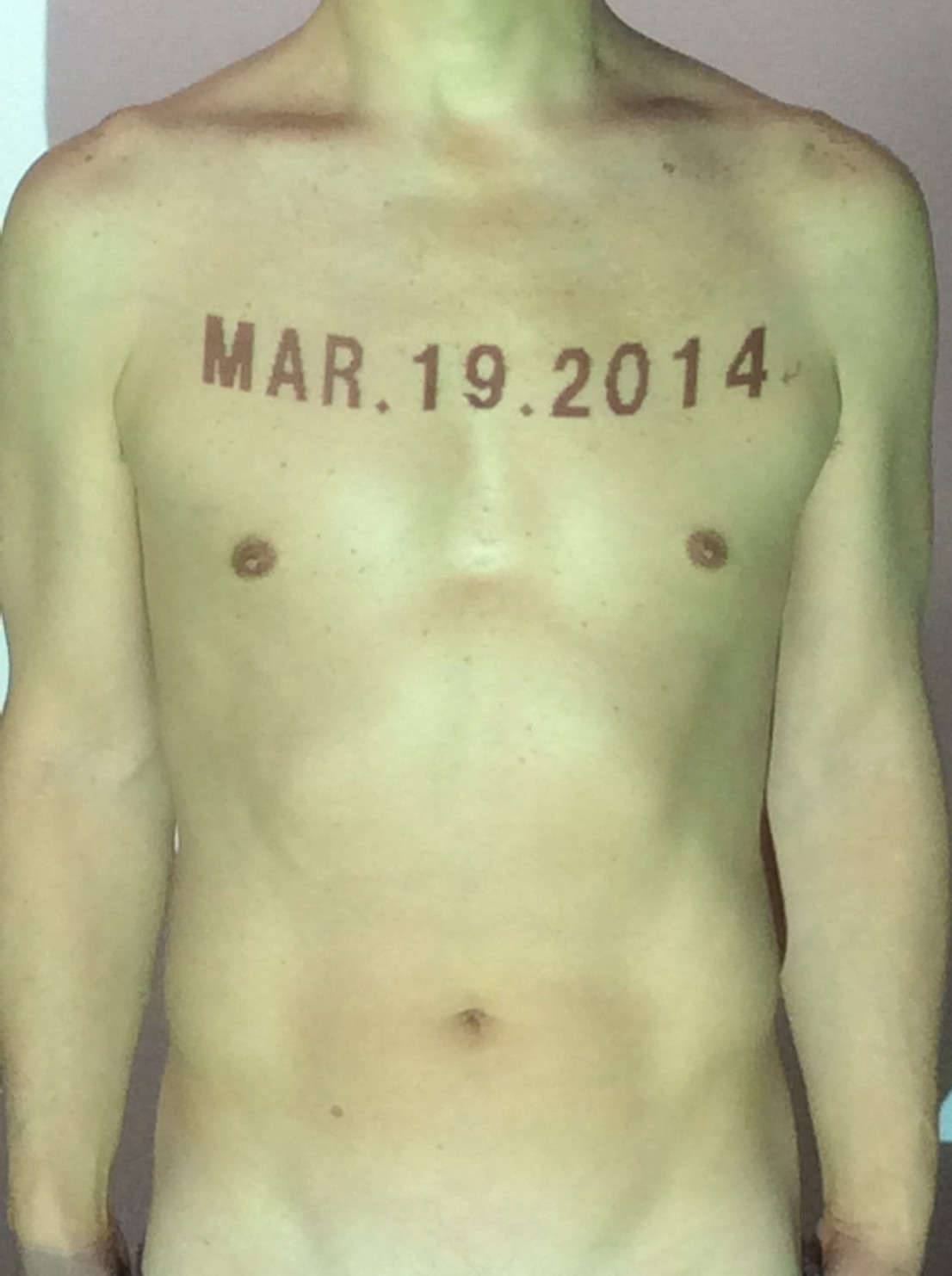伊勢神宮に式年遷宮という20年に一度の儀式がある。常に神の宿る体(社)を若く保つのが目的だが、その町の活性化と儀式や建築技術の継承なども図られている。このことを私自身の体に移し替えて表現している。1年を通して鍛えた身体の変化はYoutubeにアップした。作家の身体 表現する身体 リニューアルボディー 表現する新しい身体(The new body to express) 身体と絵画 The body and pictures 時間的連続性の入れ替え. 身体は時間The body is time 時間に逆らう身体The body opposing time 身体は時間に逆らうThe body opposes time.過ぎ去る身体The body passing away