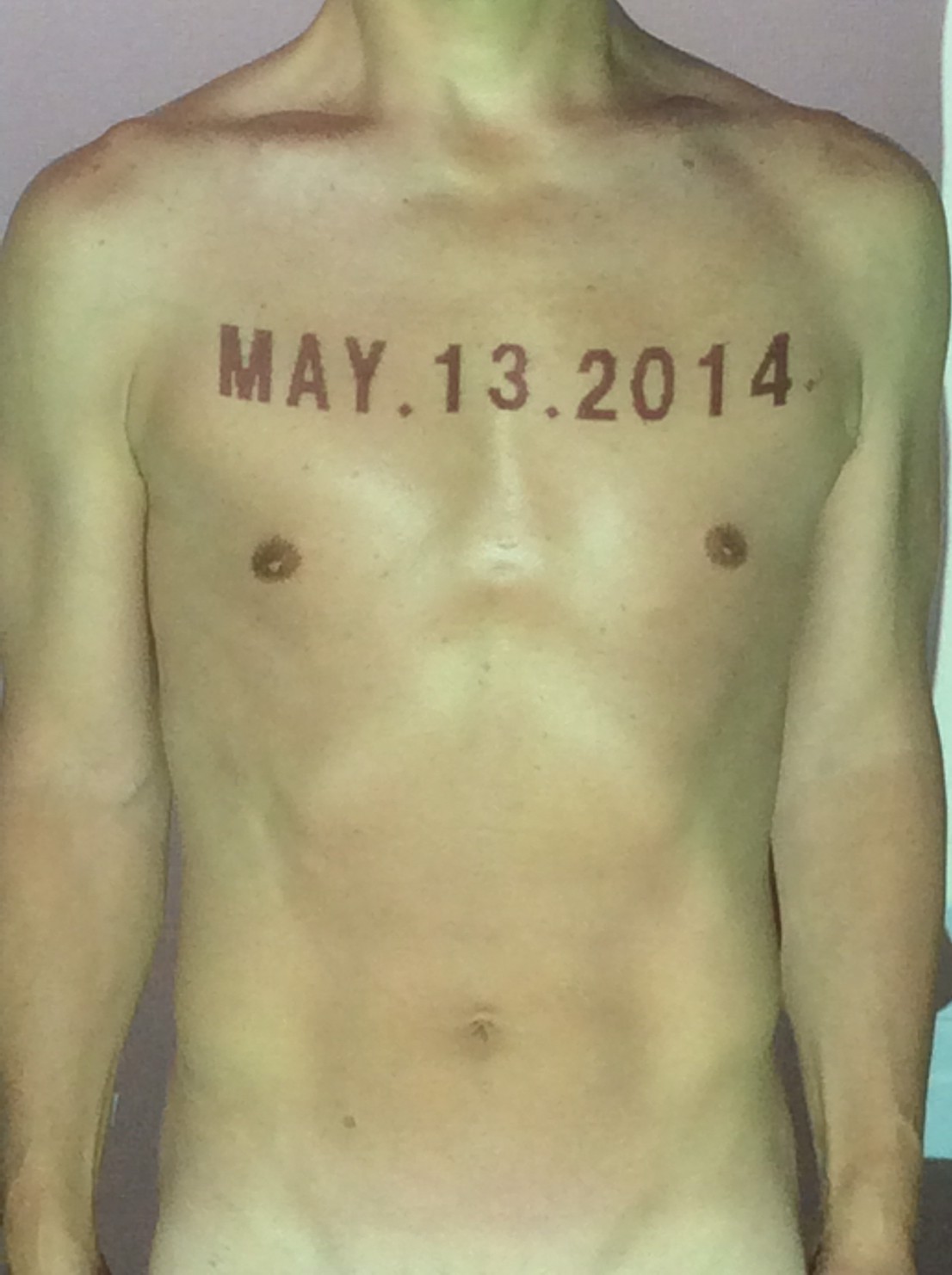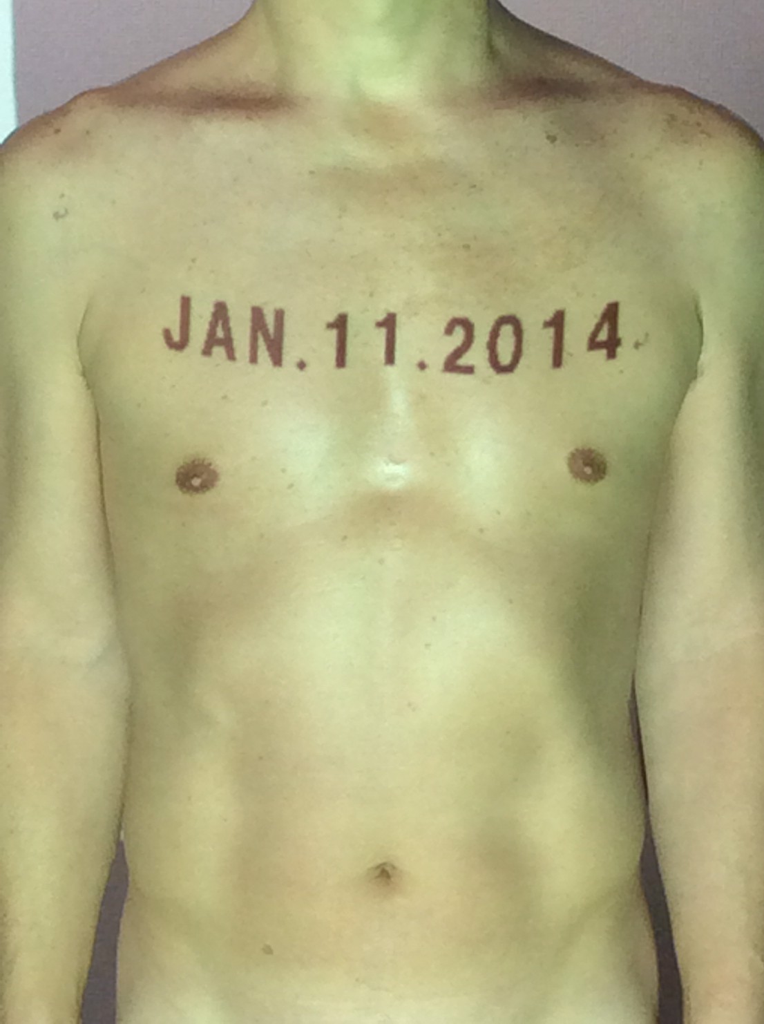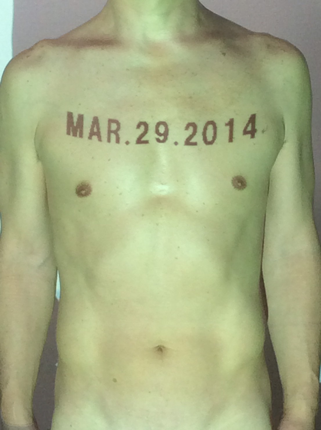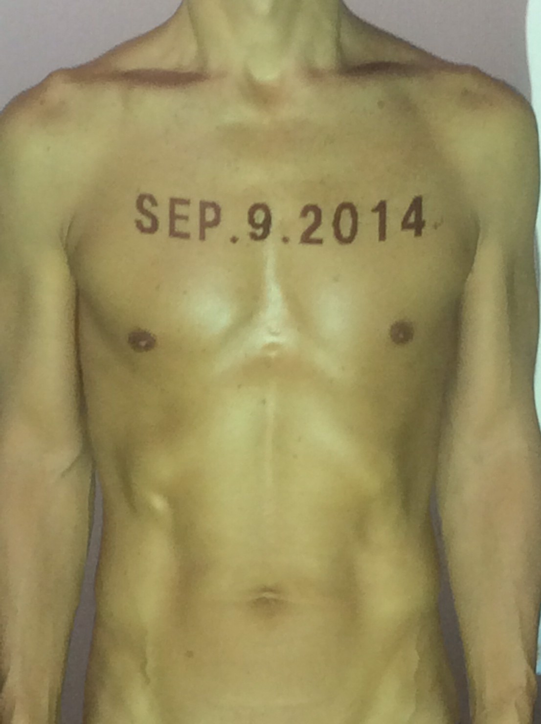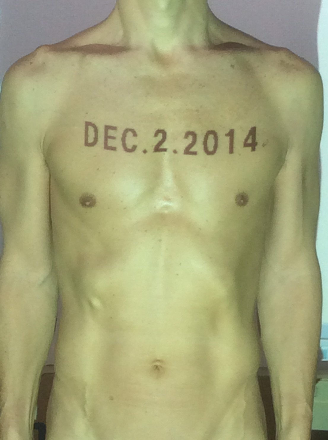伊勢神宮に式年遷宮という20年に一度の儀式がある。常に神の宿る体(社)を若く保つのが目的だが、その町の活性化と儀式や建築技術の継承なども図られている。このことを私自身の体に移し替えて表現している。1年を通して鍛えた身体の変化はYoutubeにアップした。作家の身体 表現する身体 リニューアルボディー 表現する新しい身体(The new body to express) 身体と絵画 The body and pictures 時間的連続性の入れ替え. 身体は時間The body is time 時間に逆らう身体The body opposing time 身体は時間に逆らうThe body opposes time.過ぎ去る身体The body passing away
