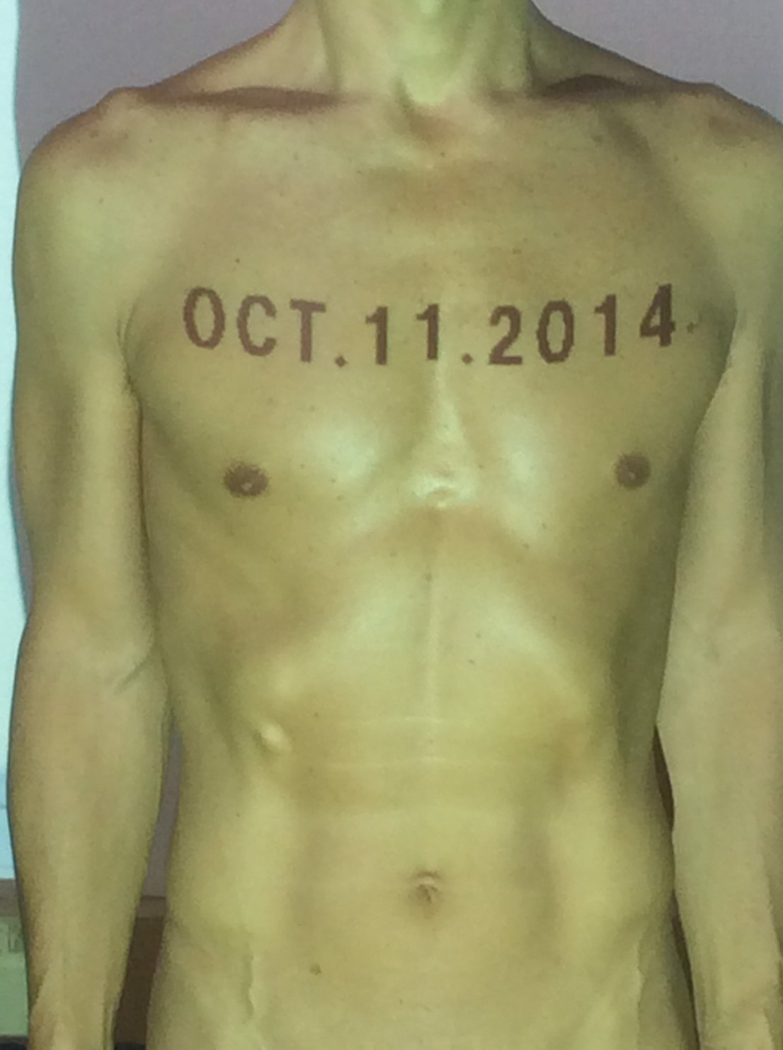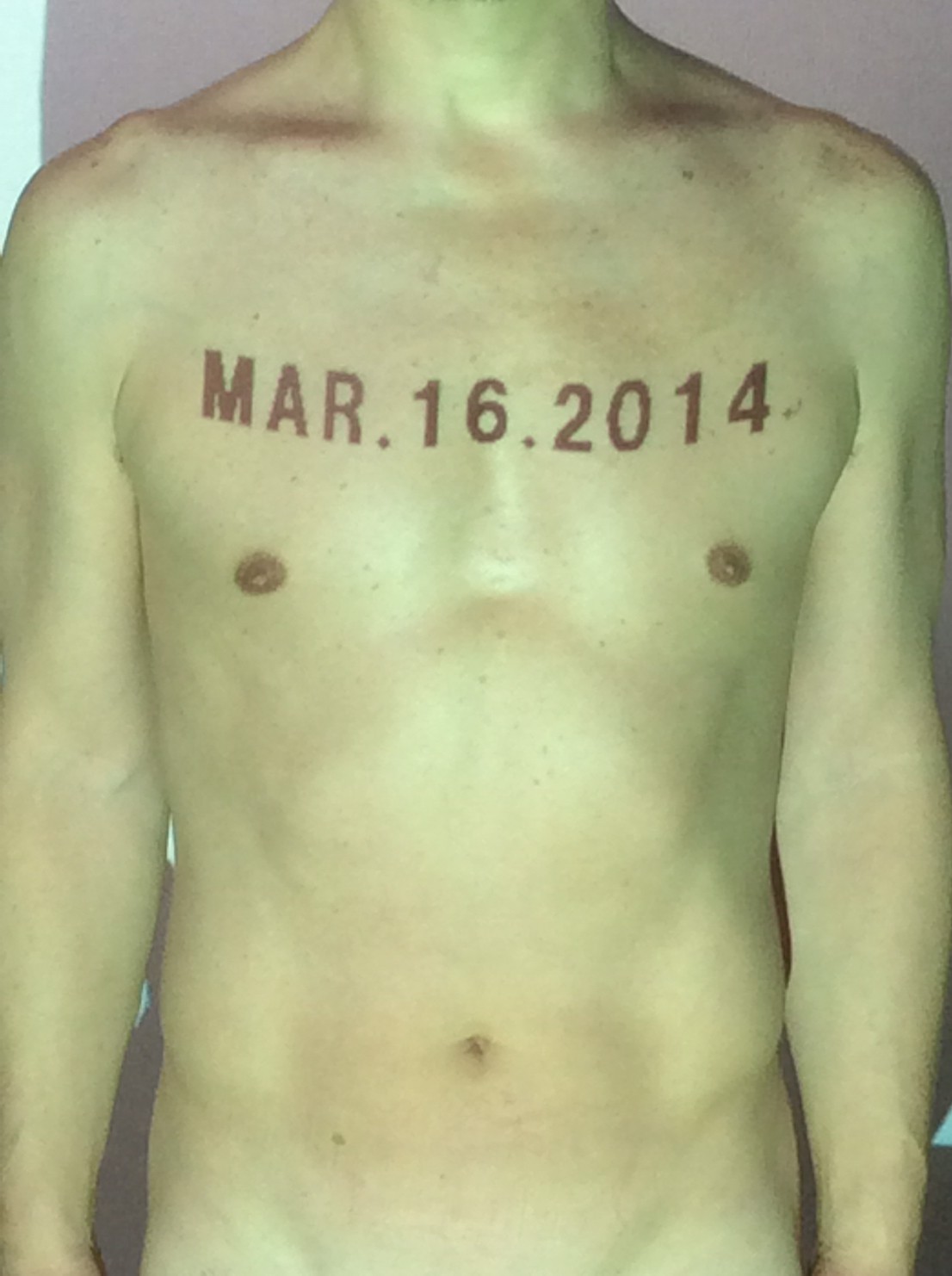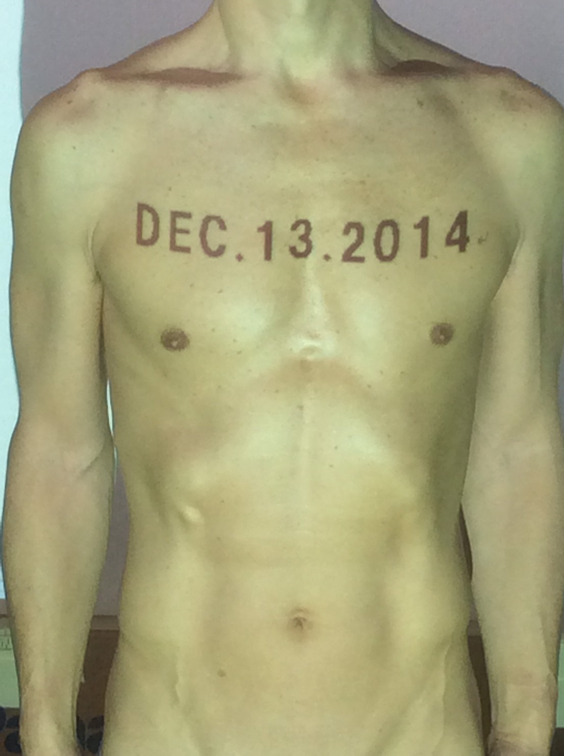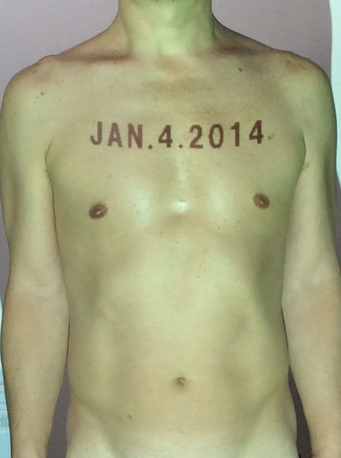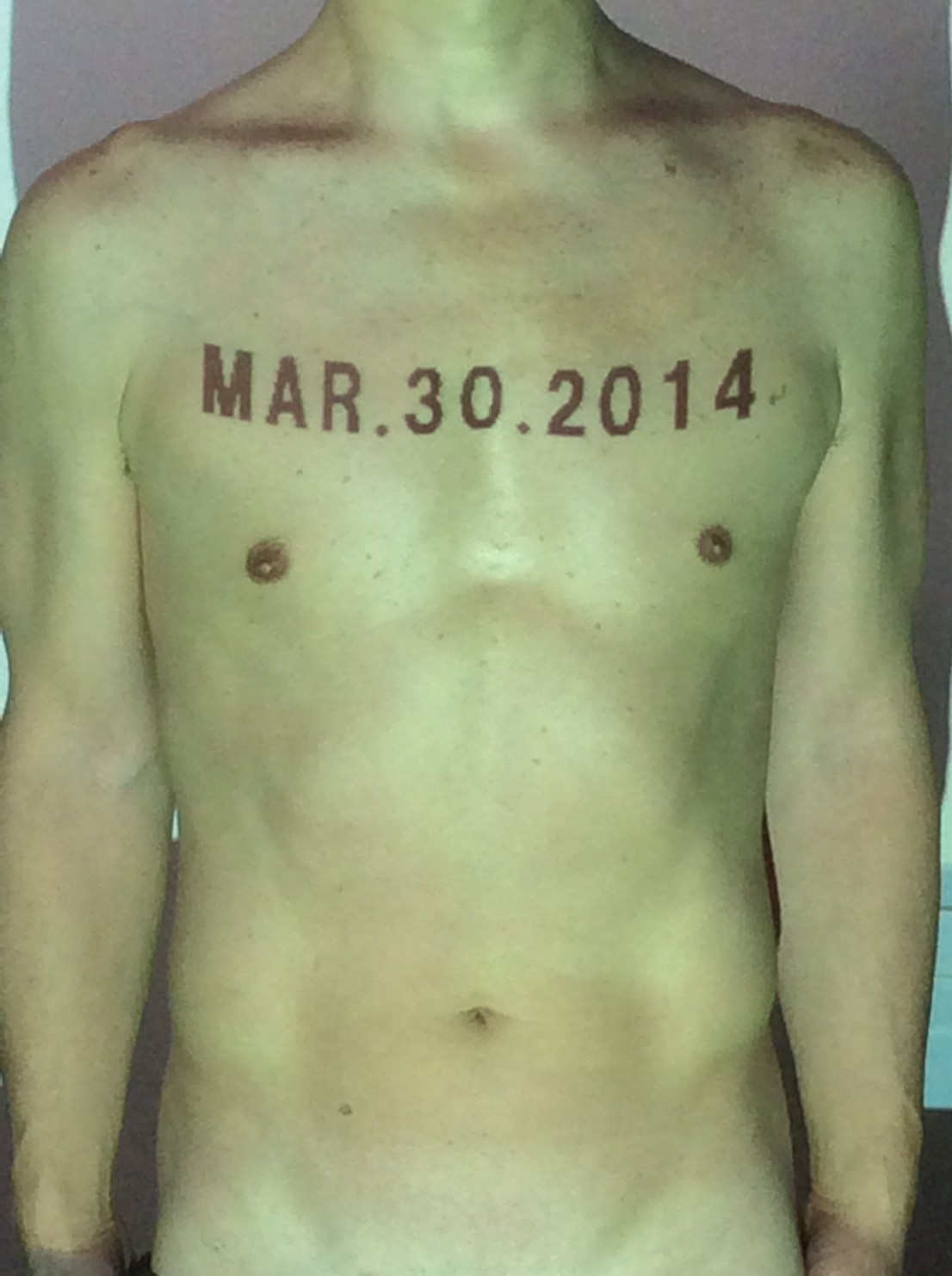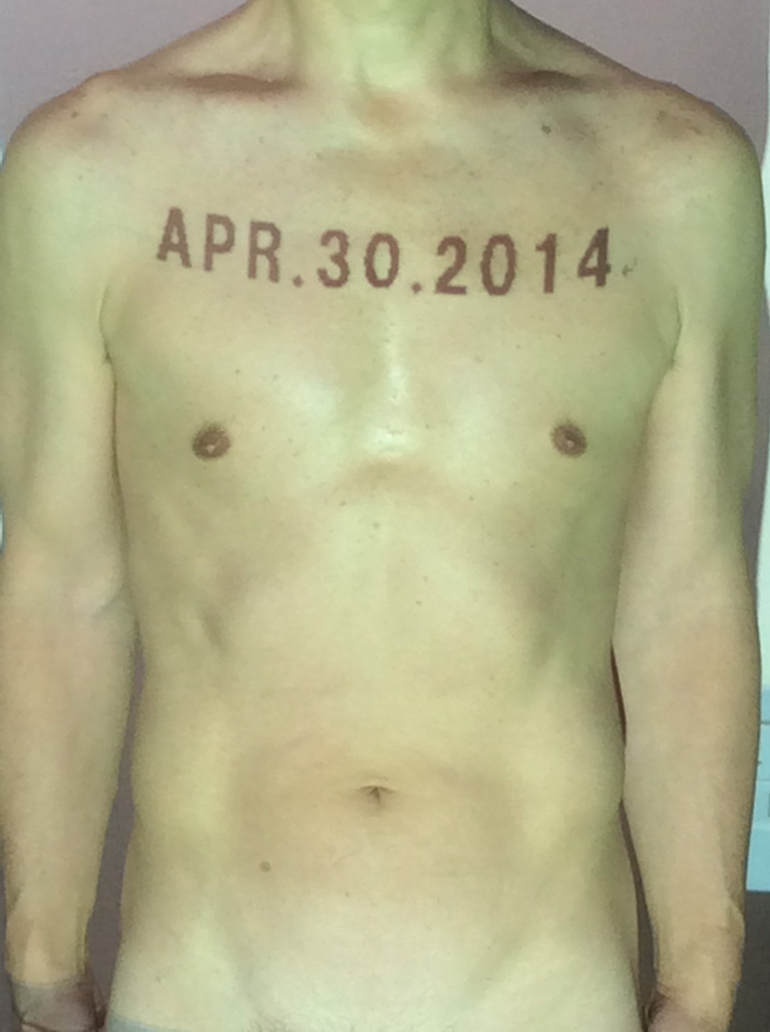 伊勢神宮に式年遷宮という20年に一度の儀式がある。常に神の宿る体(社)を若く保つのが目的だが、その町の活性化と儀式や建築技術の継承なども図られている。このことを私自身の体に移し替えて表現している。1年を通して鍛えた身体の変化はYoutubeにアップした。作家の身体 表現する身体 リニューアルボディー 表現する新しい身体(The new body to express) 身体と絵画 The body and pictures 時間的連続性の入れ替え. 身体は時間The body is time 時間に逆らう身体The body opposing time 身体は時間に逆らうThe body opposes time.過ぎ去る身体The body passing away