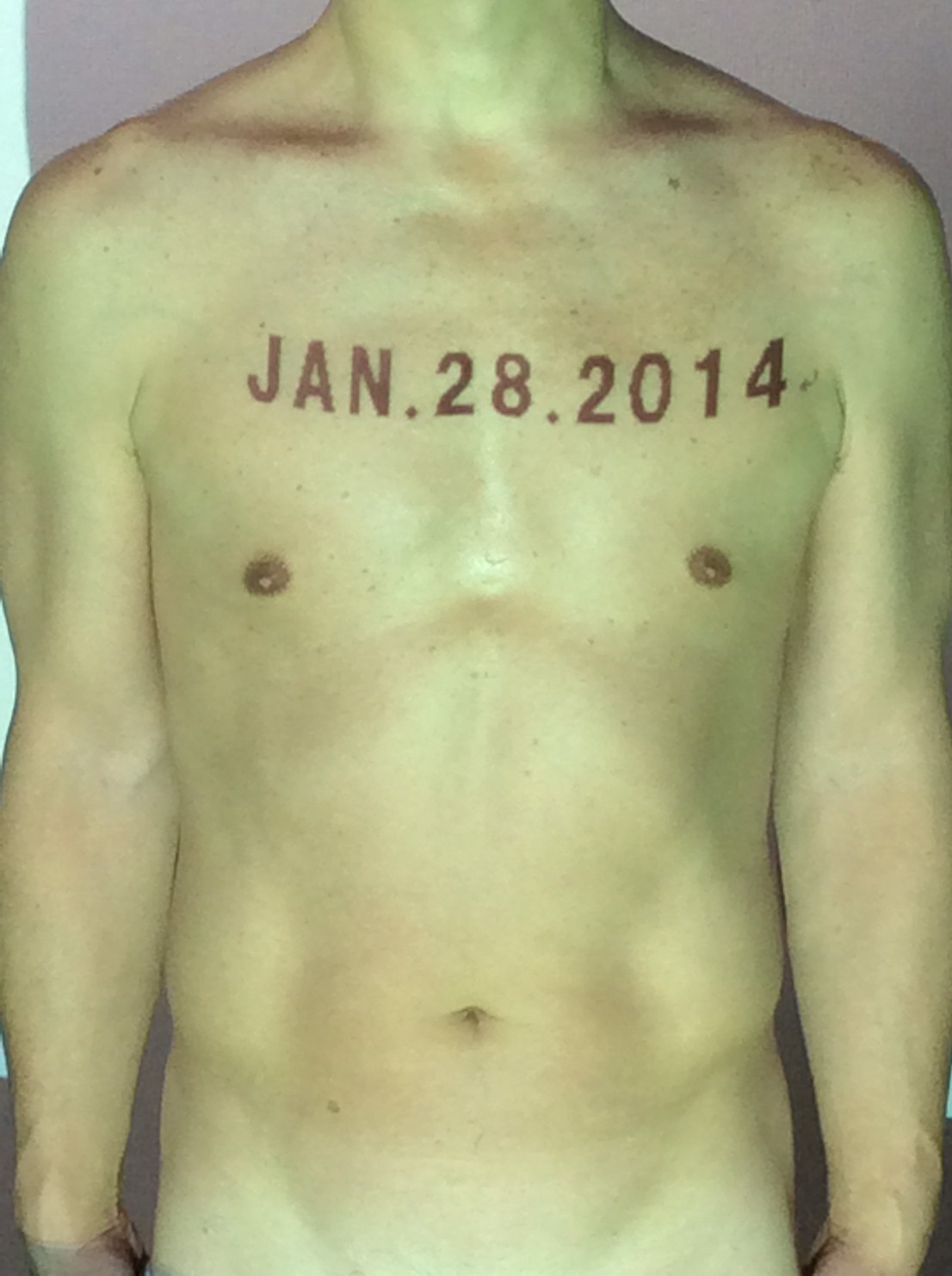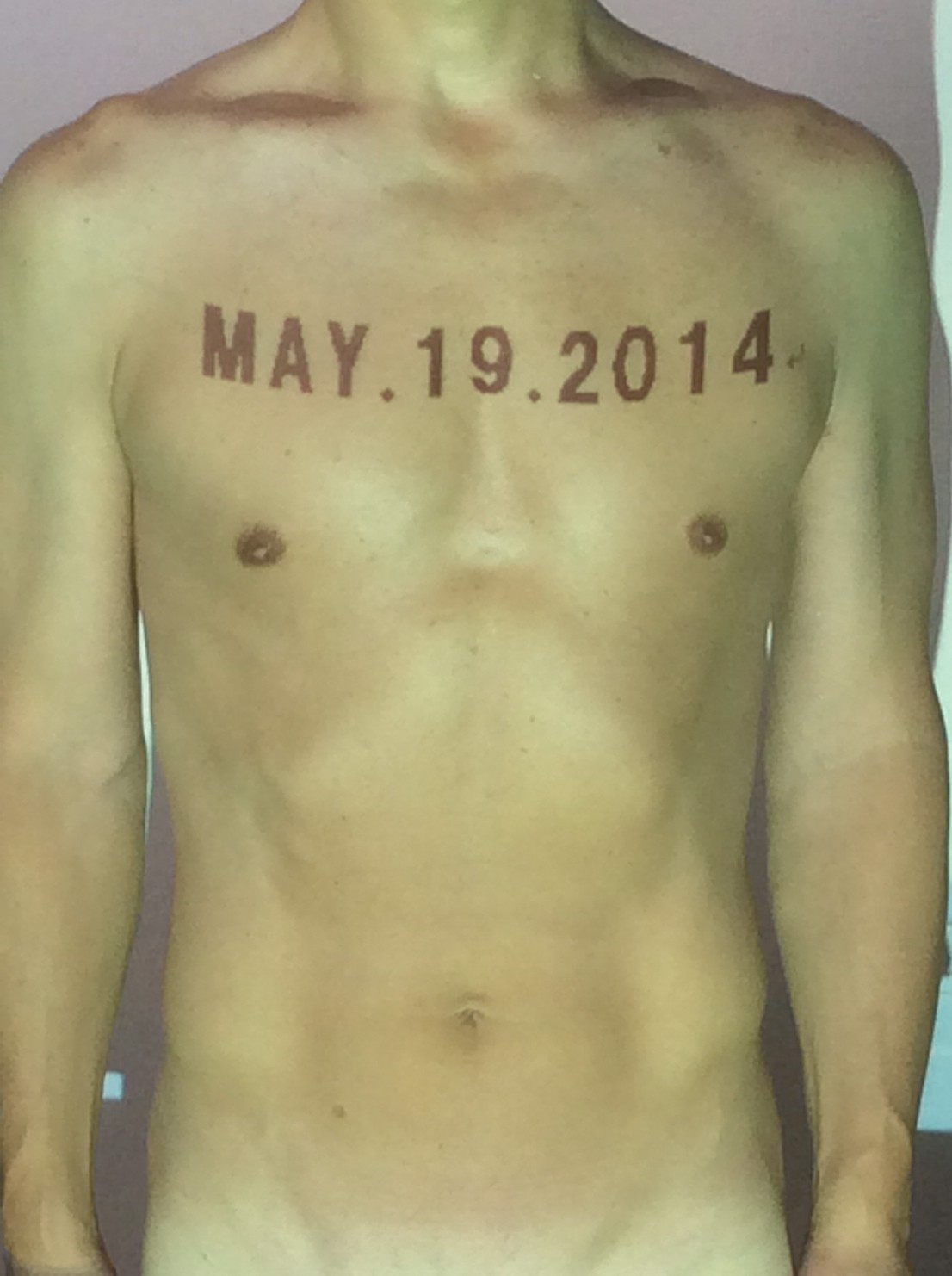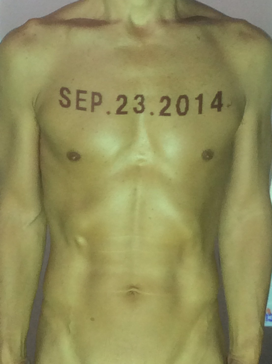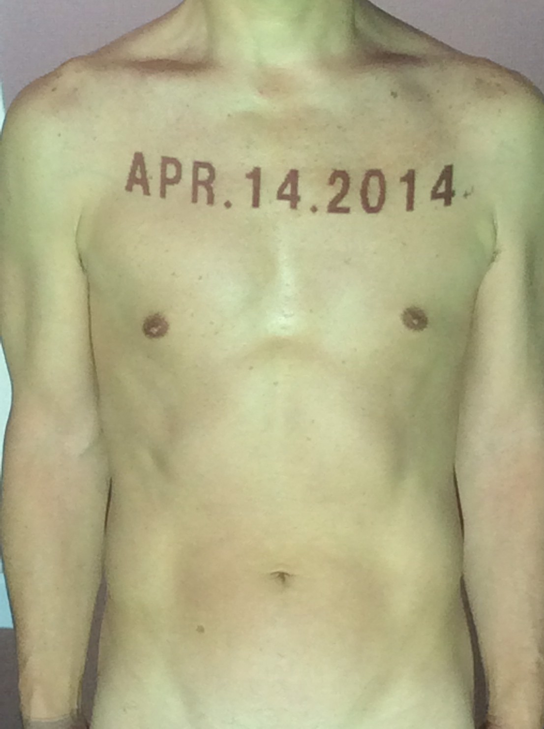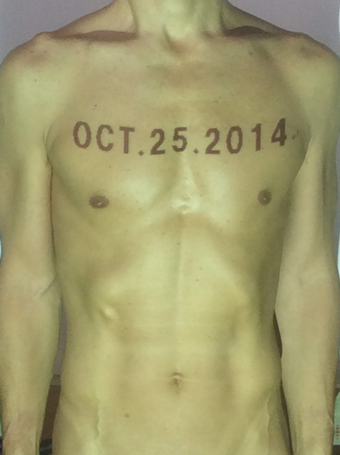 伊勢神宮に式年遷宮という20年に一度の儀式がある。常に神の宿る体(社)を若く保つのが目的だが、その町の活性化と儀式や建築技術の継承なども図られている。このことを私自身の体に移し替えて表現している。1年を通して鍛えた身体の変化はYoutubeにアップした。作家の身体 表現する身体 リニューアルボディー 表現する新しい身体(The new body to express) 身体と絵画 The body and pictures 時間的連続性の入れ替え. 身体は時間The body is time 時間に逆らう身体The body opposing time 身体は時間に逆らうThe body opposes time.過ぎ去る身体The body passing away