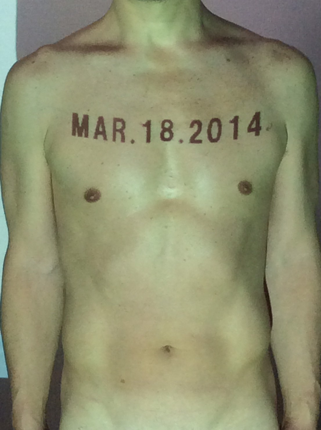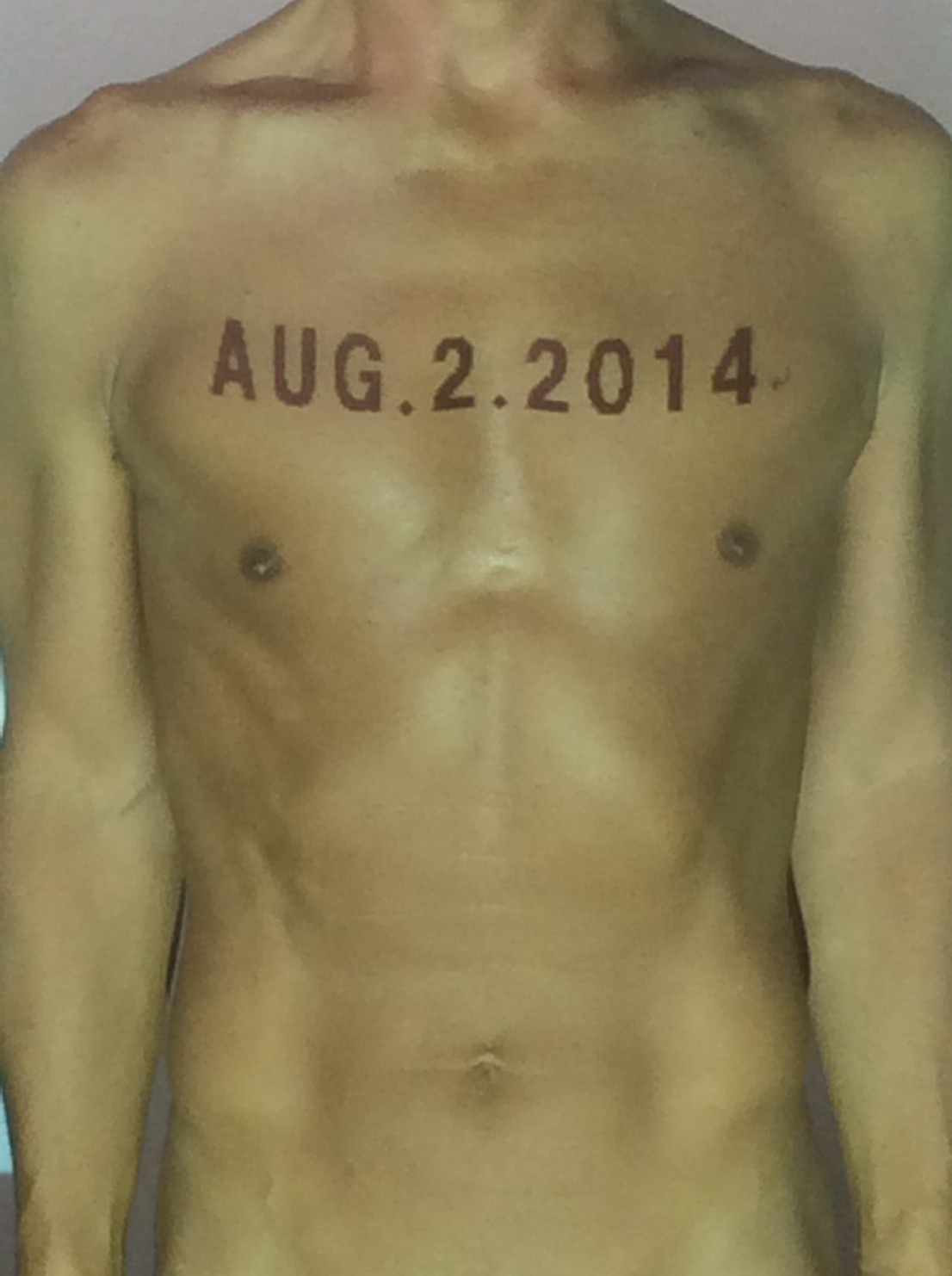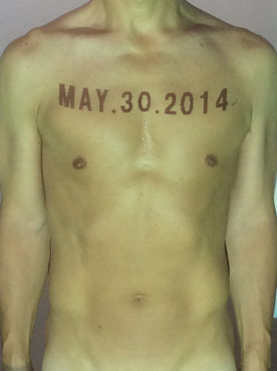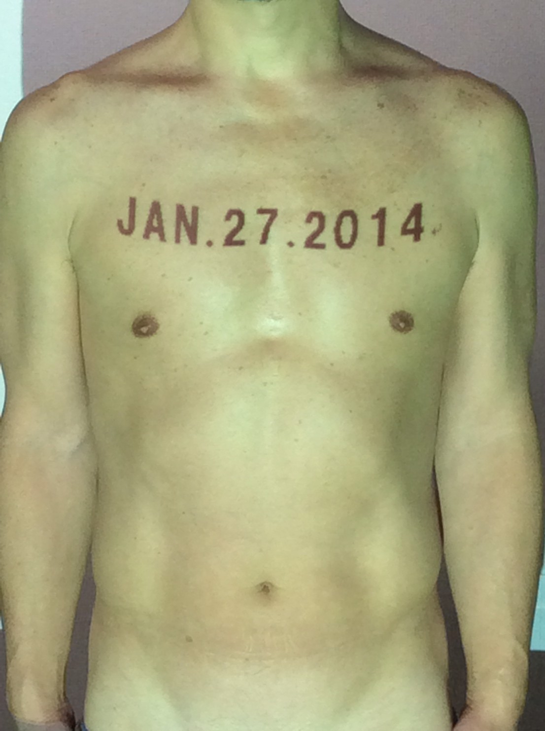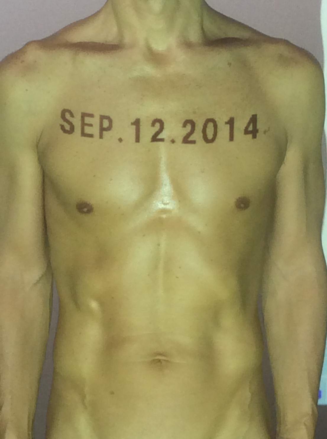 伊勢神宮に式年遷宮という20年に一度の儀式がある。常に神の宿る体(社)を若く保つのが目的だが、その町の活性化と儀式や建築技術の継承なども図られている。このことを私自身の体に移し替えて表現している。1年を通して鍛えた身体の変化はYoutubeにアップした。作家の身体 表現する身体 リニューアルボディー 表現する新しい身体(The new body to express) 身体と絵画 The body and pictures 時間的連続性の入れ替え. 身体は時間The body is time 時間に逆らう身体The body opposing time 身体は時間に逆らうThe body opposes time.過ぎ去る身体The body passing away