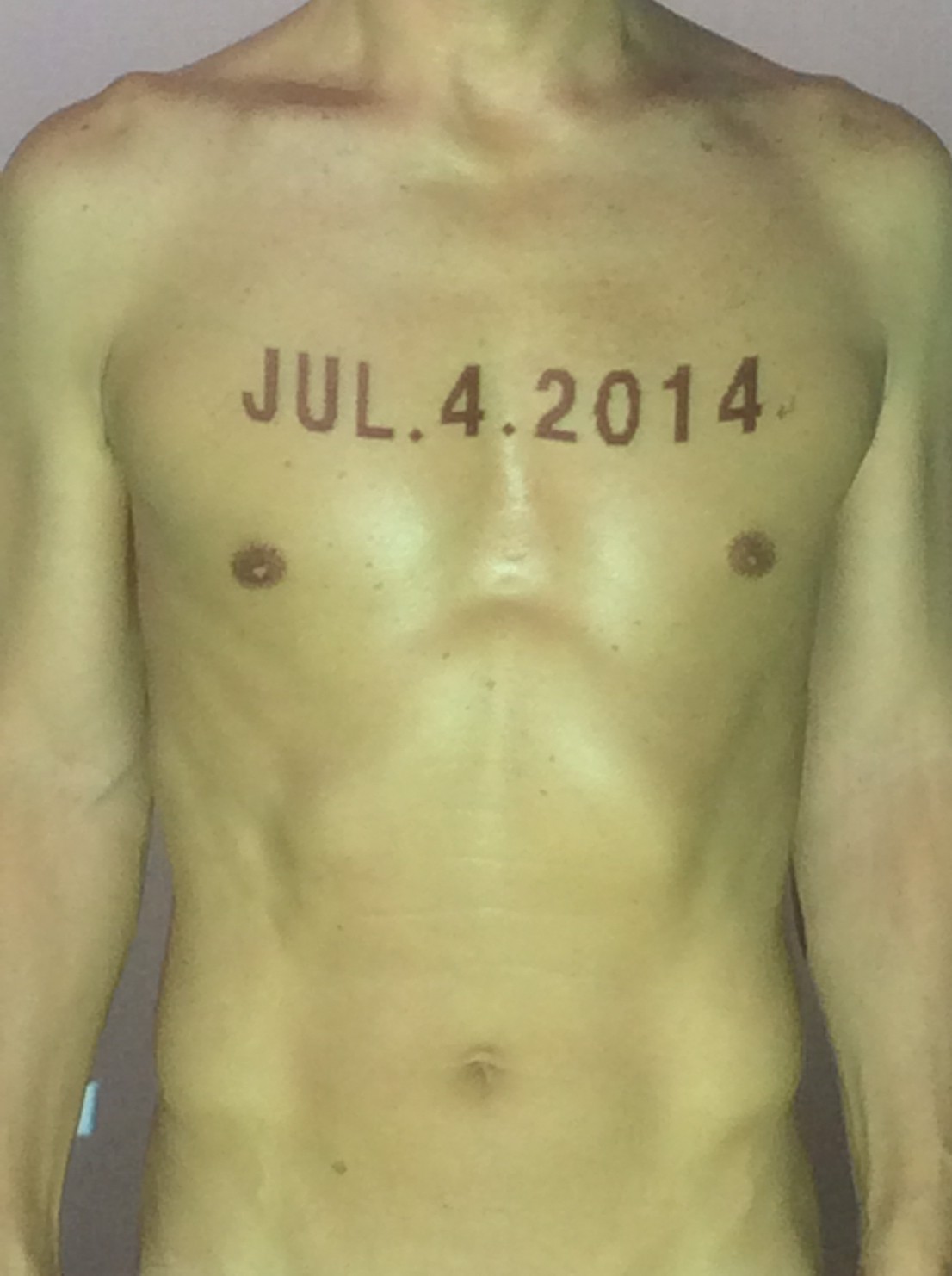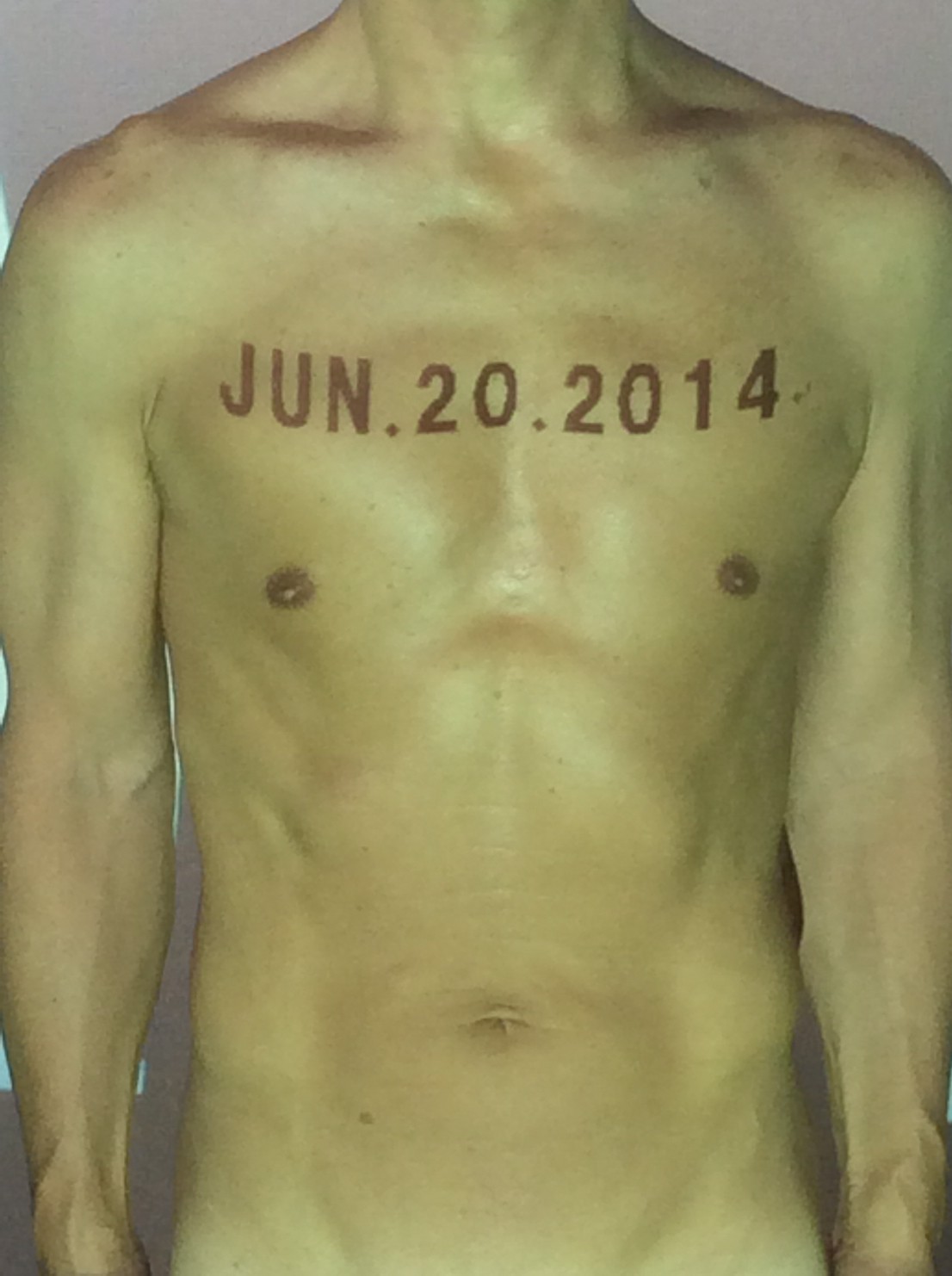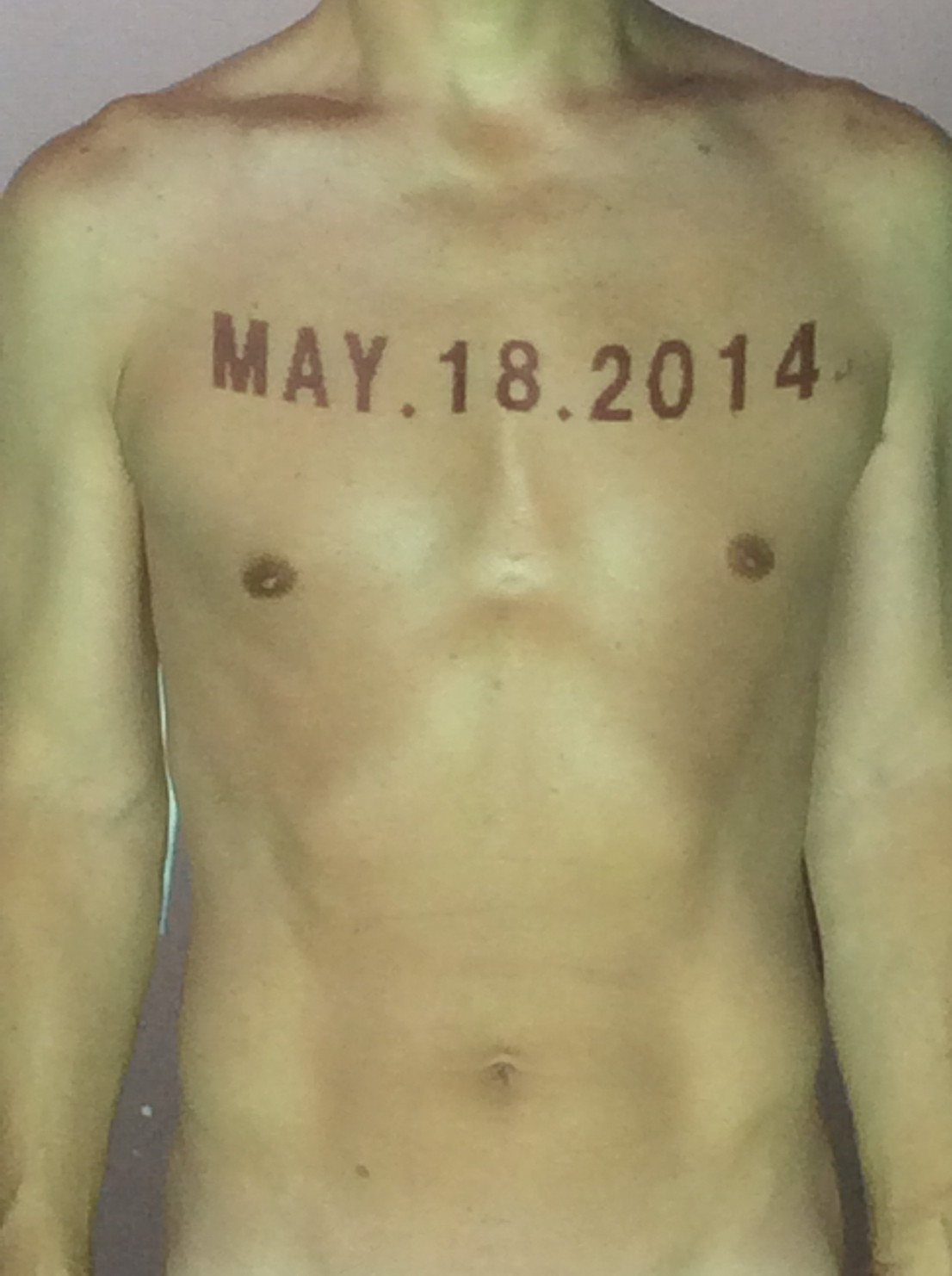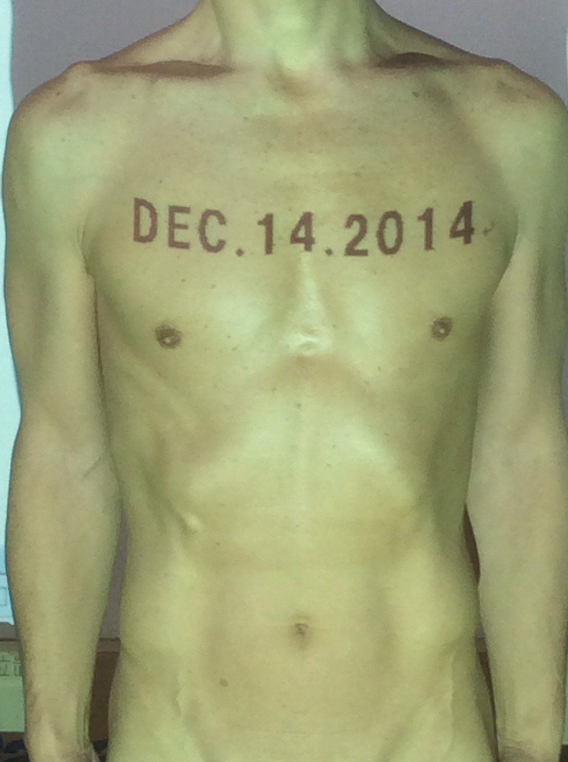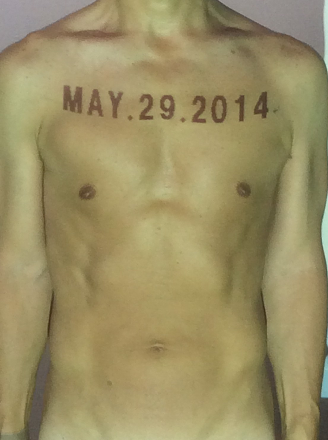 伊勢神宮に式年遷宮という20年に一度の儀式がある。常に神の宿る体(社)を若く保つのが目的だが、その町の活性化と儀式や建築技術の継承なども図られている。このことを私自身の体に移し替えて表現している。1年を通して鍛えた身体の変化はYoutubeにアップした。作家の身体 表現する身体 リニューアルボディー 表現する新しい身体(The new body to express) 身体と絵画 The body and pictures 時間的連続性の入れ替え. 身体は時間The body is time 時間に逆らう身体The body opposing time 身体は時間に逆らうThe body opposes time.過ぎ去る身体The body passing away