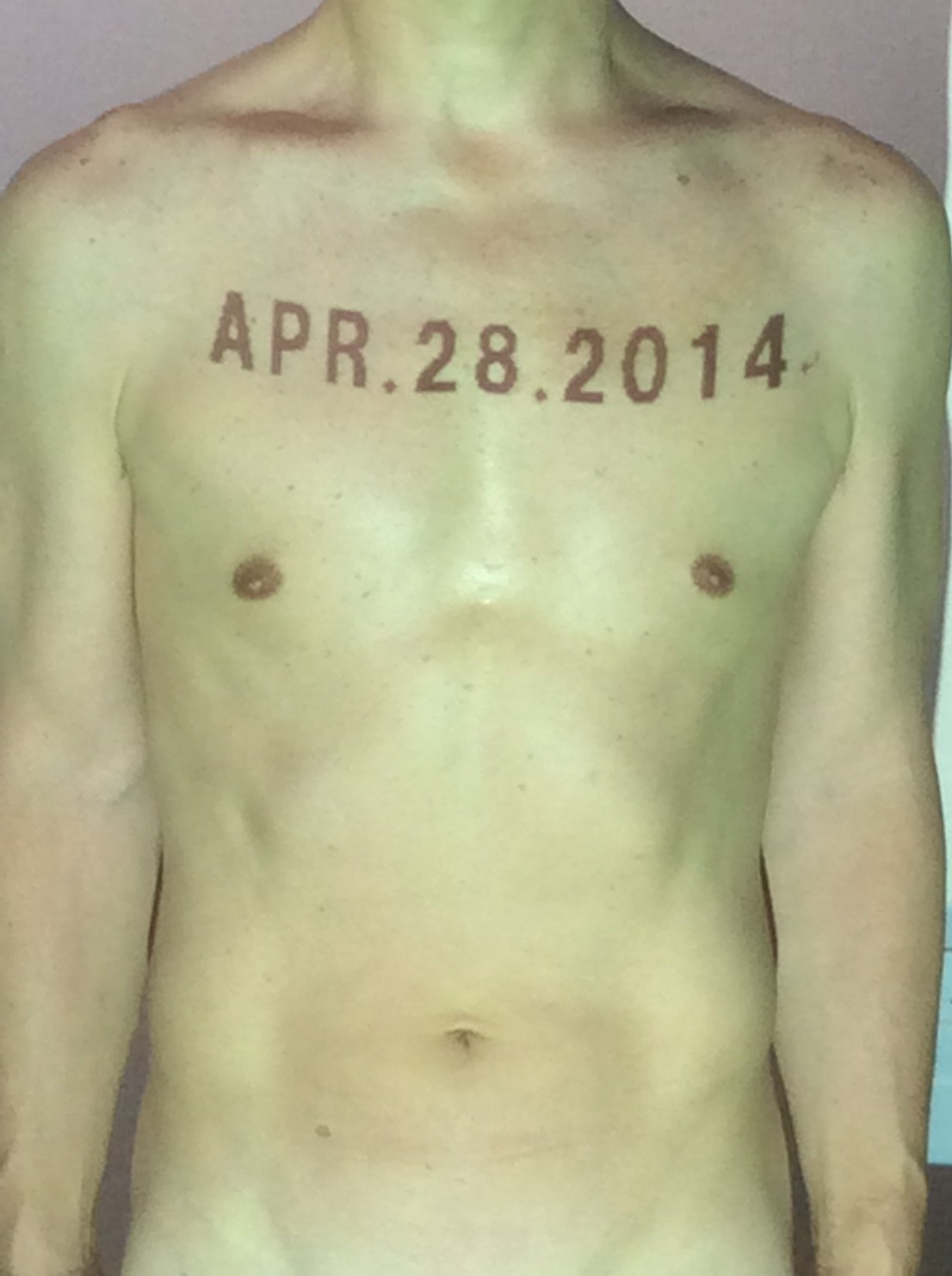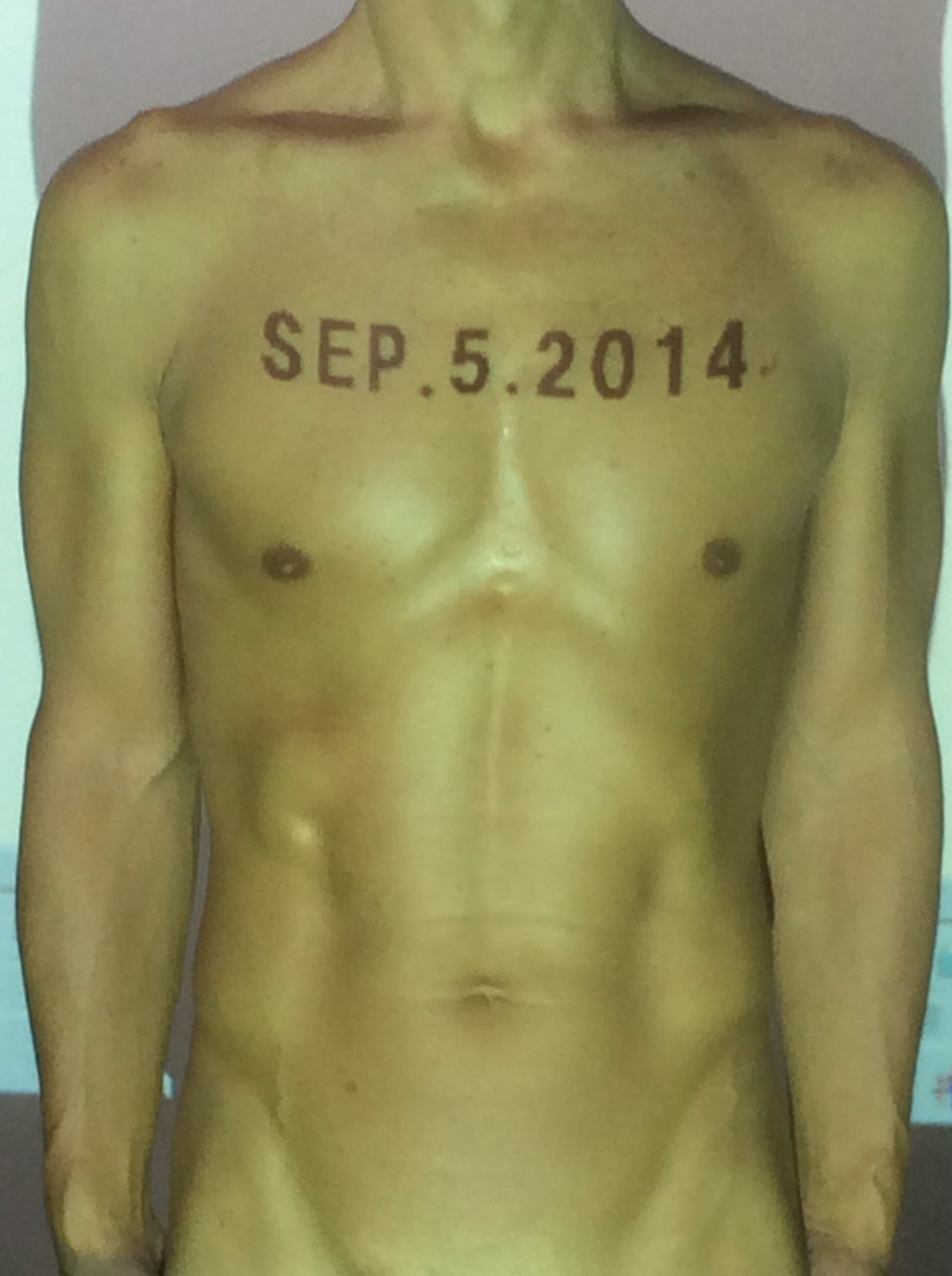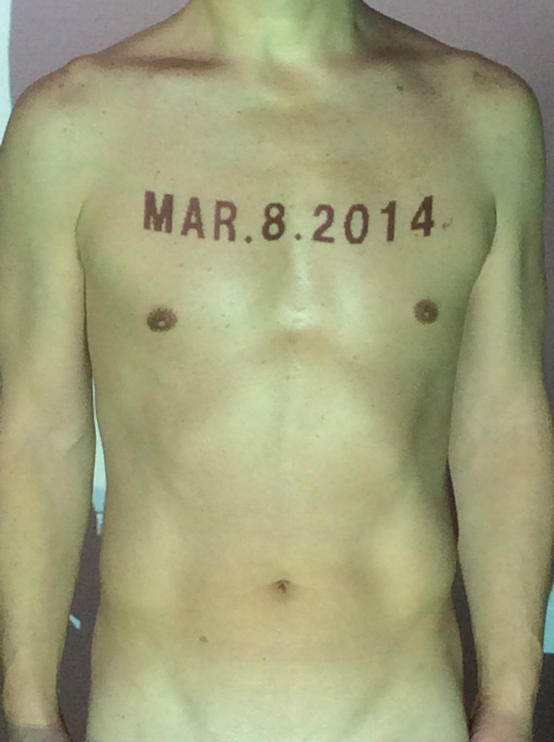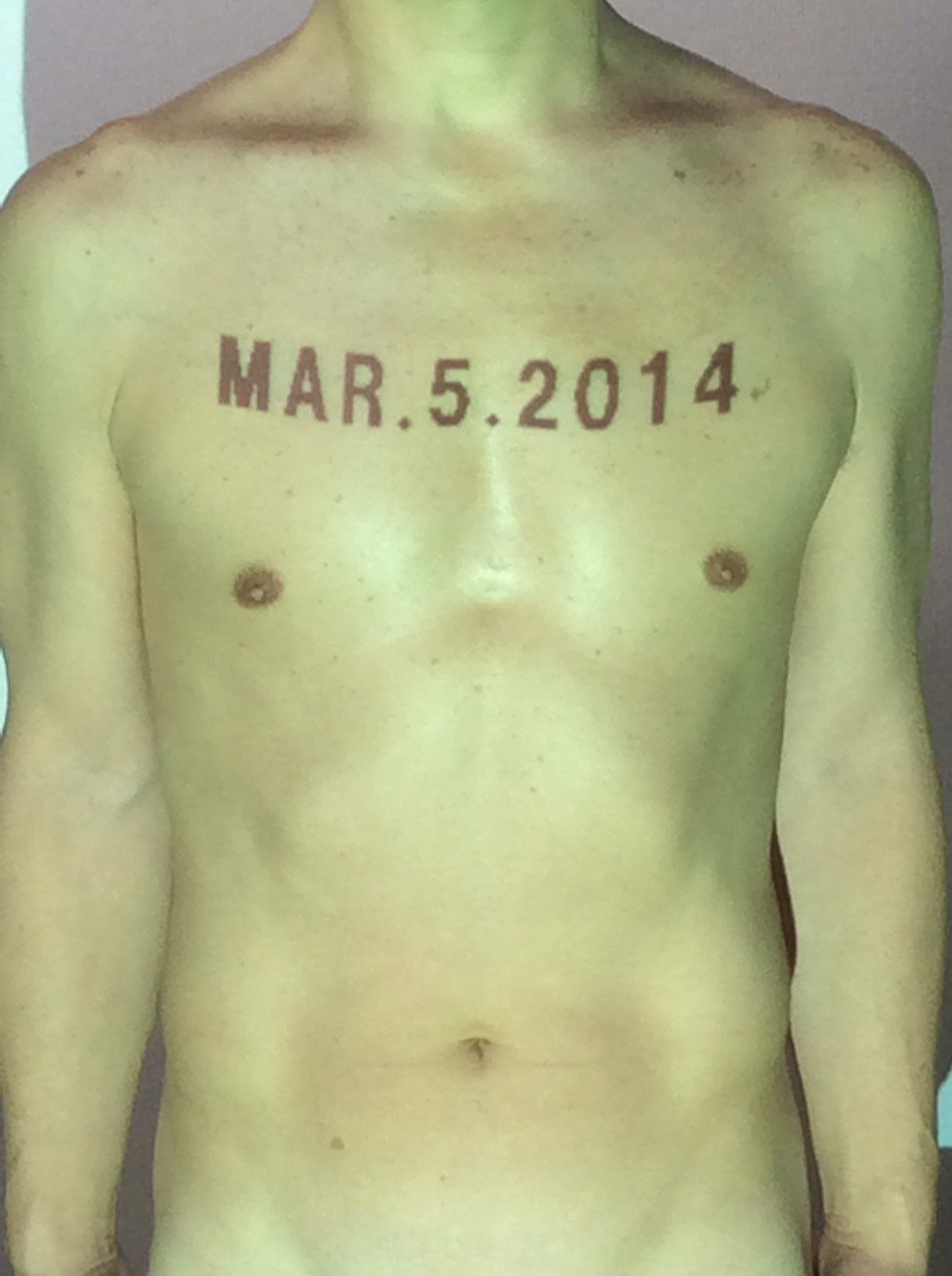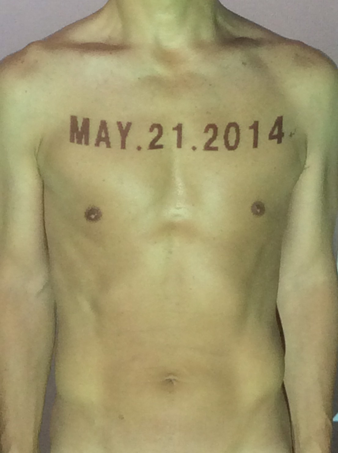 伊勢神宮に式年遷宮という20年に一度の儀式がある。常に神の宿る体(社)を若く保つのが目的だが、その町の活性化と儀式や建築技術の継承なども図られている。このことを私自身の体に移し替えて表現している。1年を通して鍛えた身体の変化はYoutubeにアップした。作家の身体 表現する身体 リニューアルボディー 表現する新しい身体(The new body to express) 身体と絵画 The body and pictures 時間的連続性の入れ替え. 身体は時間The body is time 時間に逆らう身体The body opposing time 身体は時間に逆らうThe body opposes time.過ぎ去る身体The body passing away
