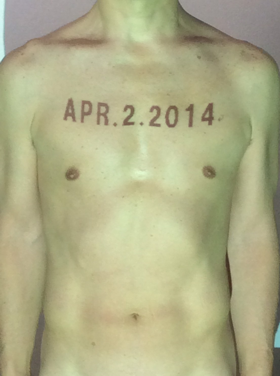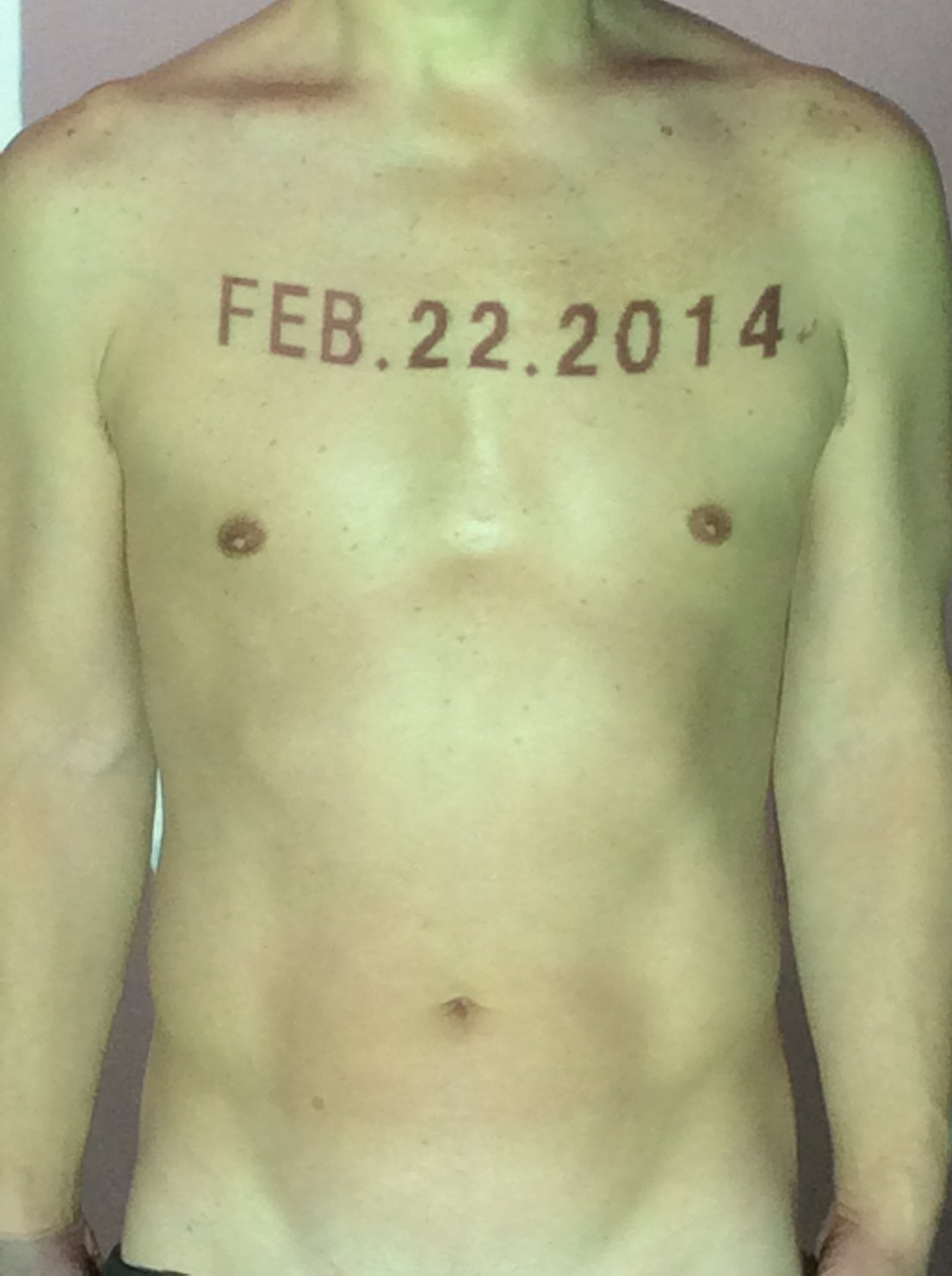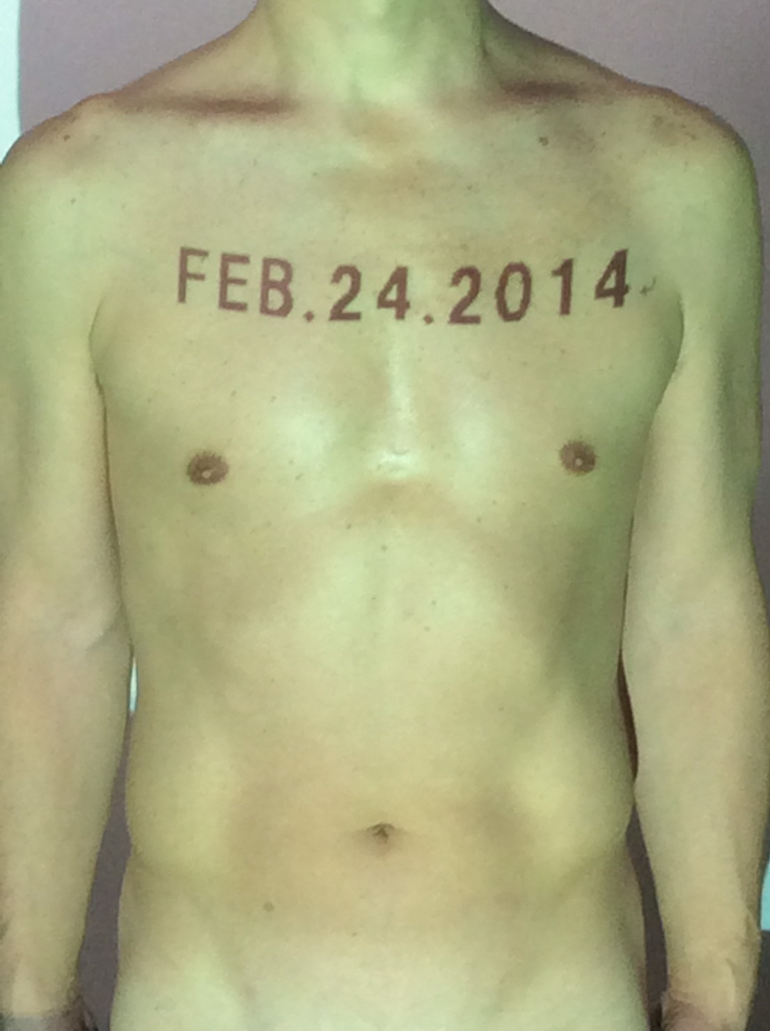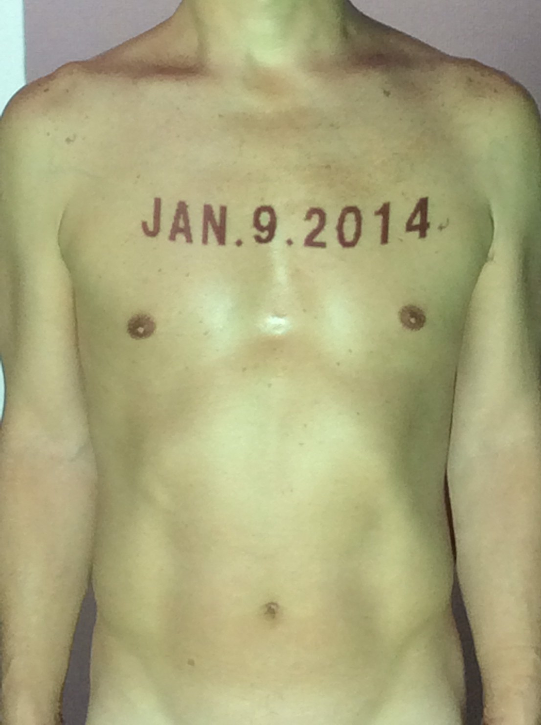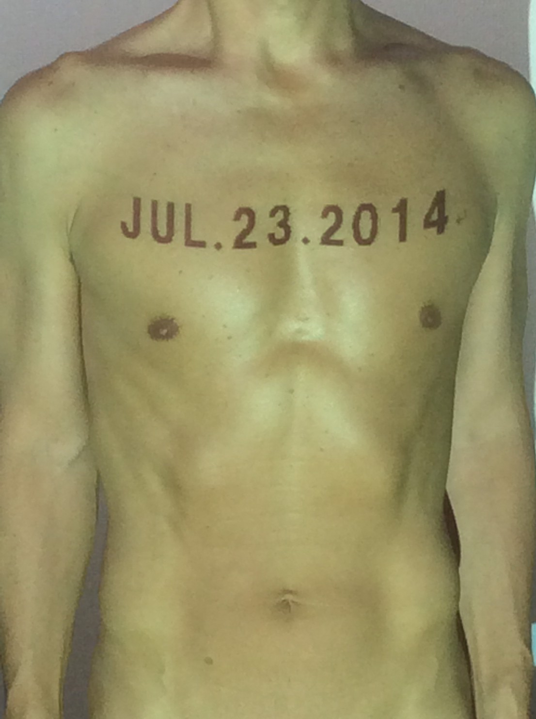 伊勢神宮に式年遷宮という20年に一度の儀式がある。常に神の宿る体(社)を若く保つのが目的だが、その町の活性化と儀式や建築技術の継承なども図られている。このことを私自身の体に移し替えて表現している。1年を通して鍛えた身体の変化はYoutubeにアップした。作家の身体 表現する身体 リニューアルボディー 表現する新しい身体(The new body to express) 身体と絵画 The body and pictures 時間的連続性の入れ替え. 身体は時間The body is time 時間に逆らう身体The body opposing time 身体は時間に逆らうThe body opposes time.過ぎ去る身体The body passing away