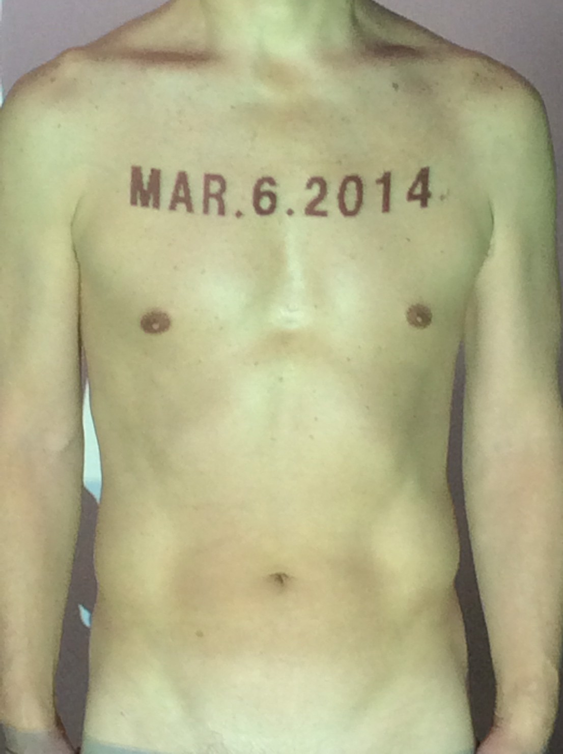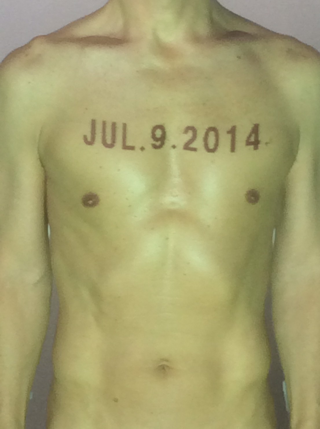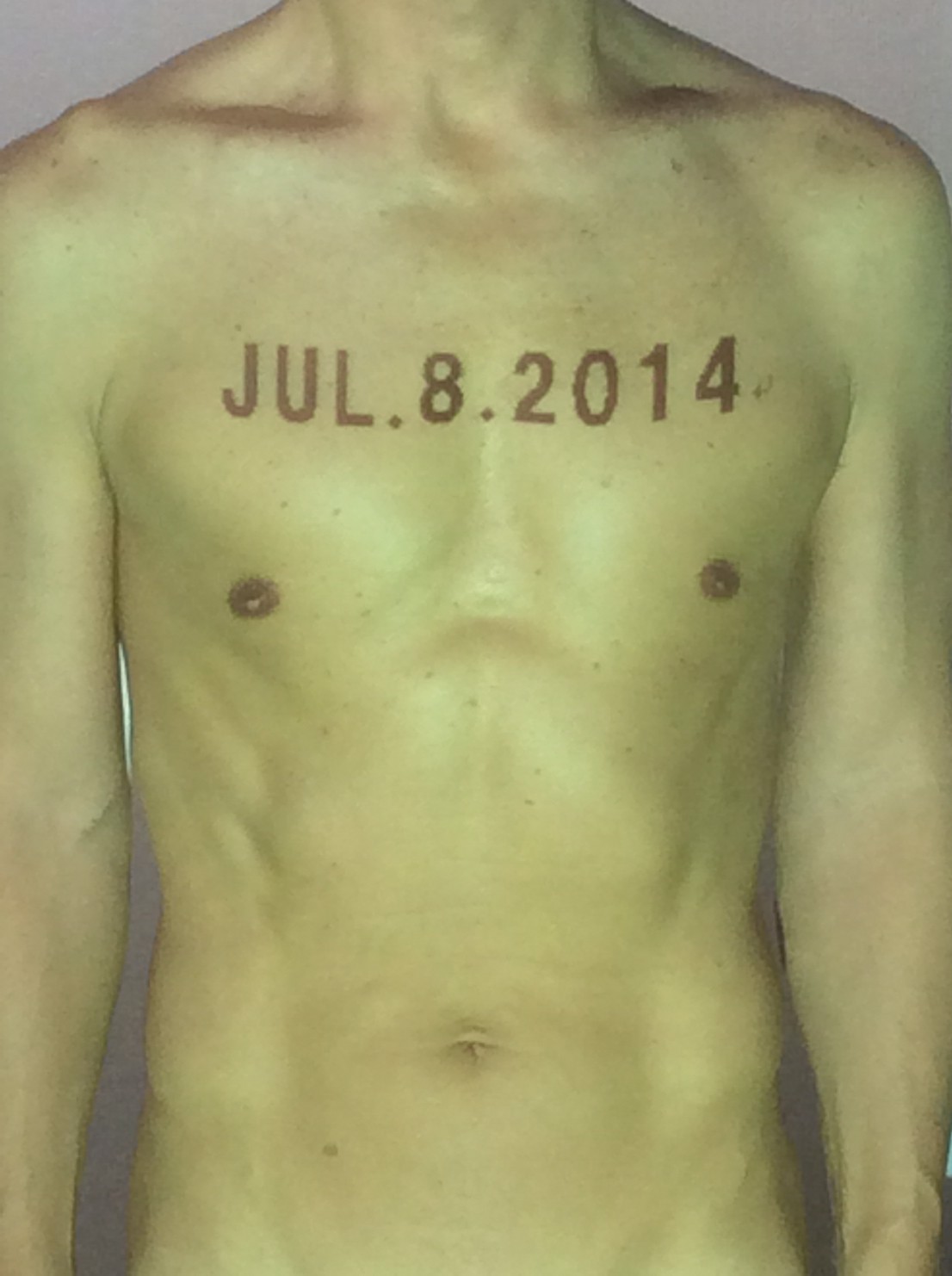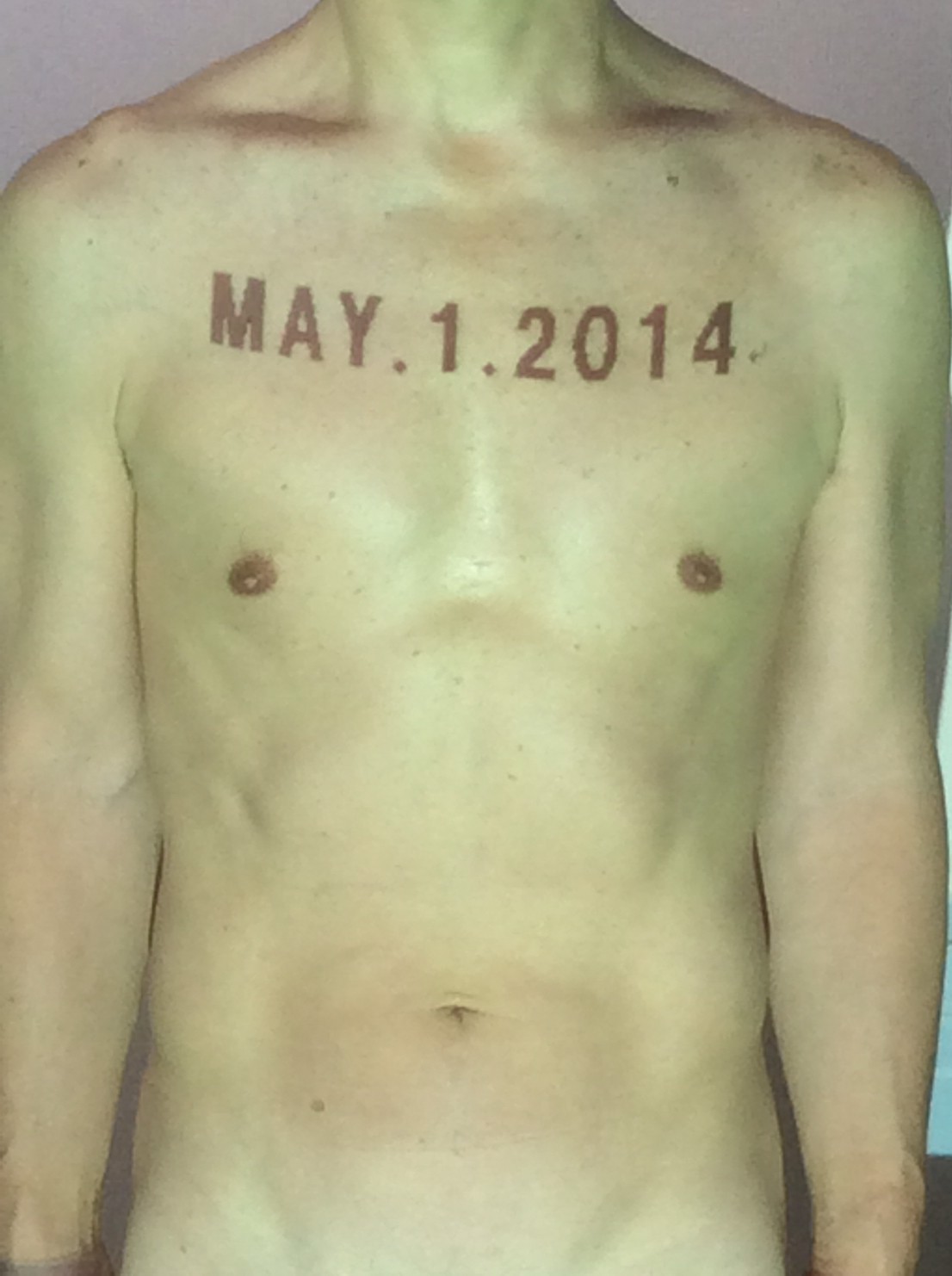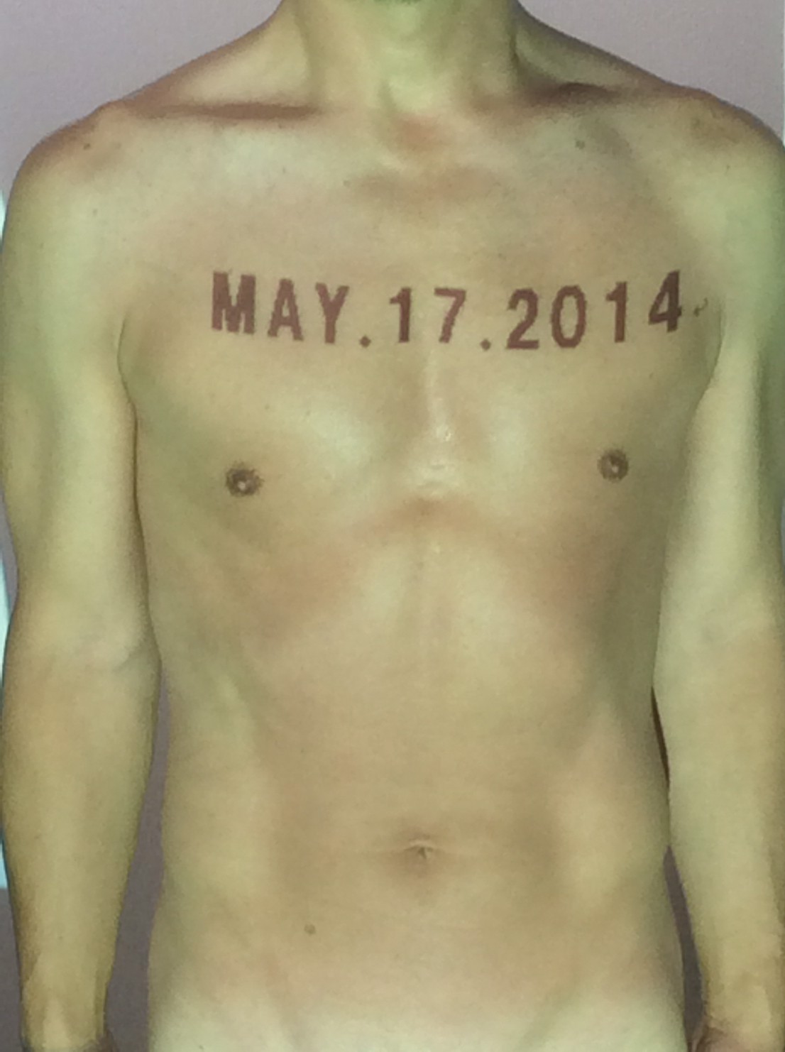 伊勢神宮に式年遷宮という20年に一度の儀式がある。常に神の宿る体(社)を若く保つのが目的だが、その町の活性化と儀式や建築技術の継承なども図られている。このことを私自身の体に移し替えて表現している。1年を通して鍛えた身体の変化はYoutubeにアップした。作家の身体 表現する身体 リニューアルボディー 表現する新しい身体(The new body to express) 身体と絵画 The body and pictures 時間的連続性の入れ替え. 身体は時間The body is time 時間に逆らう身体The body opposing time 身体は時間に逆らうThe body opposes time.過ぎ去る身体The body passing away