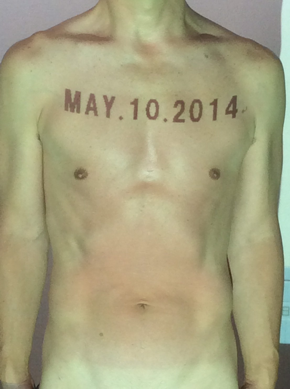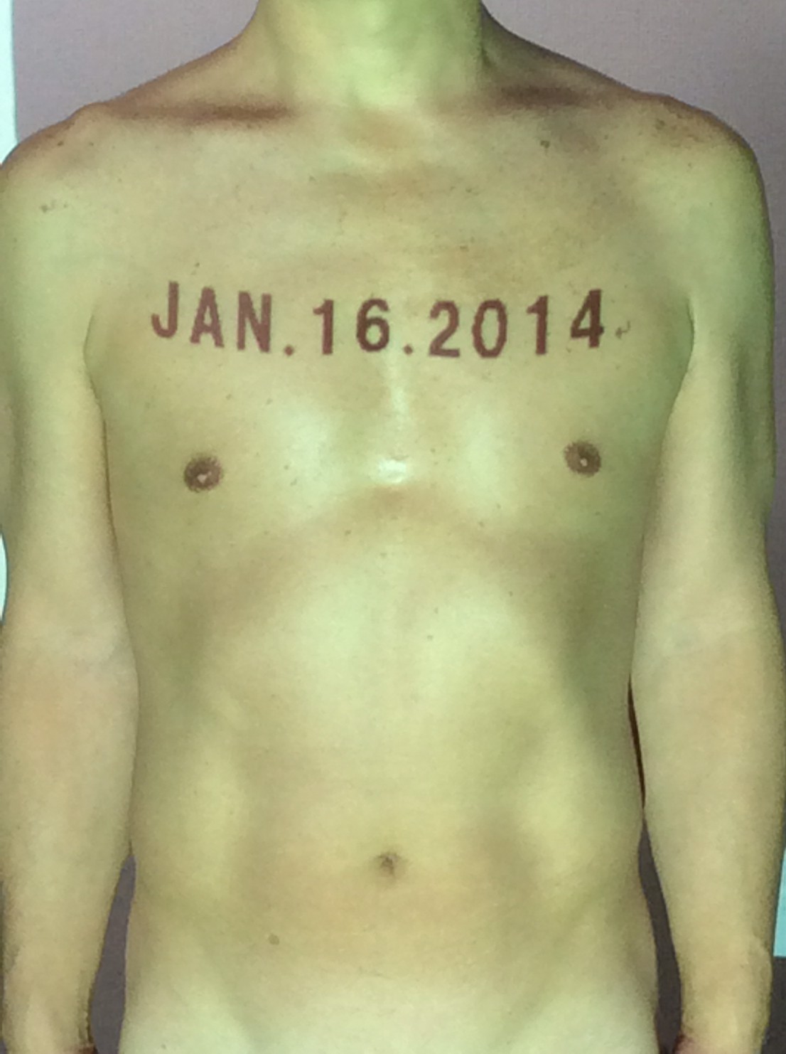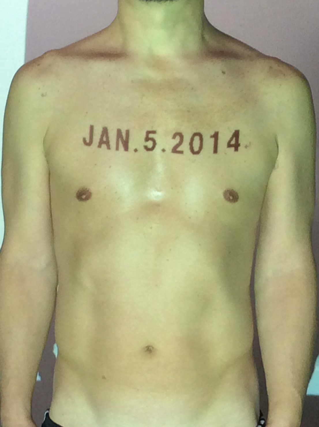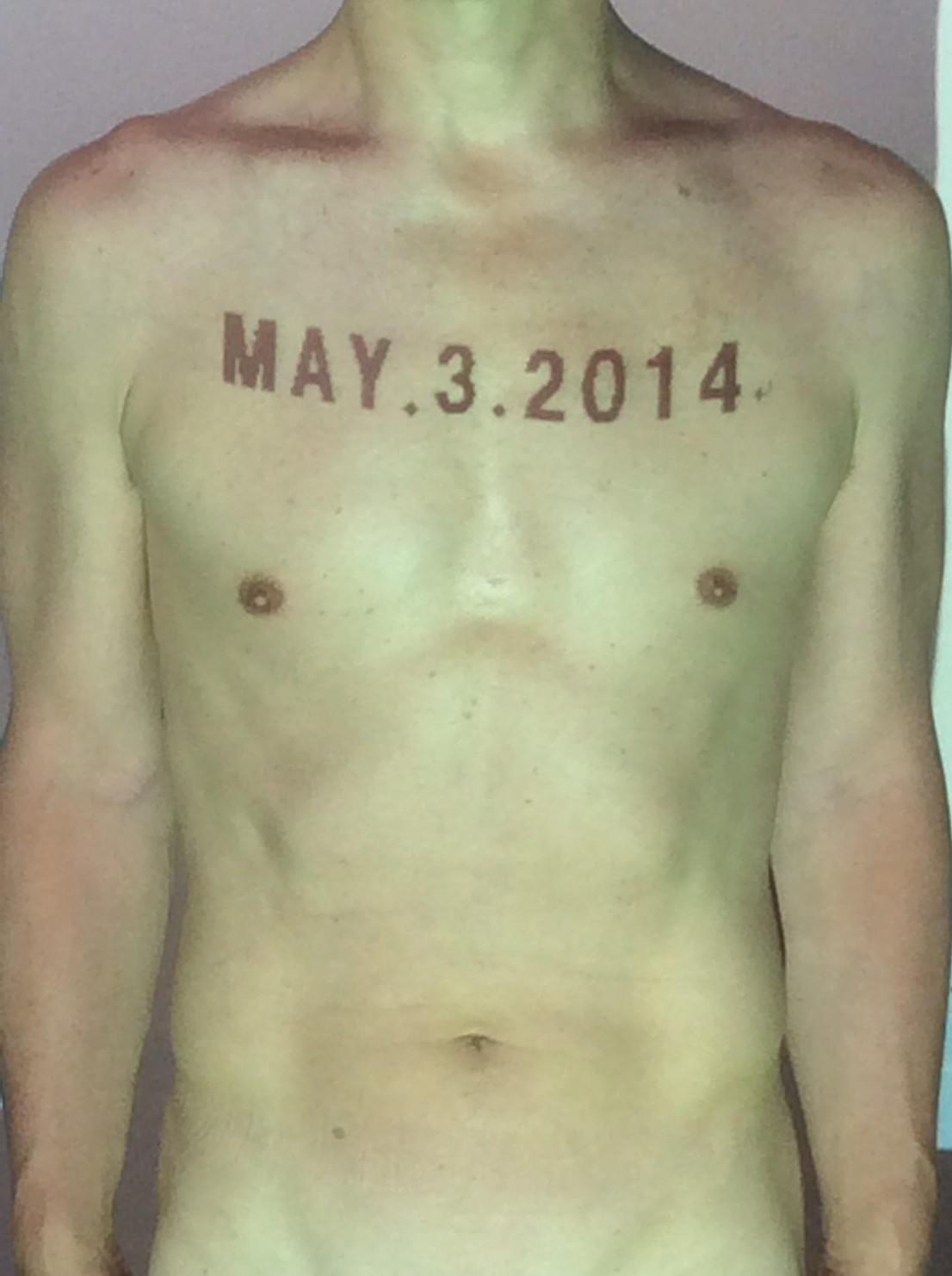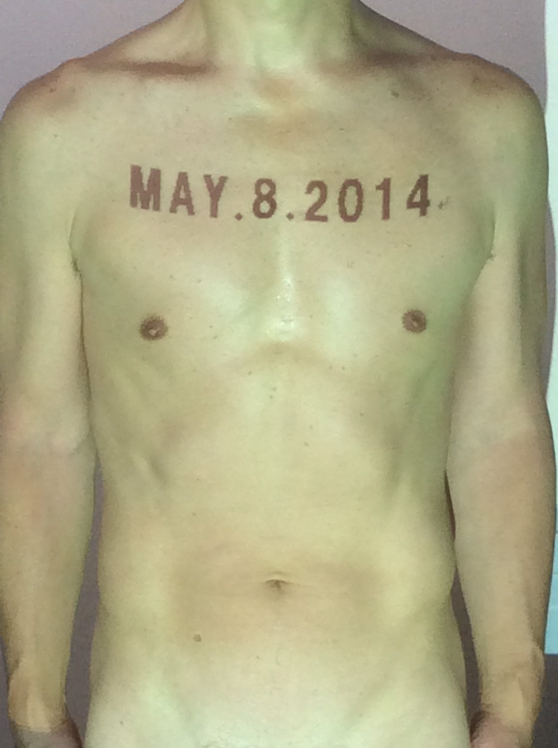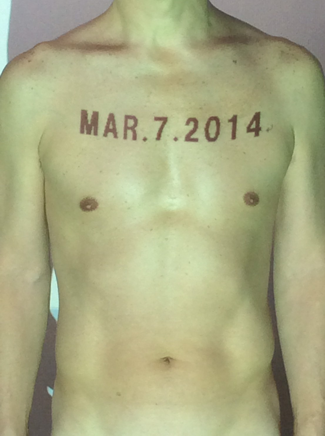 伊勢神宮に式年遷宮という20年に一度の儀式がある。常に神の宿る体(社)を若く保つのが目的だが、その町の活性化と儀式や建築技術の継承なども図られている。このことを私自身の体に移し替えて表現している。1年を通して鍛えた身体の変化はYoutubeにアップした。作家の身体 表現する身体 リニューアルボディー 表現する新しい身体(The new body to express) 身体と絵画 The body and pictures 時間的連続性の入れ替え. 身体は時間The body is time 時間に逆らう身体The body opposing time 身体は時間に逆らうThe body opposes time.過ぎ去る身体The body passing away