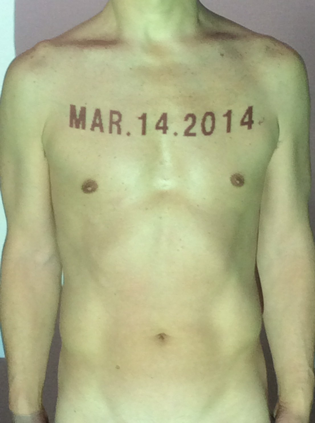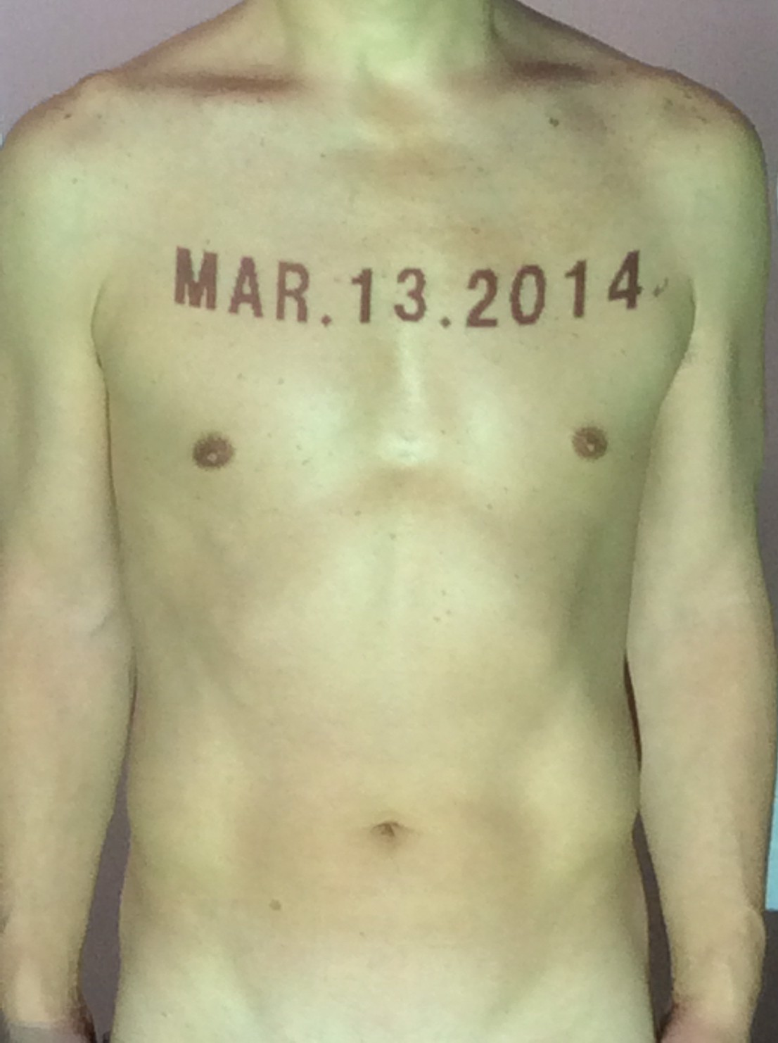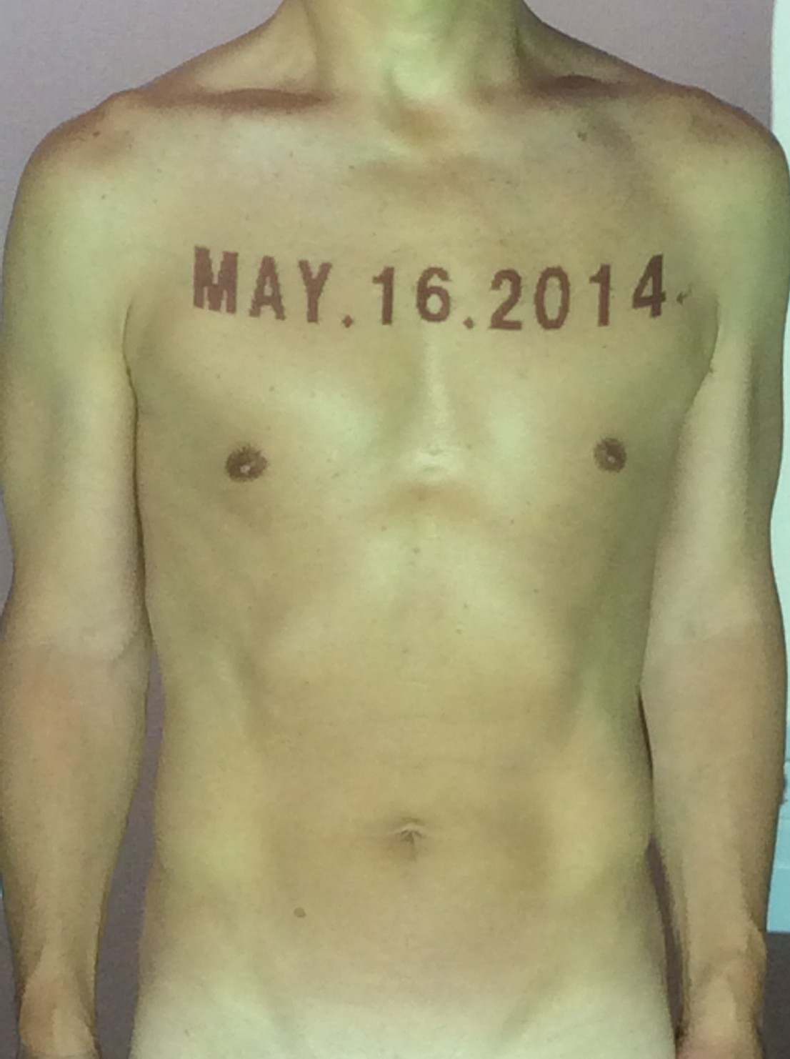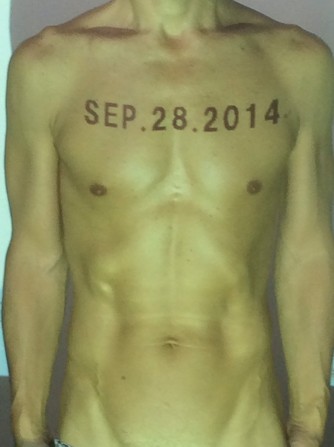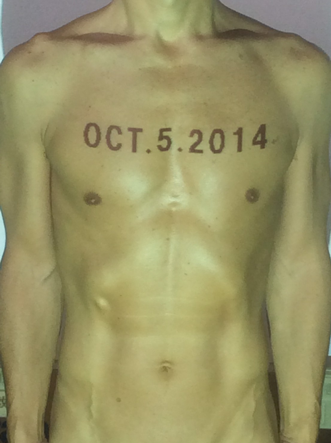伊勢神宮に式年遷宮という20年に一度の儀式がある。常に神の宿る体(社)を若く保つのが目的だが、その町の活性化と儀式や建築技術の継承なども図られている。このことを私自身の体に移し替えて表現している。1年を通して鍛えた身体の変化はYoutubeにアップした。作家の身体 表現する身体 リニューアルボディー 表現する新しい身体(The new body to express) 身体と絵画 The body and pictures 時間的連続性の入れ替え. 身体は時間The body is time 時間に逆らう身体The body opposing time 身体は時間に逆らうThe body opposes time.過ぎ去る身体The body passing away