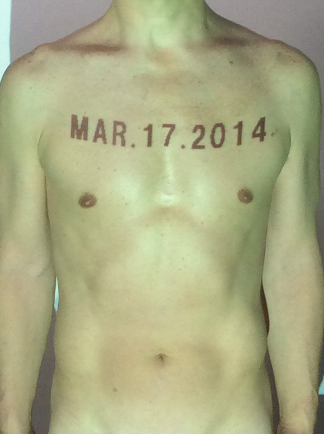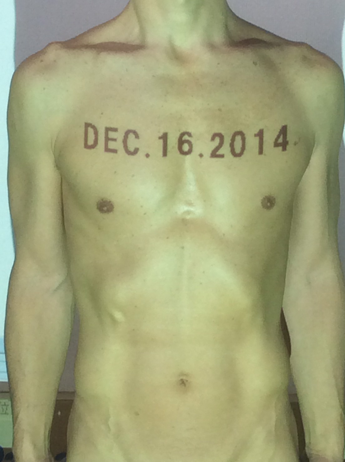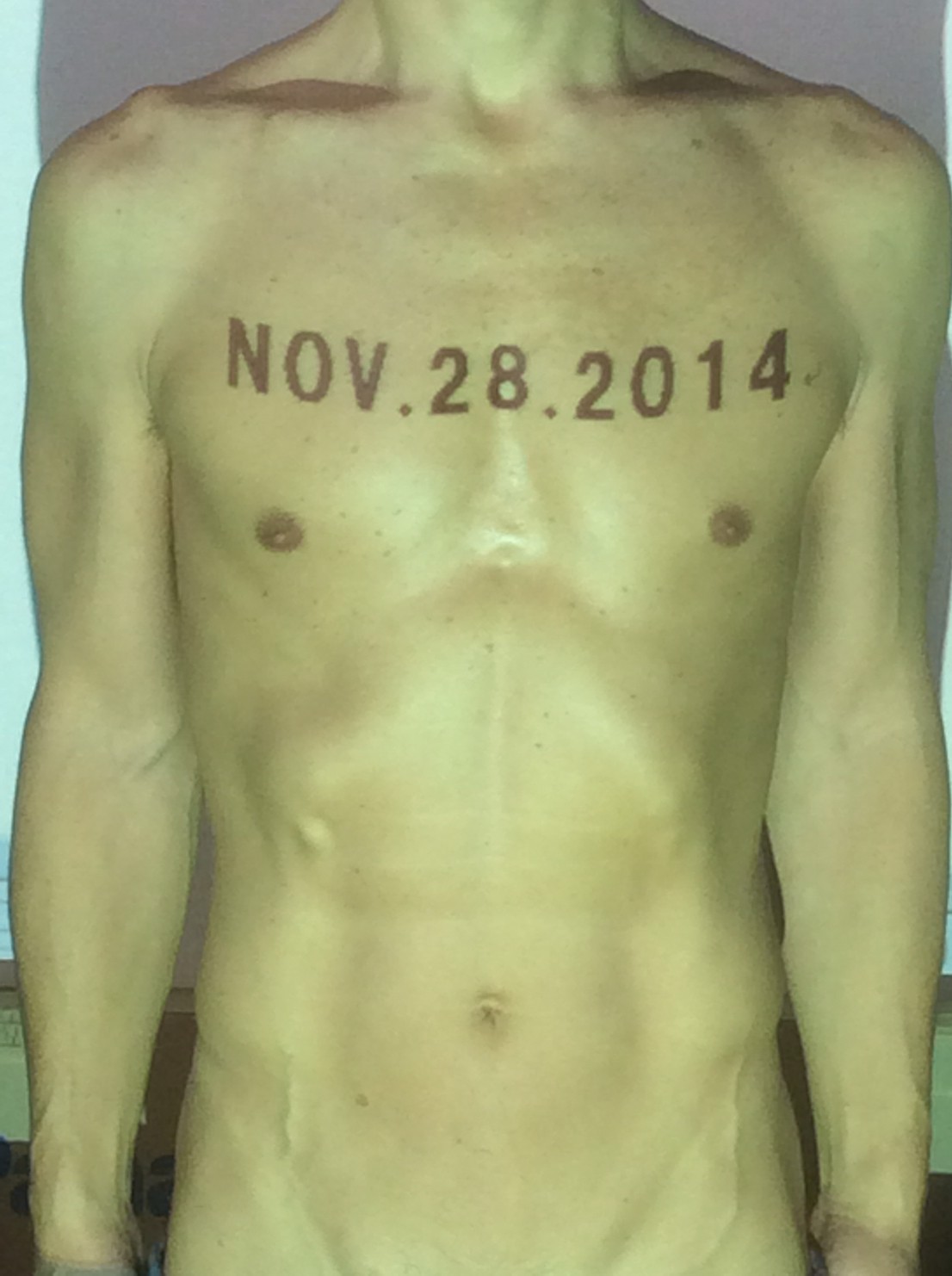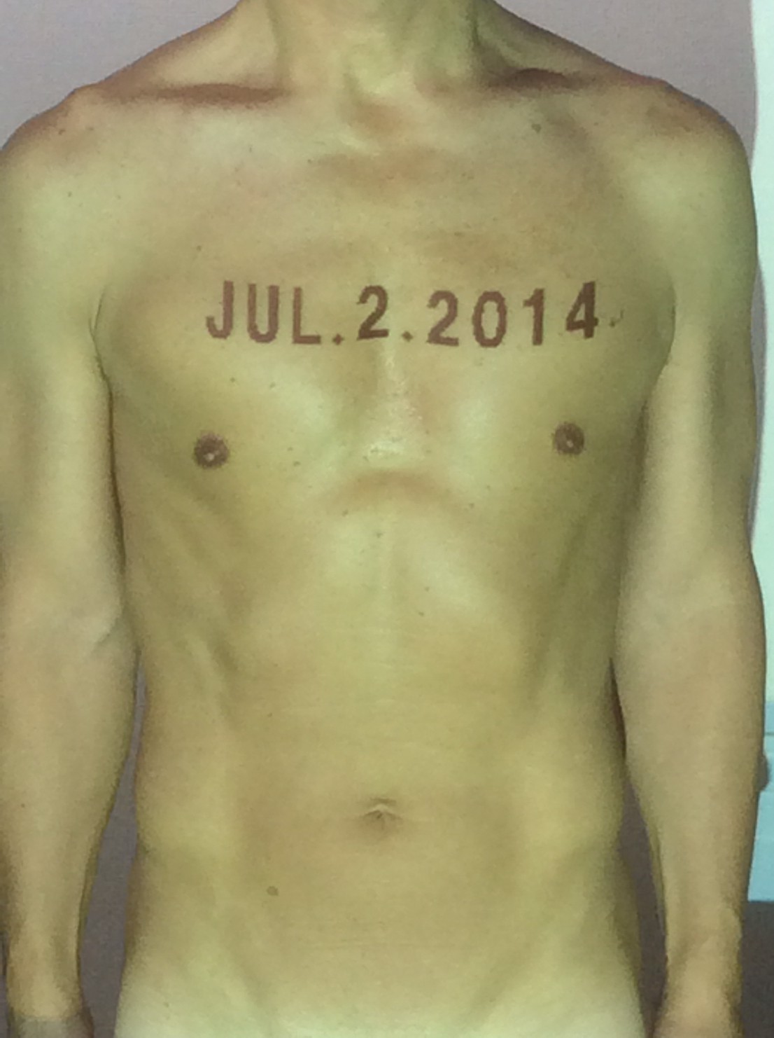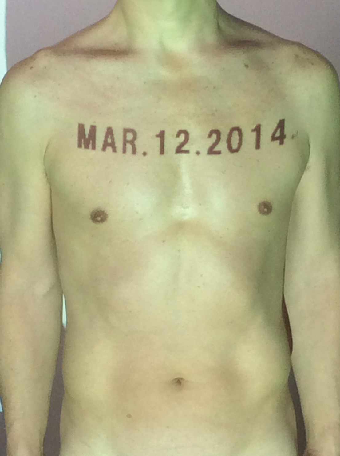 伊勢神宮に式年遷宮という20年に一度の儀式がある。常に神の宿る体(社)を若く保つのが目的だが、その町の活性化と儀式や建築技術の継承なども図られている。このことを私自身の体に移し替えて表現している。1年を通して鍛えた身体の変化はYoutubeにアップした。作家の身体 表現する身体 リニューアルボディー 表現する新しい身体(The new body to express) 身体と絵画 The body and pictures 時間的連続性の入れ替え. 身体は時間The body is time 時間に逆らう身体The body opposing time 身体は時間に逆らうThe body opposes time.過ぎ去る身体The body passing away
