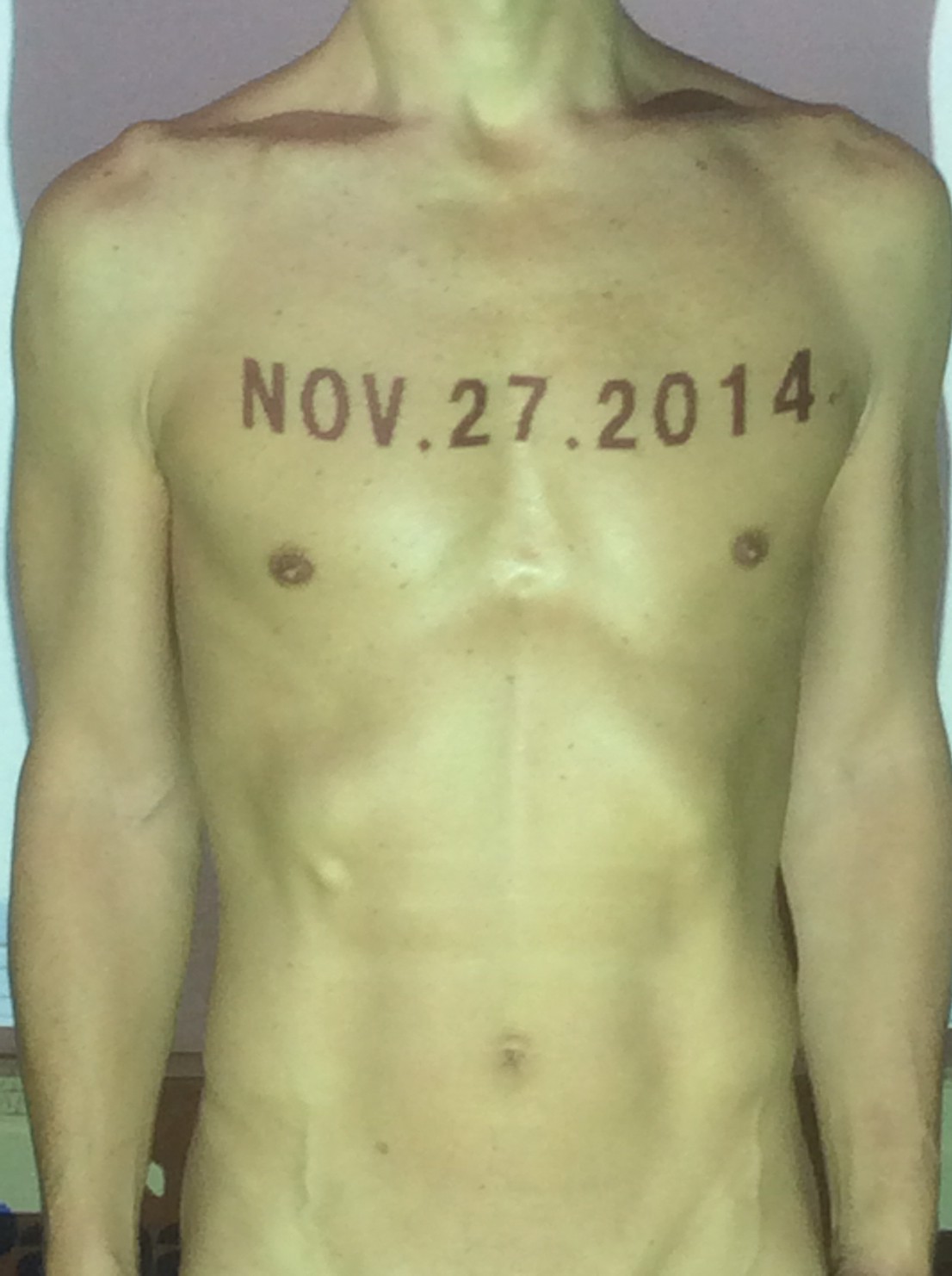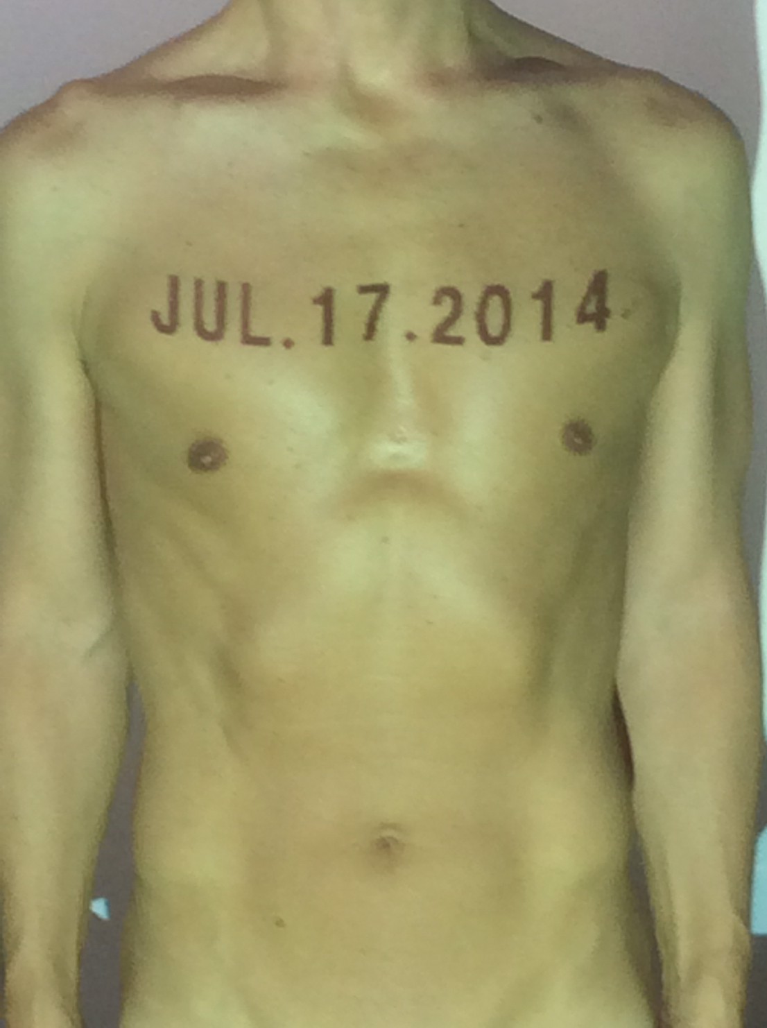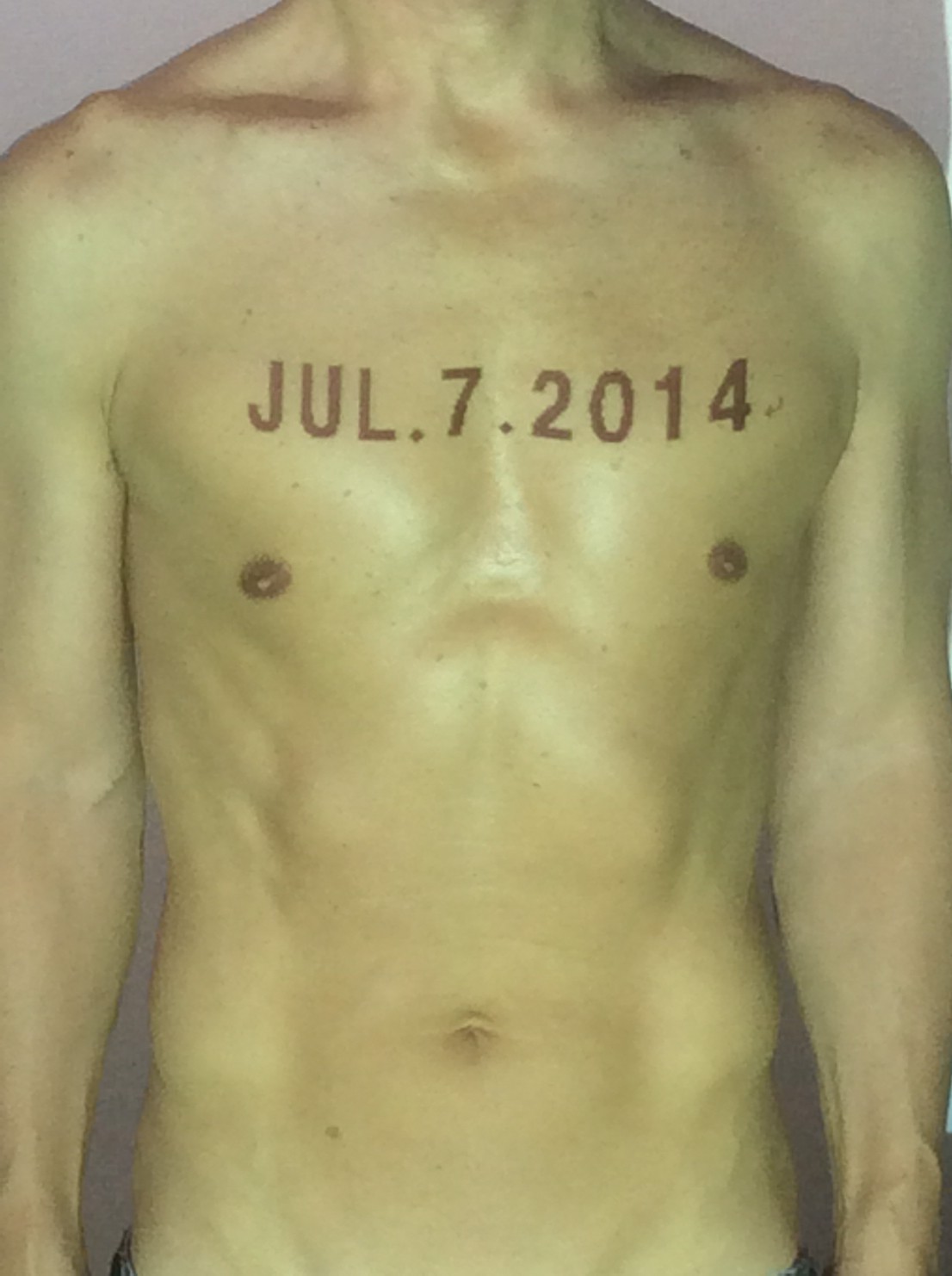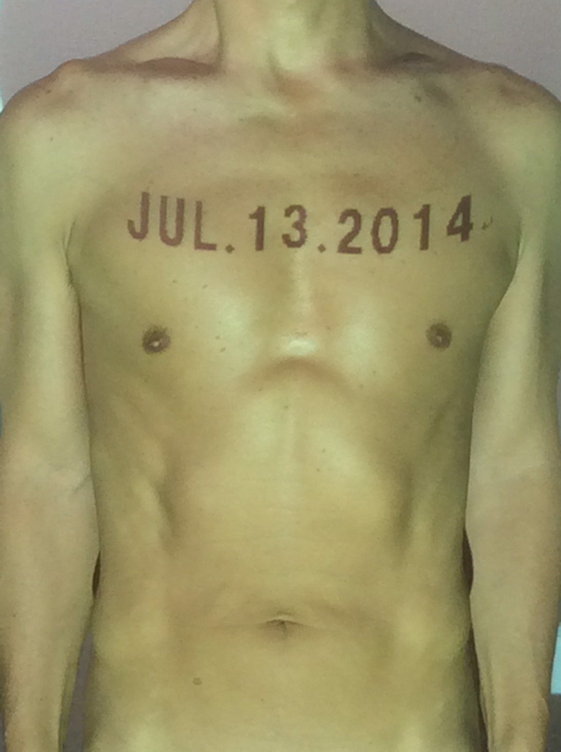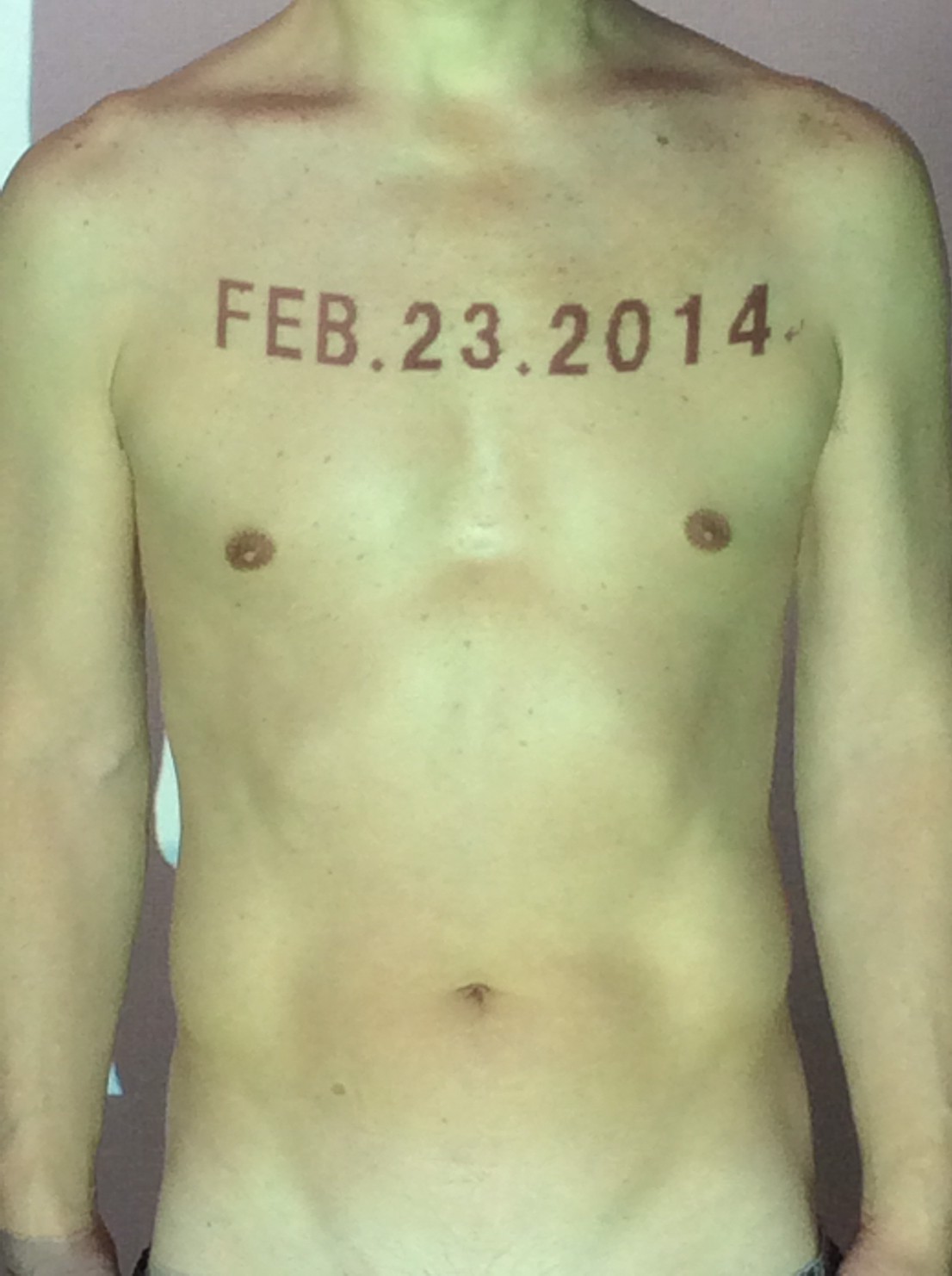 伊勢神宮に式年遷宮という20年に一度の儀式がある。常に神の宿る体(社)を若く保つのが目的だが、その町の活性化と儀式や建築技術の継承なども図られている。このことを私自身の体に移し替えて表現している。1年を通して鍛えた身体の変化はYoutubeにアップした。作家の身体 表現する身体 リニューアルボディー 表現する新しい身体(The new body to express) 身体と絵画 The body and pictures 時間的連続性の入れ替え. 身体は時間The body is time 時間に逆らう身体The body opposing time 身体は時間に逆らうThe body opposes time.過ぎ去る身体The body passing away