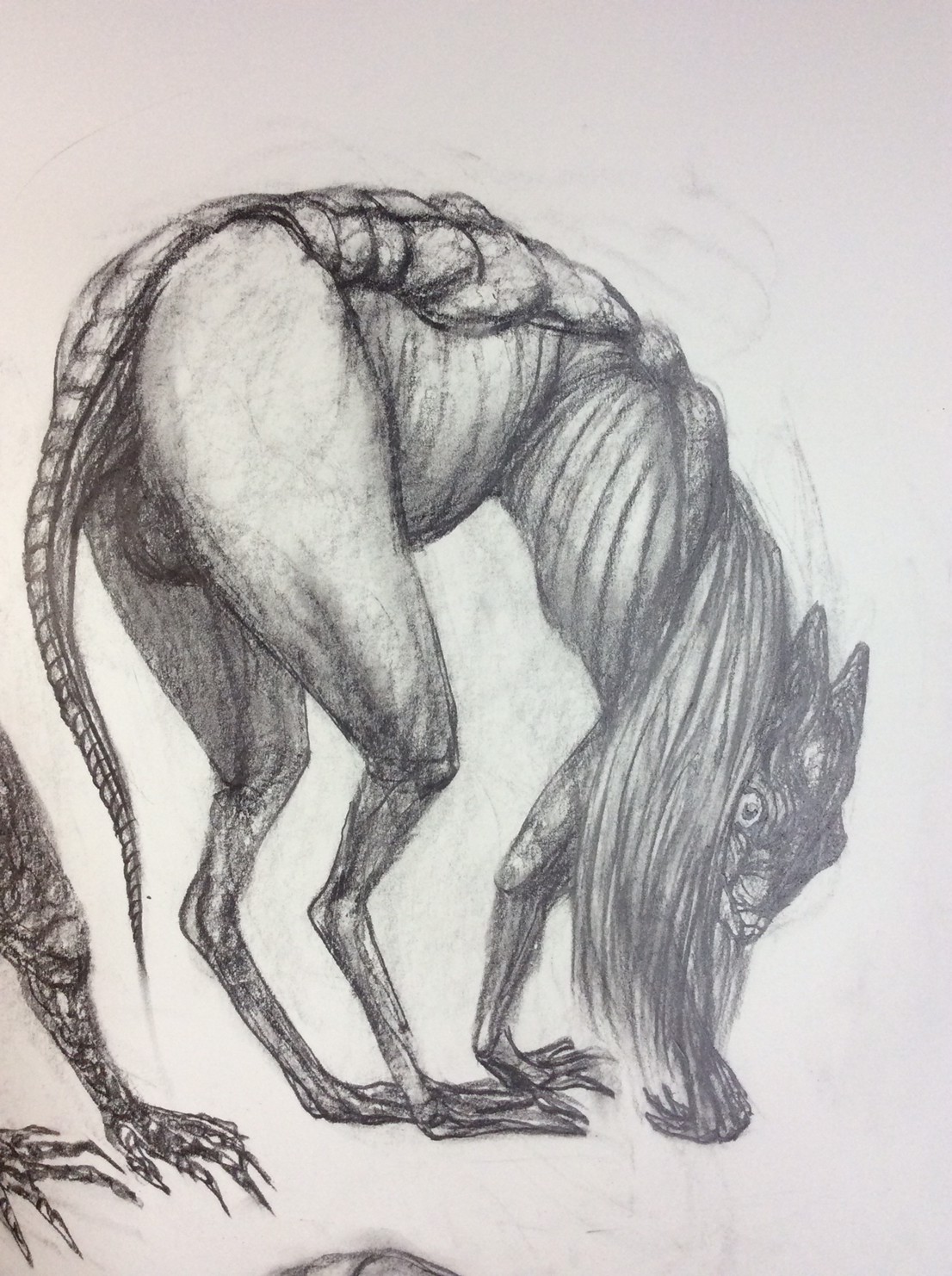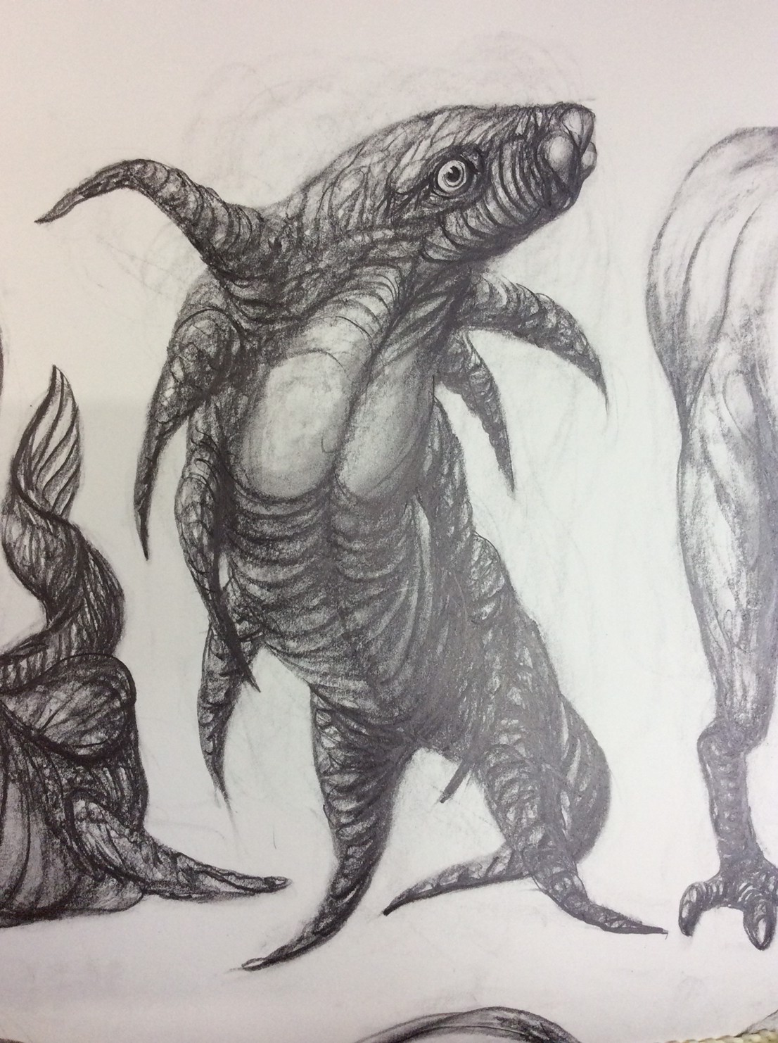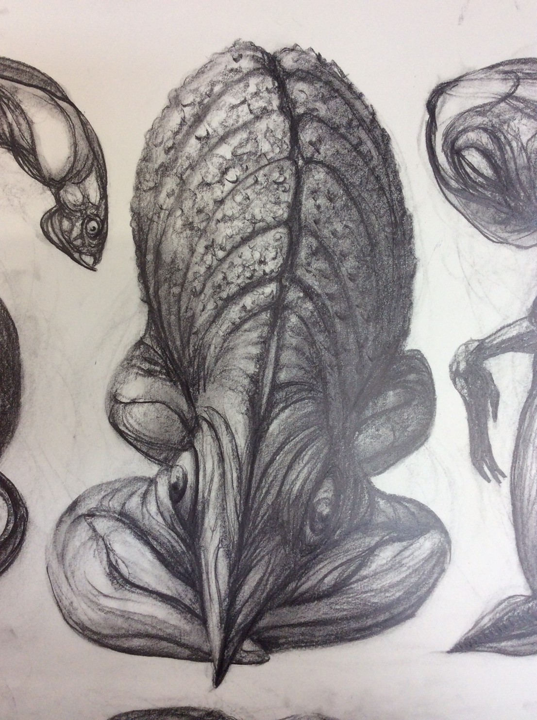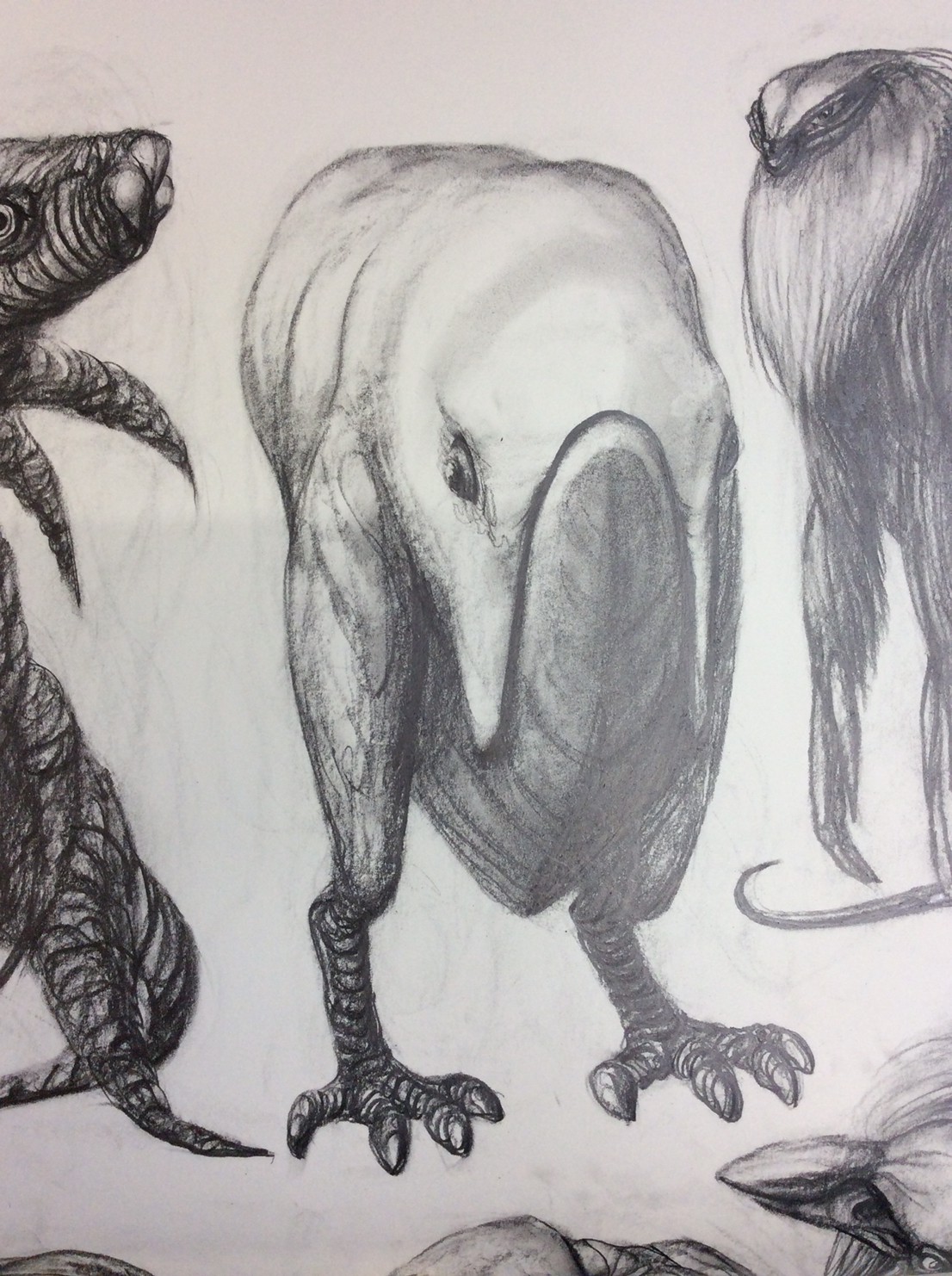 私の作品づくりは主に1年間の、1オリジンを基に始まっていきます。時間を基軸に連続性、継続性をコンセプトにした作品形態をとることがほとんどです。その中で今回は、昨年ギャラリー現で発表した作品の継続版です。ギャラリーでライブ制作を行っていたものを展覧会終了後に自宅アトリエでYouTubeにアップしながら完成させた作品です。 普段はインスタレーションなどを行うことが多いのですが、一度シンプルに紙と鉛筆だけで、子供の頃に味わった純粋に絵を描くことの楽しみ、喜びをもう一度味わってみたいと思いました。 2014年は鳥獣戯画の展覧会などもあり、世の中が漫画ブームで盛り上がっている中。あ!自分なりの超獣戯画を描いてみようと考え、120㎝×10mのロール紙を7本,、10Bの鉛筆と練り消しゴムをかなりたくさん買い込み、2015年1月1日から描き始めました。毎日、根を詰めて描くと、きっと辛くなると思い、気の向くまま漫然と描くことにしました。 自分の中から生まれ出る見たこともない生き物を見てみたいという思いで、得体の知れないものに生きる体を得させようと試みたものです。 約800体(全てオリジナル)のクリーチャーの7本目の一部ですが、どうぞお楽しみください。