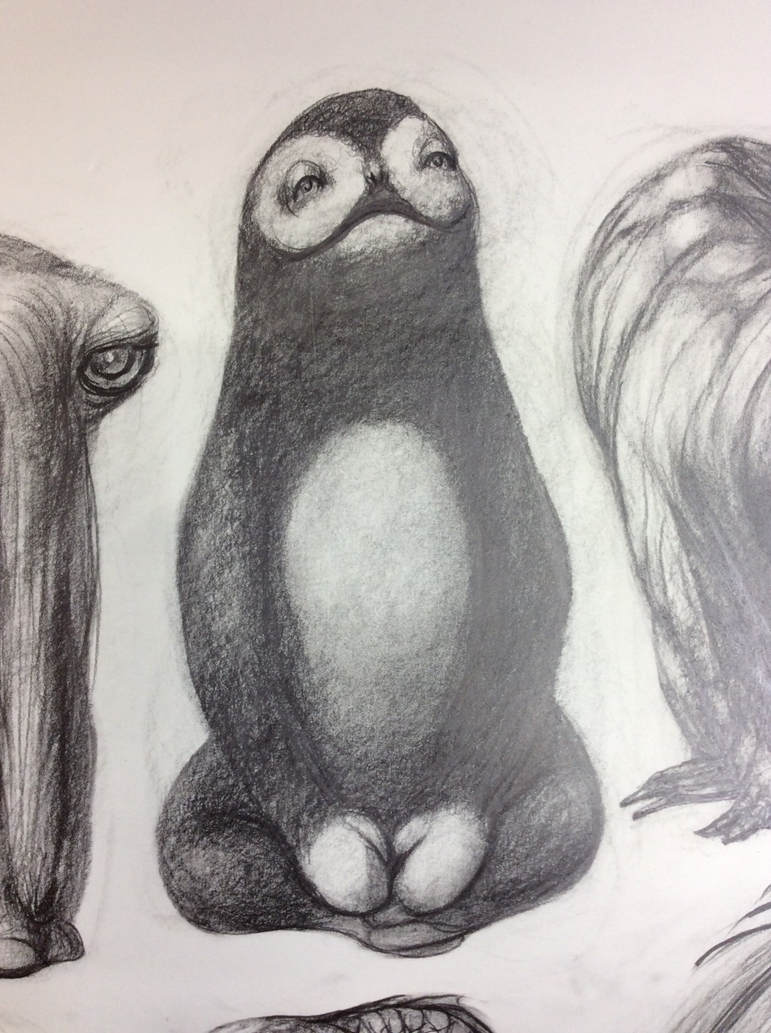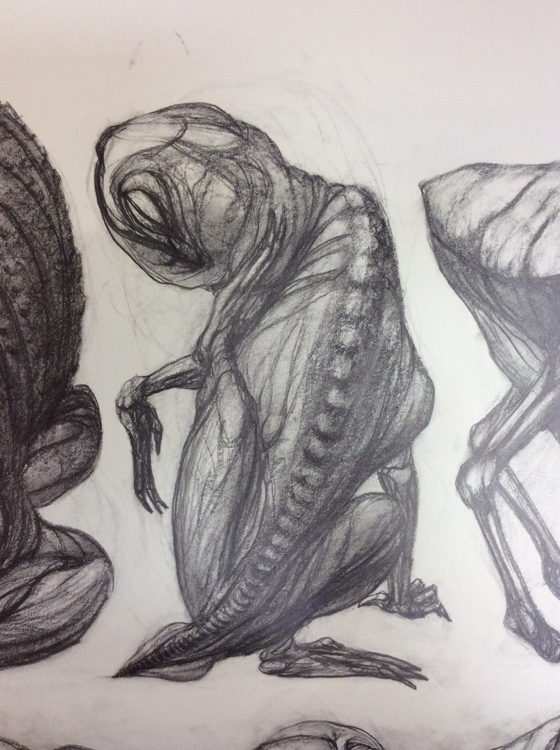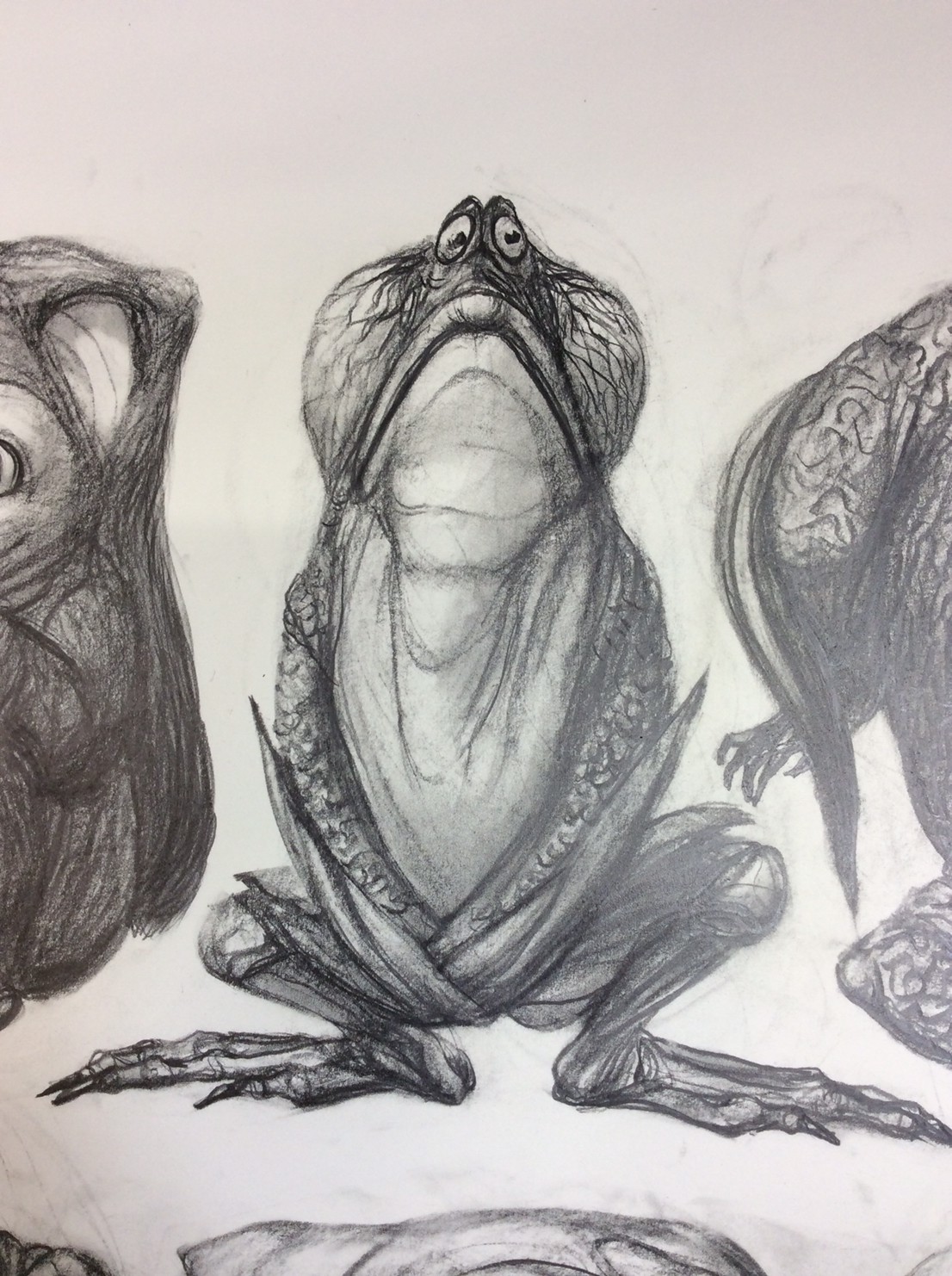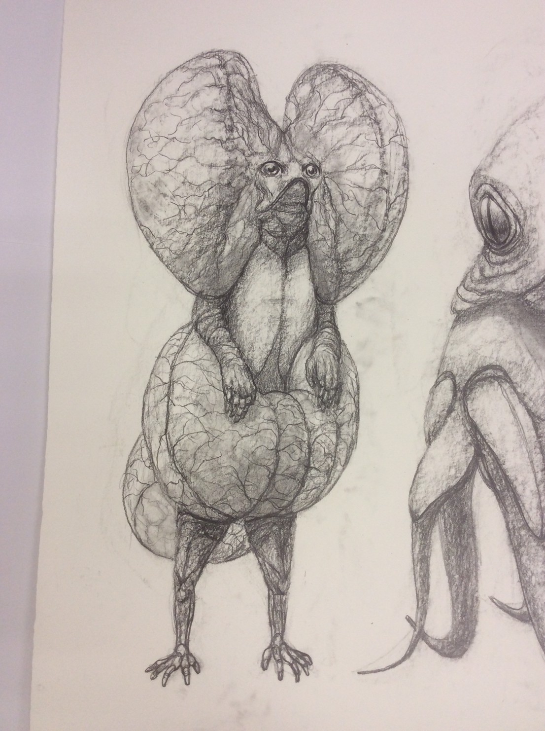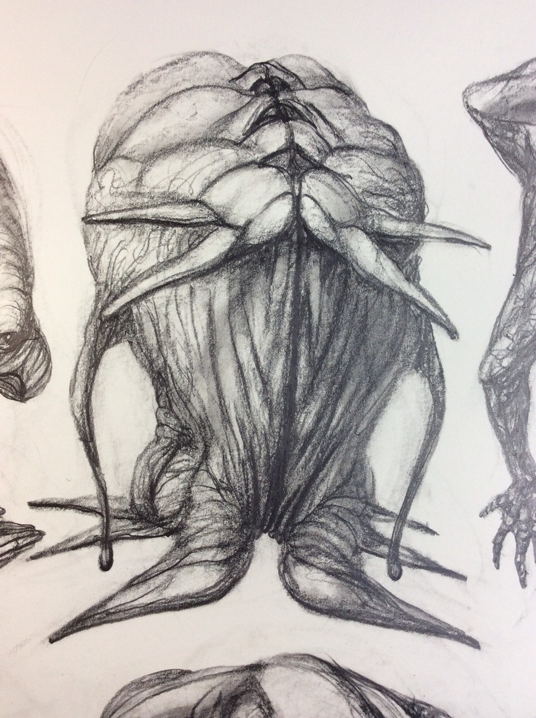 私の作品づくりは主に1年間の、1オリジンを基に始まっていきます。時間を基軸に連続性、継続性をコンセプトにした作品形態をとることがほとんどです。その中で今回は、昨年ギャラリー現で発表した作品の継続版です。ギャラリーでライブ制作を行っていたものを展覧会終了後に自宅アトリエでYouTubeにアップしながら完成させた作品です。 普段はインスタレーションなどを行うことが多いのですが、一度シンプルに紙と鉛筆だけで、子供の頃に味わった純粋に絵を描くことの楽しみ、喜びをもう一度味わってみたいと思いました。 2014年は鳥獣戯画の展覧会などもあり、世の中が漫画ブームで盛り上がっている中。あ!自分なりの超獣戯画を描いてみようと考え、120㎝×10mのロール紙を7本,、10Bの鉛筆と練り消しゴムをかなりたくさん買い込み、2015年1月1日から描き始めました。毎日、根を詰めて描くと、きっと辛くなると思い、気の向くまま漫然と描くことにしました。 自分の中から生まれ出る見たこともない生き物を見てみたいという思いで、得体の知れないものに生きる体を得させようと試みたものです。 約800体(全てオリジナル)のクリーチャーの7本目の一部ですが、どうぞお楽しみください。