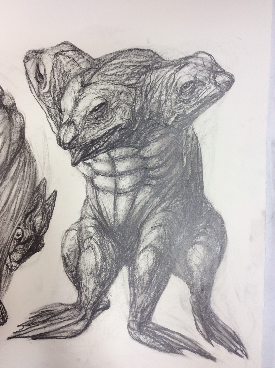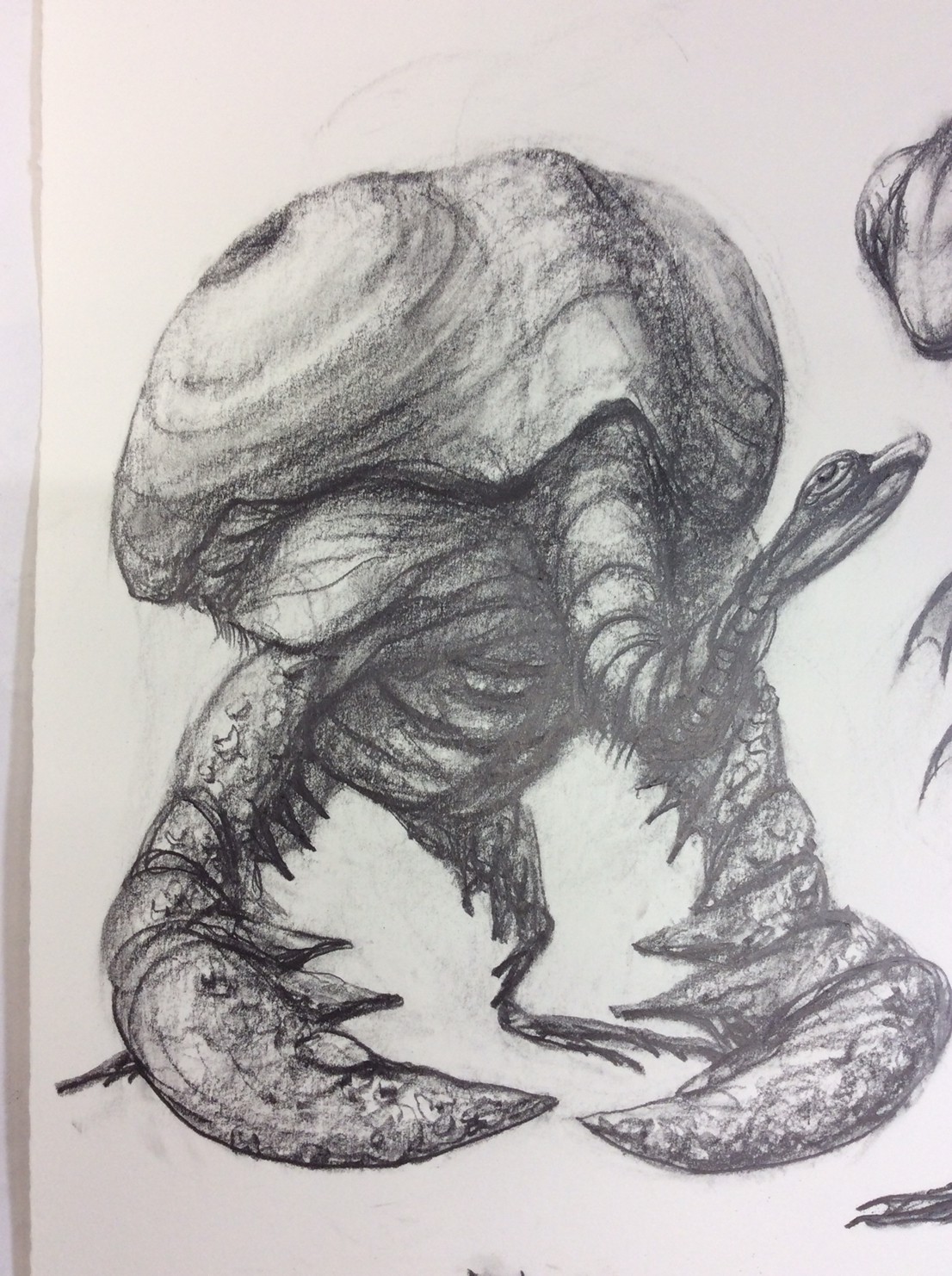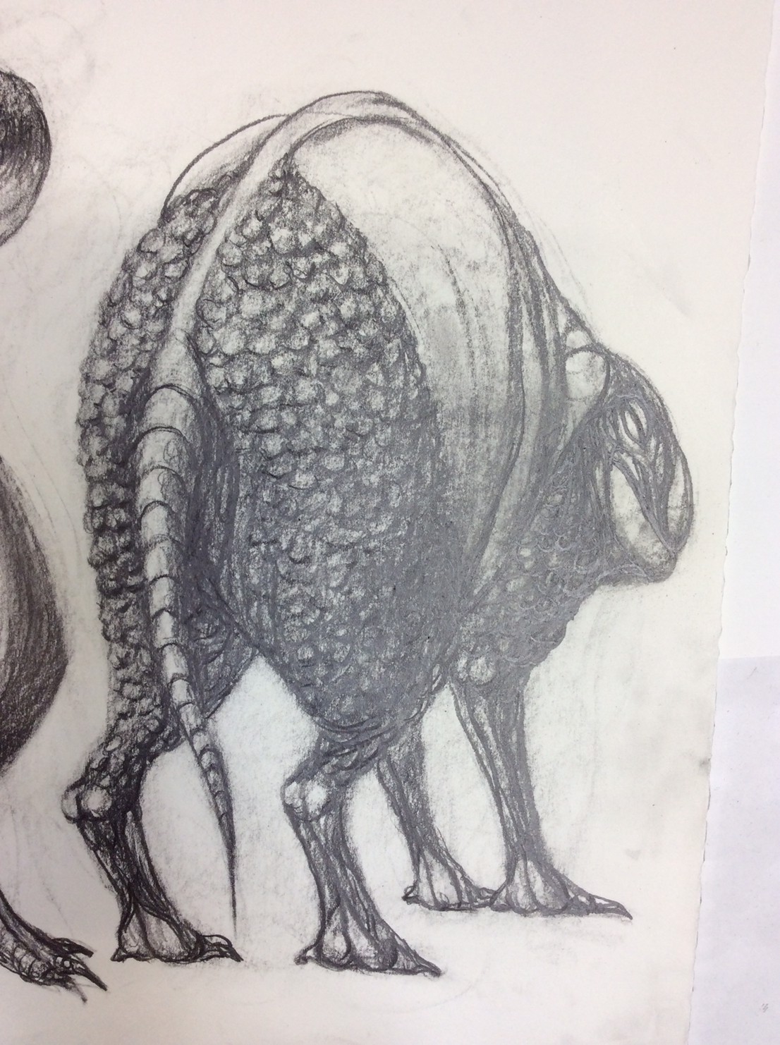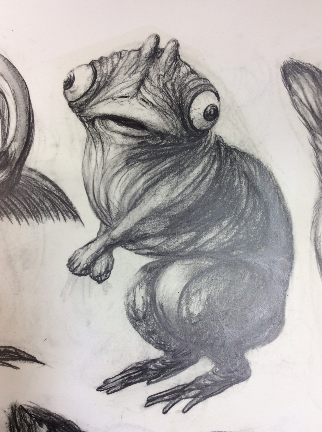 私の作品づくりは主に1年間の、1オリジンを基に始まっていきます。時間を基軸に連続性、継続性をコンセプトにした作品形態をとることがほとんどです。その中で今回は、昨年ギャラリー現で発表した作品の継続版です。ギャラリーでライブ制作を行っていたものを展覧会終了後に自宅アトリエでYouTubeにアップしながら完成させた作品です。 普段はインスタレーションなどを行うことが多いのですが、一度シンプルに紙と鉛筆だけで、子供の頃に味わった純粋に絵を描くことの楽しみ、喜びをもう一度味わってみたいと思いました。 2014年は鳥獣戯画の展覧会などもあり、世の中が漫画ブームで盛り上がっている中。あ!自分なりの超獣戯画を描いてみようと考え、120㎝×10mのロール紙を7本,、10Bの鉛筆と練り消しゴムをかなりたくさん買い込み、2015年1月1日から描き始めました。毎日、根を詰めて描くと、きっと辛くなると思い、気の向くまま漫然と描くことにしました。 自分の中から生まれ出る見たこともない生き物を見てみたいという思いで、得体の知れないものに生きる体を得させようと試みたものです。 約800体(全てオリジナル)のクリーチャーの7本目の一部ですが、どうぞお楽しみください。