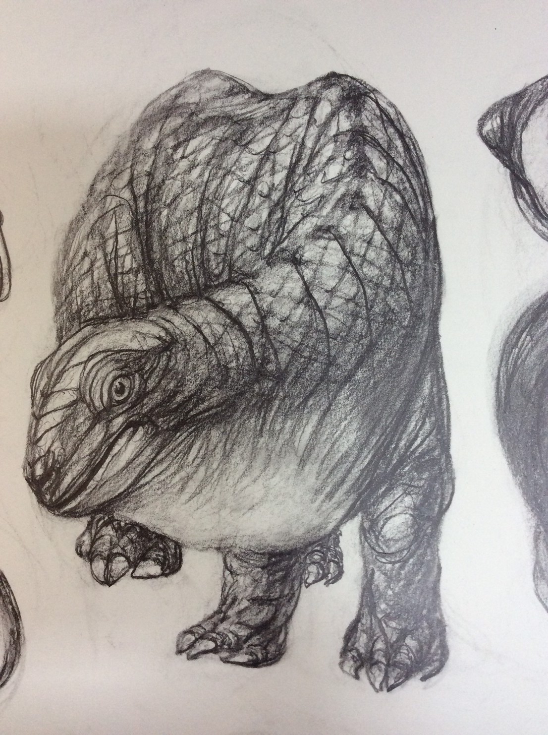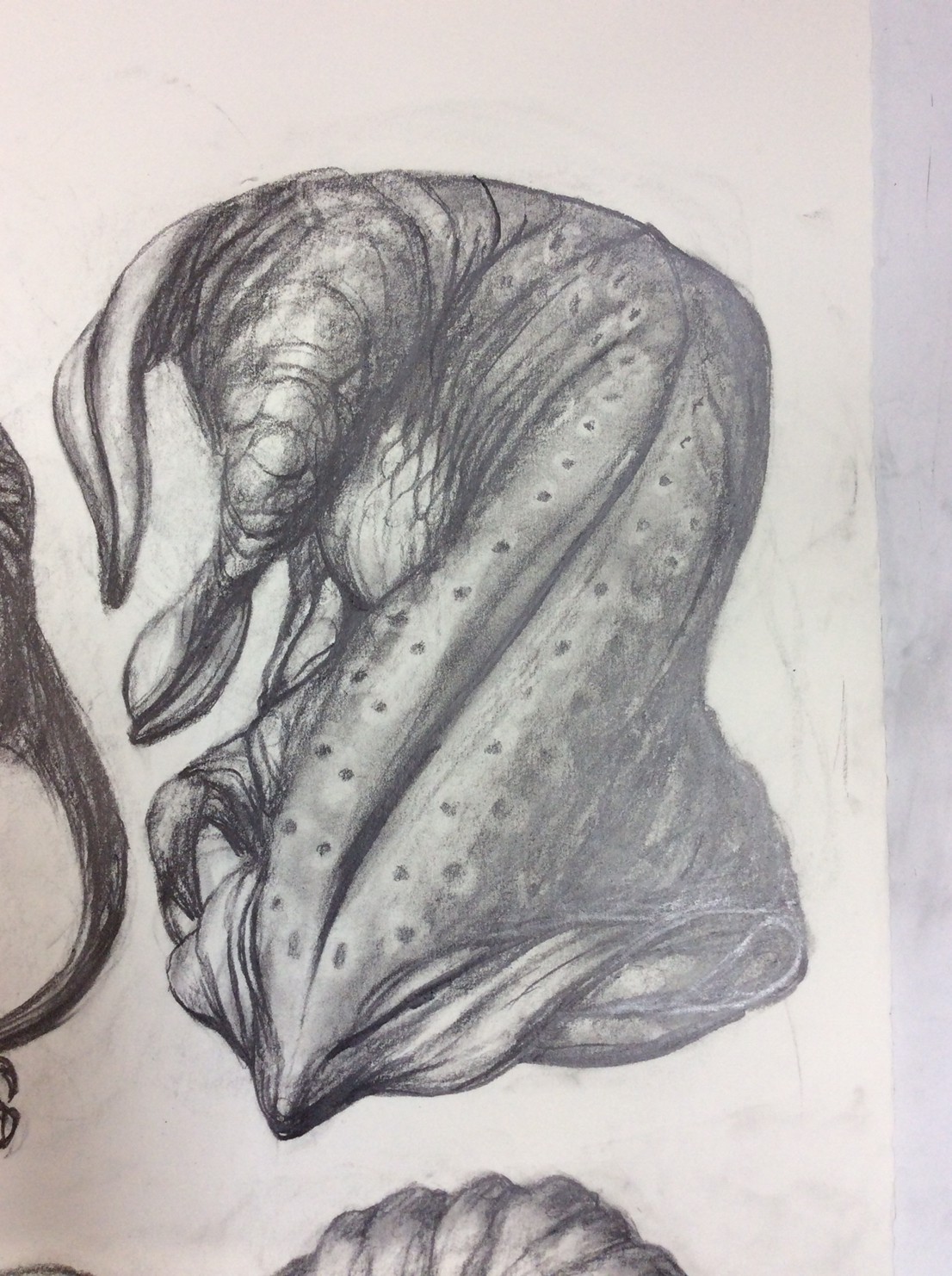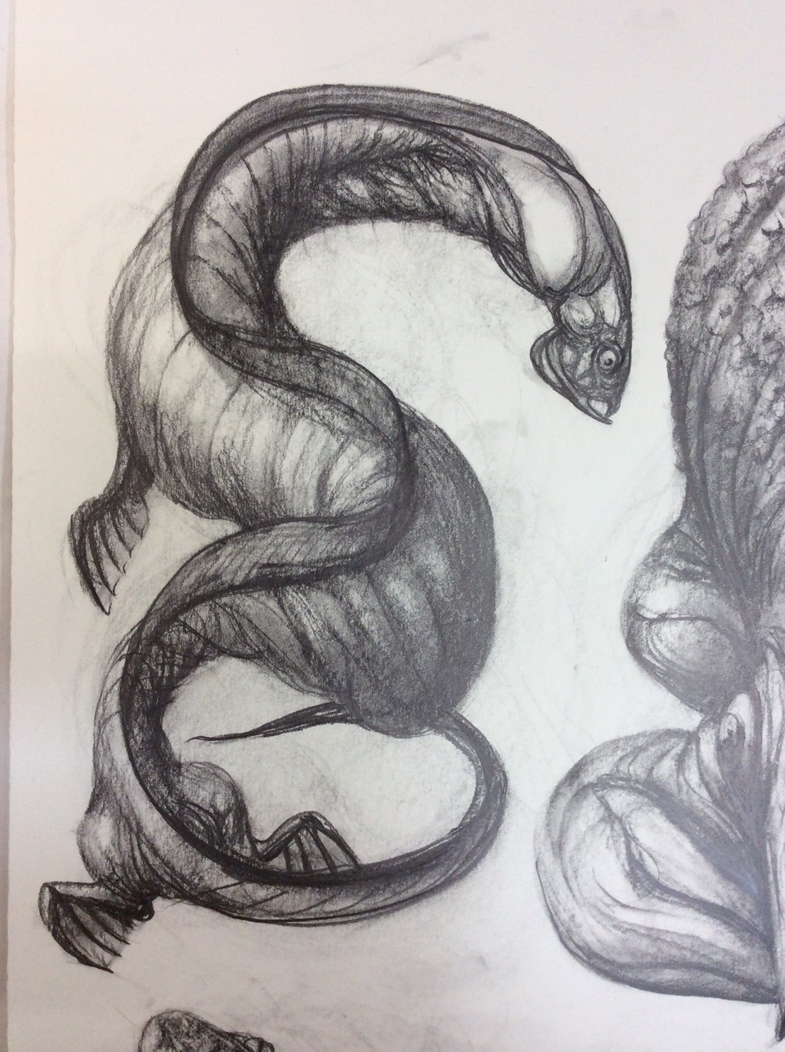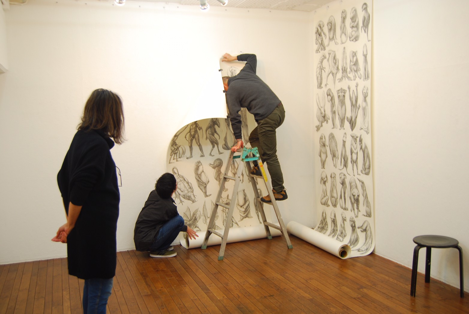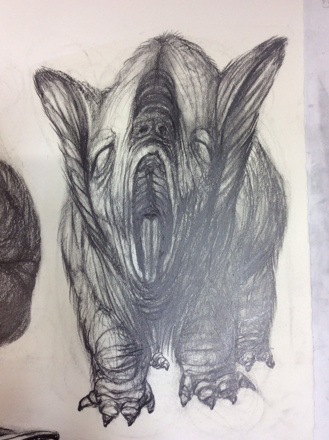 私の作品づくりは主に1年間の、1オリジンを基に始まっていきます。時間を基軸に連続性、継続性をコンセプトにした作品形態をとることがほとんどです。その中で今回は、昨年ギャラリー現で発表した作品の継続版です。ギャラリーでライブ制作を行っていたものを展覧会終了後に自宅アトリエでYouTubeにアップしながら完成させた作品です。 普段はインスタレーションなどを行うことが多いのですが、一度シンプルに紙と鉛筆だけで、子供の頃に味わった純粋に絵を描くことの楽しみ、喜びをもう一度味わってみたいと思いました。 2014年は鳥獣戯画の展覧会などもあり、世の中が漫画ブームで盛り上がっている中。あ!自分なりの超獣戯画を描いてみようと考え、120㎝×10mのロール紙を7本,、10Bの鉛筆と練り消しゴムをかなりたくさん買い込み、2015年1月1日から描き始めました。毎日、根を詰めて描くと、きっと辛くなると思い、気の向くまま漫然と描くことにしました。 自分の中から生まれ出る見たこともない生き物を見てみたいという思いで、得体の知れないものに生きる体を得させようと試みたものです。 約800体(全てオリジナル)のクリーチャーの7本目の一部ですが、どうぞお楽しみください。
