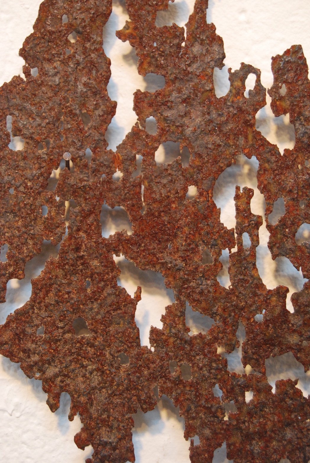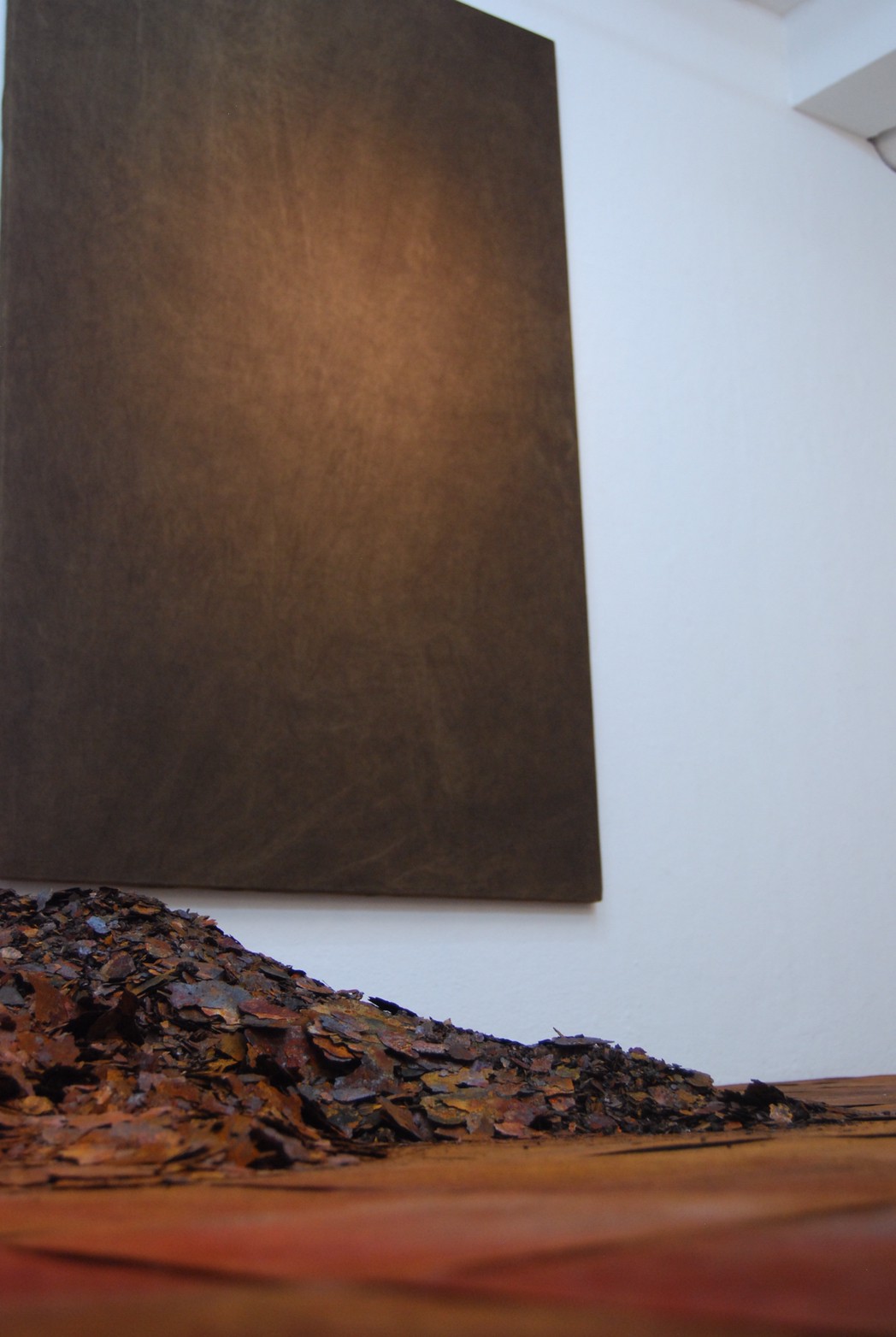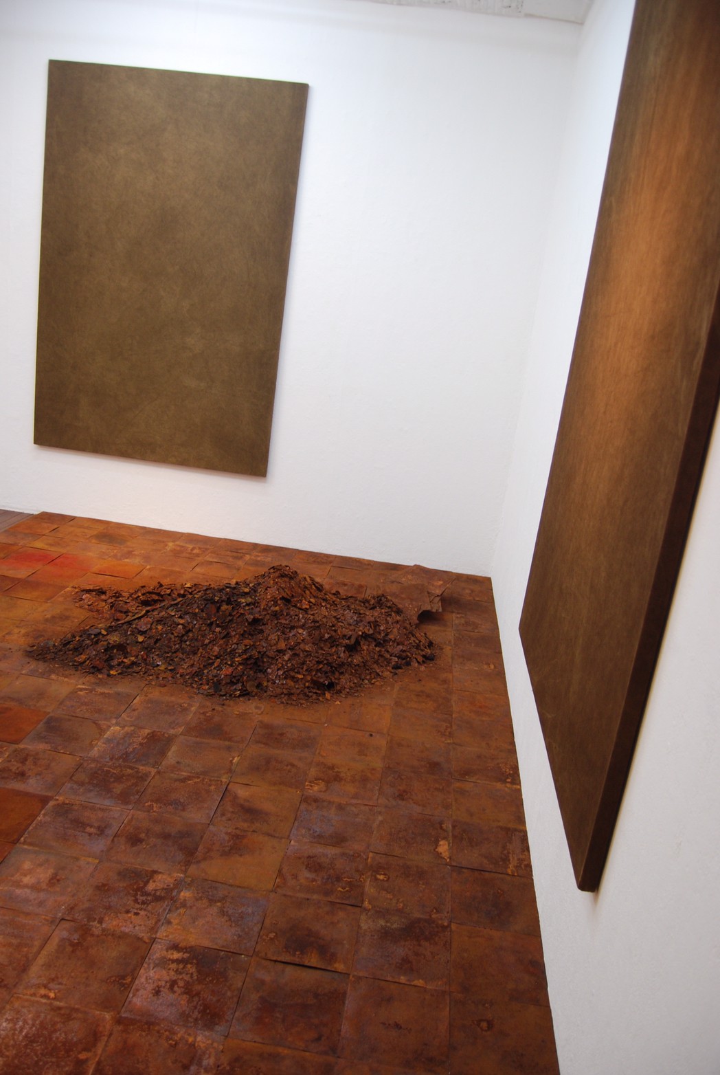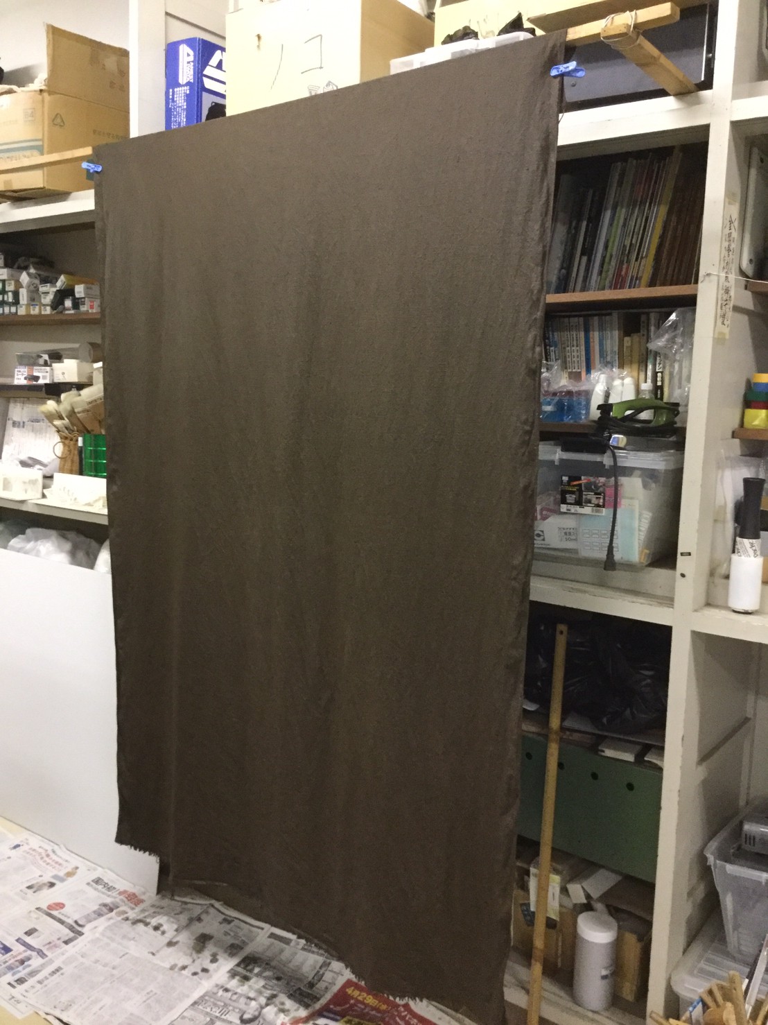 高炉で現鉱石にエネルギーを与えると、炭素は現鉱石を現に還元する。こうして「現」が産み出される。放置しておくと、やがて現は酸化してエネルギーを失って、酸化現に復って行く。つまり、錆は、還元された現が酸化して安定な状態へとかえろうとする過程に生じる結果である。大島紬、泥染は鉄分の反応、鉄を錆びさせてできたサビはかなり強い染料。製鉄された綺麗な鉄から泥をつくる作業。その泥を使い作品をつくる。Gallery現、閉廊を偲んで。