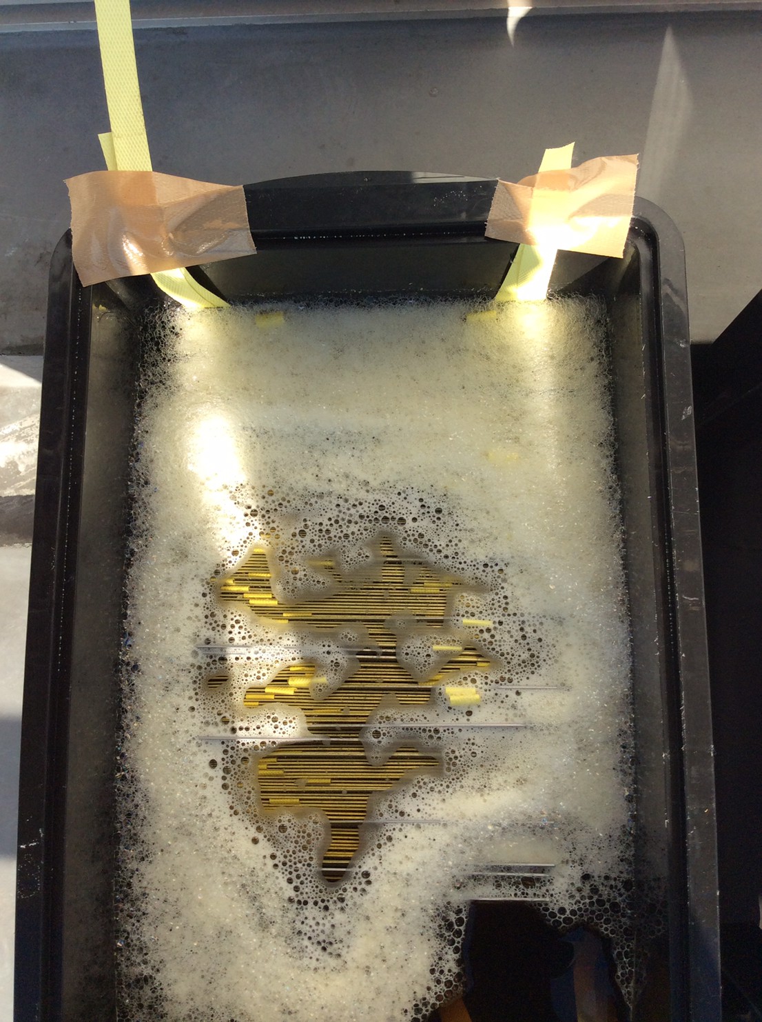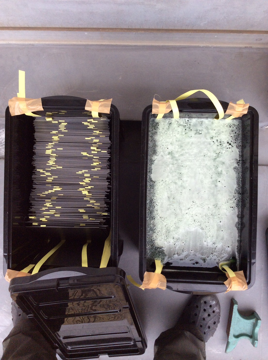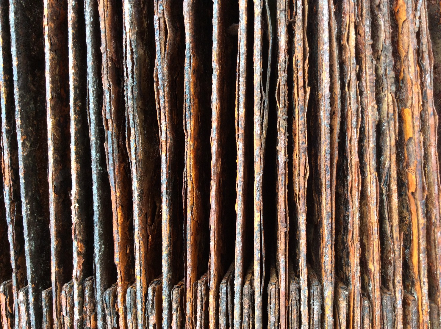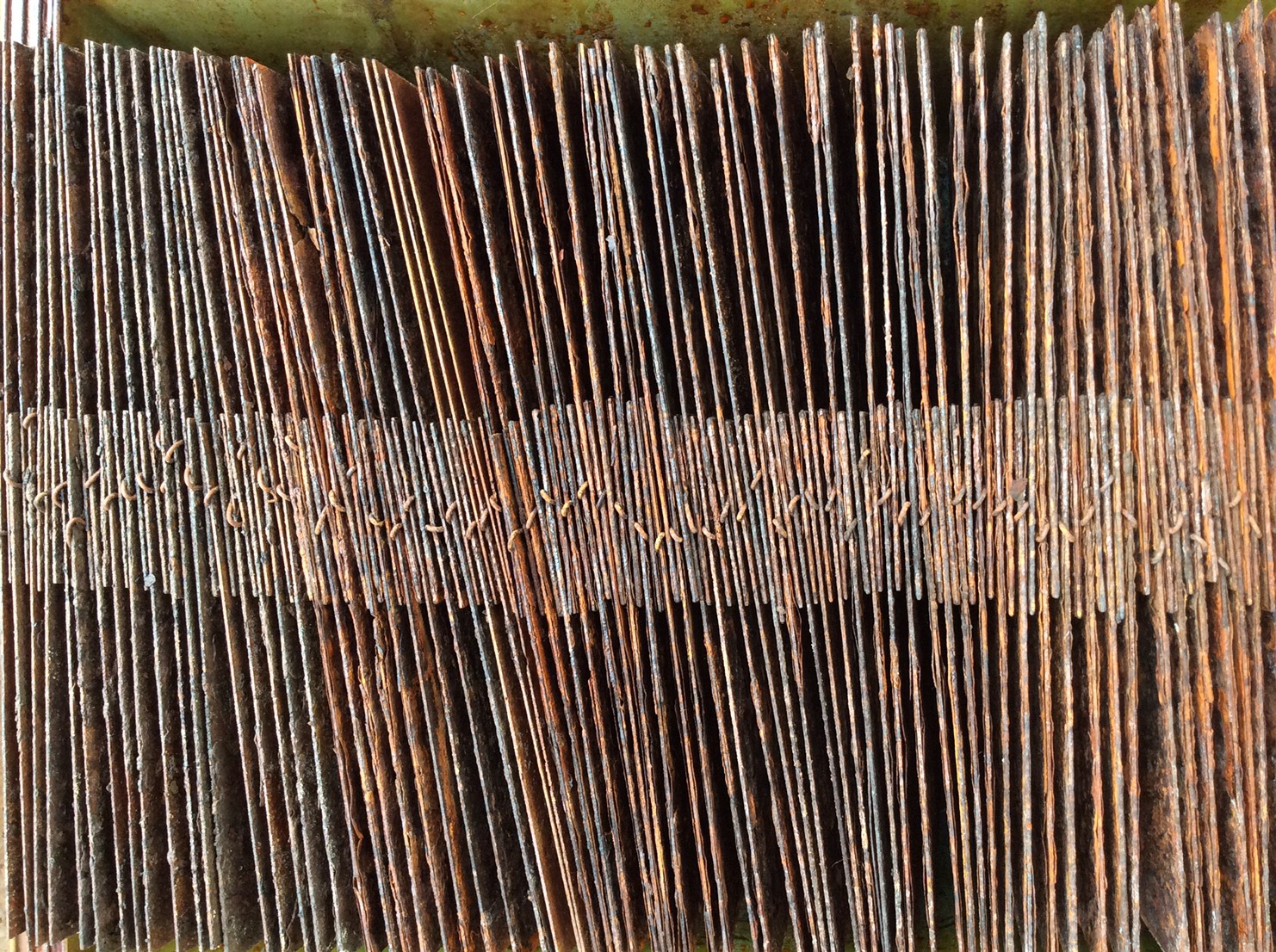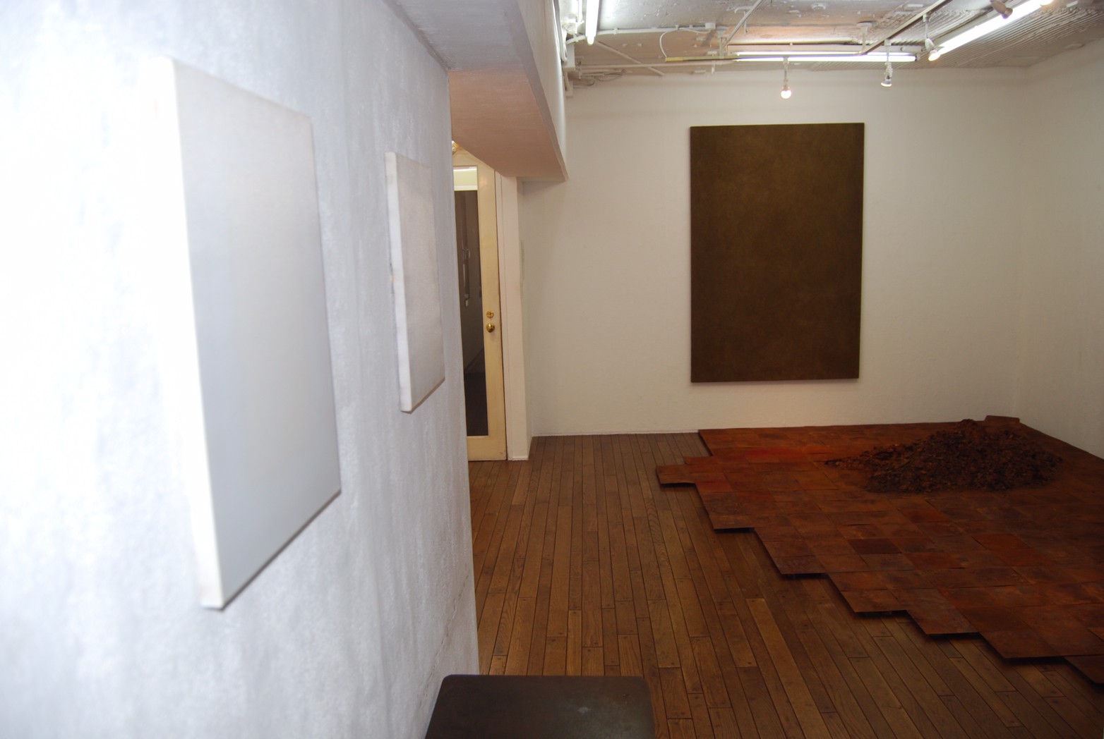 高炉で現鉱石にエネルギーを与えると、炭素は現鉱石を現に還元する。こうして「現」が産み出される。放置しておくと、やがて現は酸化してエネルギーを失って、酸化現に復って行く。つまり、錆は、還元された現が酸化して安定な状態へとかえろうとする過程に生じる結果である。大島紬、泥染は鉄分の反応、鉄を錆びさせてできたサビはかなり強い染料。製鉄された綺麗な鉄から泥をつくる作業。その泥を使い作品をつくる。Gallery現、閉廊を偲んで。
