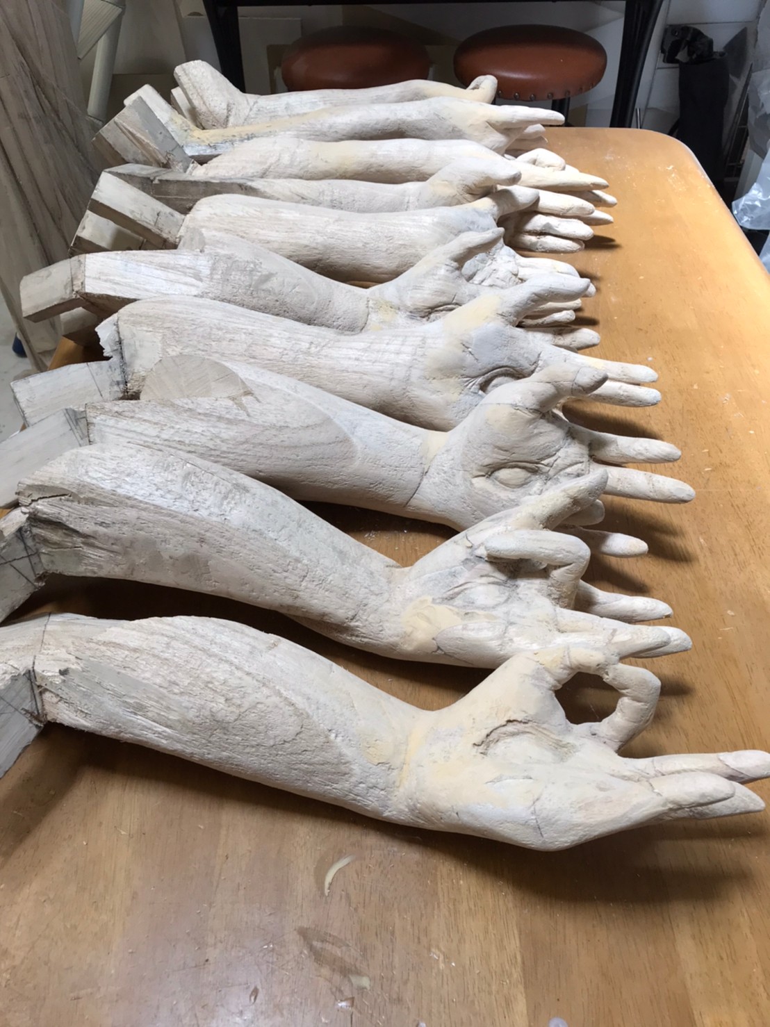 手の表情は、インドの「Numerical Hands」によって1から12を数え、時の流れを映しています。