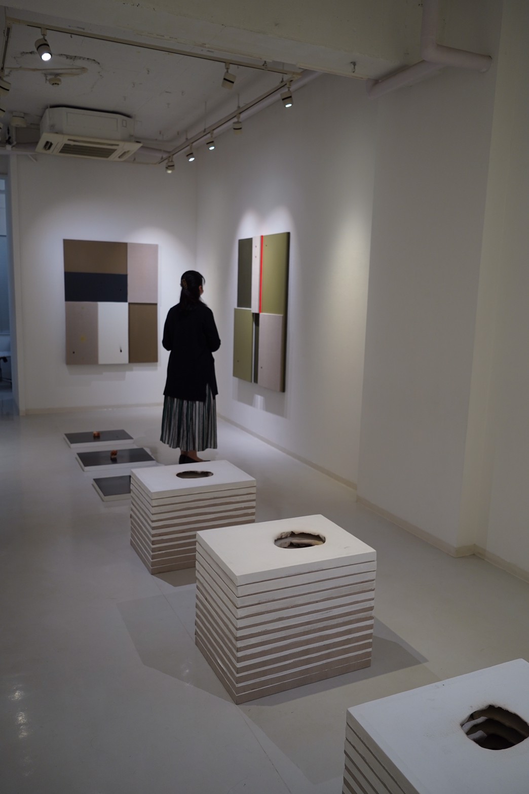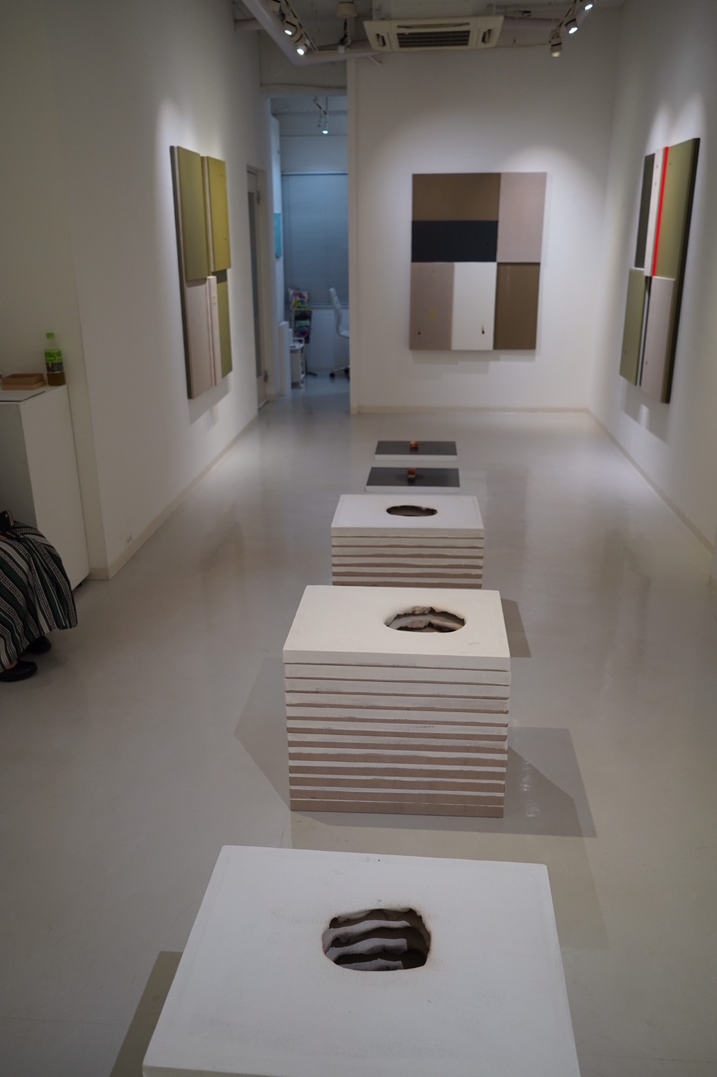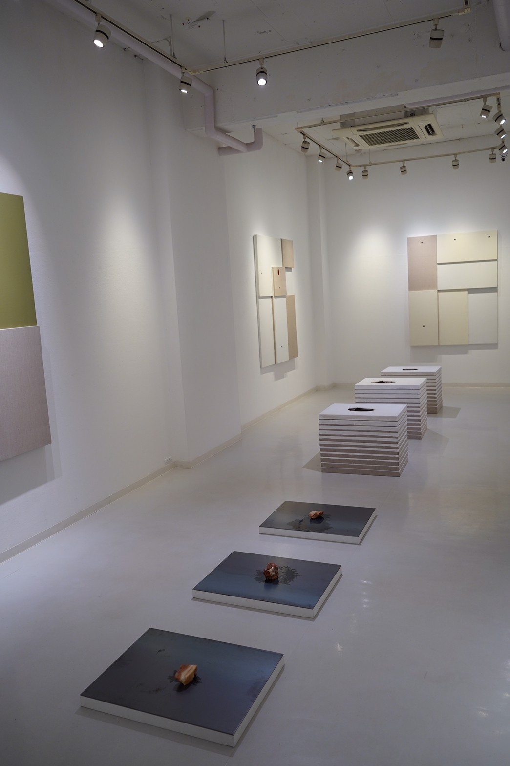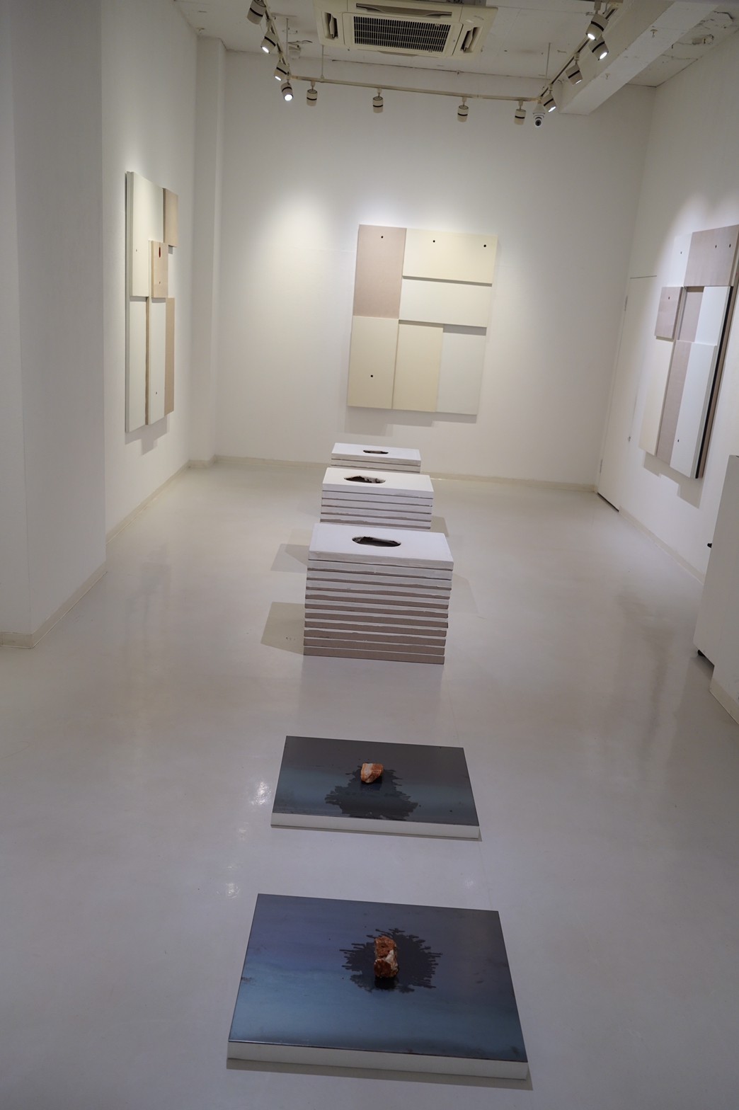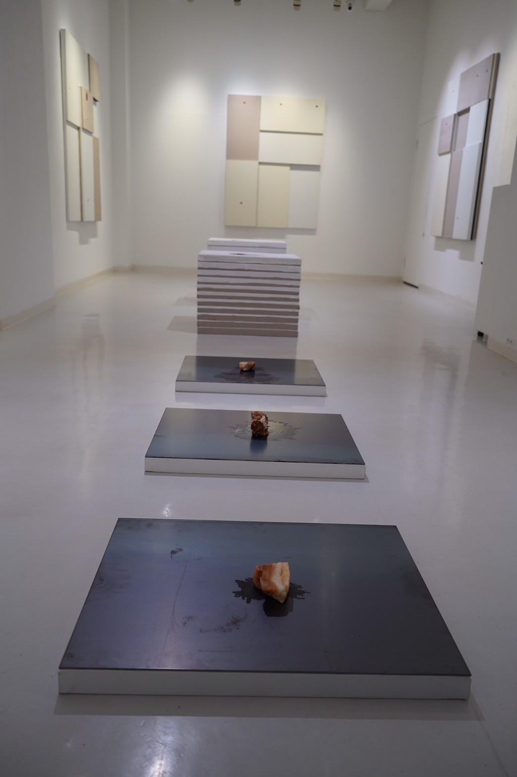 石も鉄も生成された時間を含んだ物であり、今回の個展はいずれも絵画芸術の大きな要素である、時間空間を意識した実験的な発表であり、フォンタナやブッリのような空間主義者へのリスペクトによるものである。