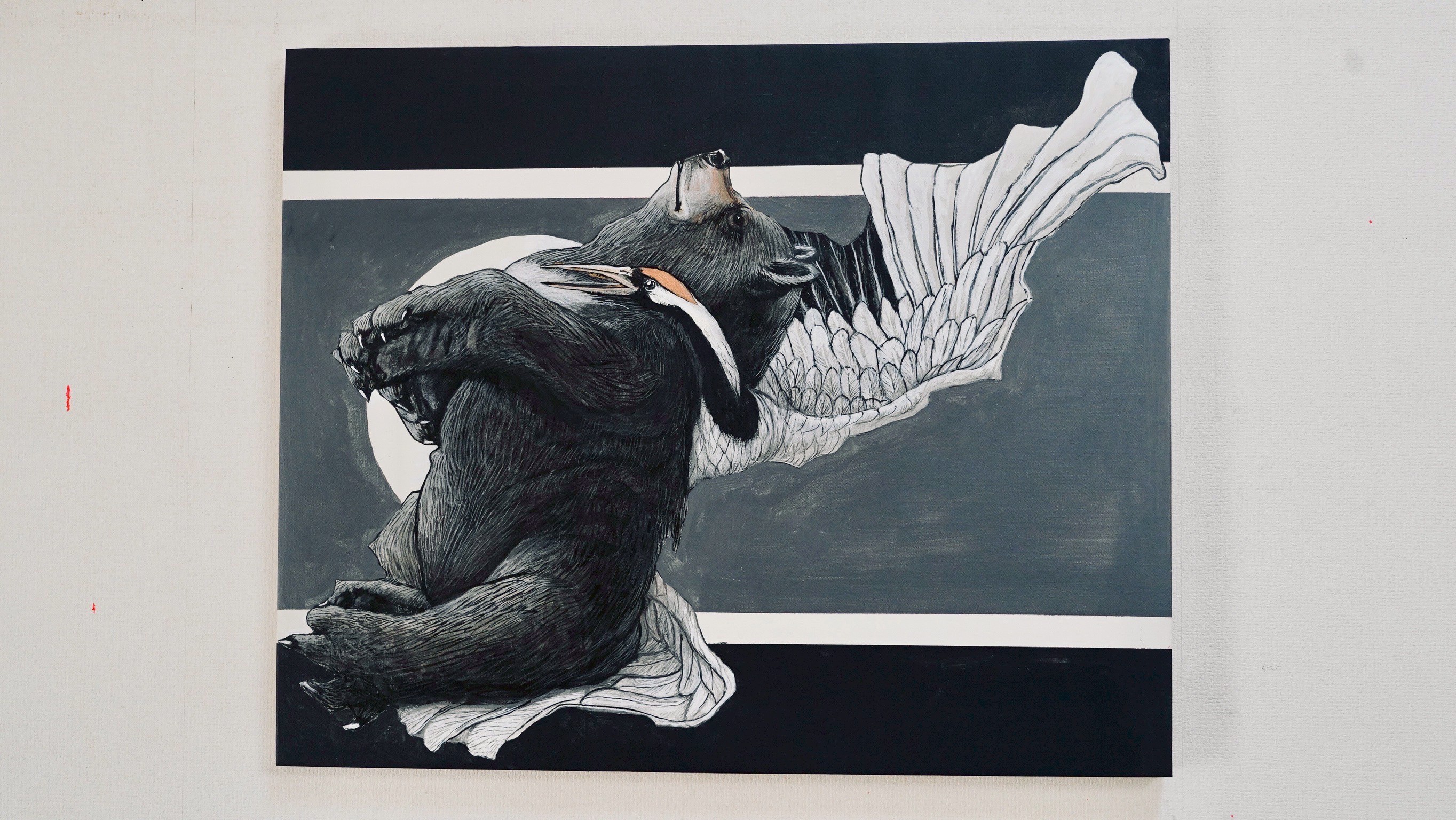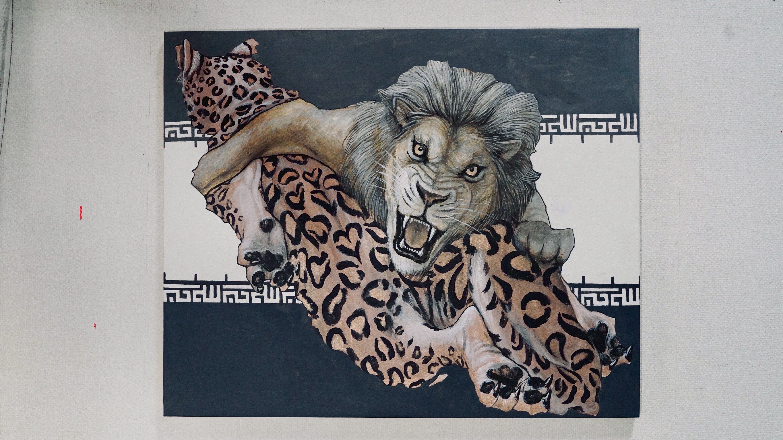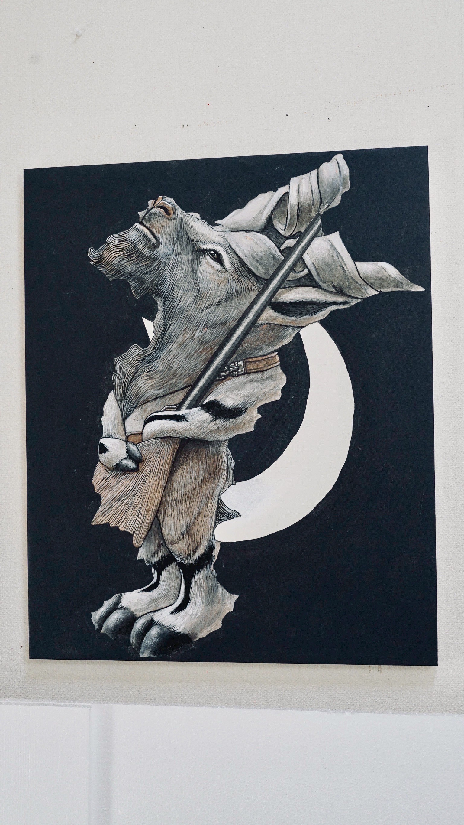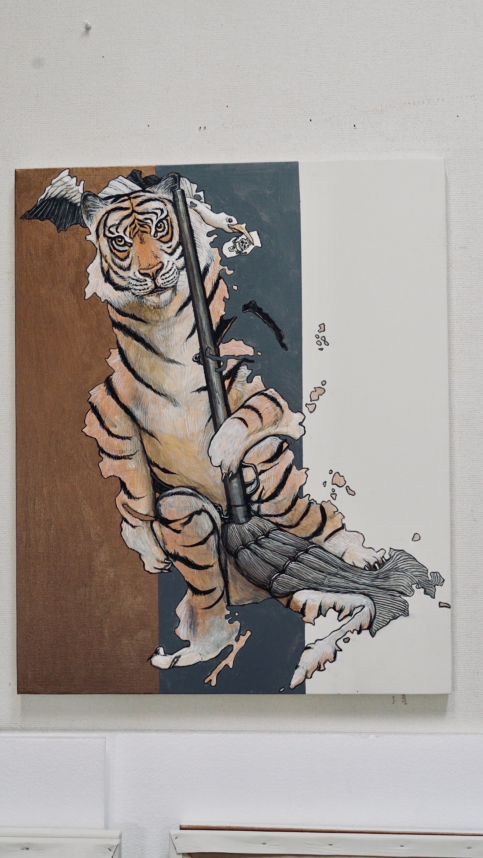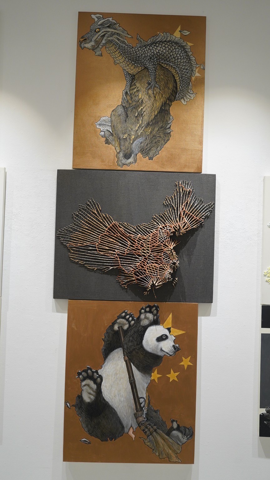 ノーズアートに用いた色は、金・銀・銅・白・黒の5色のみ。鉱物色で構成されたこれらは、戦争・資源・暴力・差別の象徴でもある。