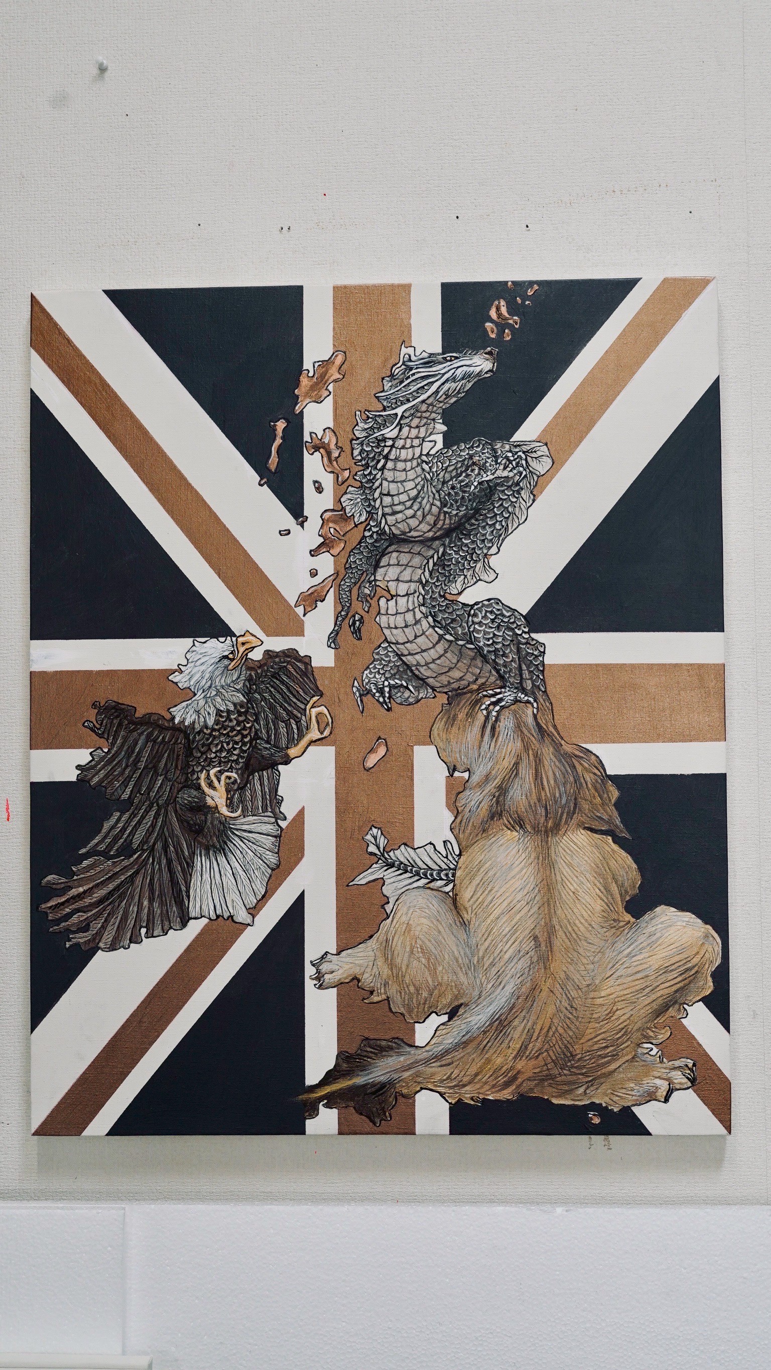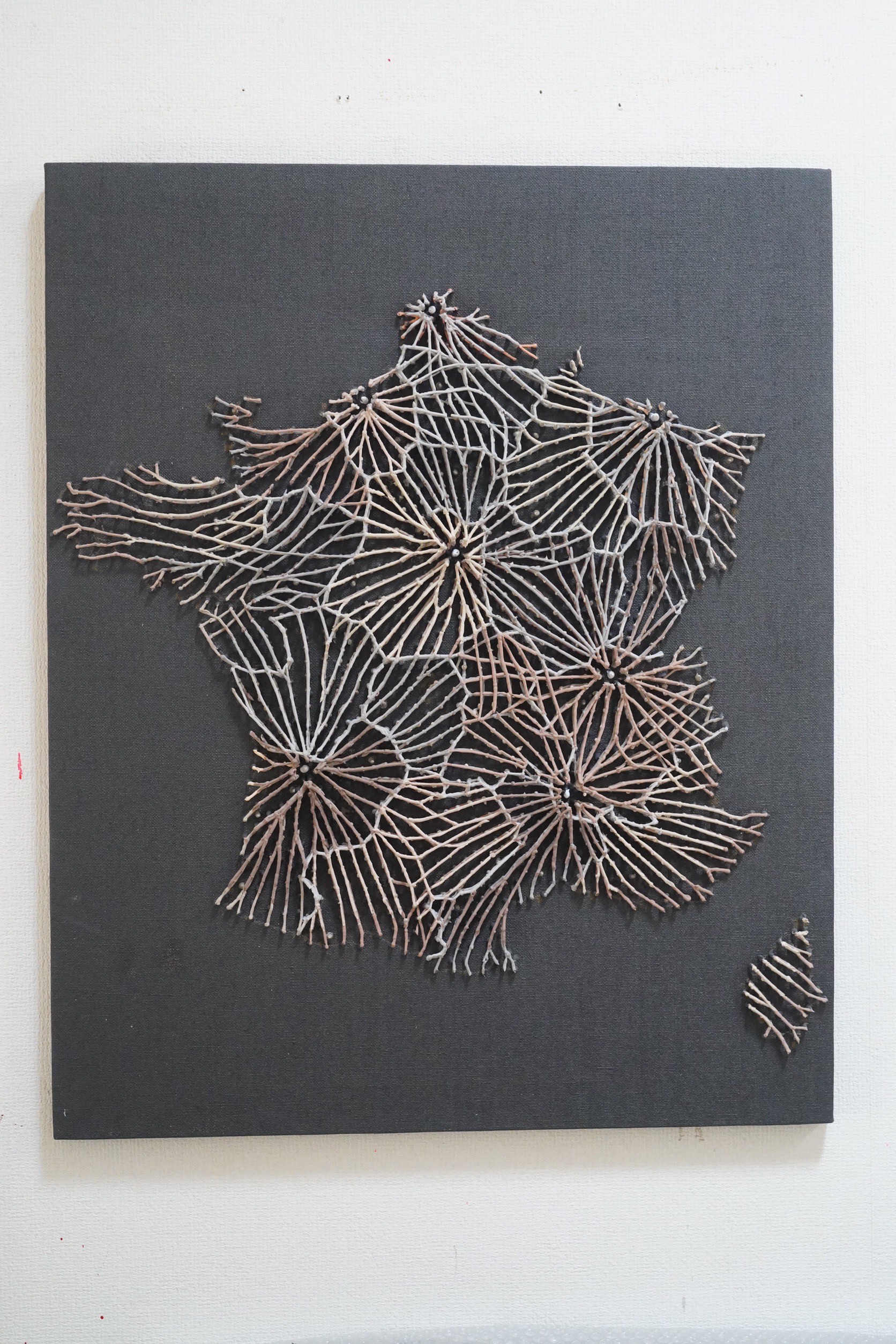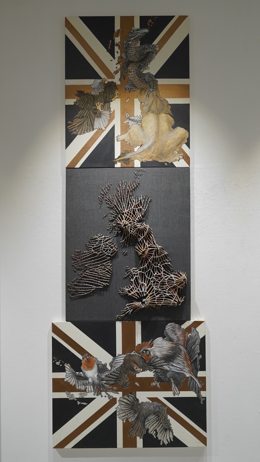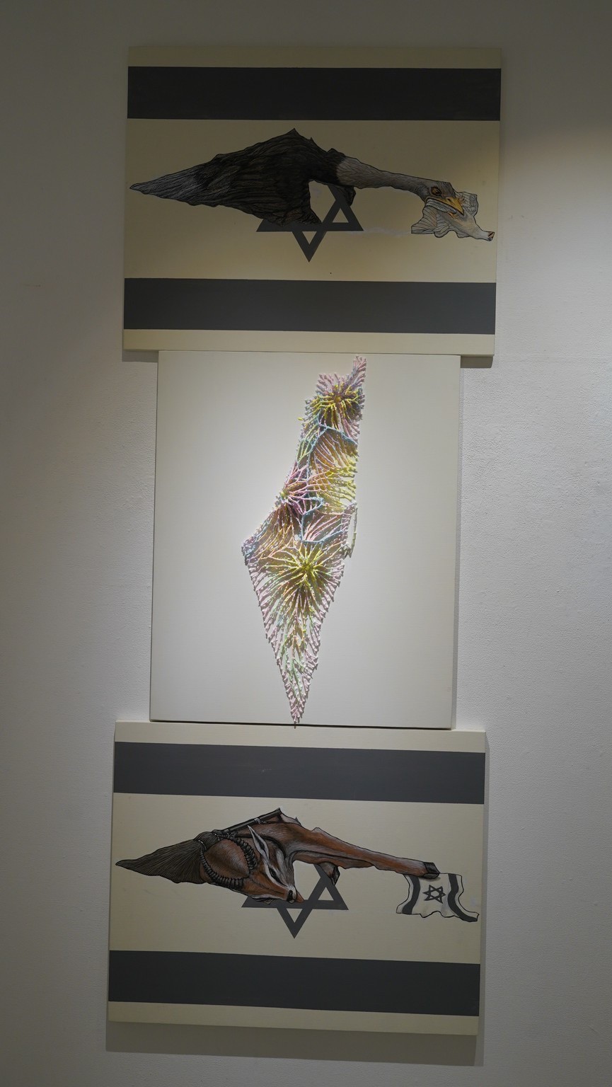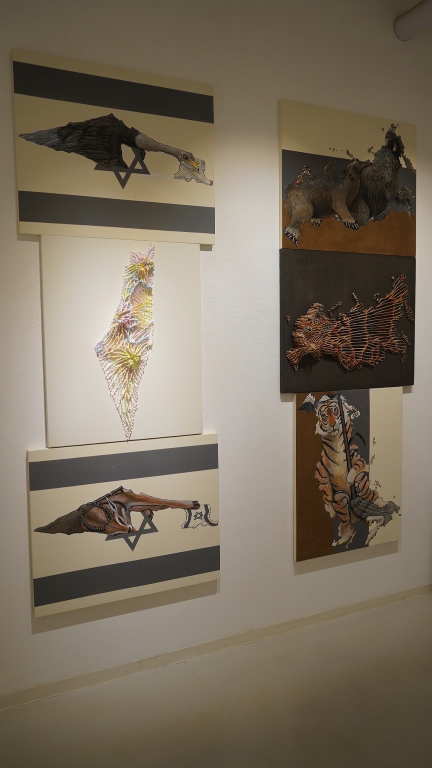 絵具による3Dの点・線・層で再構築した表現である。政治的・宗教的・民族的な「輪郭=国境/酷境」を、