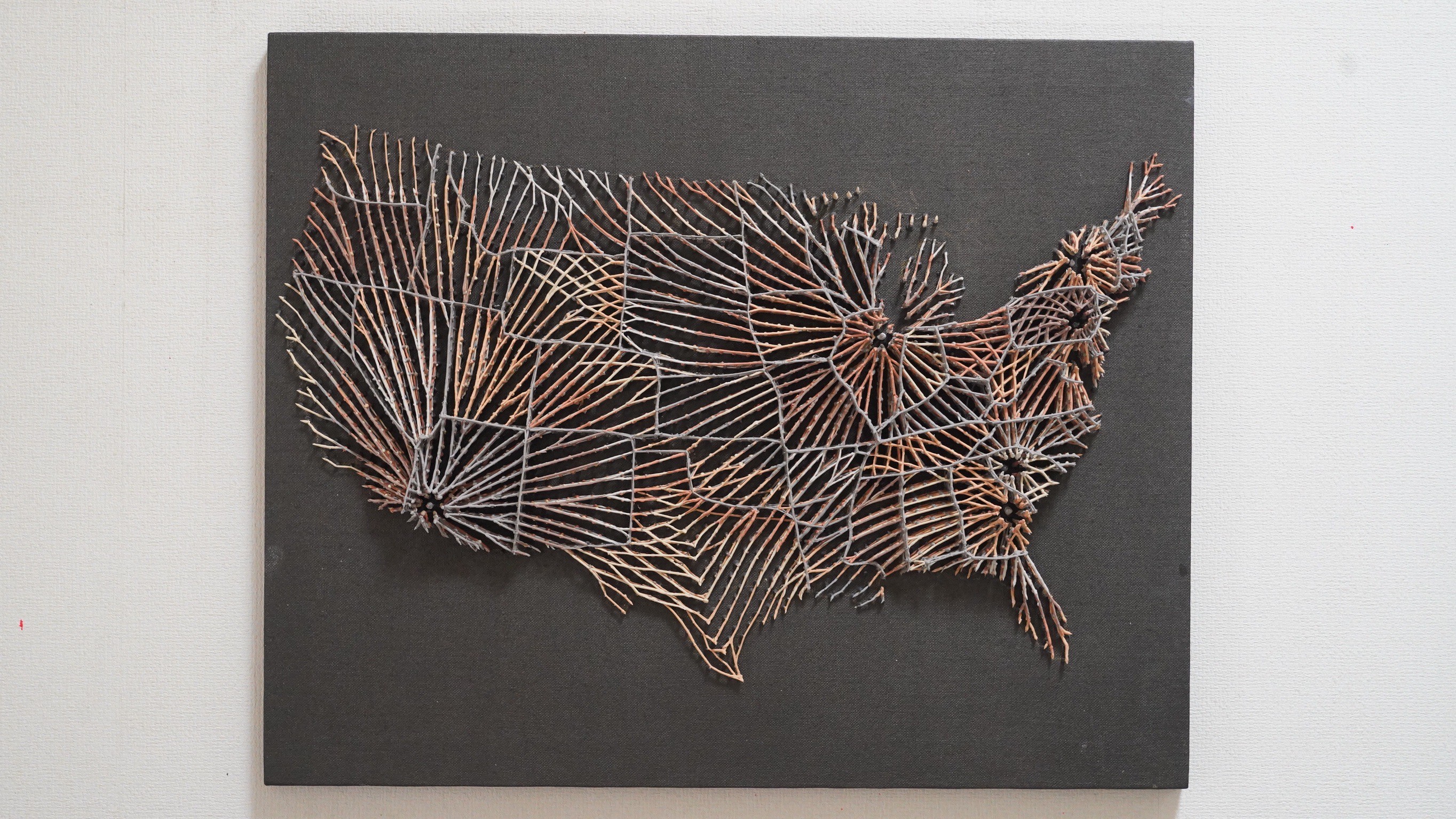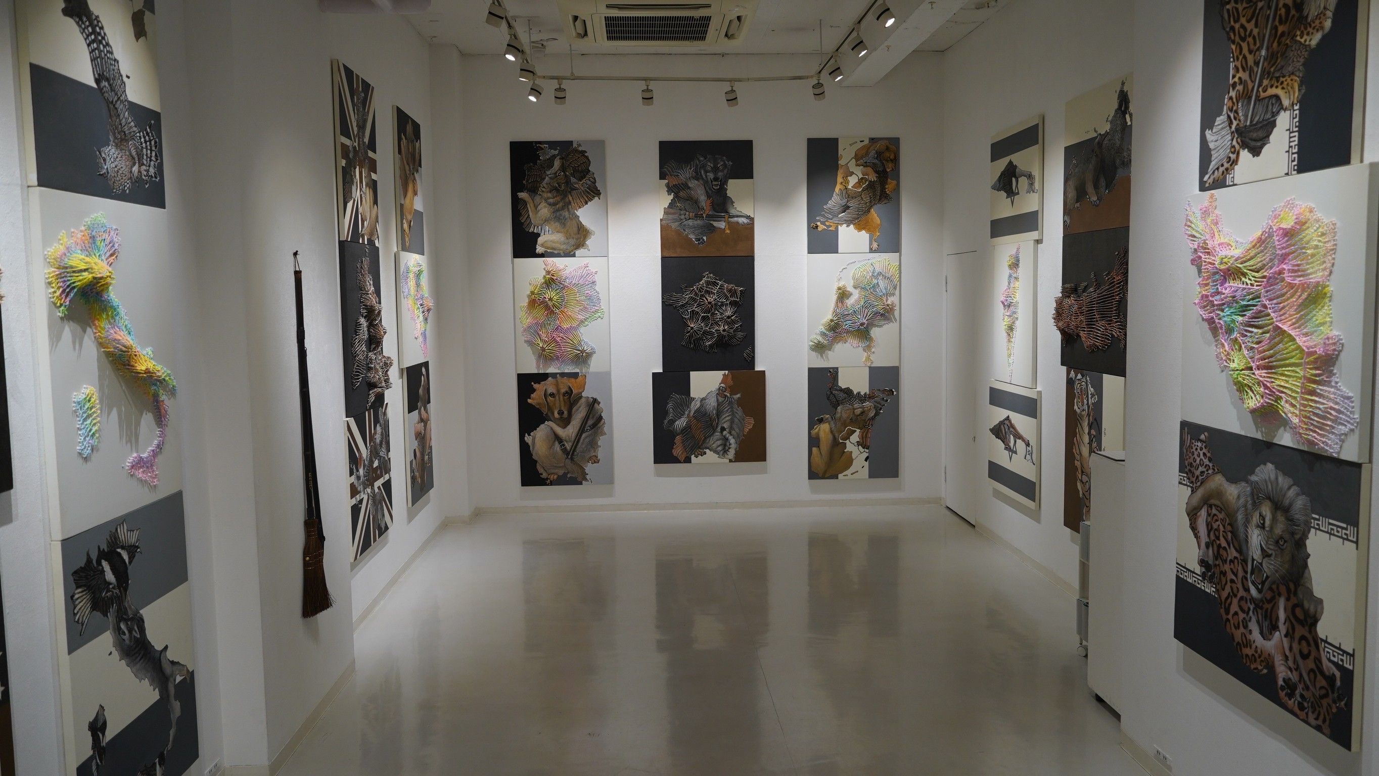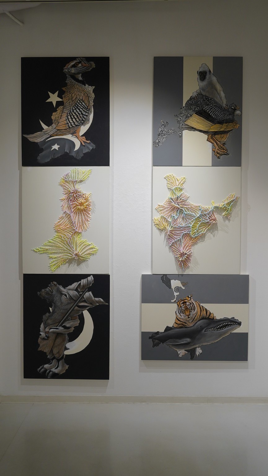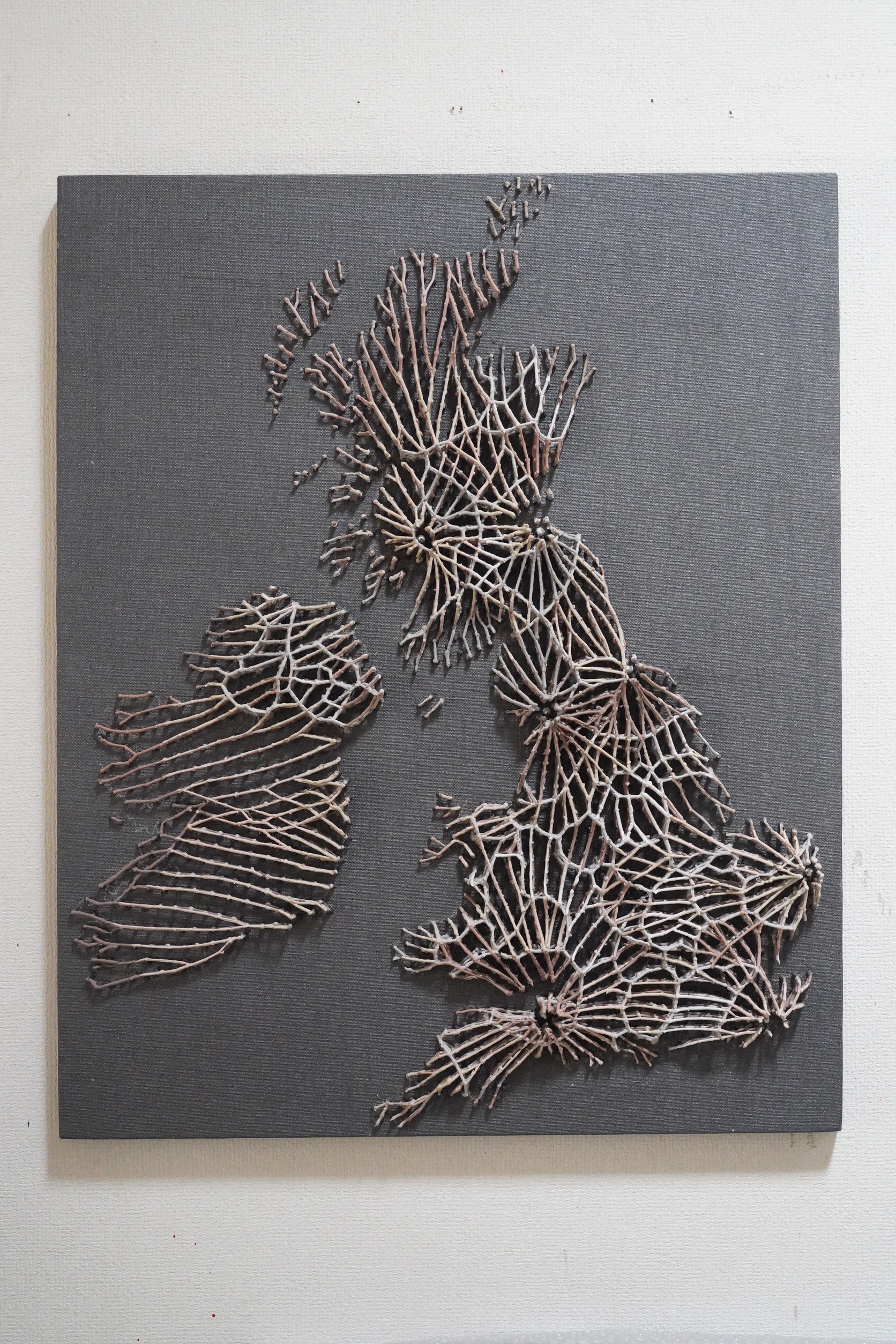 絵具による3Dの点・線・層で再構築した表現である。政治的・宗教的・民族的な「輪郭=国境/酷境」を、