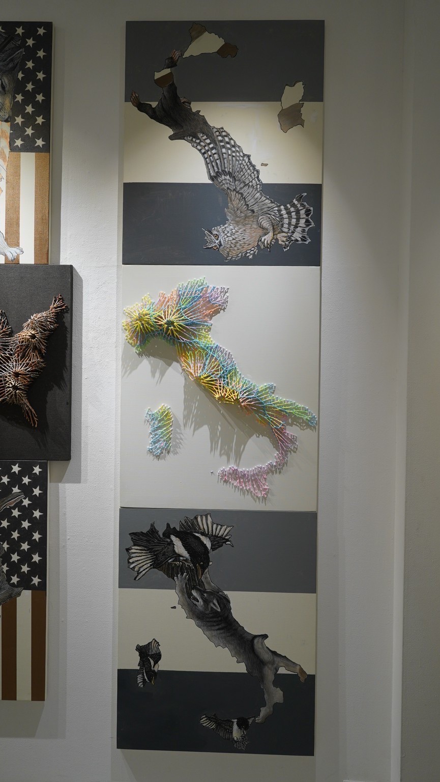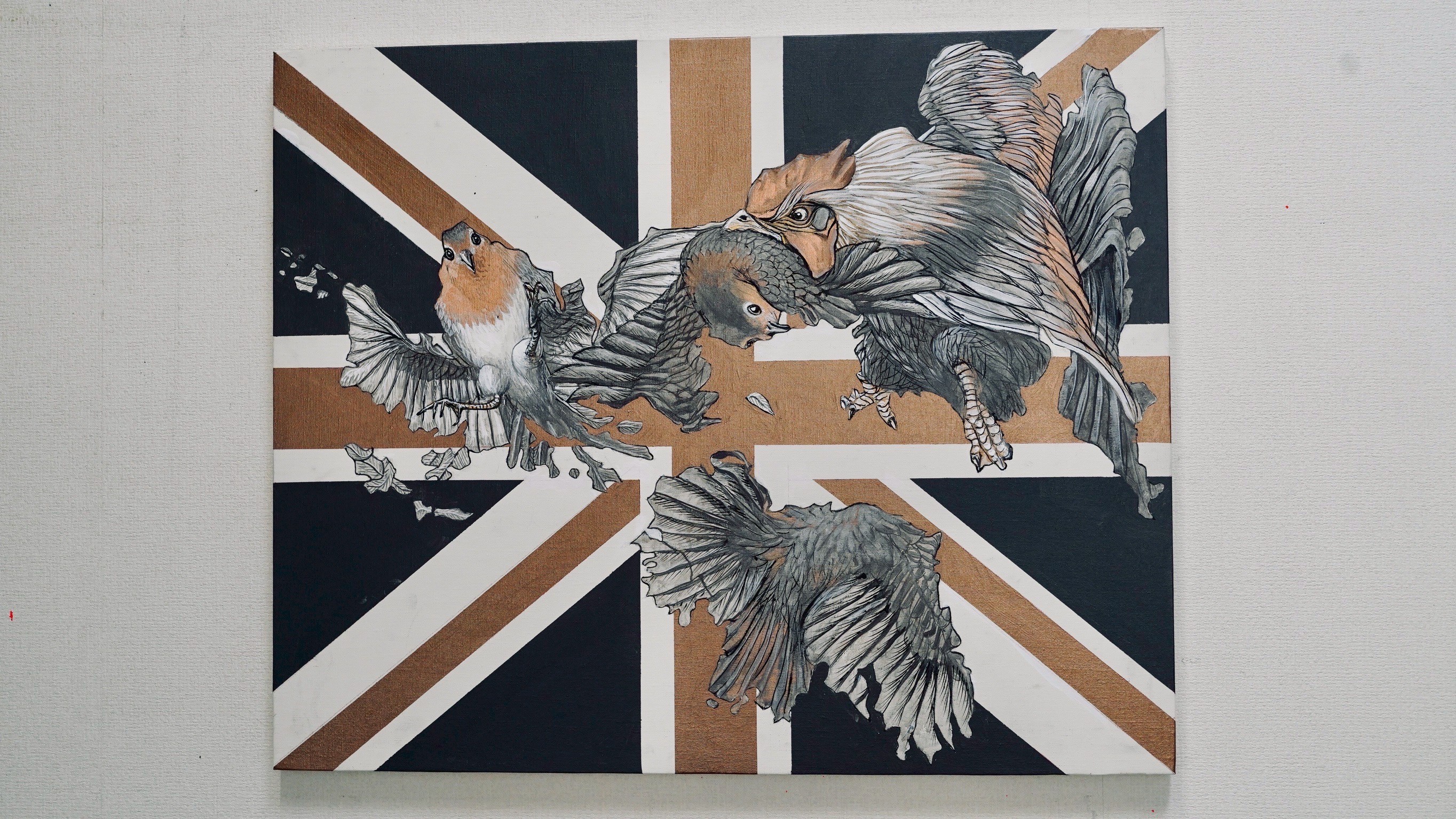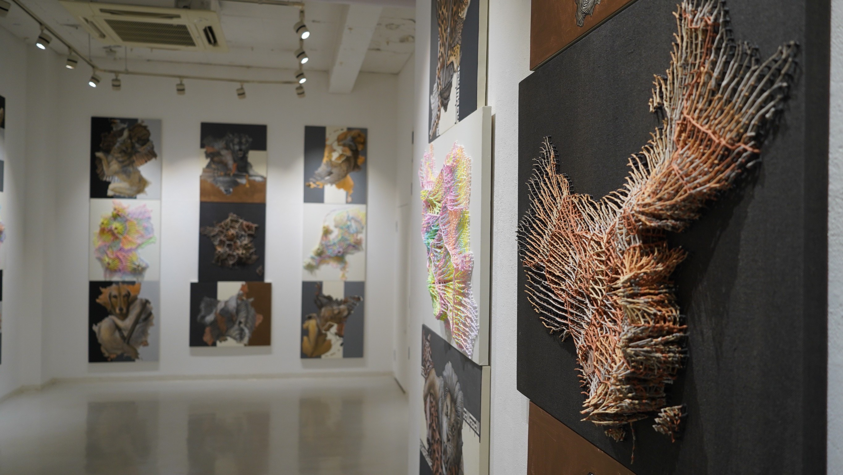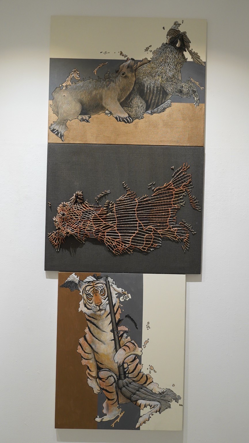 絵具による3Dの点・線・層で再構築した表現である。政治的・宗教的・民族的な「輪郭=国境/酷境」を、